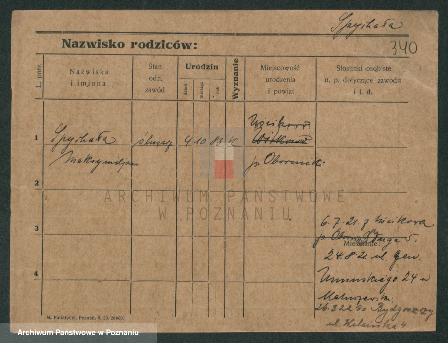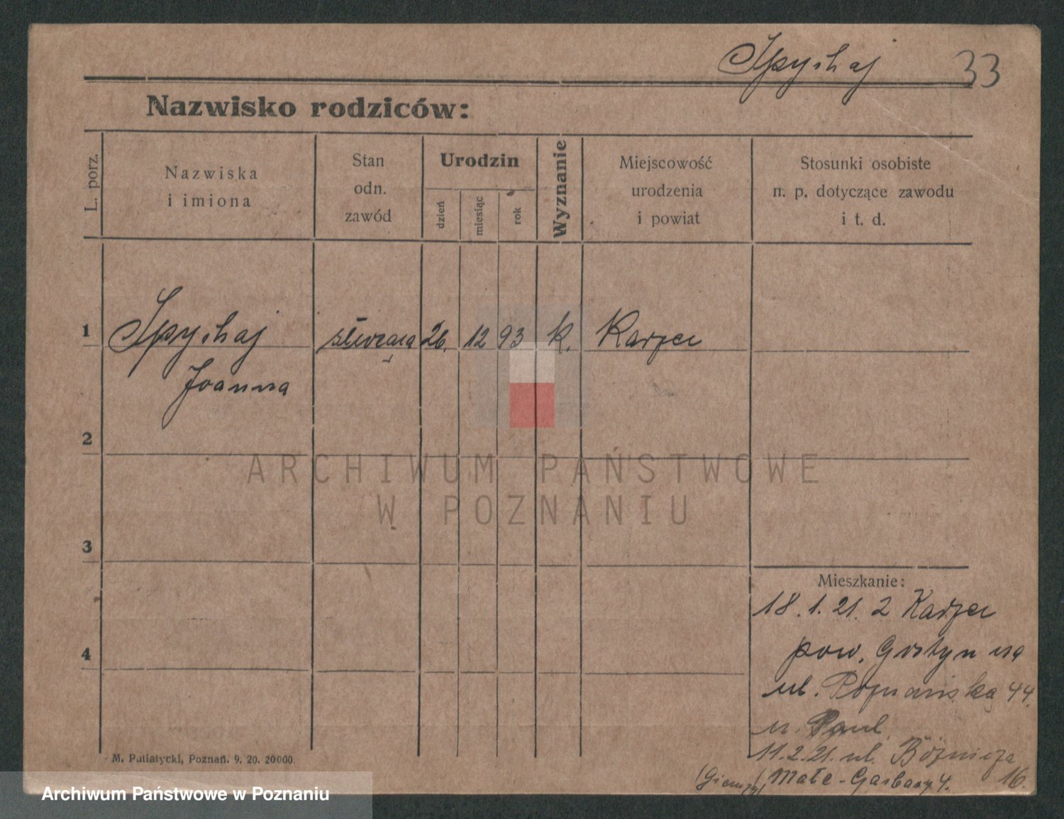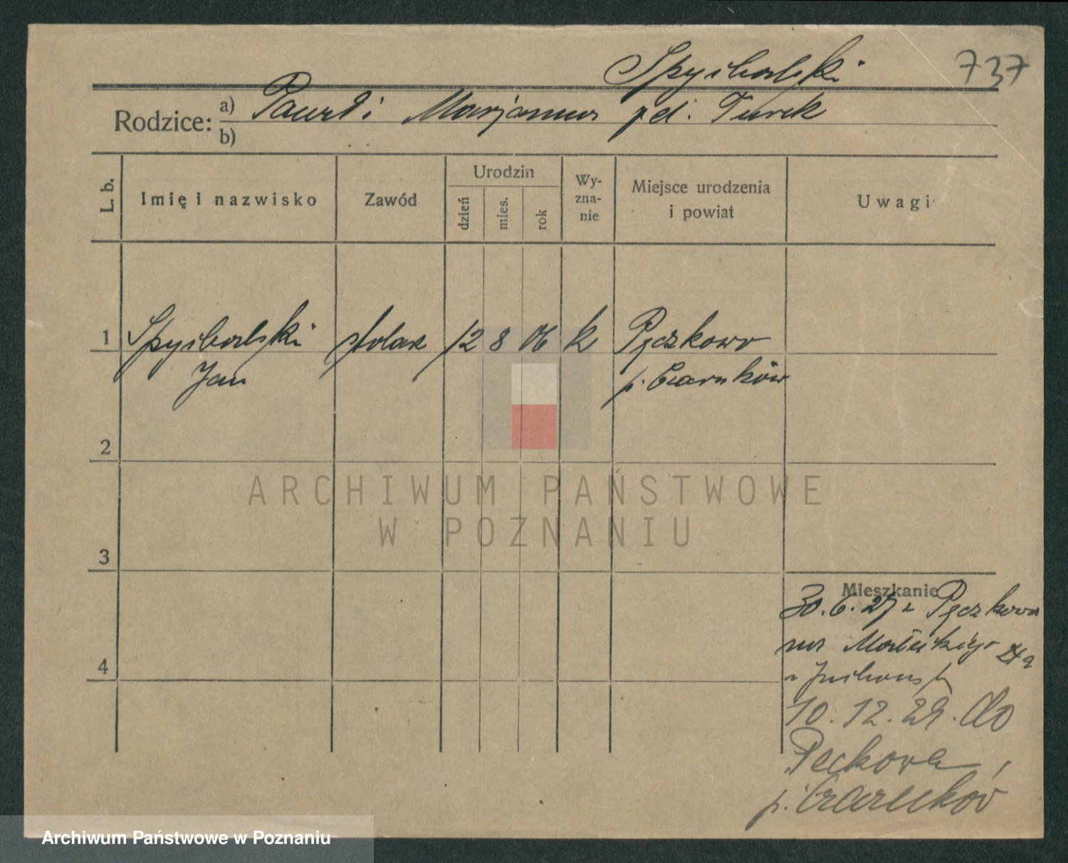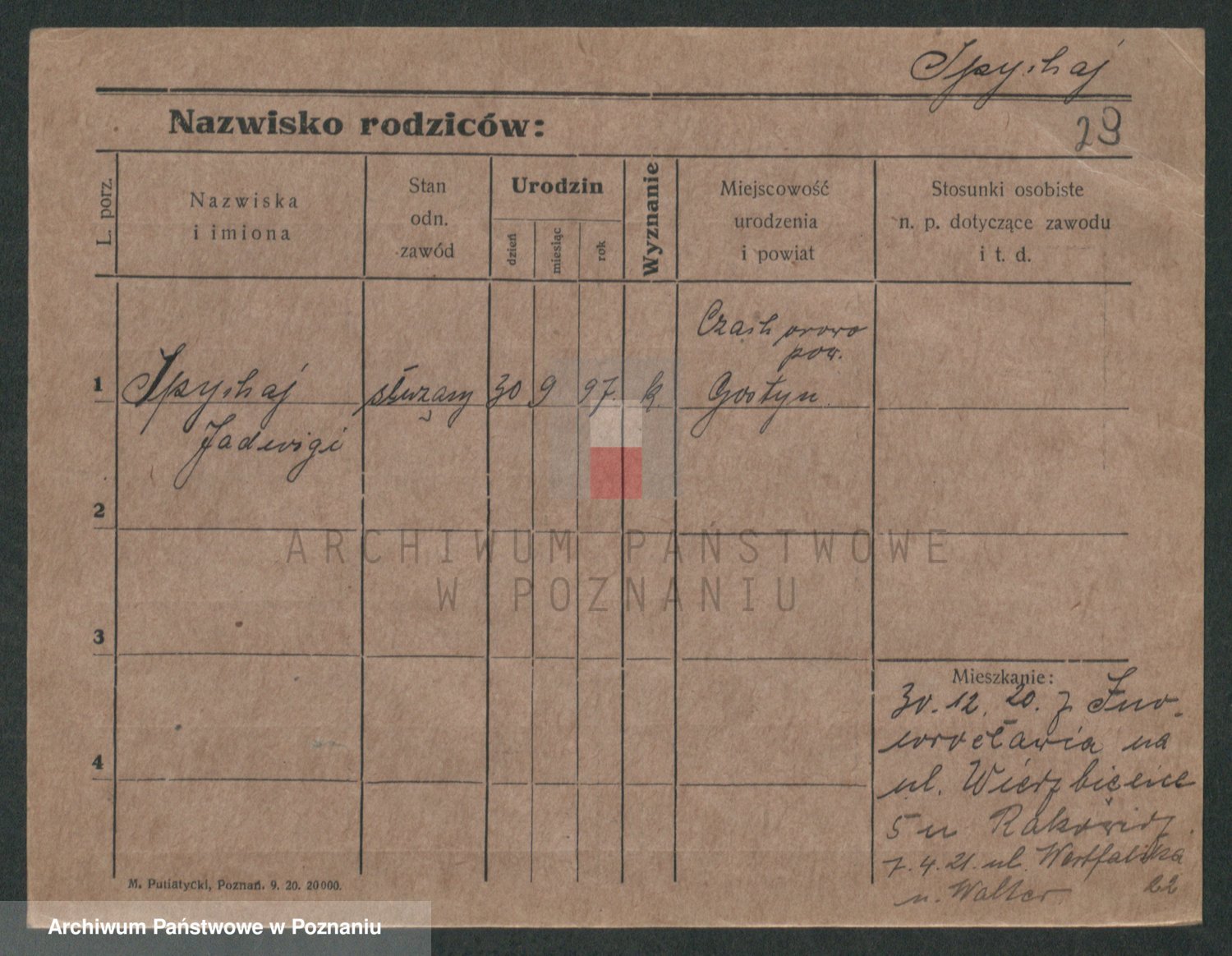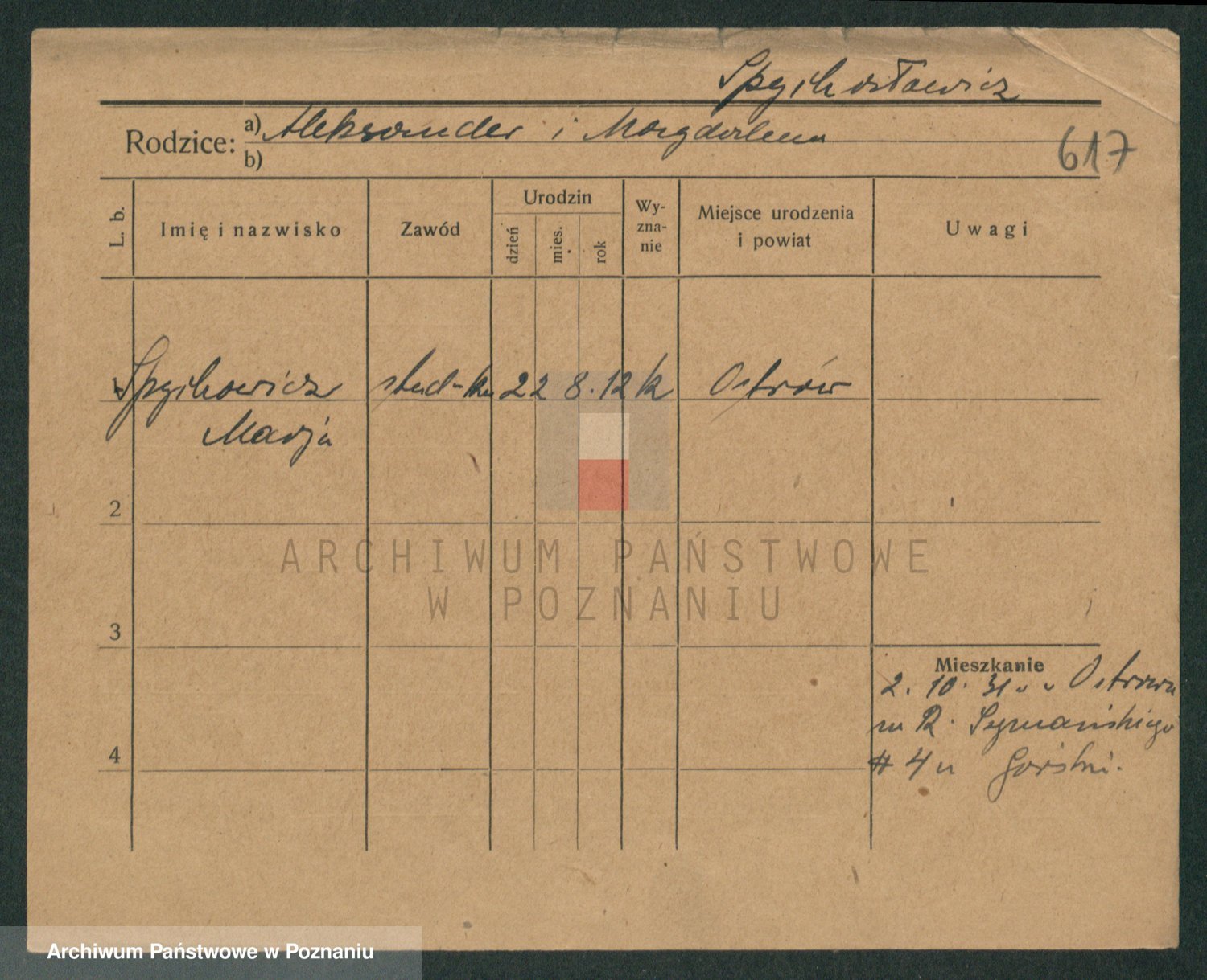 Podgląd karty osobowej dostępny jest po kliknięciu na nazwisko lub ikonkę karty. Można dokonywać powiększenia (ikony na górze) lub przechodzić między kolejnymi skanami (strzałki po bokach).