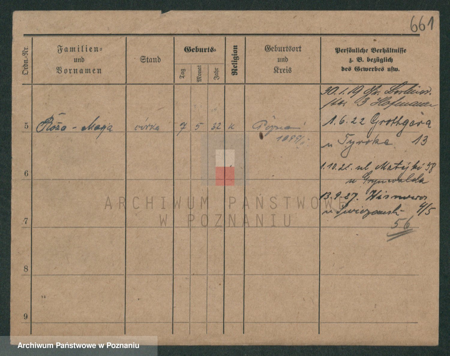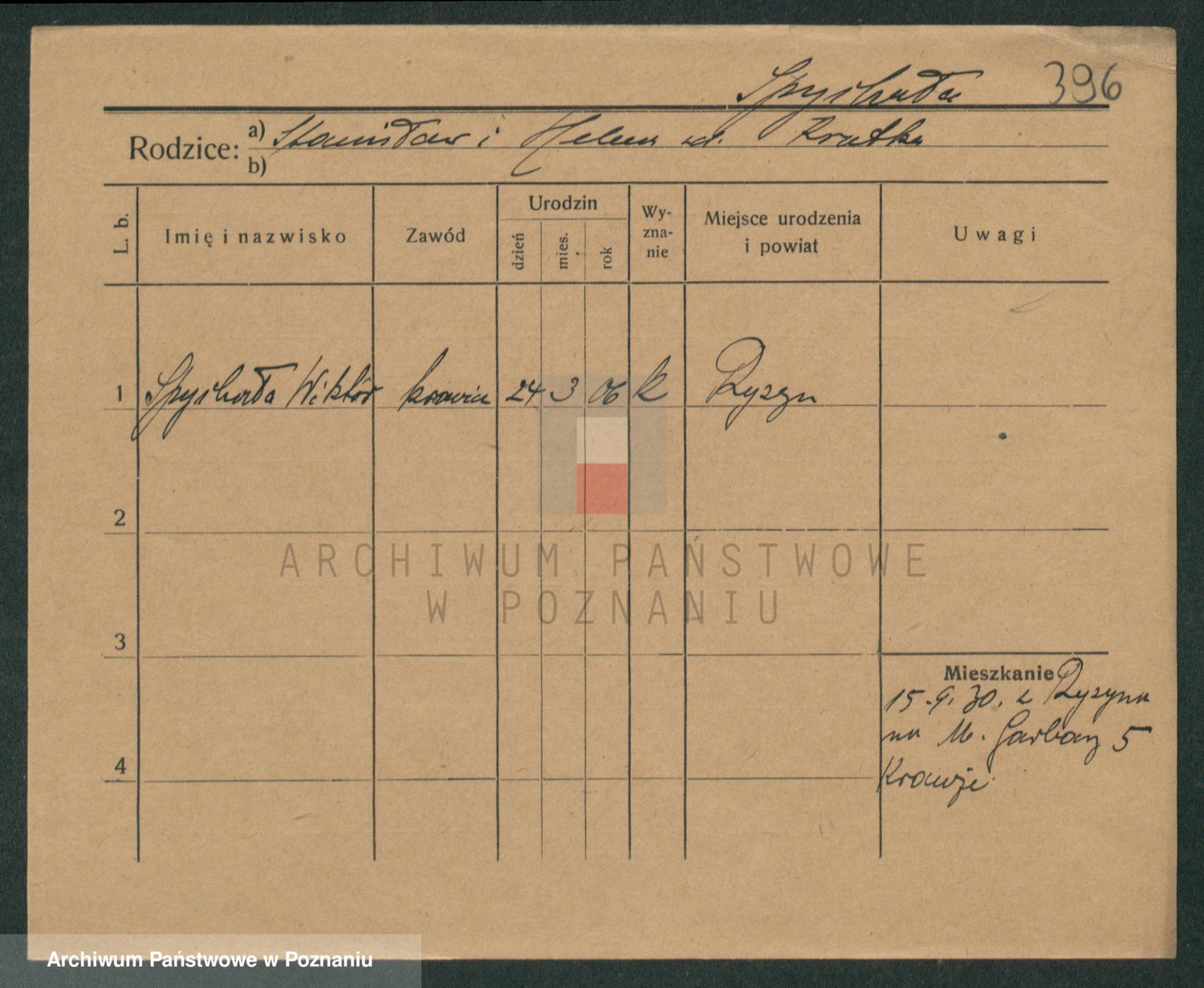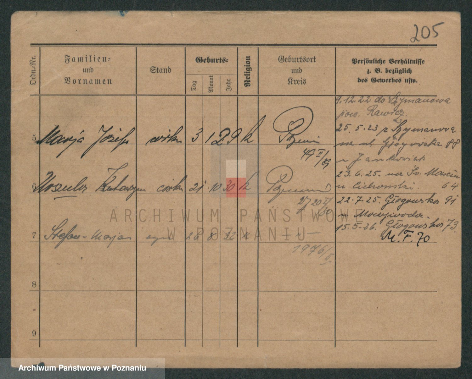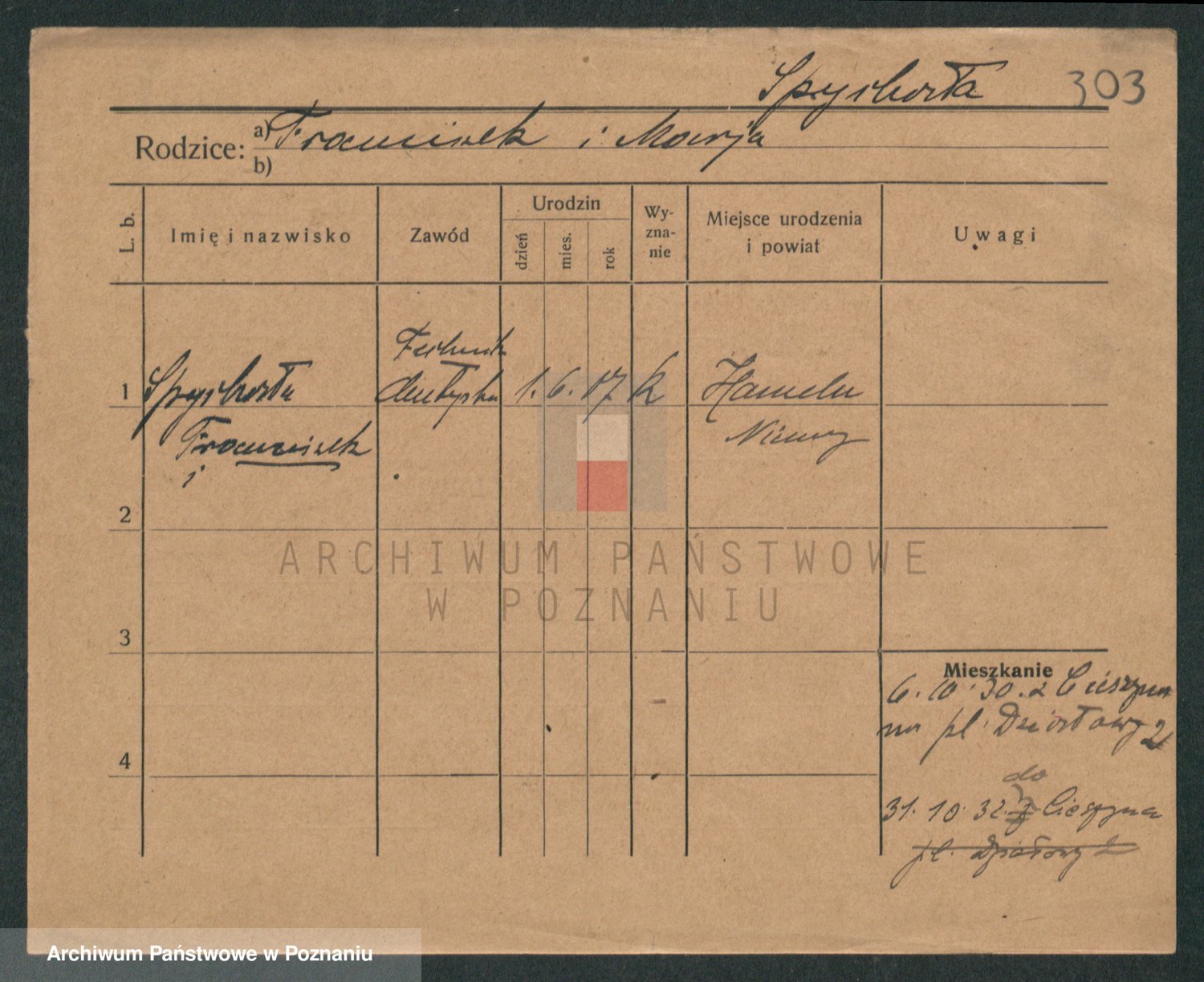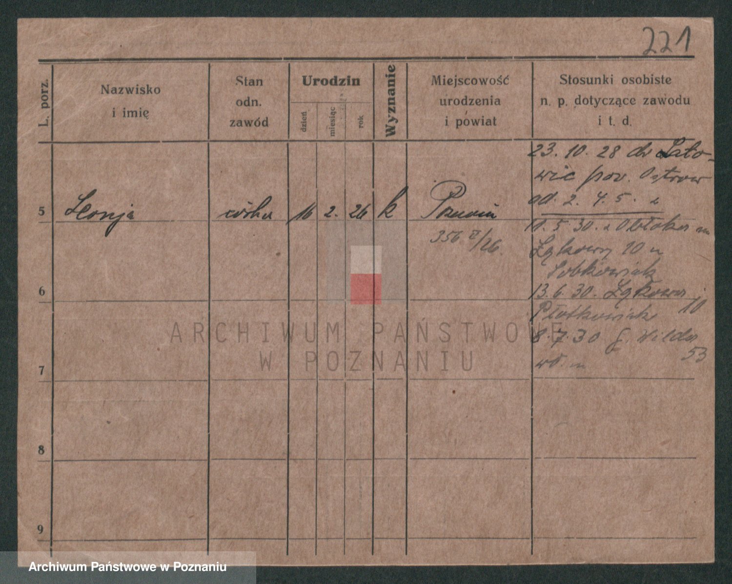 Podgląd karty osobowej dostępny jest po kliknięciu na nazwisko lub ikonkę karty. Można dokonywać powiększenia (ikony na górze) lub przechodzić między kolejnymi skanami (strzałki po bokach).