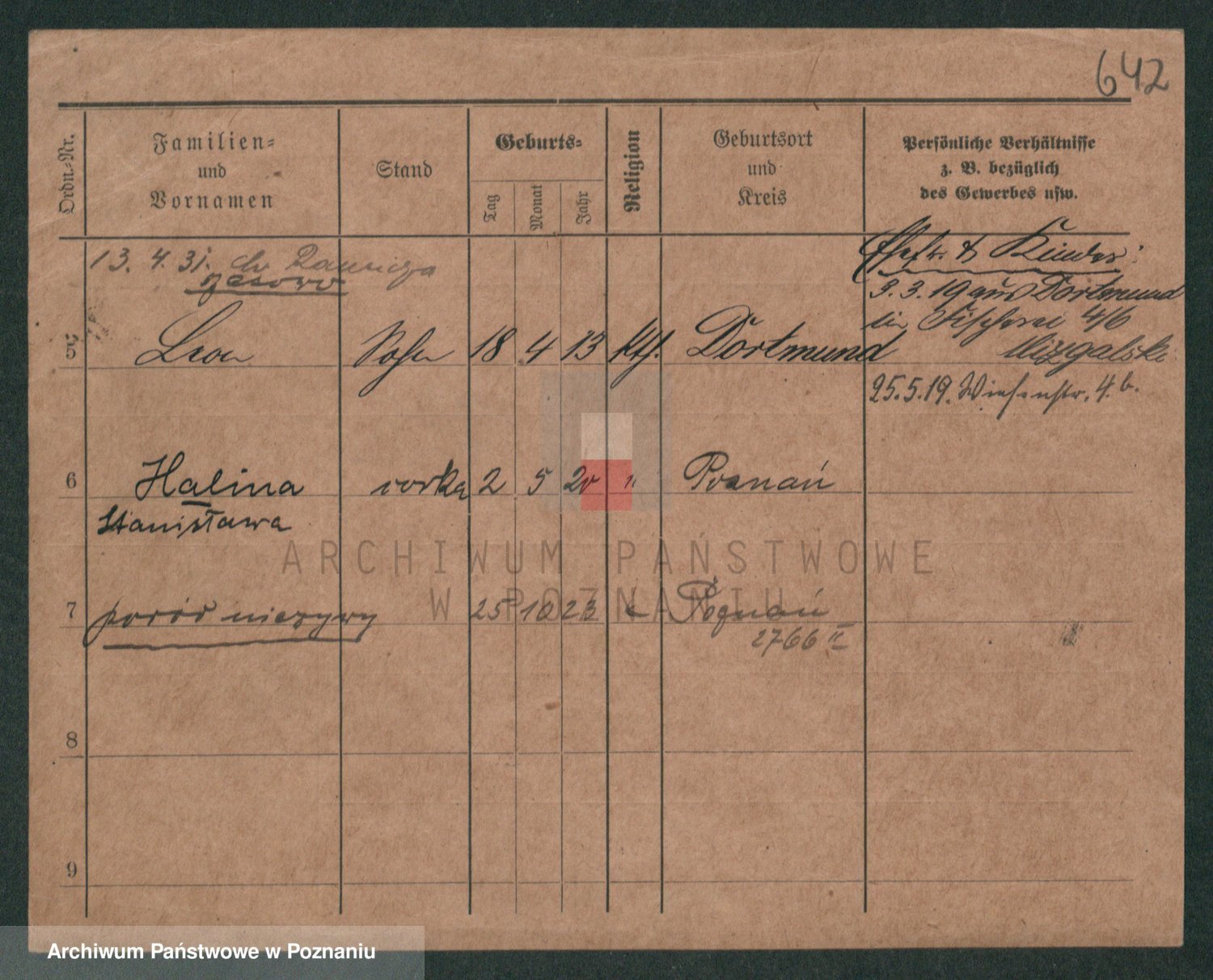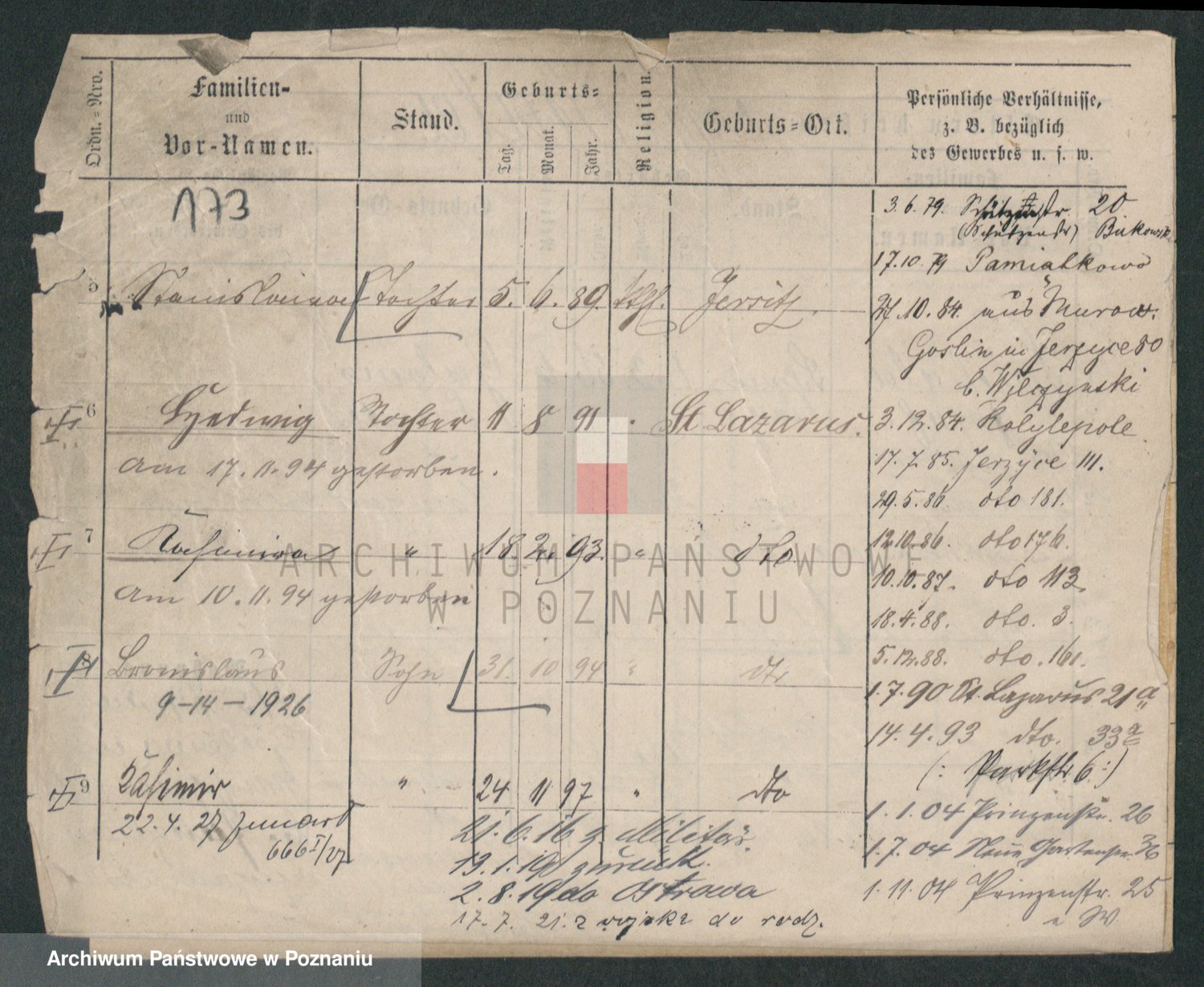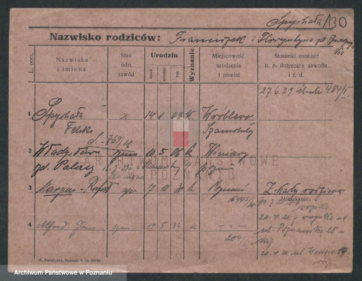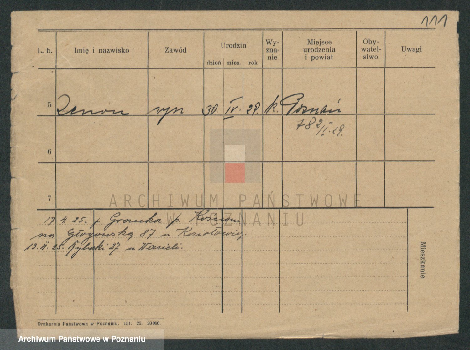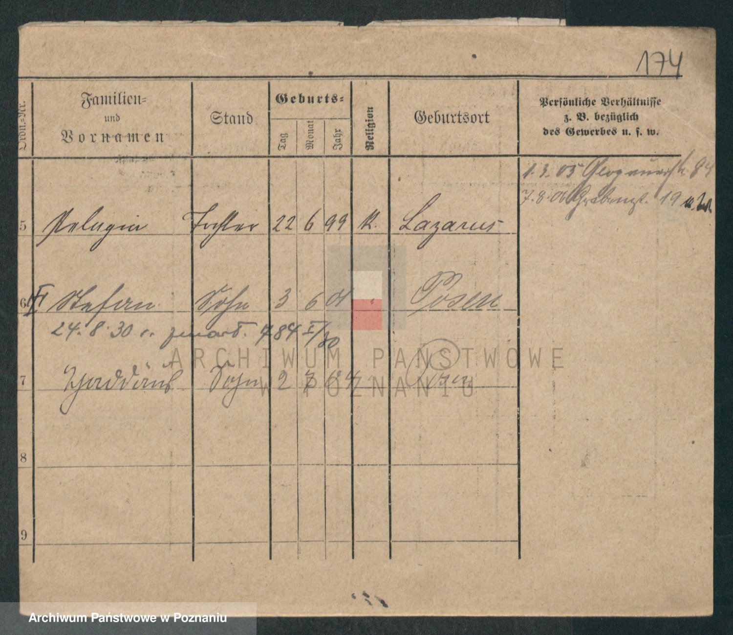 Podgląd karty osobowej dostępny jest po kliknięciu na nazwisko lub ikonkę karty. Można dokonywać powiększenia (ikony na górze) lub przechodzić między kolejnymi skanami (strzałki po bokach).