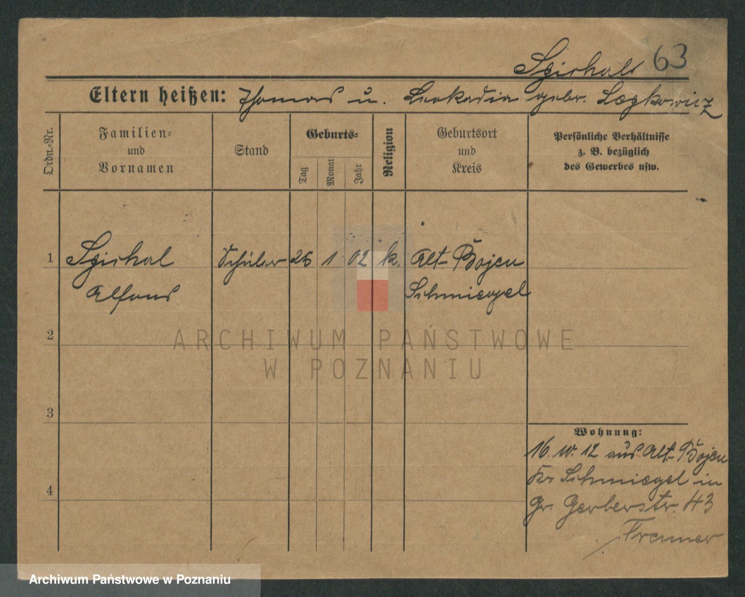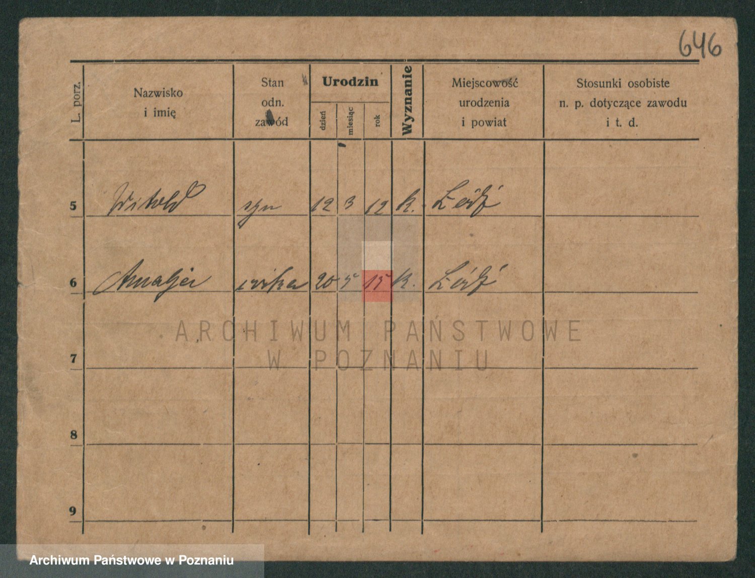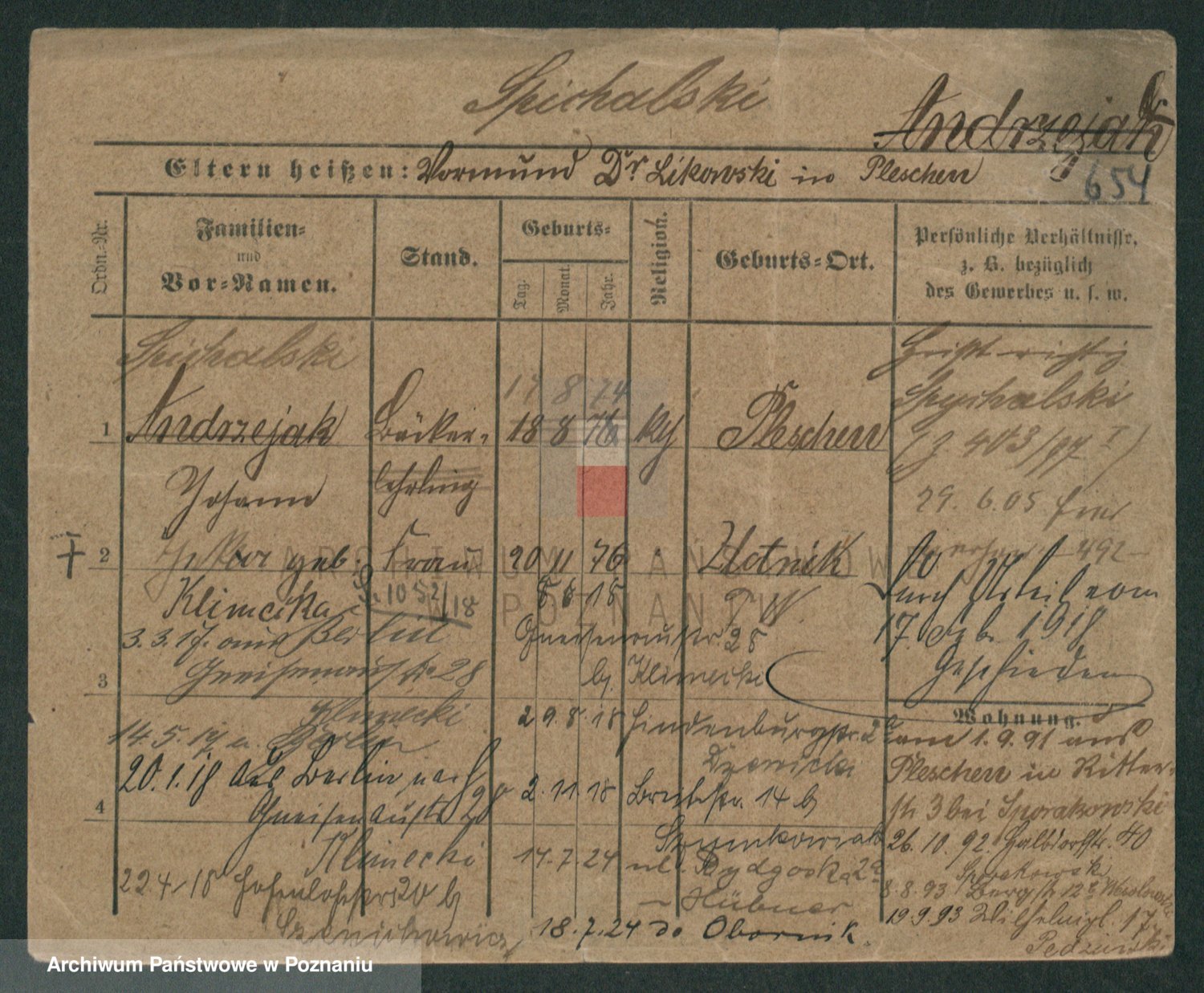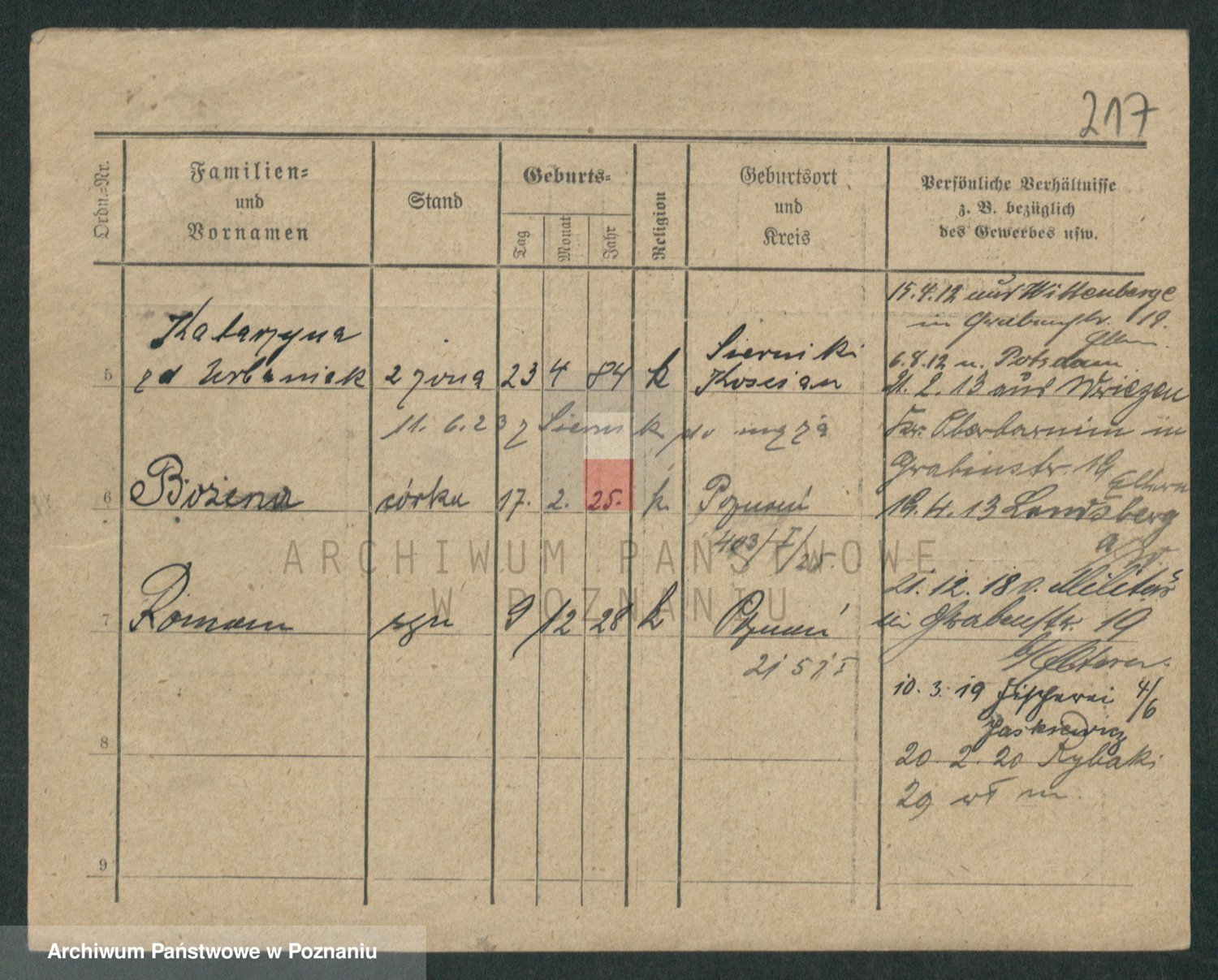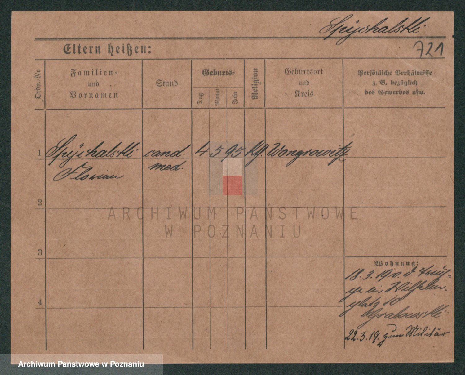 Podgląd karty osobowej dostępny jest po kliknięciu na nazwisko lub ikonkę karty. Można dokonywać powiększenia (ikony na górze) lub przechodzić między kolejnymi skanami (strzałki po bokach).