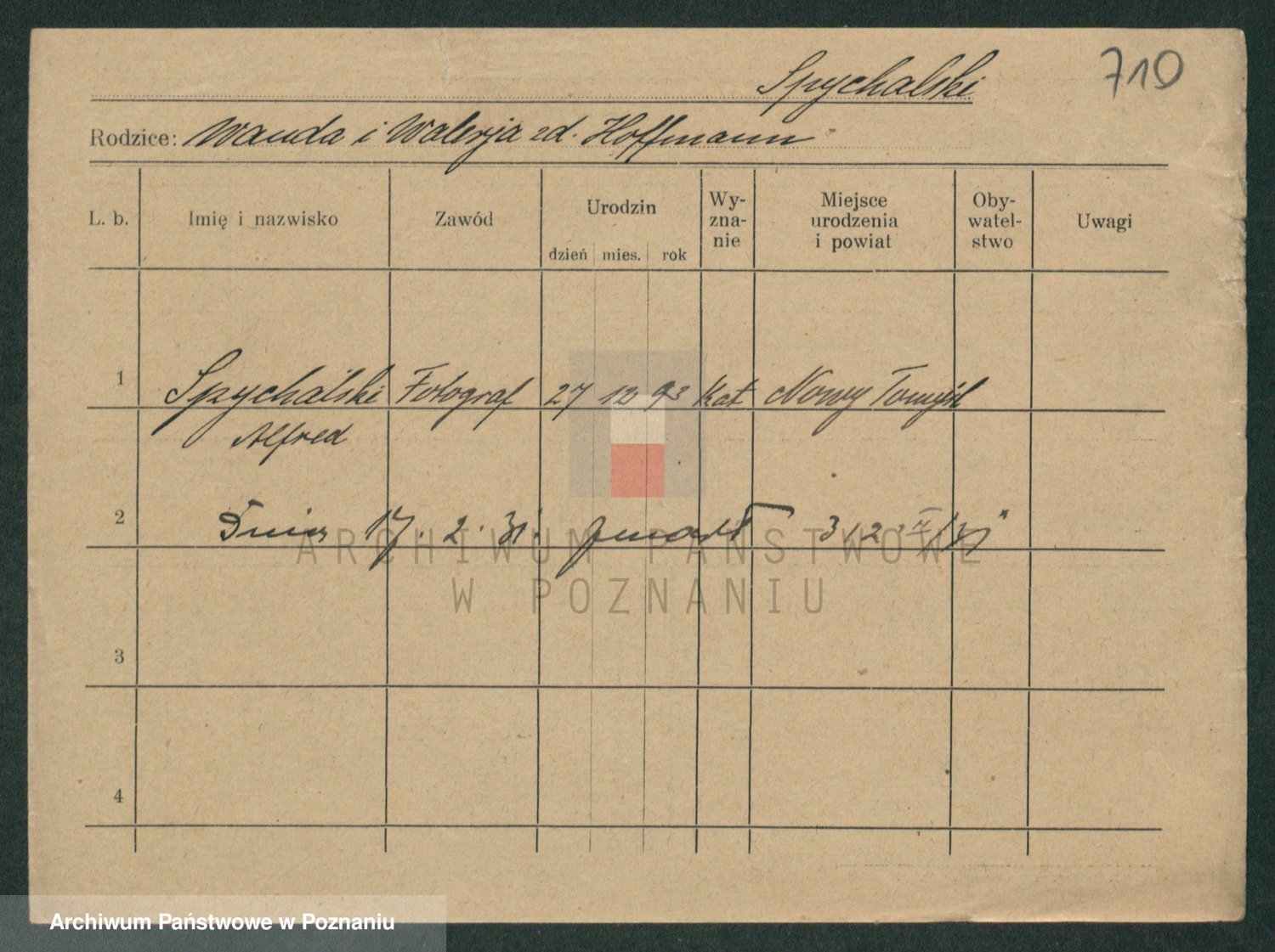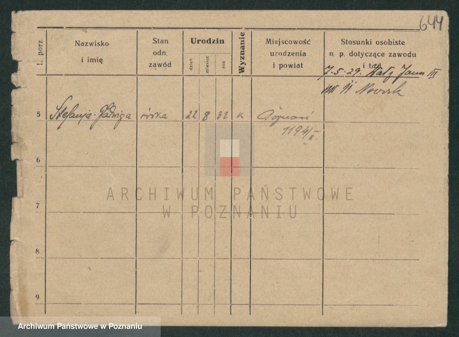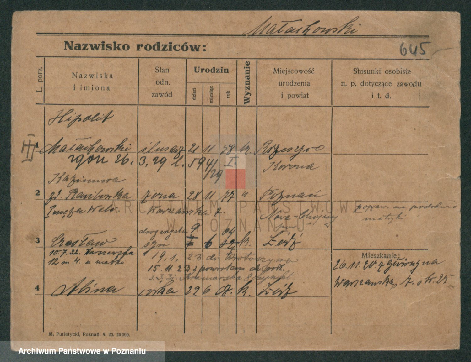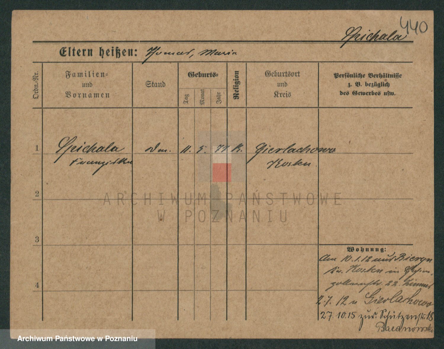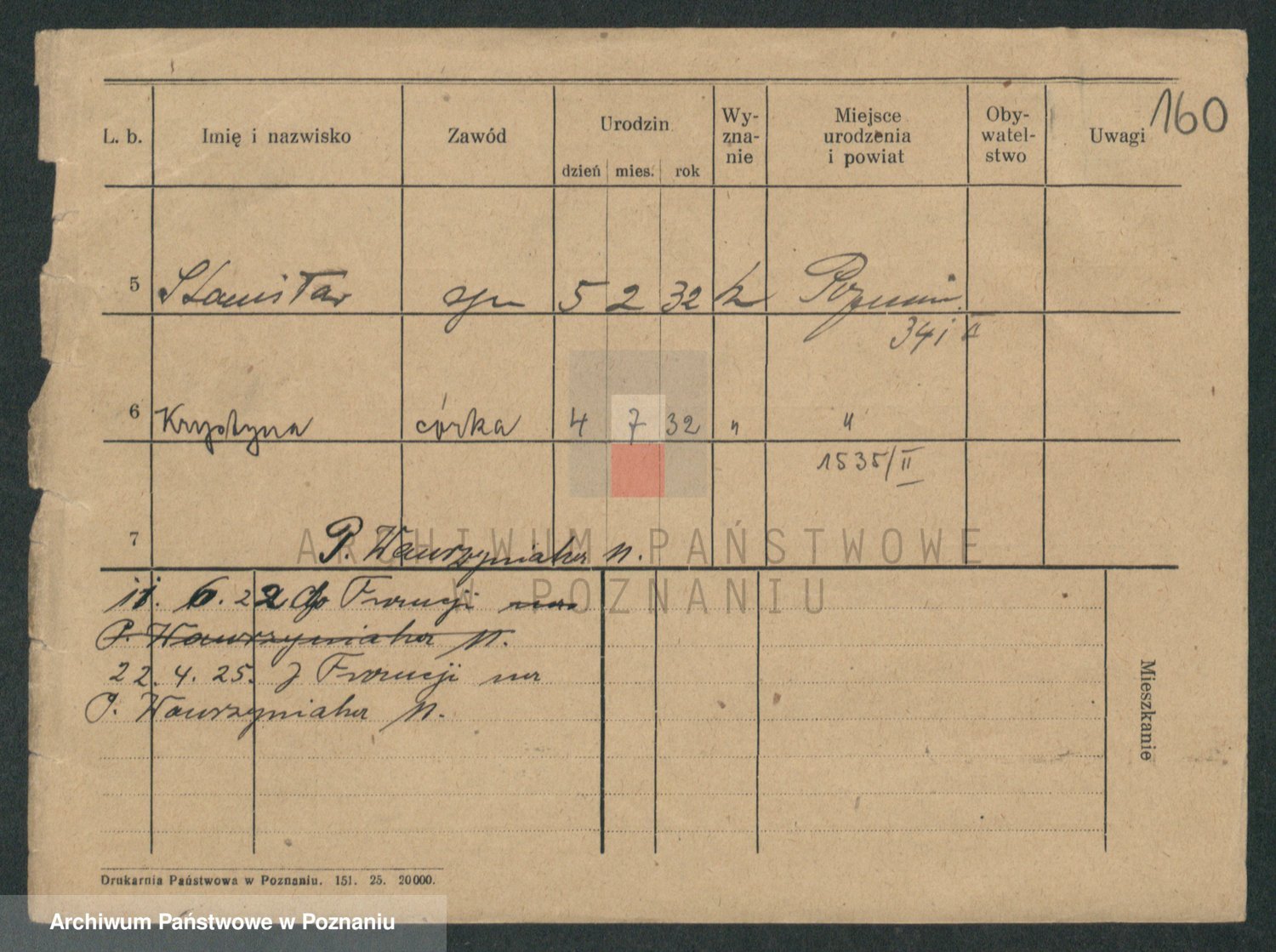 Podgląd karty osobowej dostępny jest po kliknięciu na nazwisko lub ikonkę karty. Można dokonywać powiększenia (ikony na górze) lub przechodzić między kolejnymi skanami (strzałki po bokach).