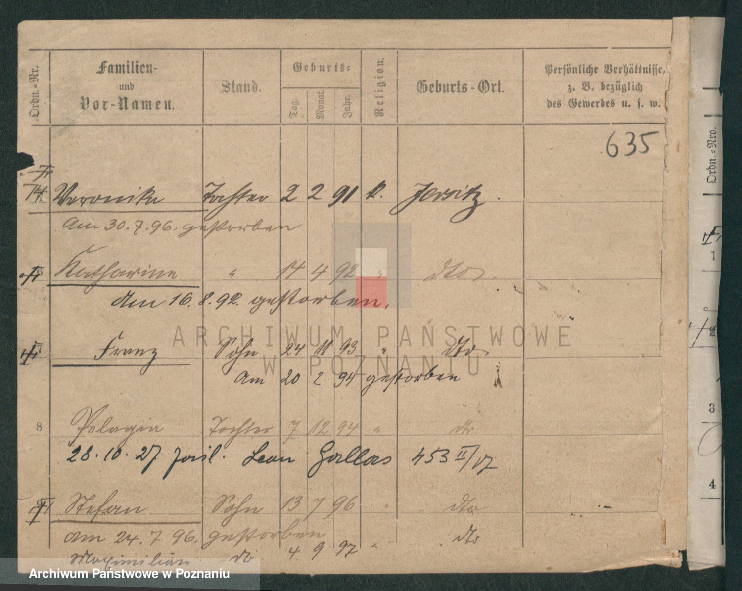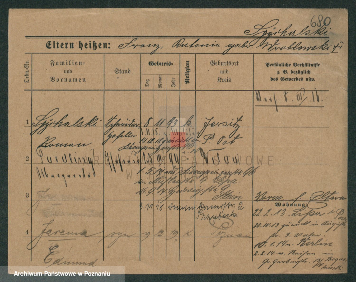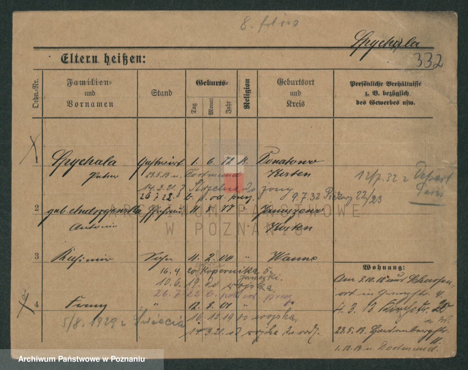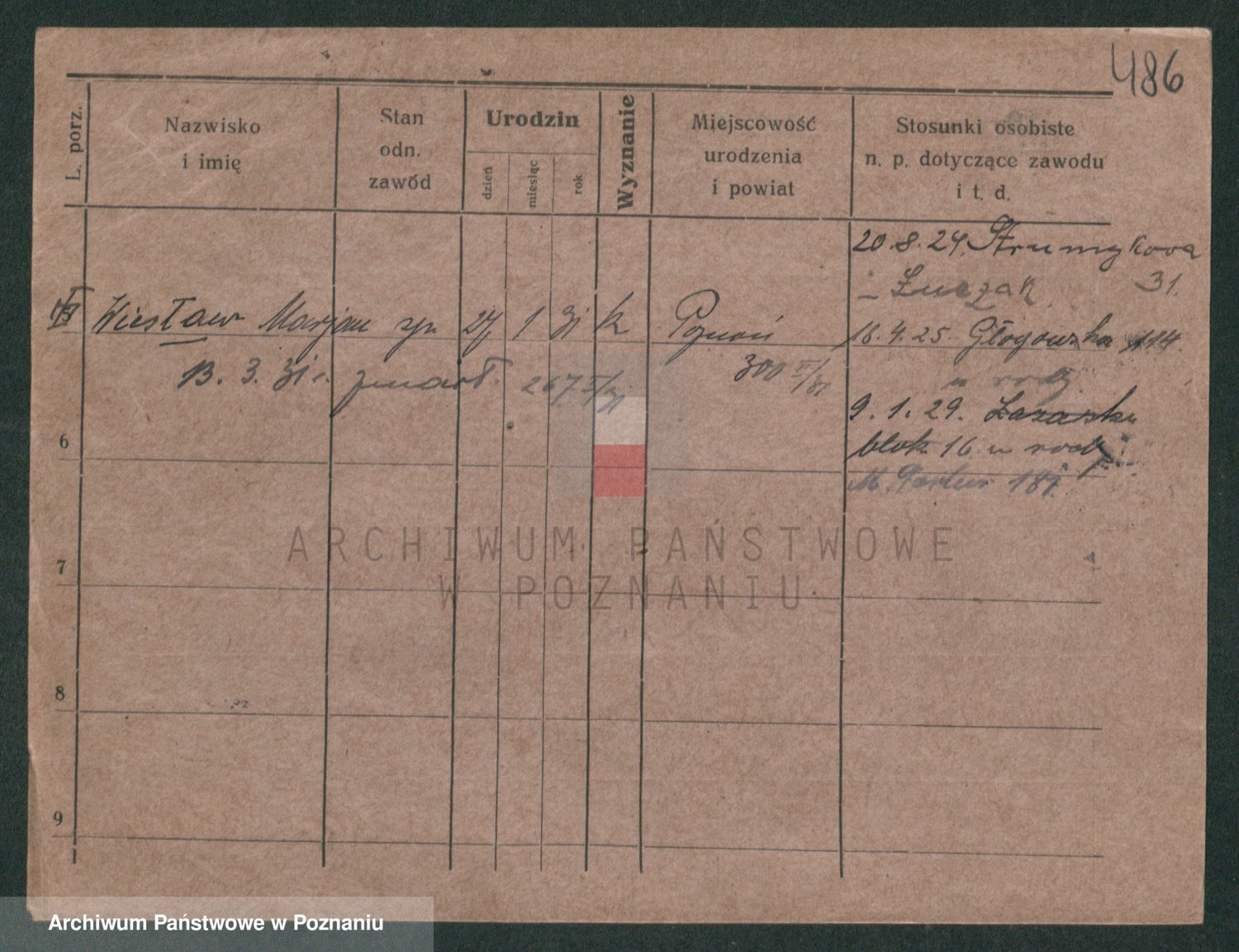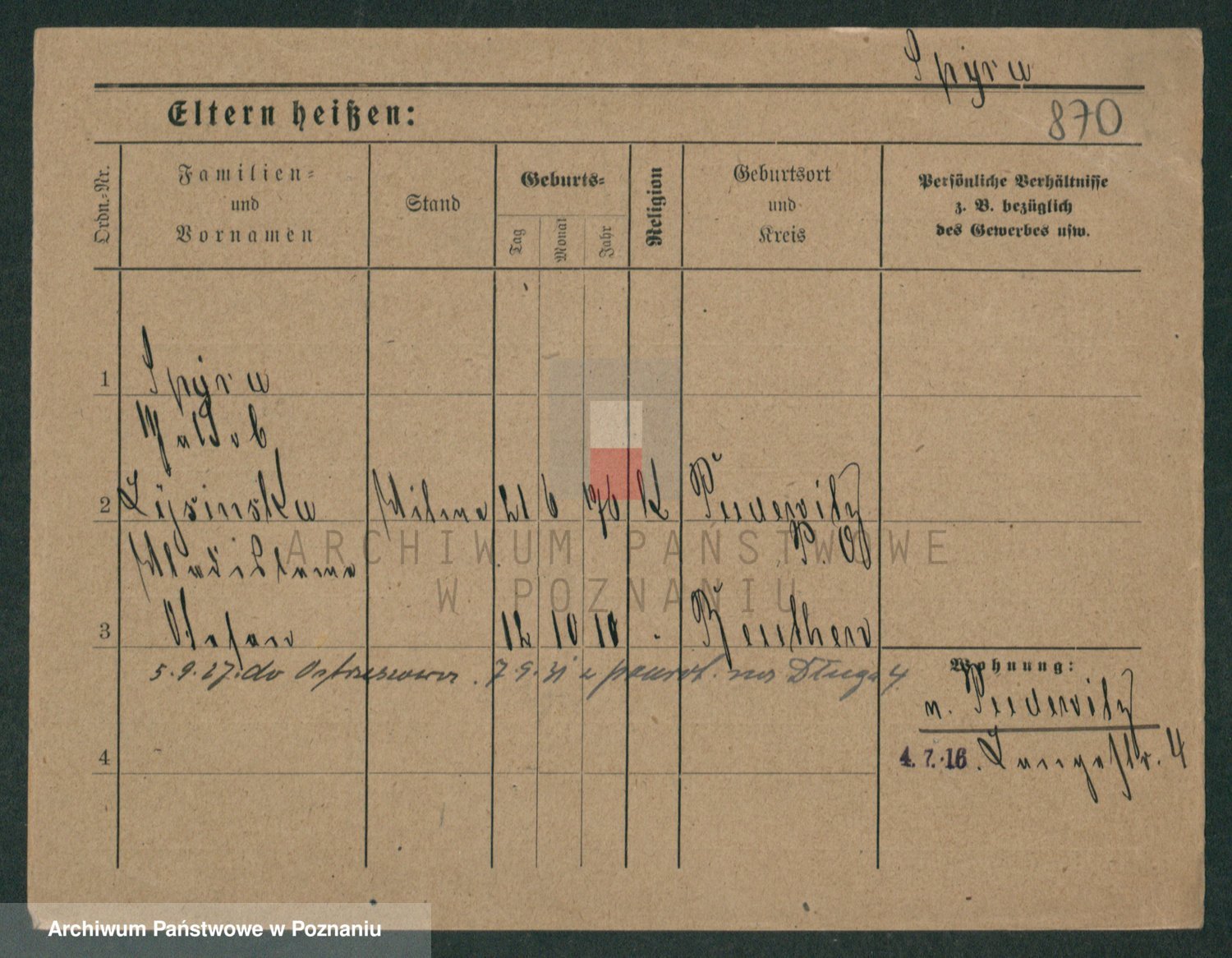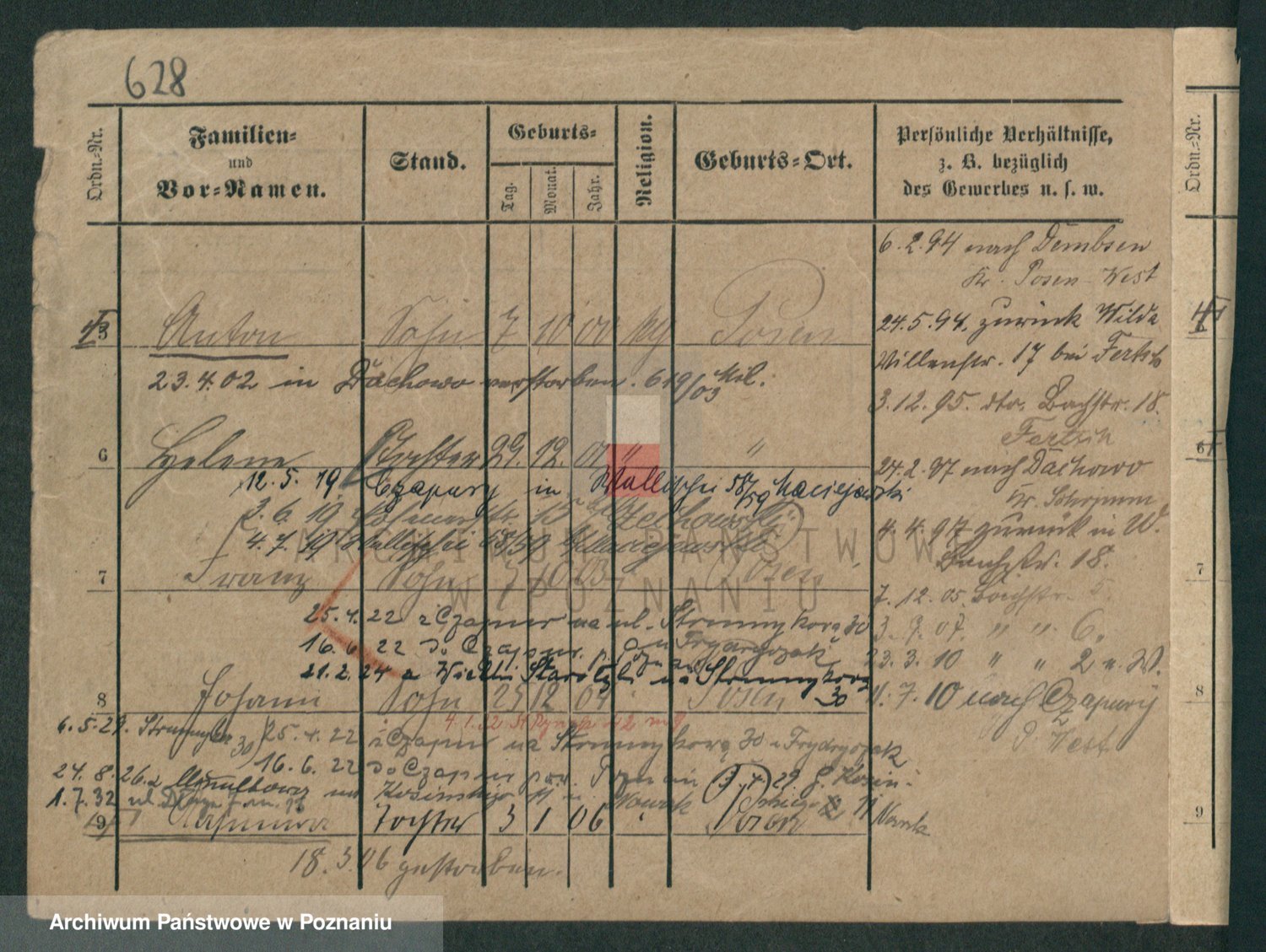 Podgląd karty osobowej dostępny jest po kliknięciu na nazwisko lub ikonkę karty. Można dokonywać powiększenia (ikony na górze) lub przechodzić między kolejnymi skanami (strzałki po bokach).