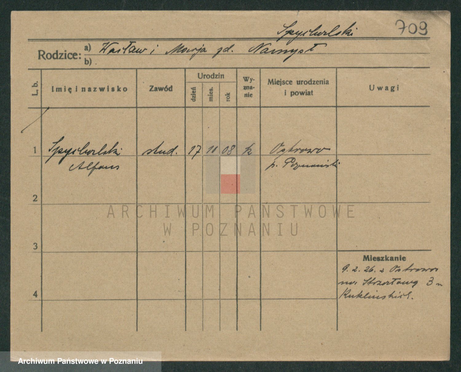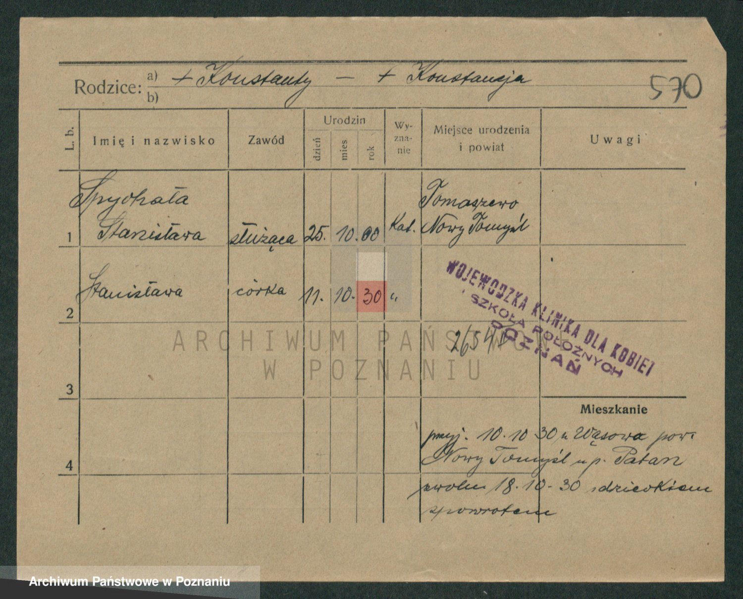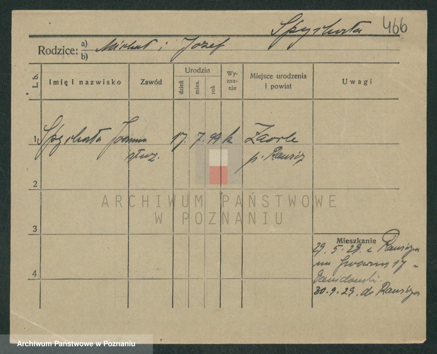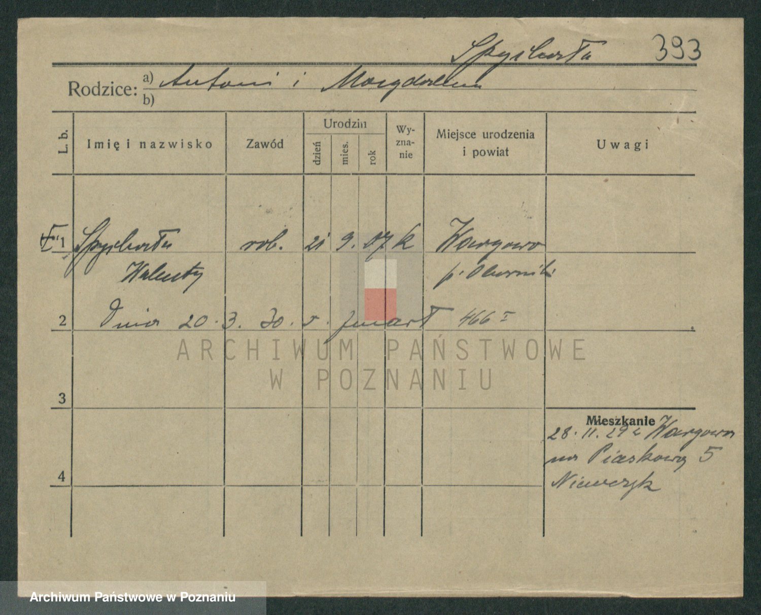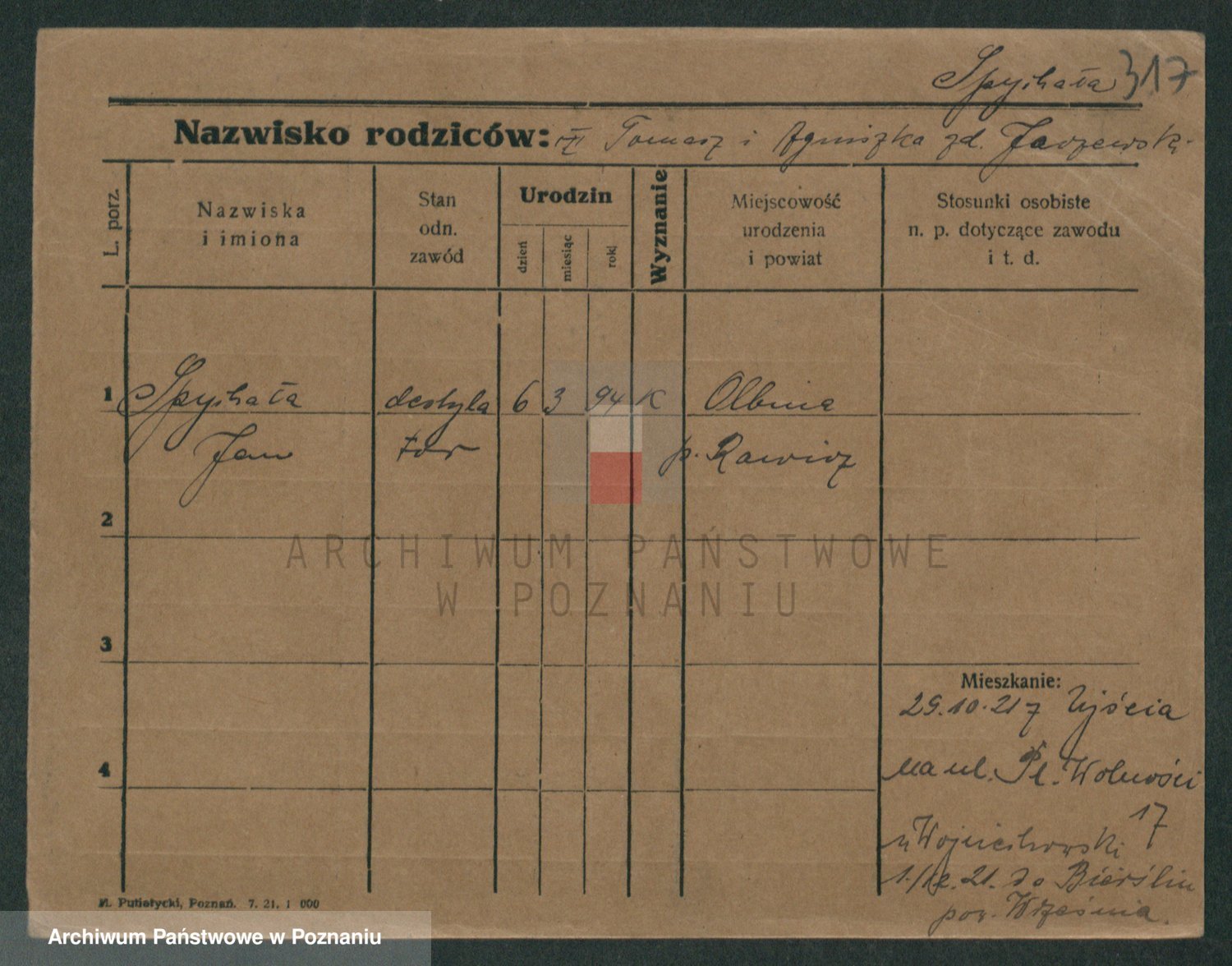 Podgląd karty osobowej dostępny jest po kliknięciu na nazwisko lub ikonkę karty. Można dokonywać powiększenia (ikony na górze) lub przechodzić między kolejnymi skanami (strzałki po bokach).