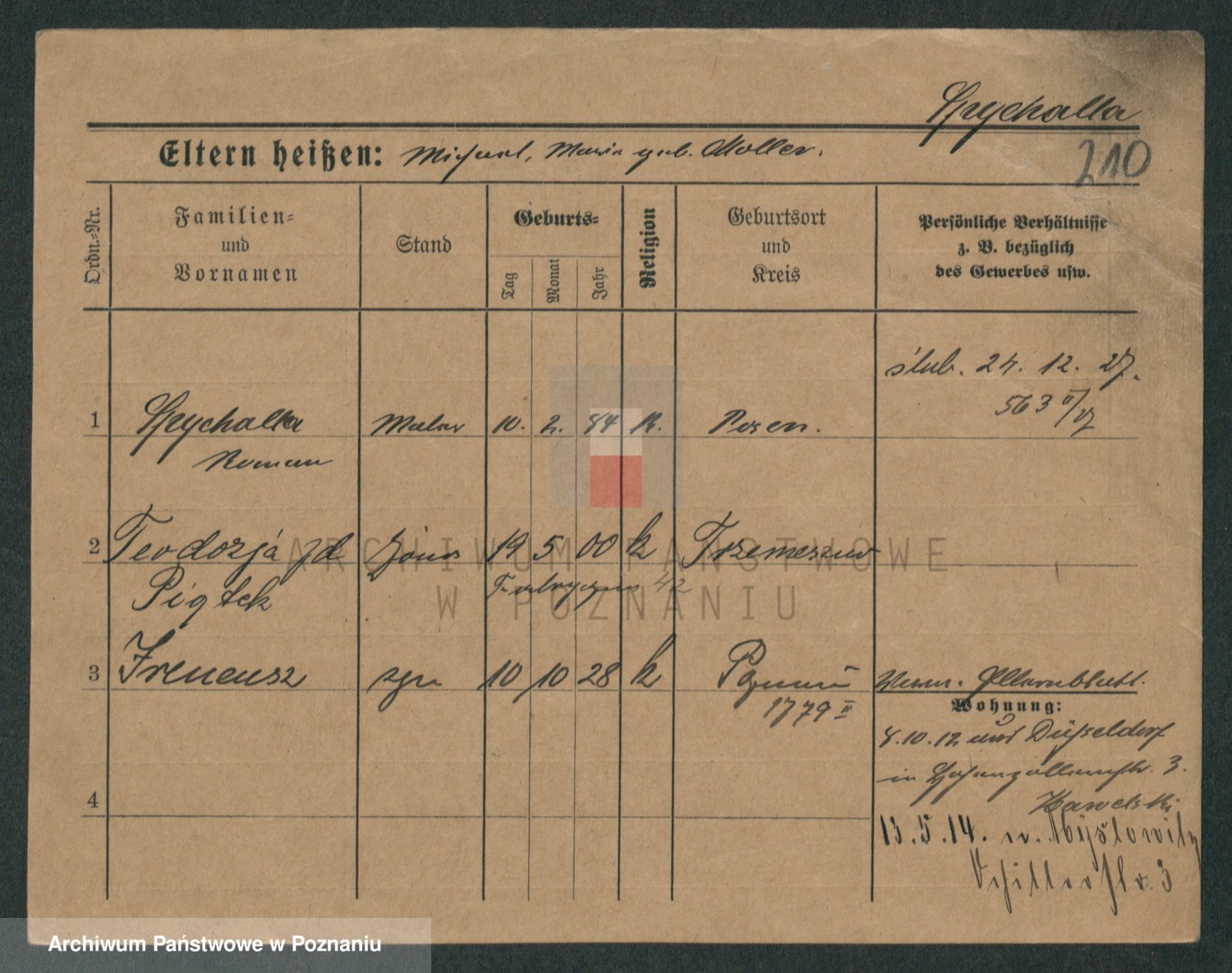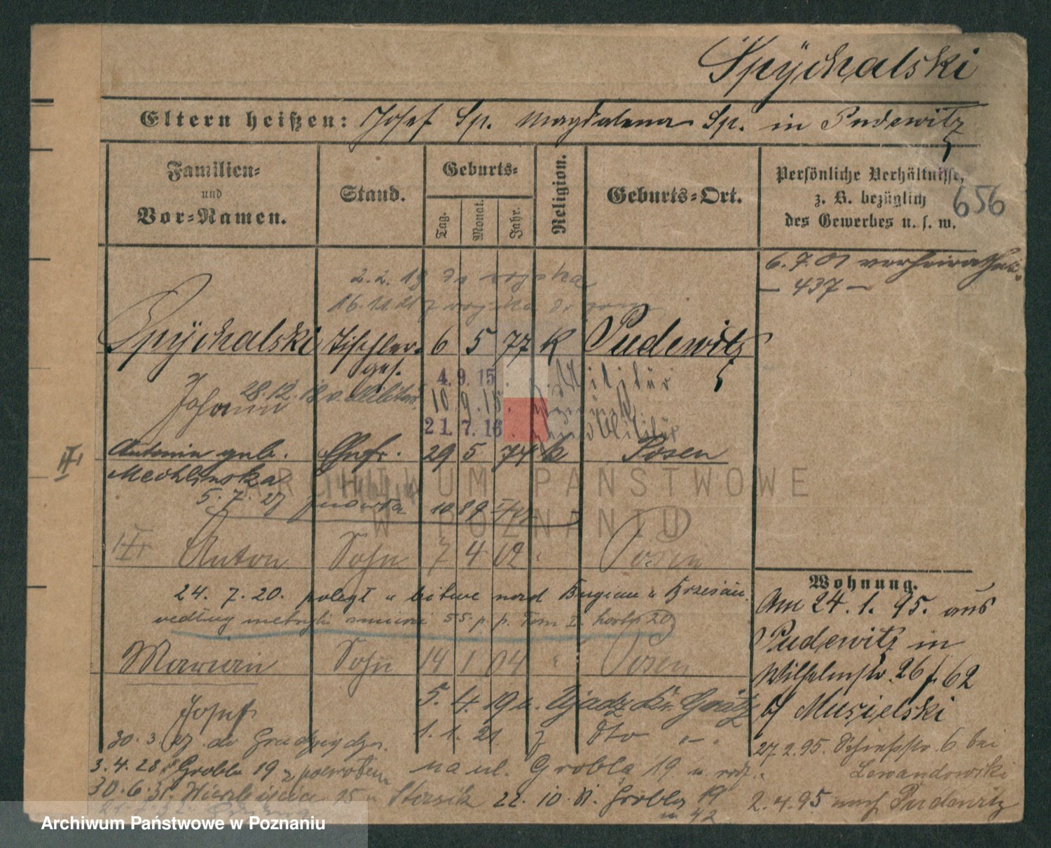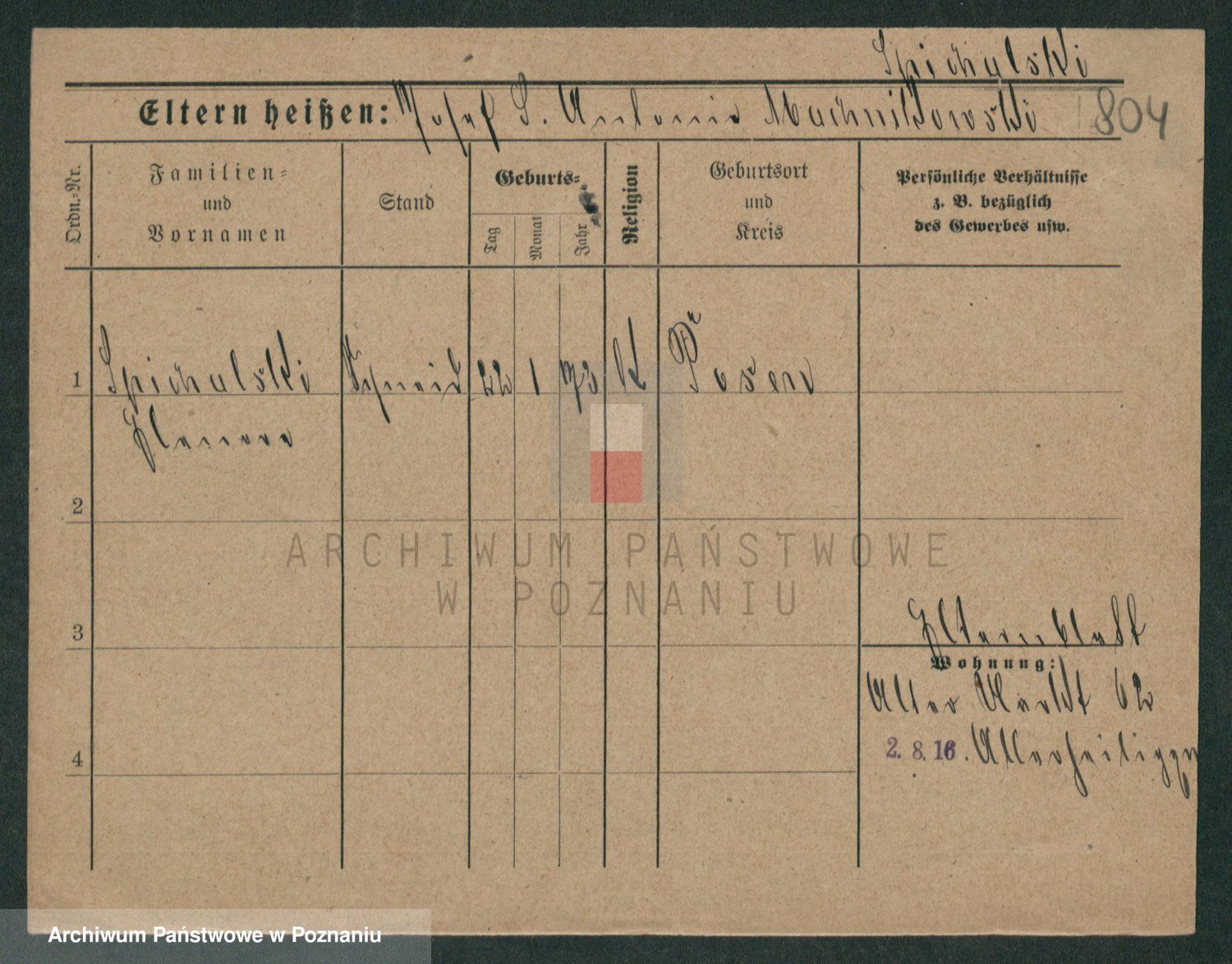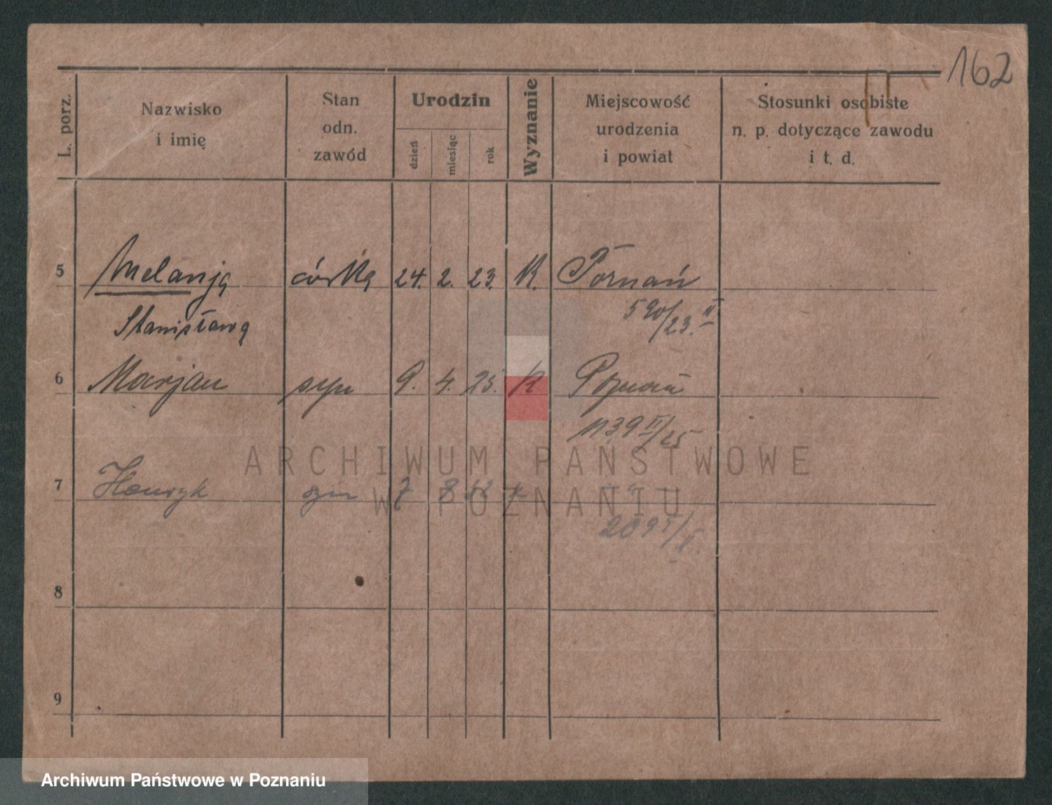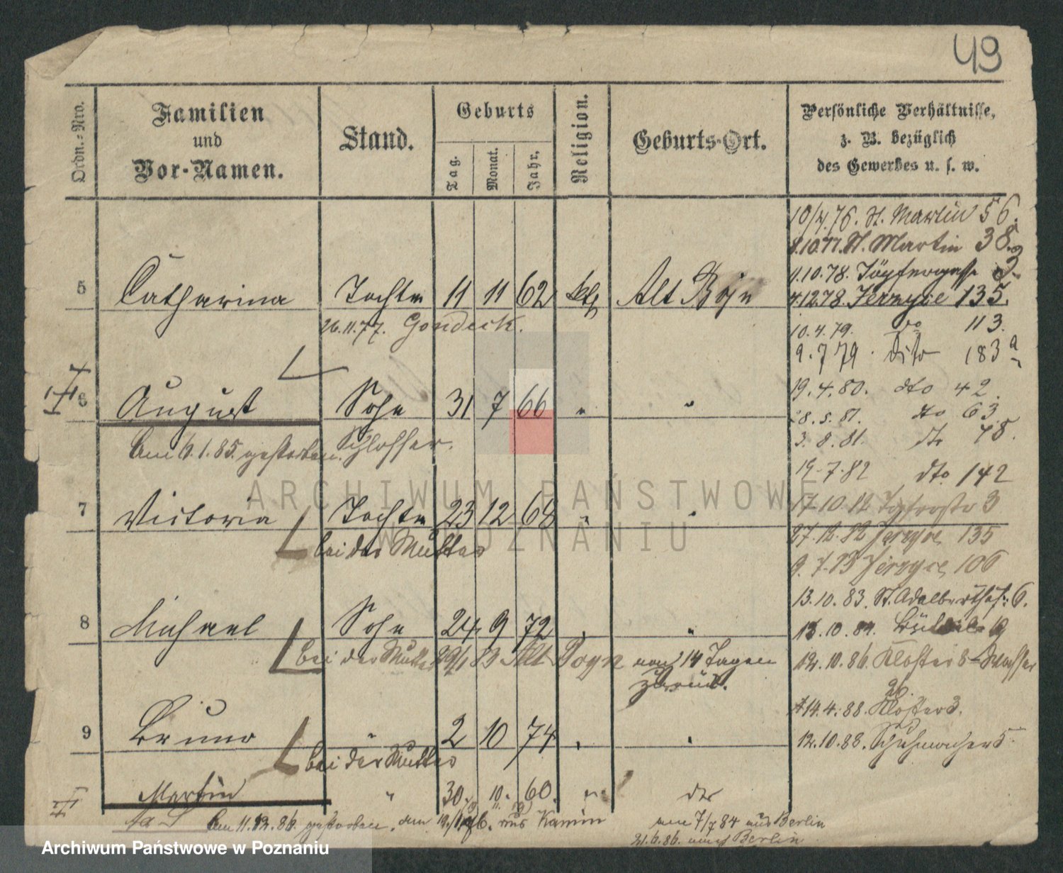 Podgląd karty osobowej dostępny jest po kliknięciu na nazwisko lub ikonkę karty. Można dokonywać powiększenia (ikony na górze) lub przechodzić między kolejnymi skanami (strzałki po bokach).