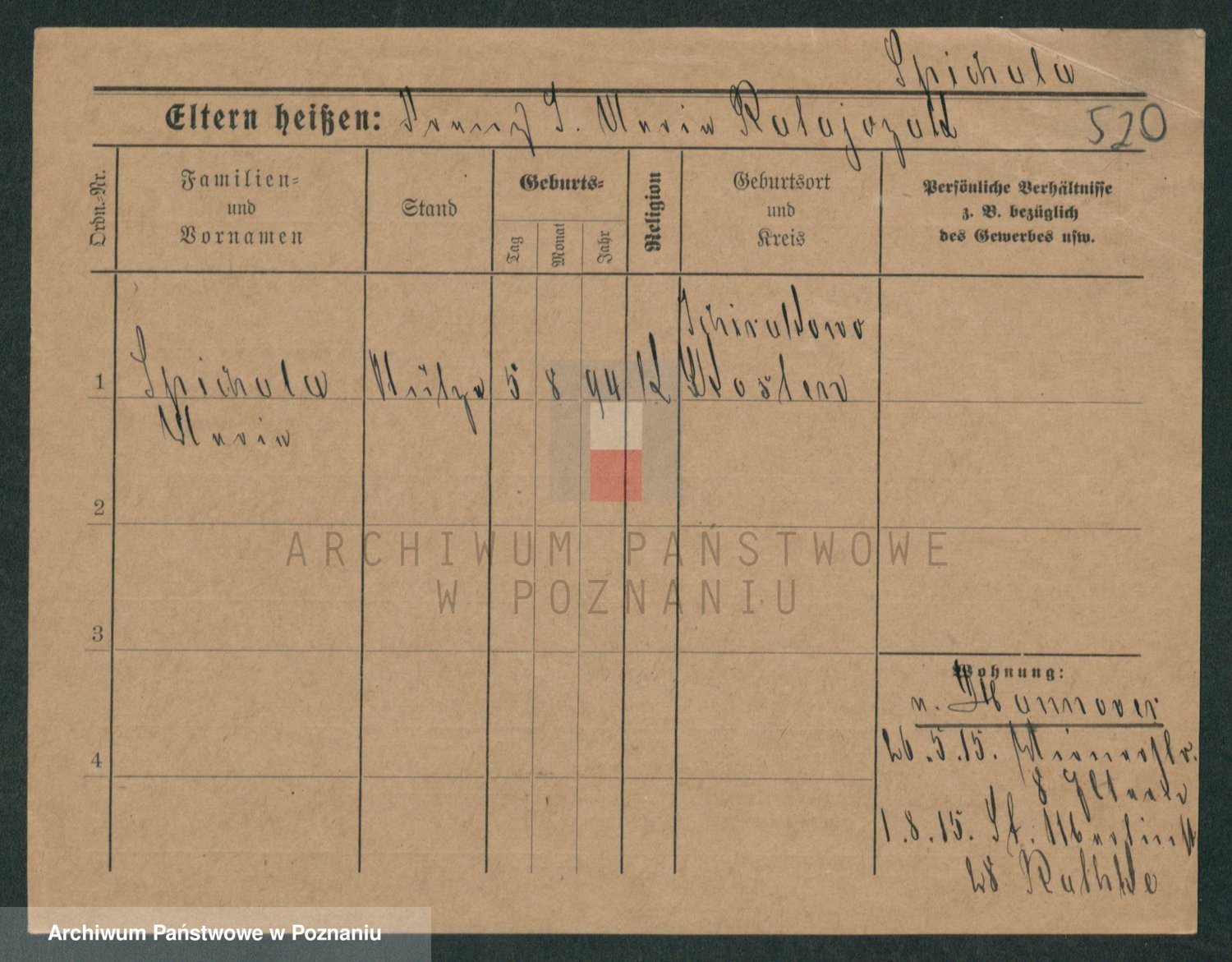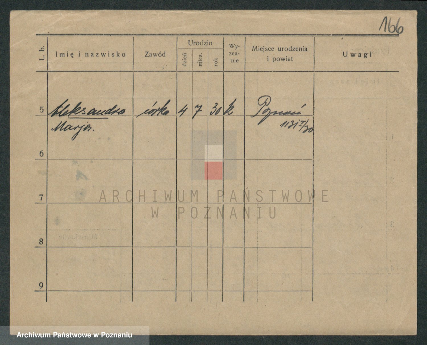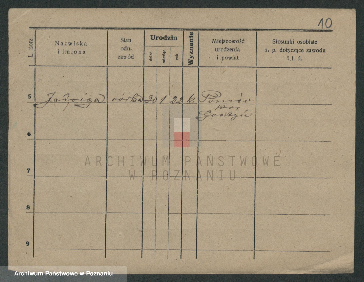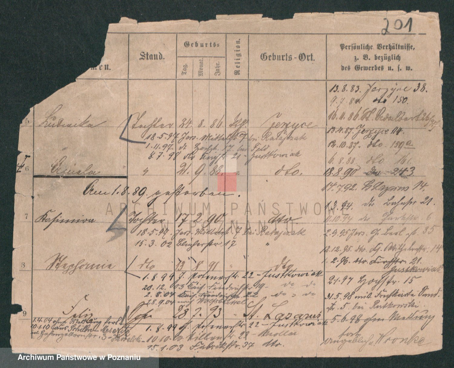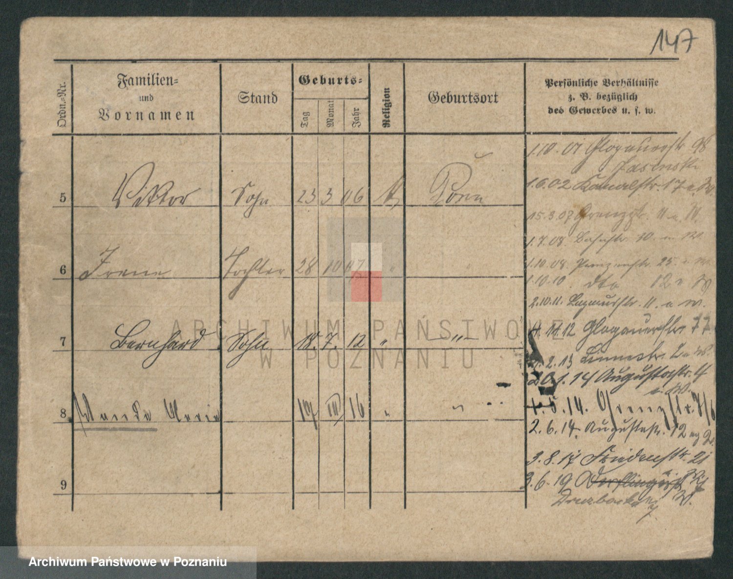 Podgląd karty osobowej dostępny jest po kliknięciu na nazwisko lub ikonkę karty. Można dokonywać powiększenia (ikony na górze) lub przechodzić między kolejnymi skanami (strzałki po bokach).