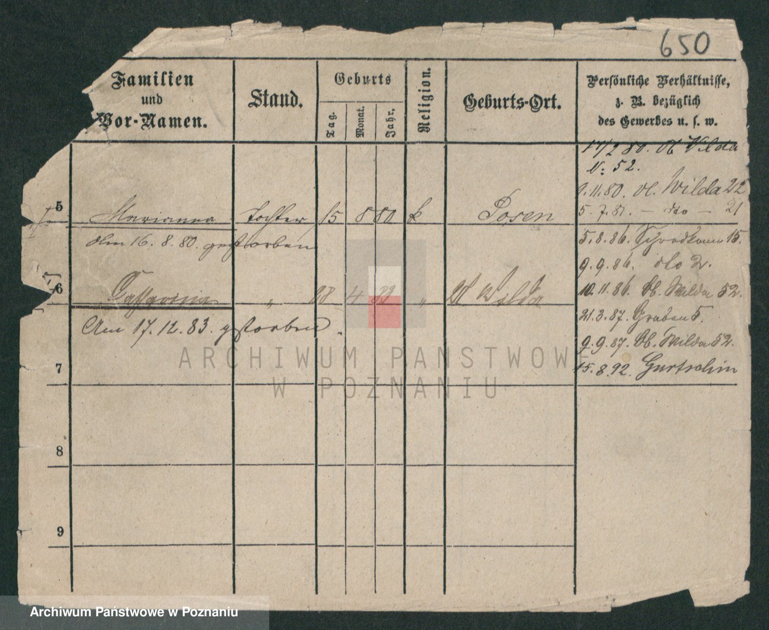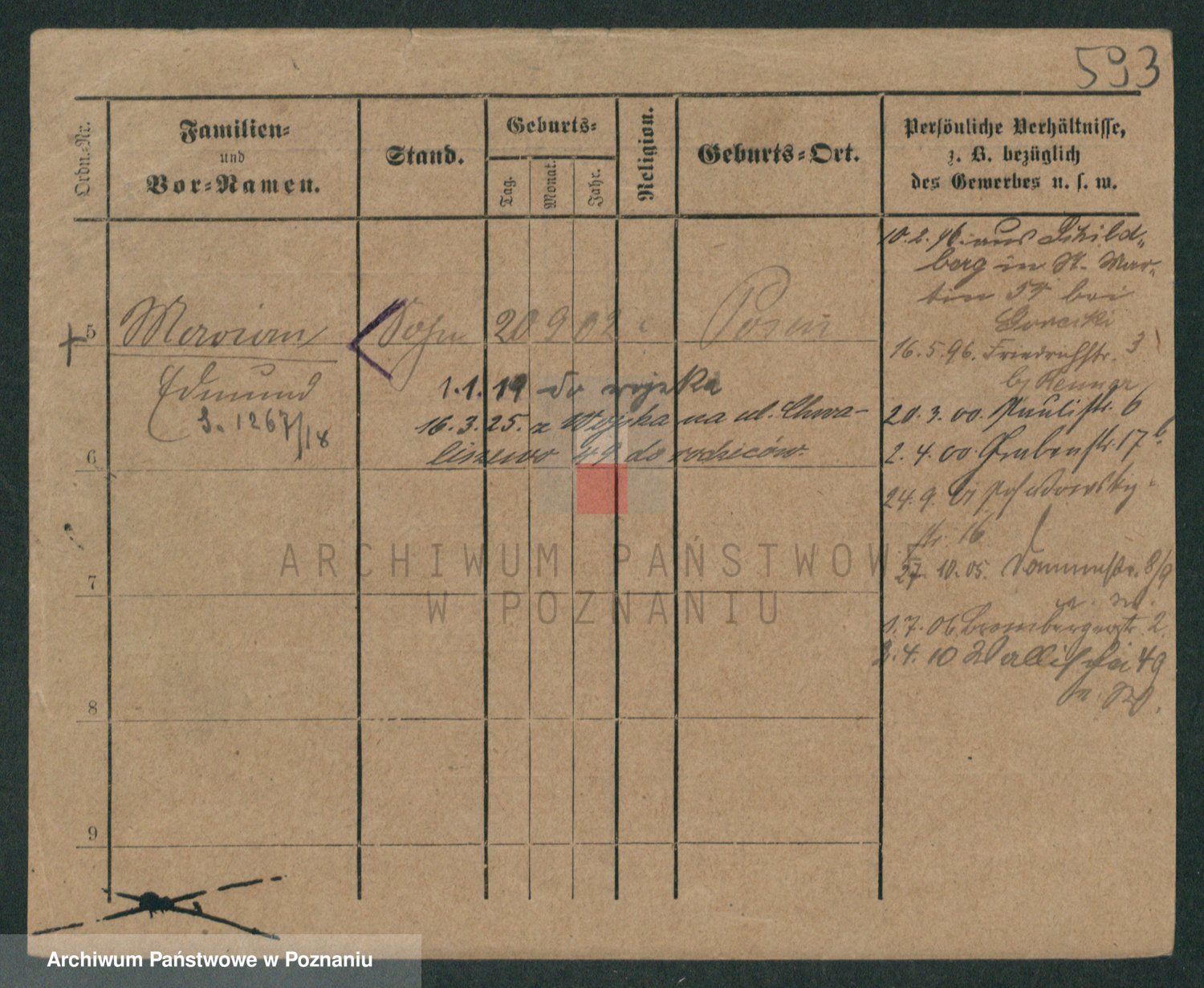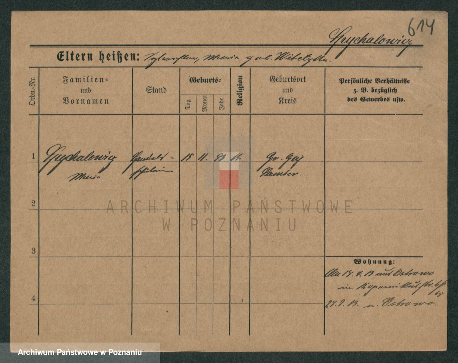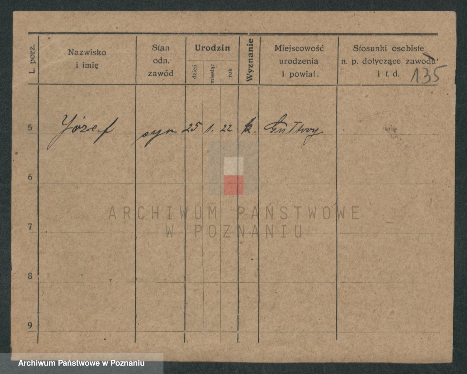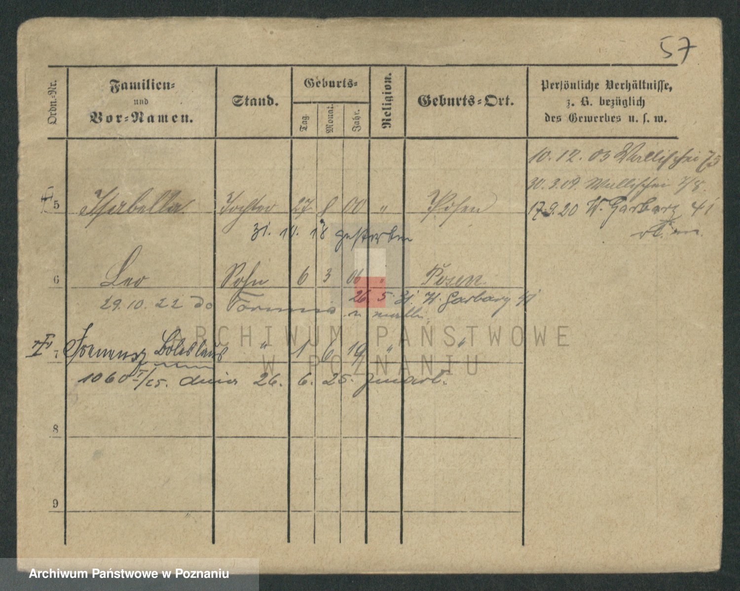 Podgląd karty osobowej dostępny jest po kliknięciu na nazwisko lub ikonkę karty. Można dokonywać powiększenia (ikony na górze) lub przechodzić między kolejnymi skanami (strzałki po bokach).