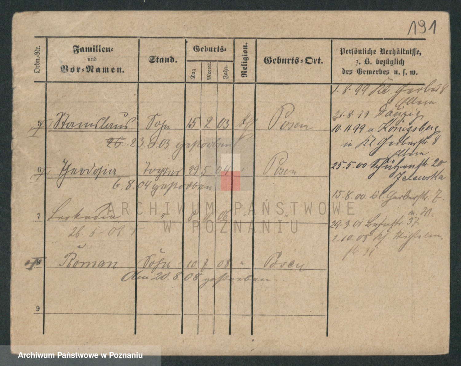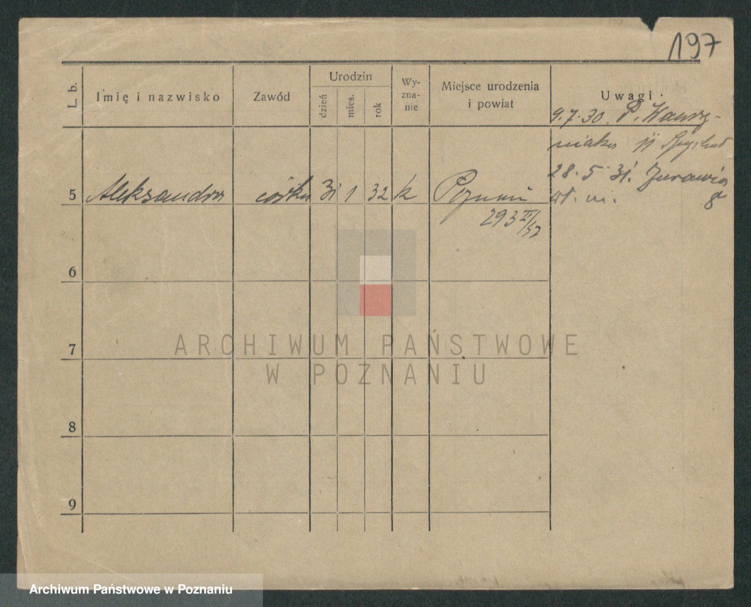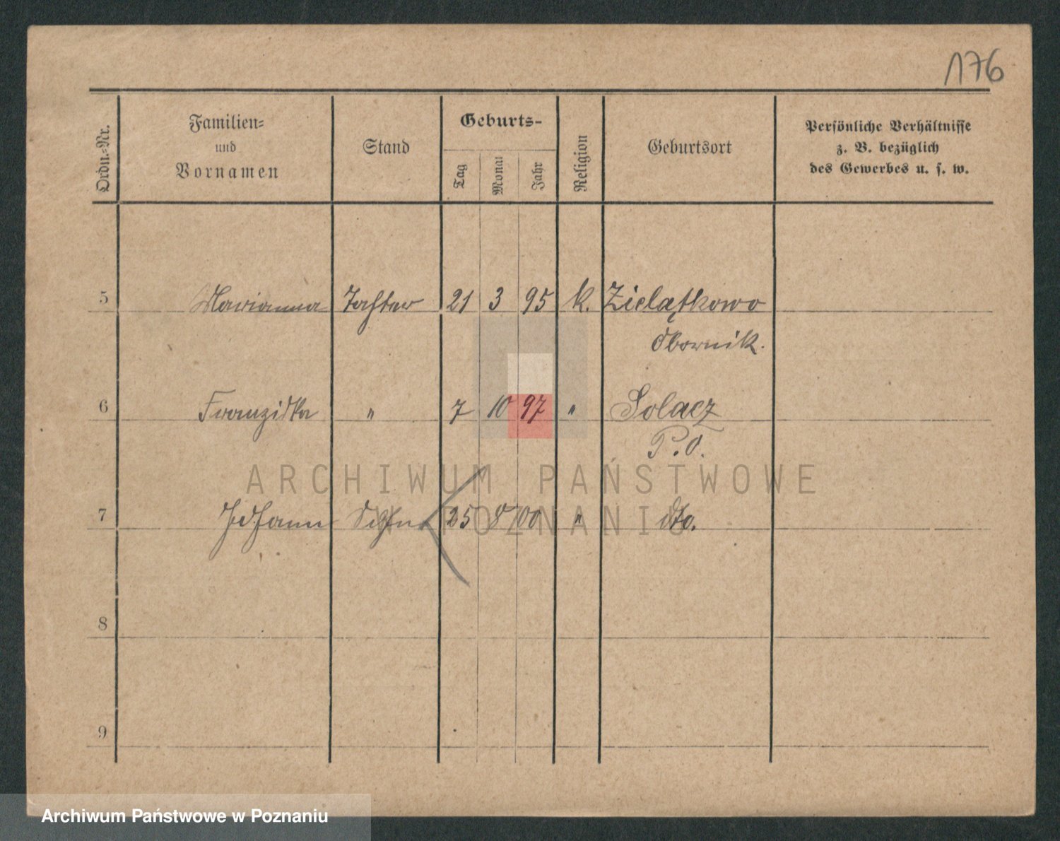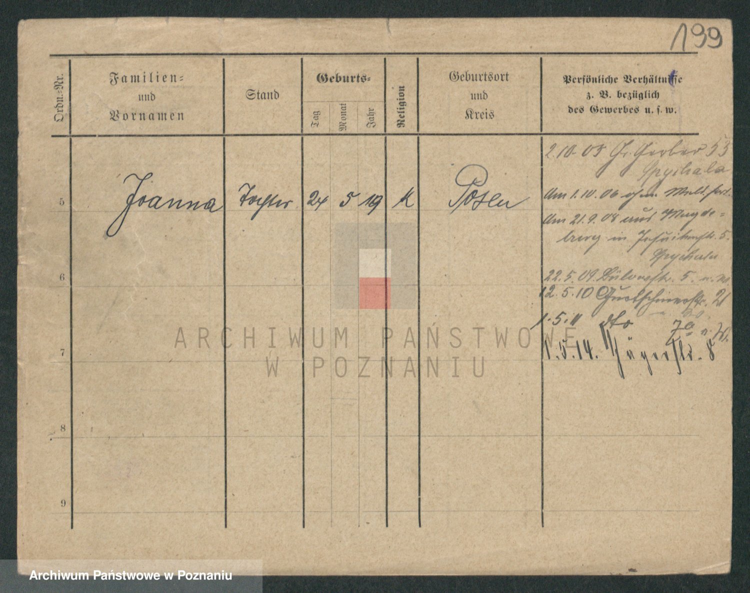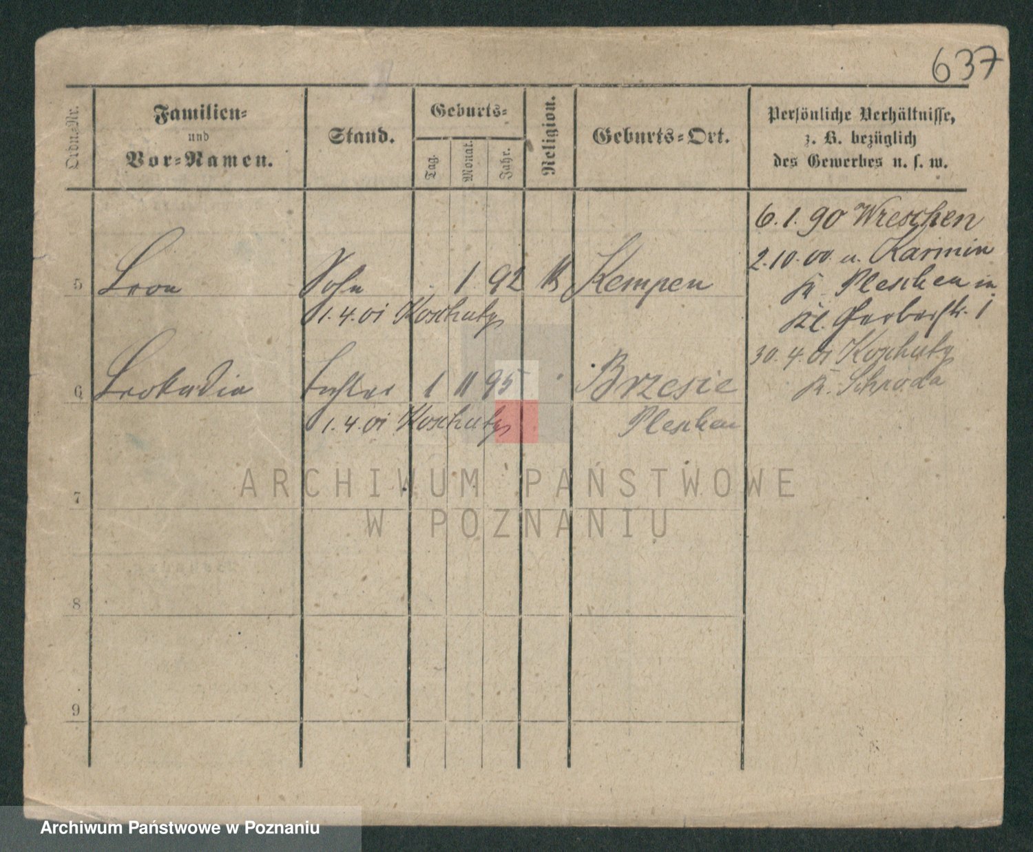 Podgląd karty osobowej dostępny jest po kliknięciu na nazwisko lub ikonkę karty. Można dokonywać powiększenia (ikony na górze) lub przechodzić między kolejnymi skanami (strzałki po bokach).