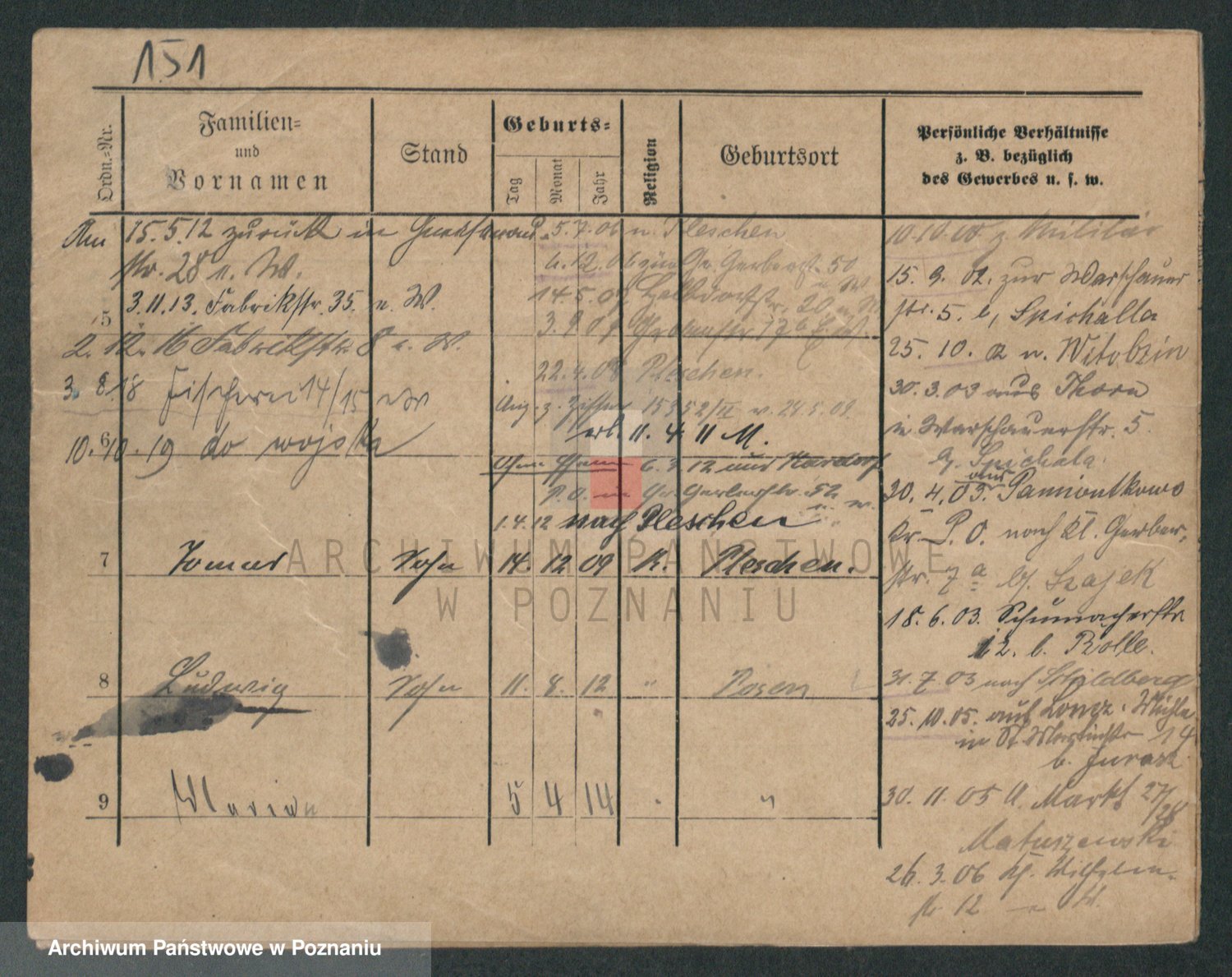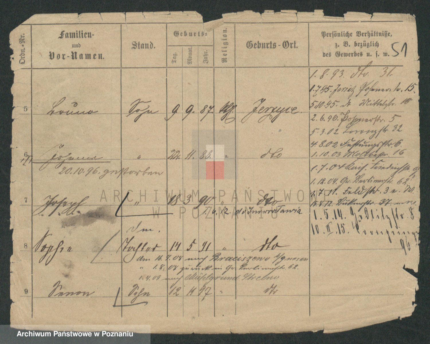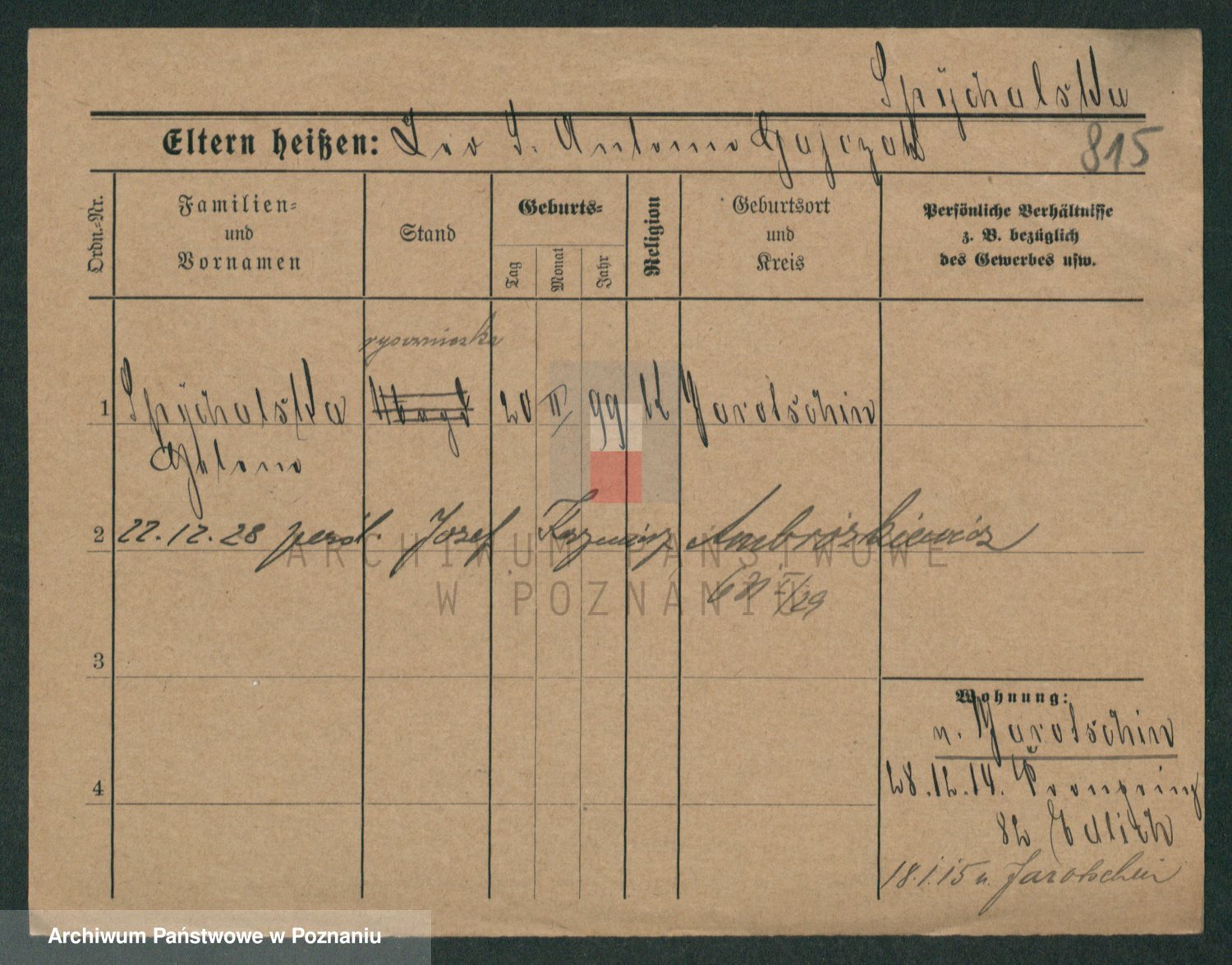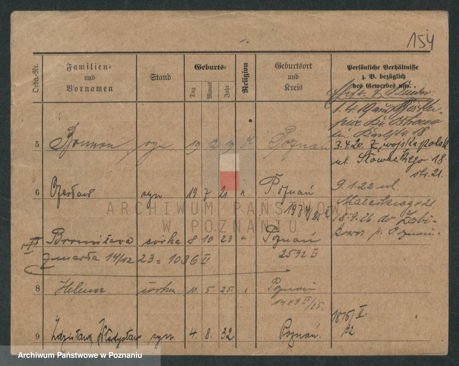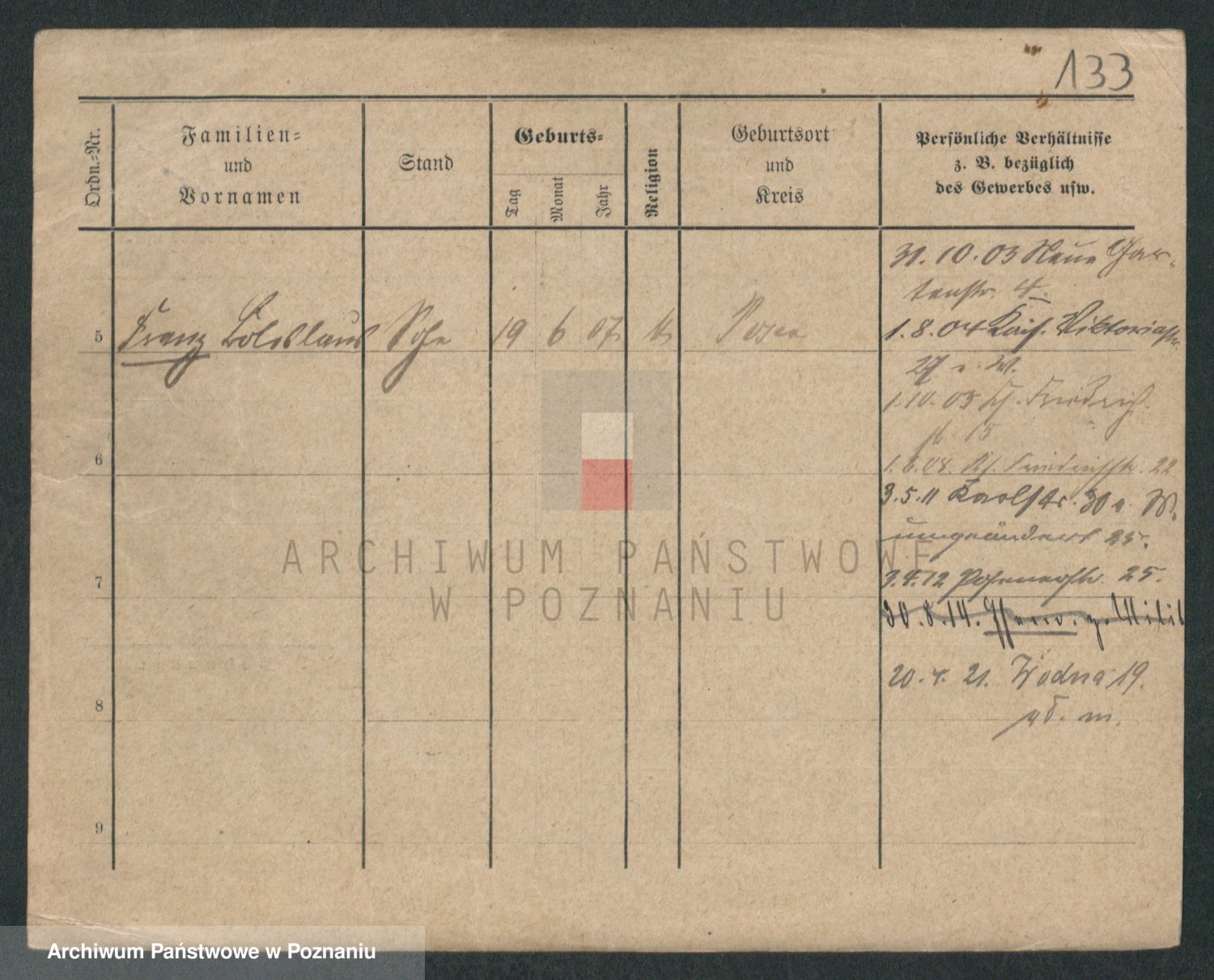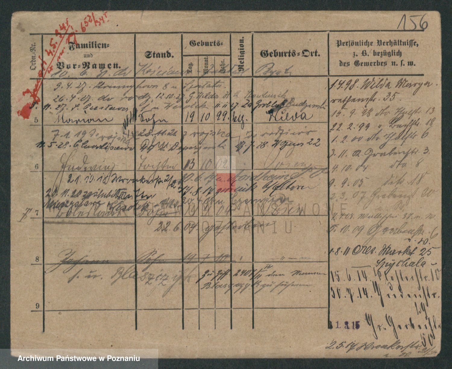 Podgląd karty osobowej dostępny jest po kliknięciu na nazwisko lub ikonkę karty. Można dokonywać powiększenia (ikony na górze) lub przechodzić między kolejnymi skanami (strzałki po bokach).