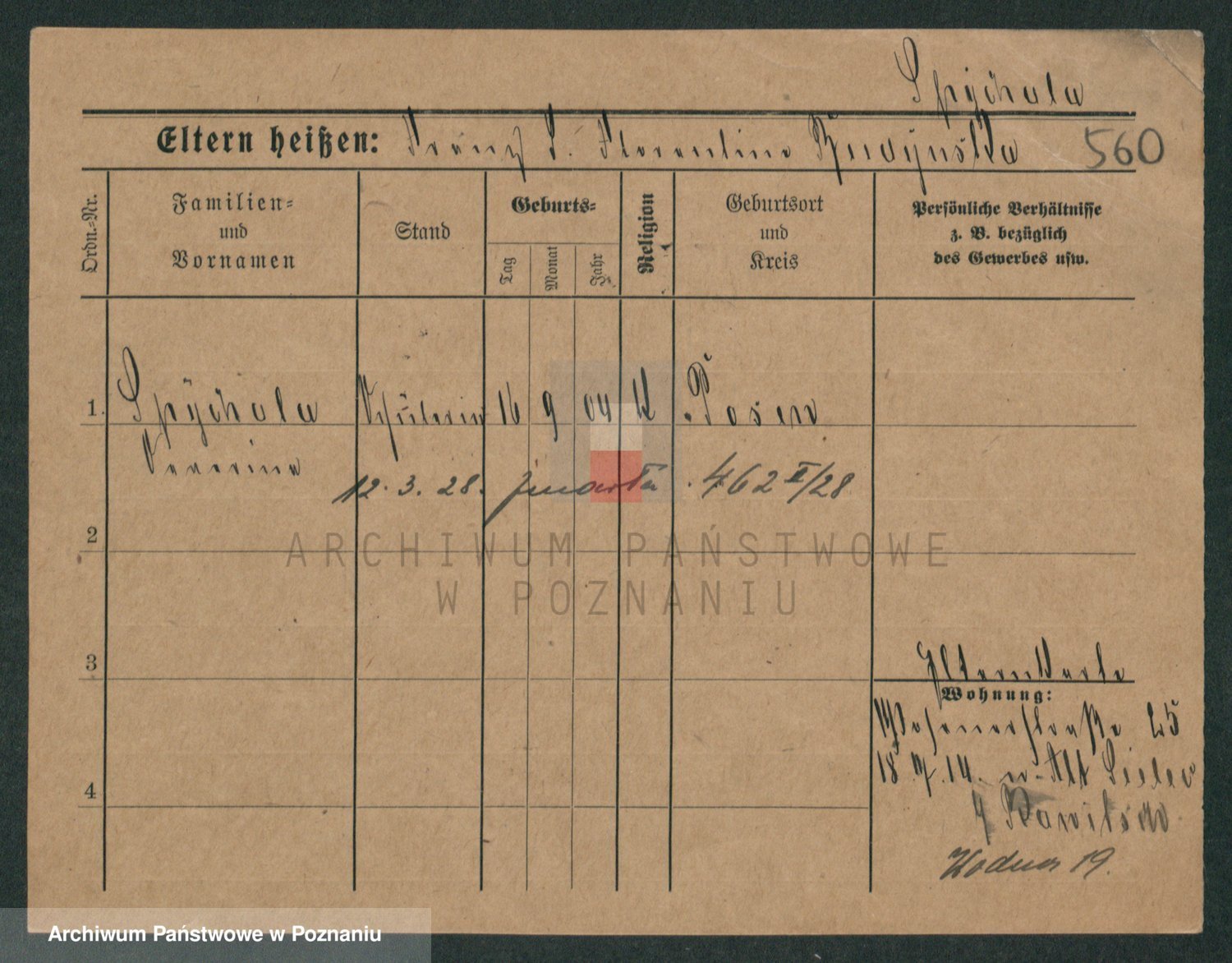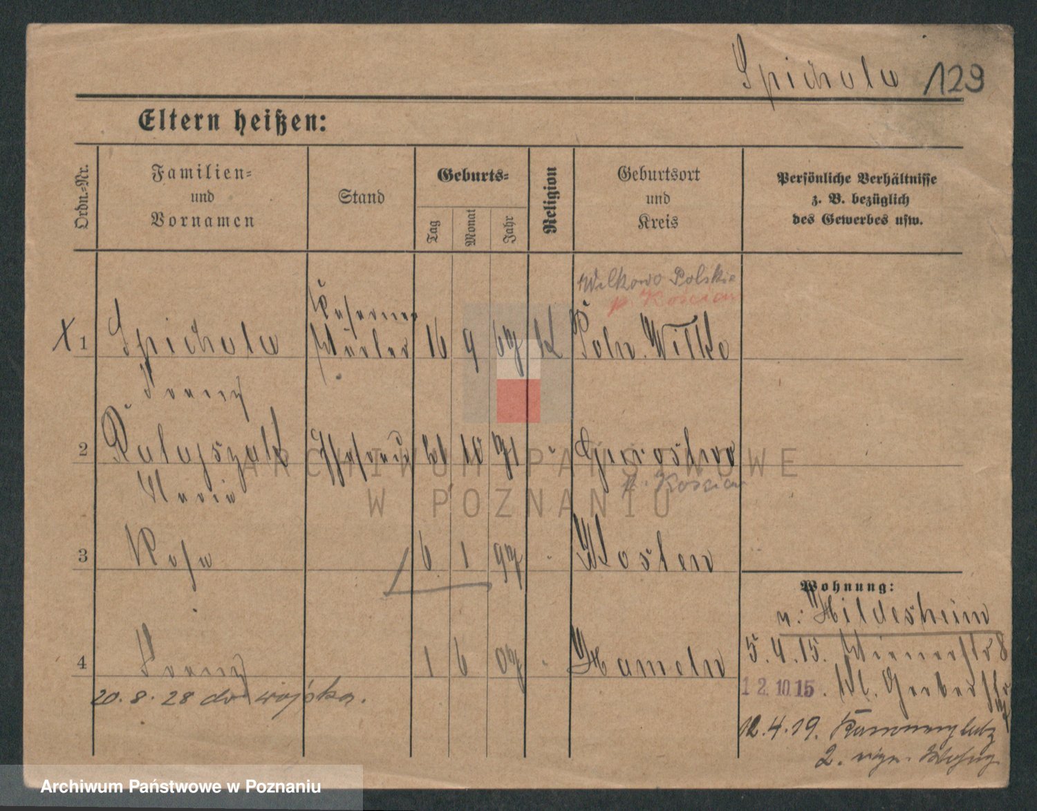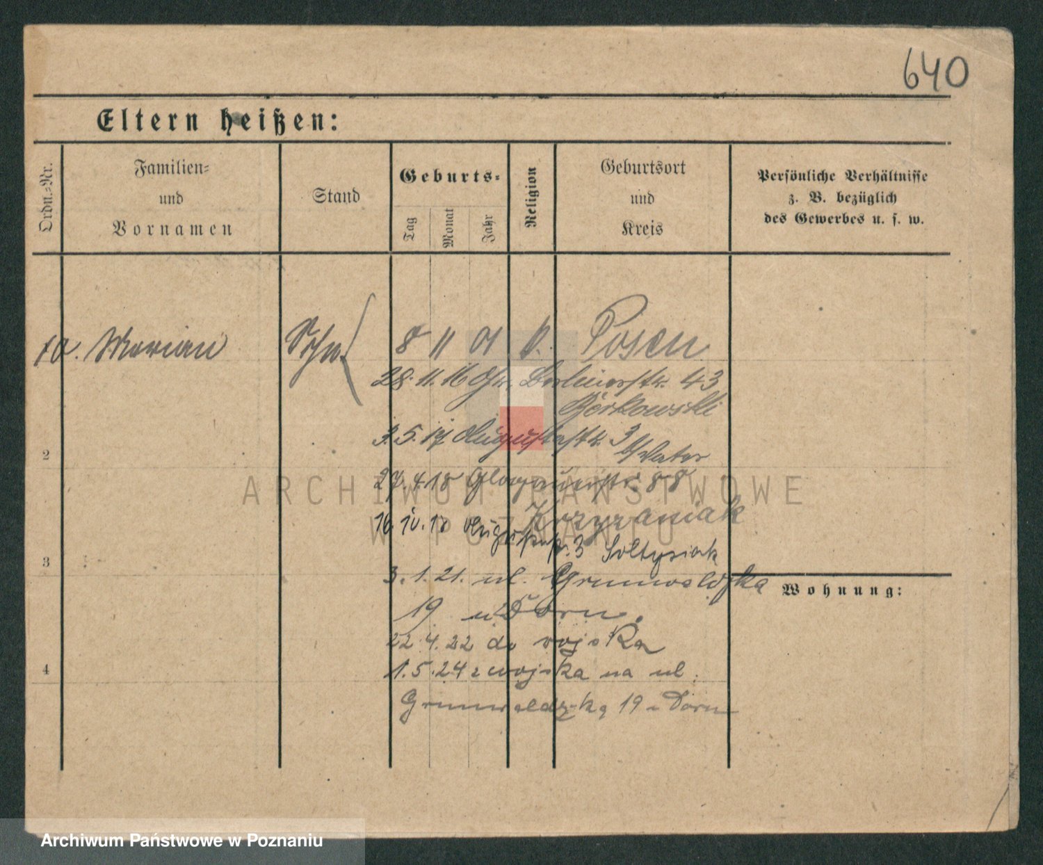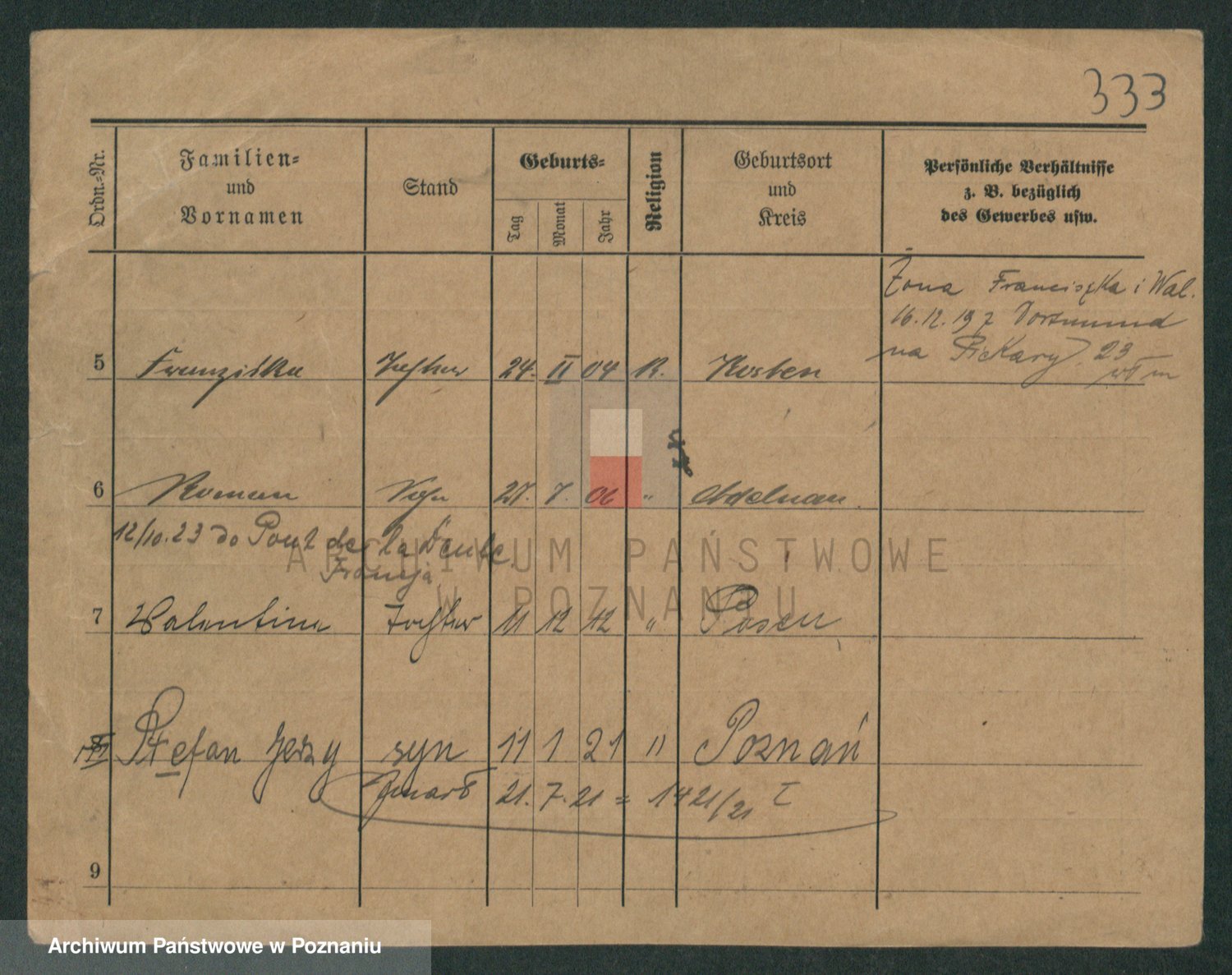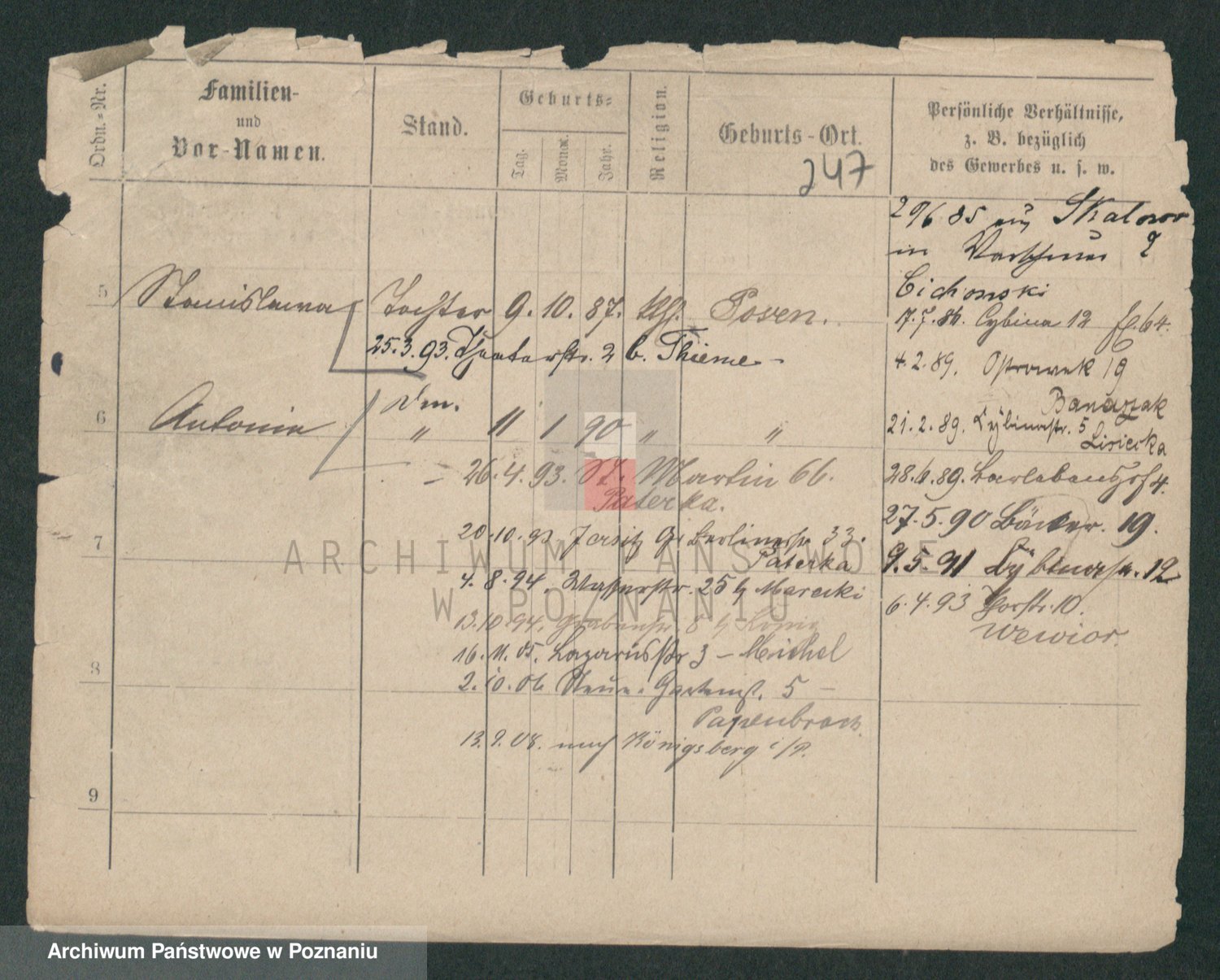 Podgląd karty osobowej dostępny jest po kliknięciu na nazwisko lub ikonkę karty. Można dokonywać powiększenia (ikony na górze) lub przechodzić między kolejnymi skanami (strzałki po bokach).
