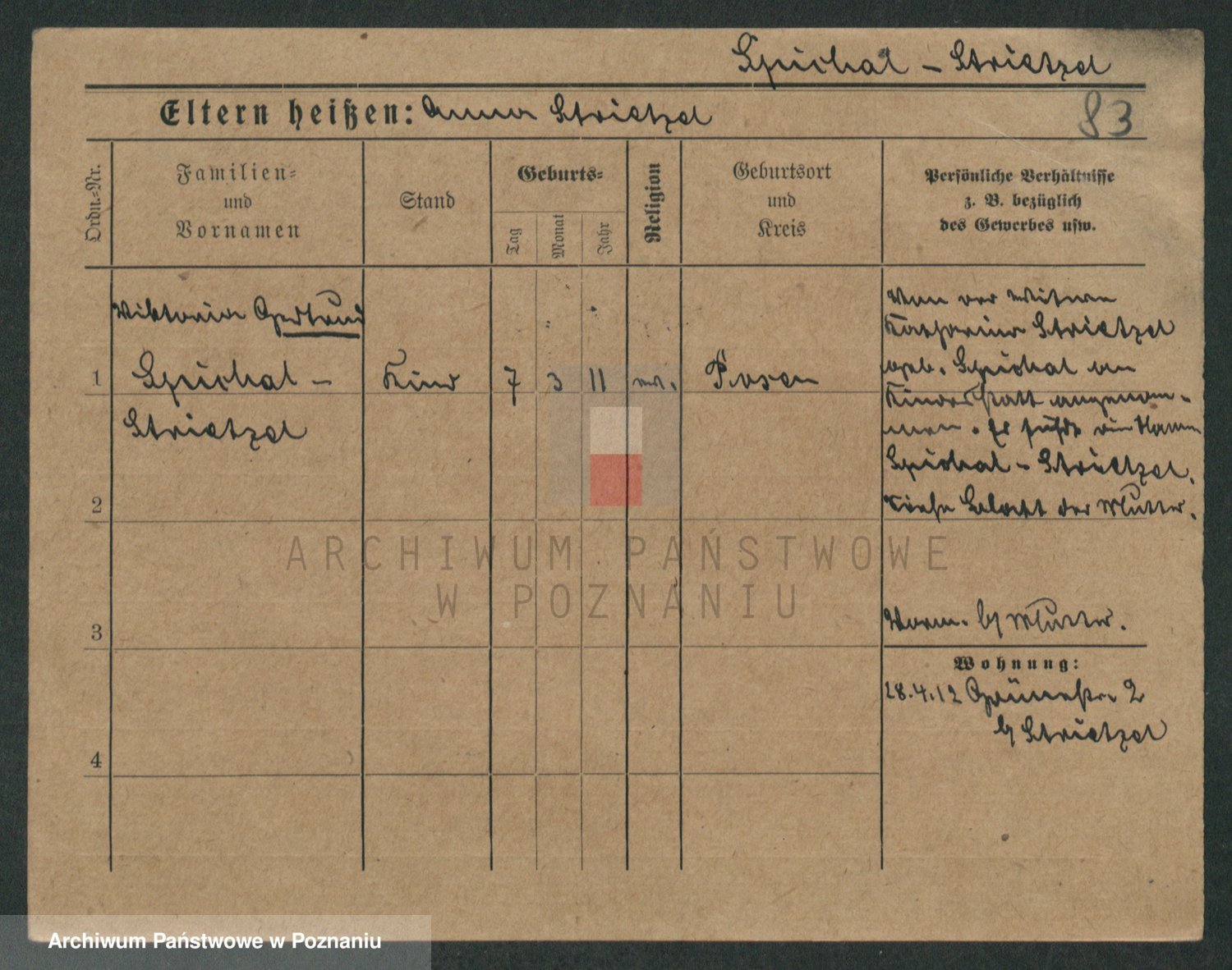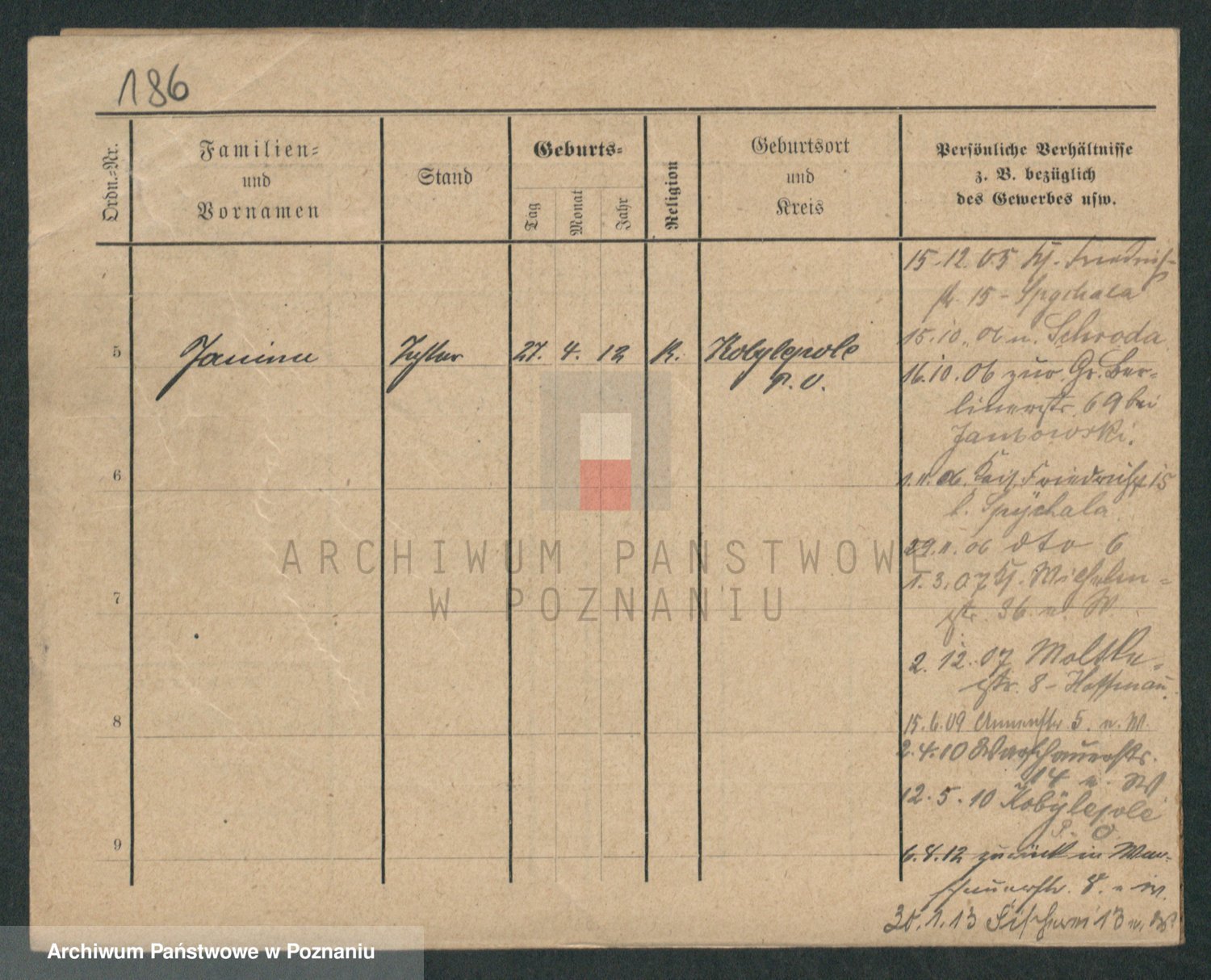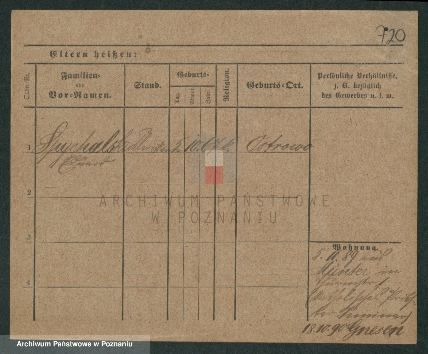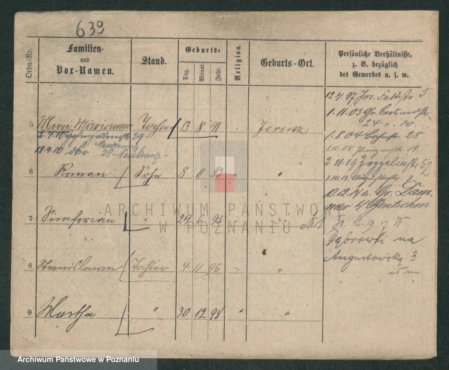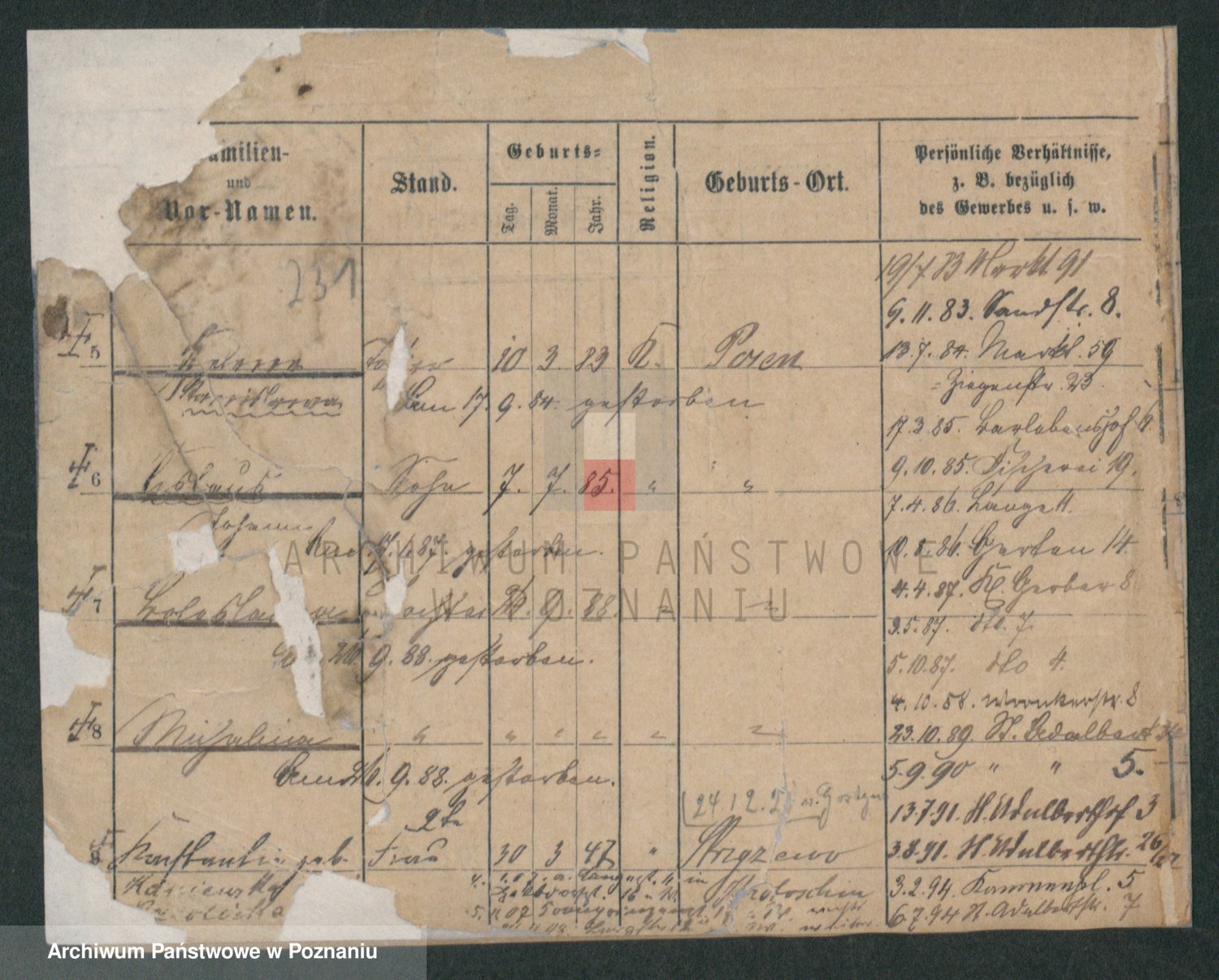 Podgląd karty osobowej dostępny jest po kliknięciu na nazwisko lub ikonkę karty. Można dokonywać powiększenia (ikony na górze) lub przechodzić między kolejnymi skanami (strzałki po bokach).