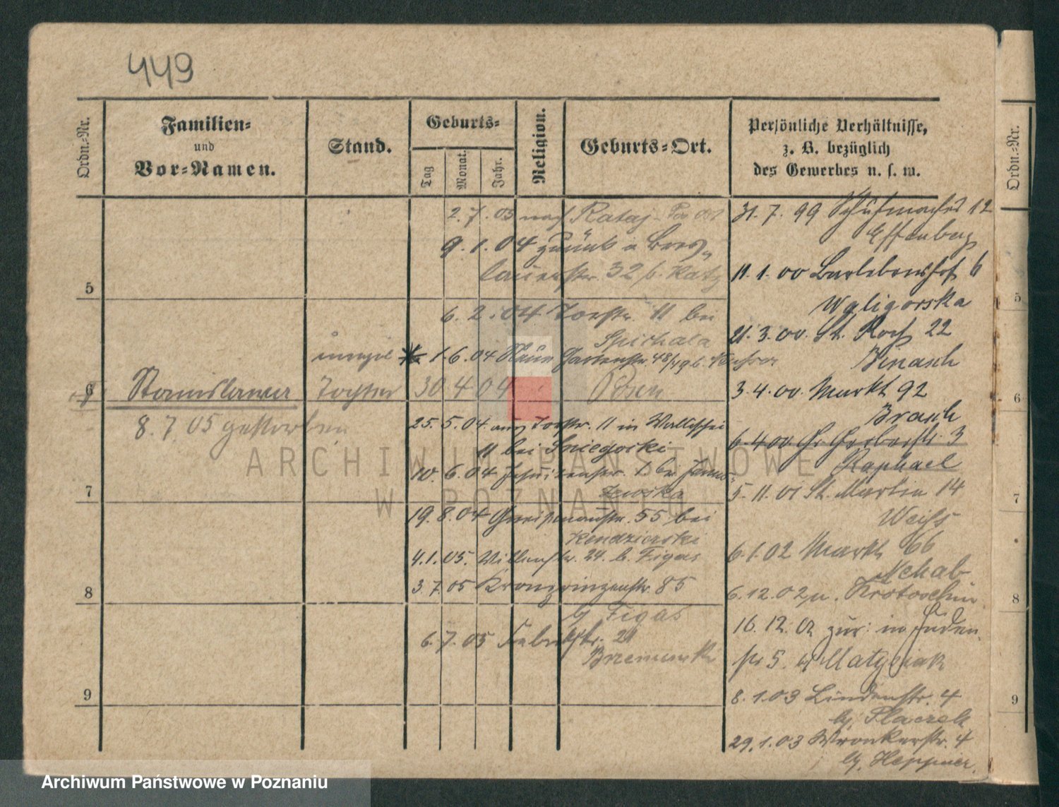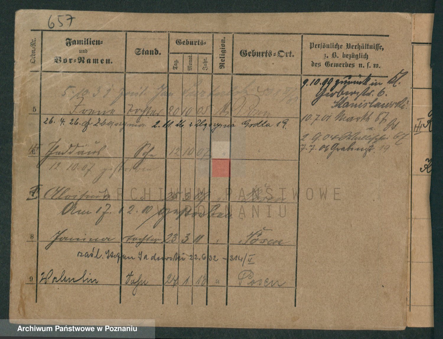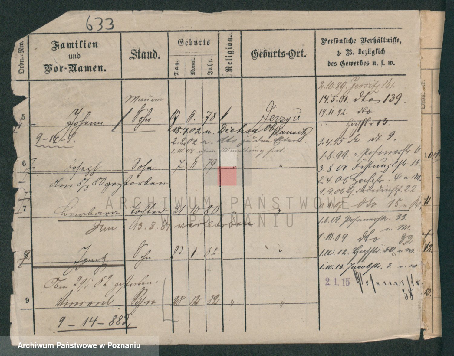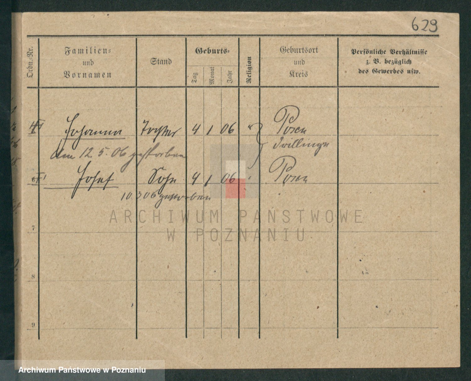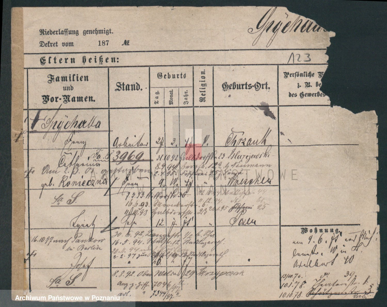 Podgląd karty osobowej dostępny jest po kliknięciu na nazwisko lub ikonkę karty. Można dokonywać powiększenia (ikony na górze) lub przechodzić między kolejnymi skanami (strzałki po bokach).