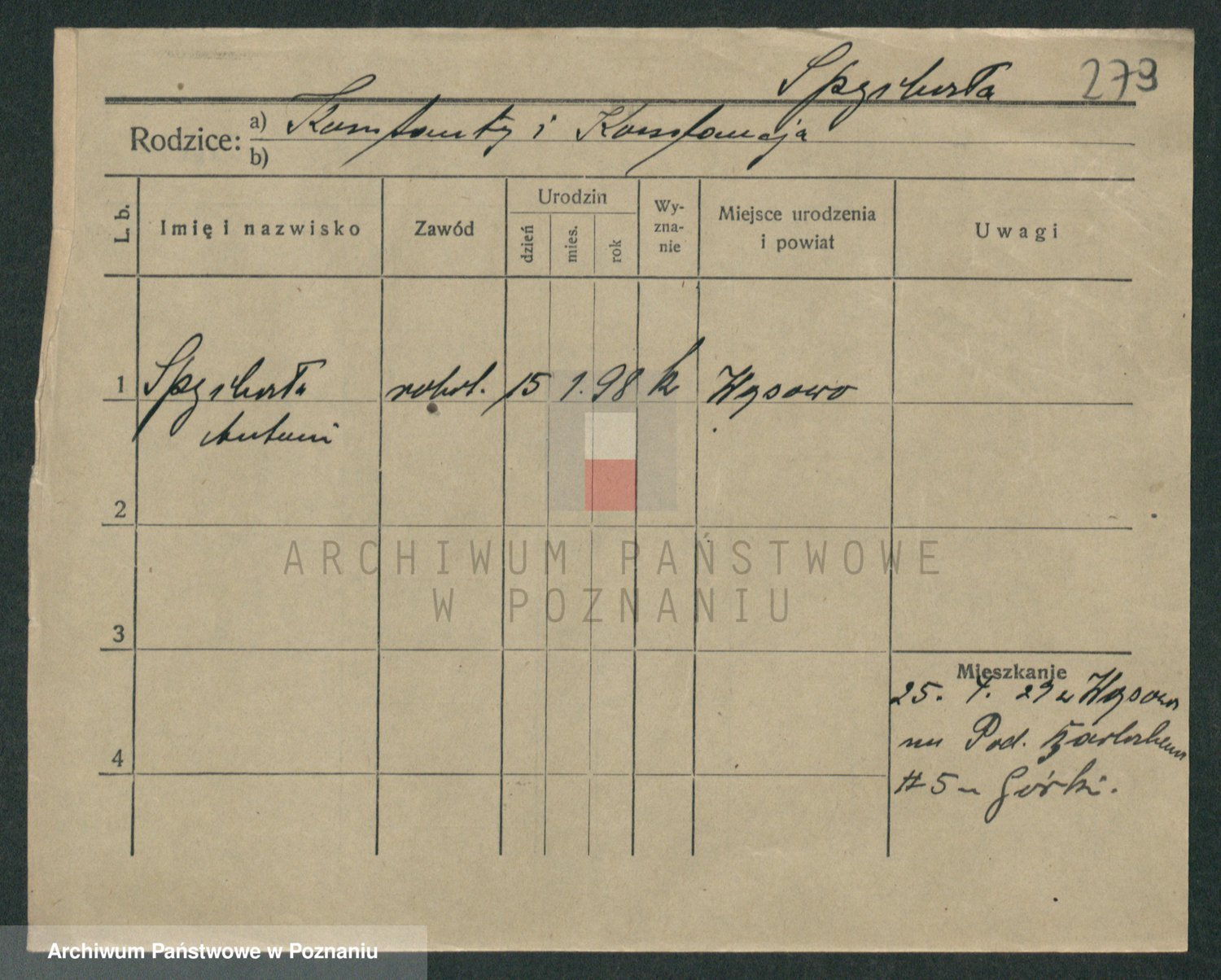 Spÿra z.d. Lÿsinska, Wladislawa