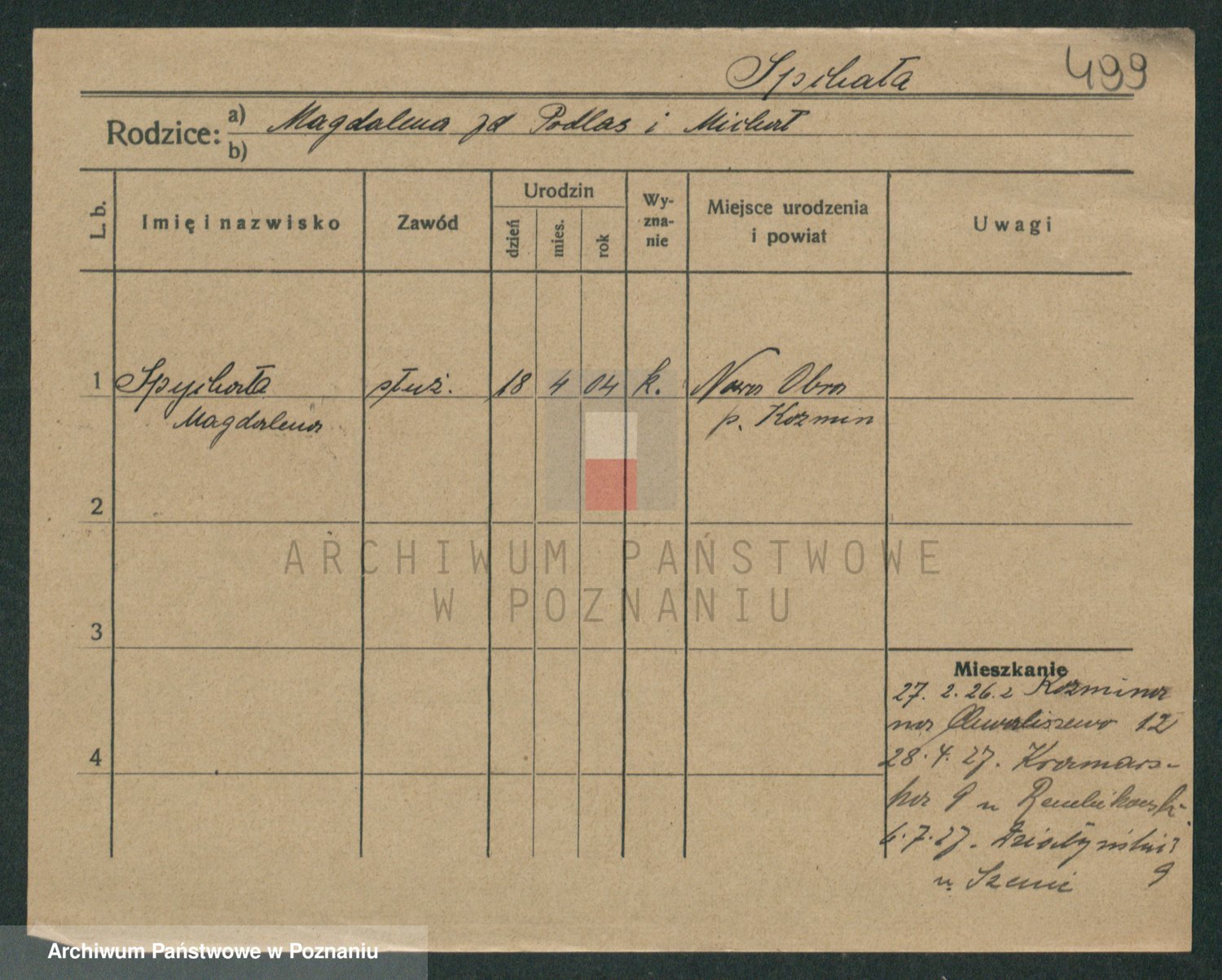 Spychaj z.d. Sobczynska, Kazmiera