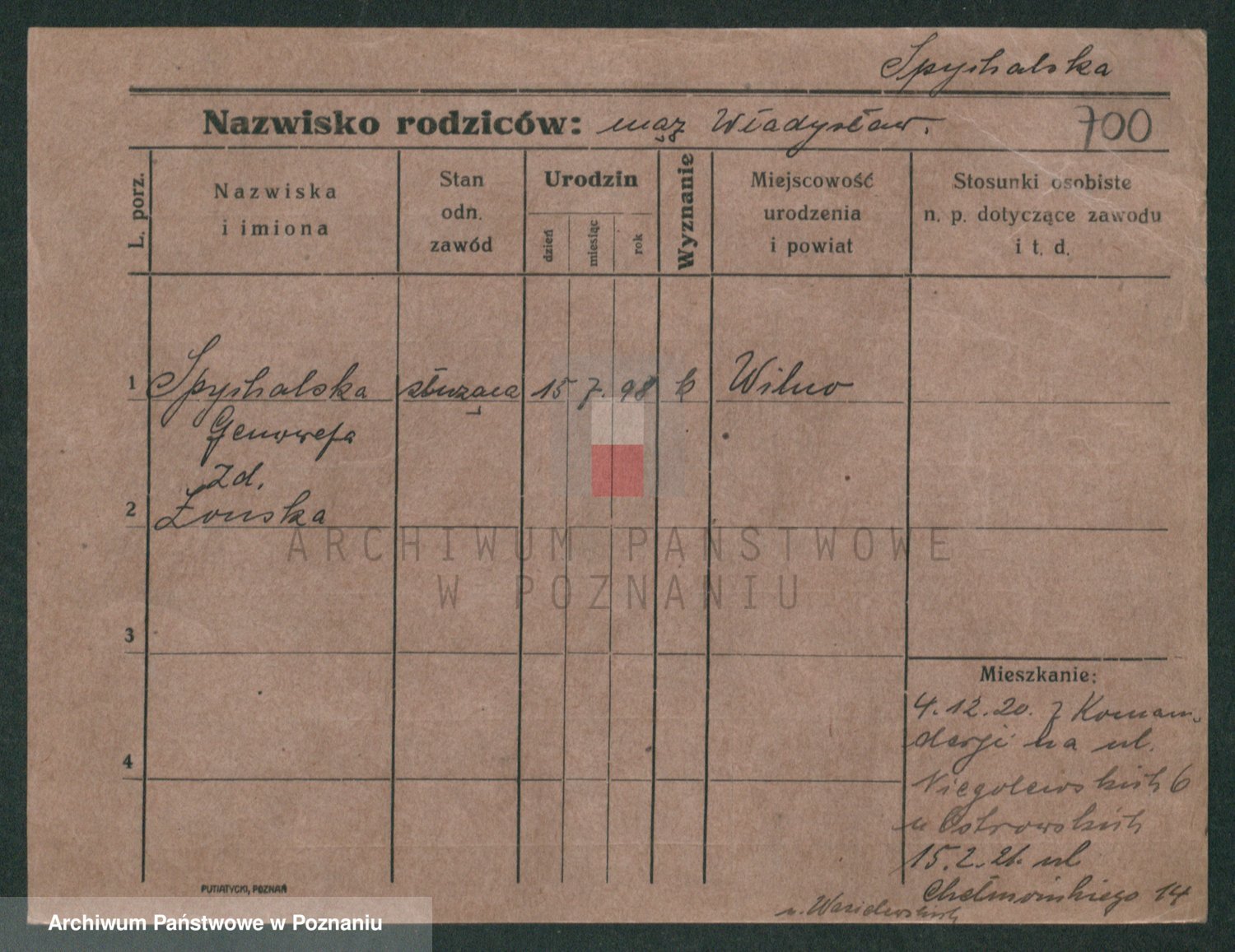 Spychal z.d. Woryma, Wladislawa