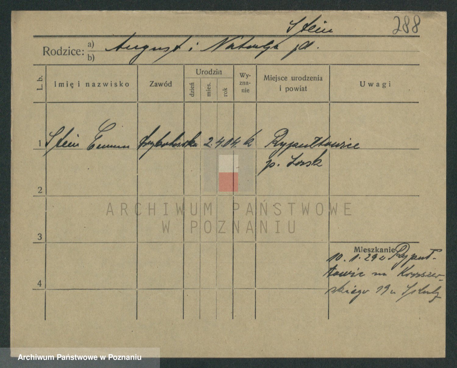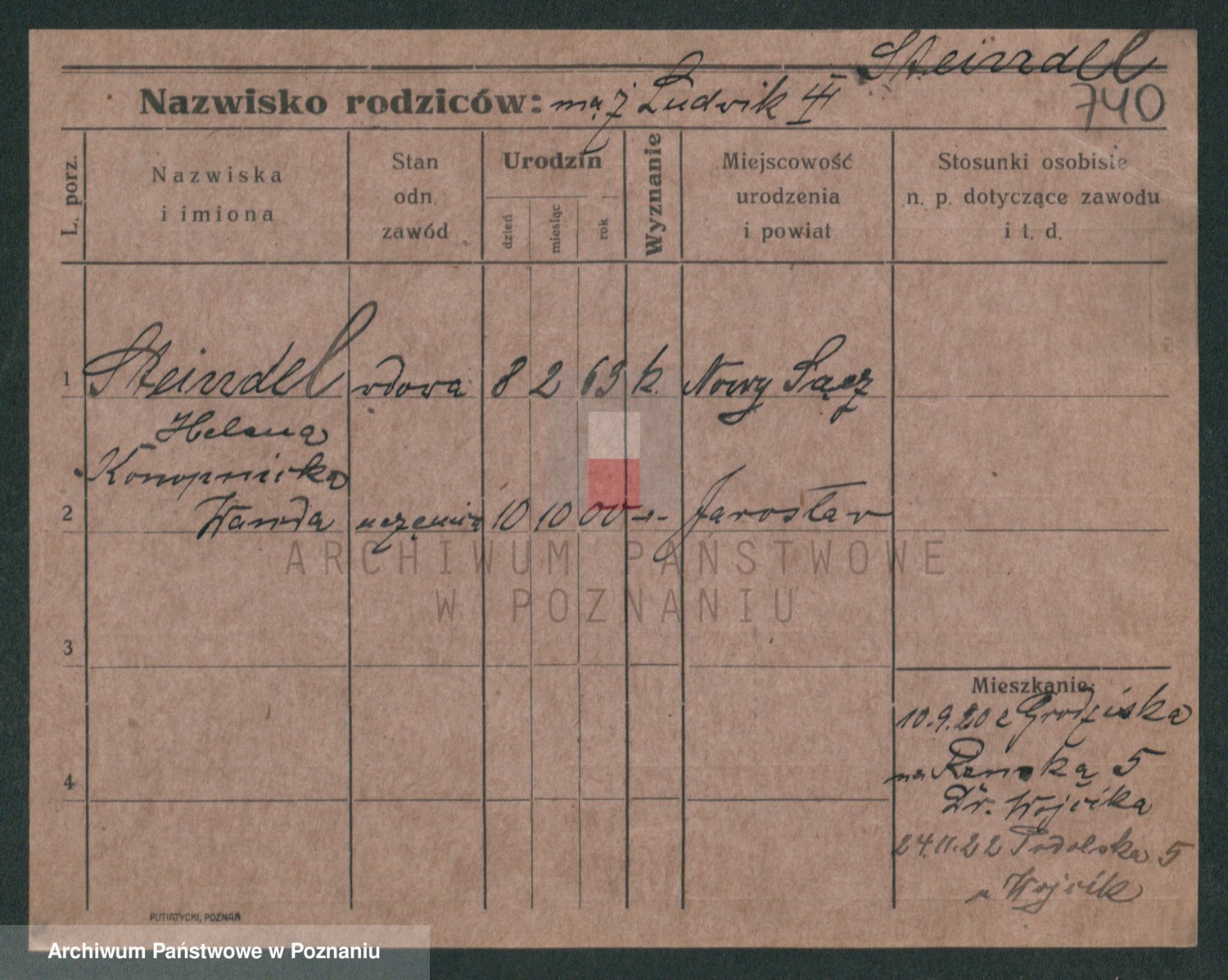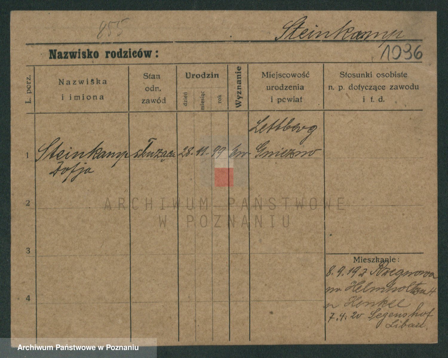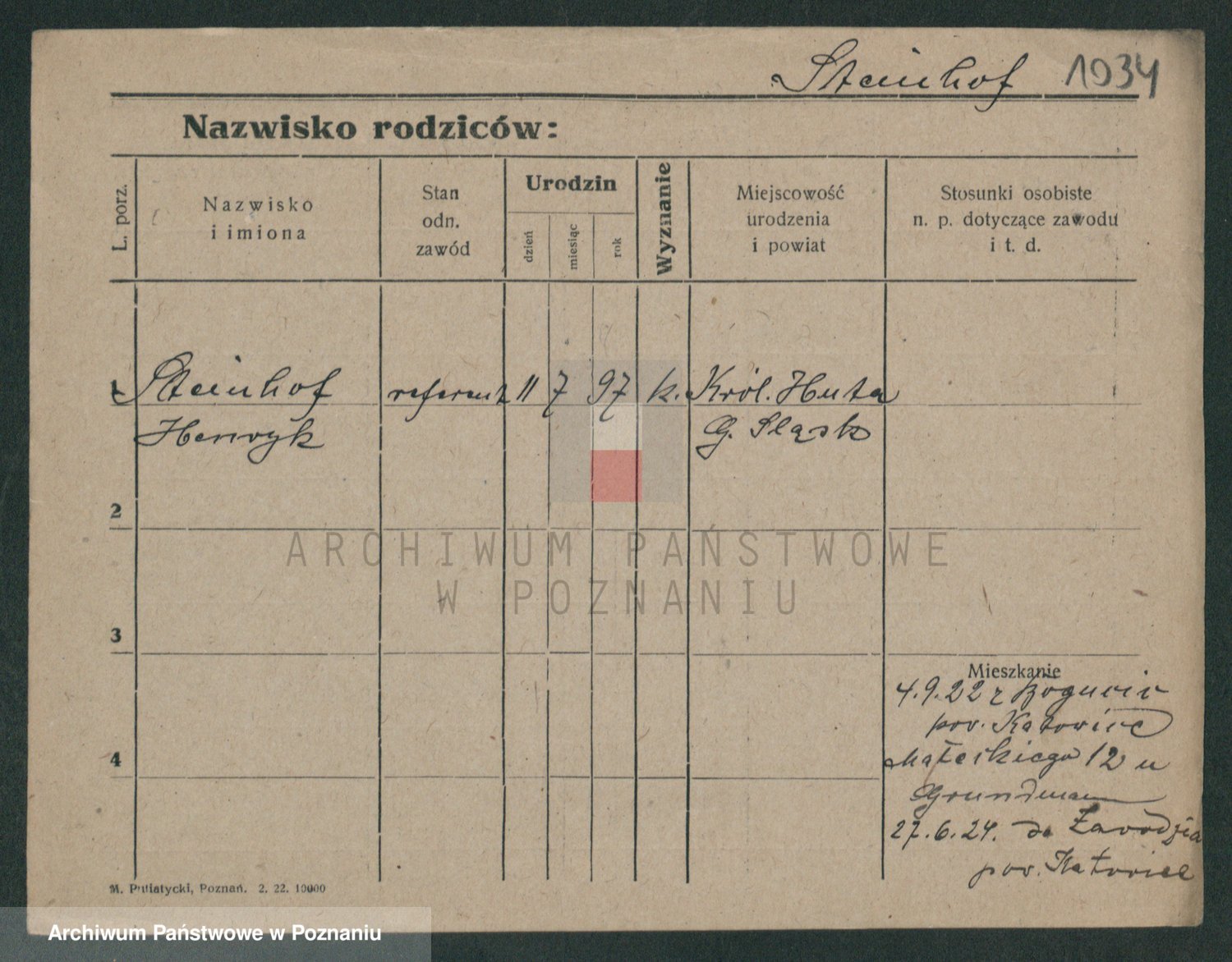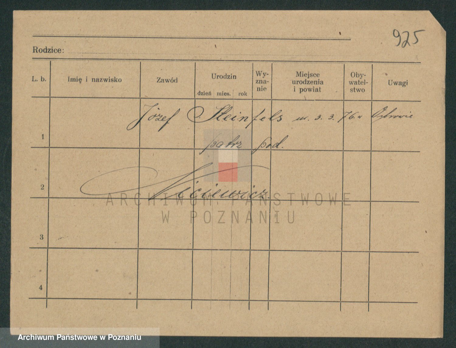 Podgląd karty osobowej dostępny jest po kliknięciu na nazwisko lub ikonkę karty. Można dokonywać powiększenia (ikony na górze) lub przechodzić między kolejnymi skanami (strzałki po bokach).