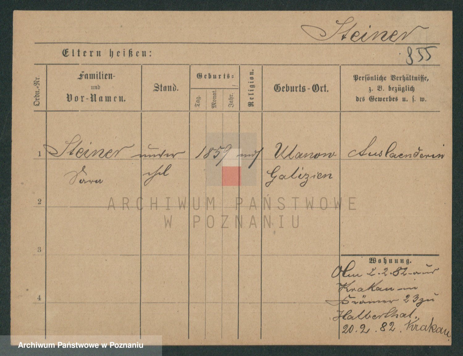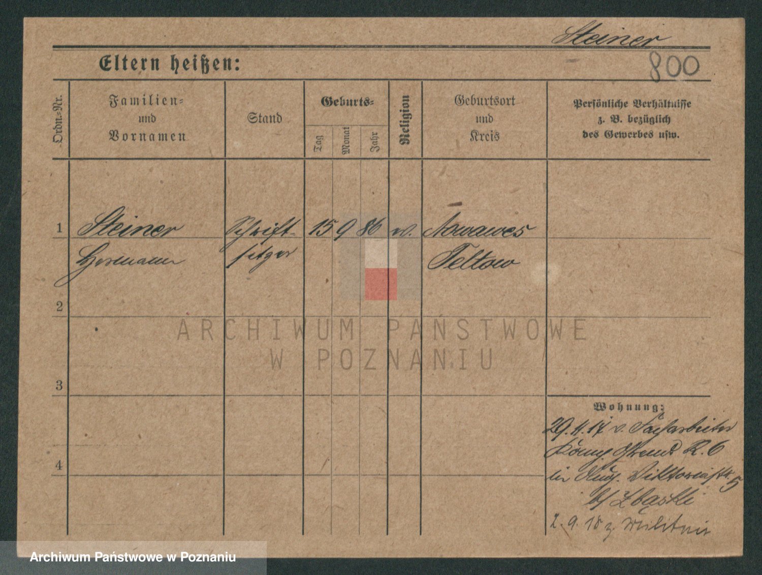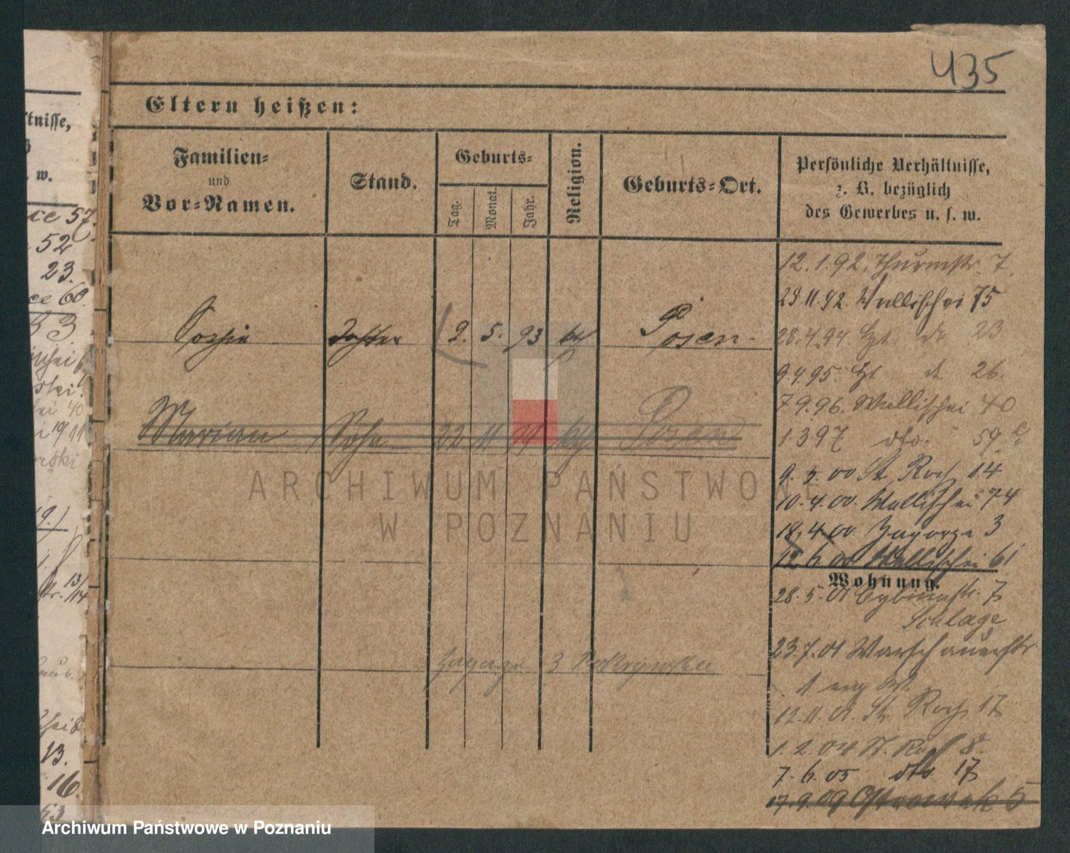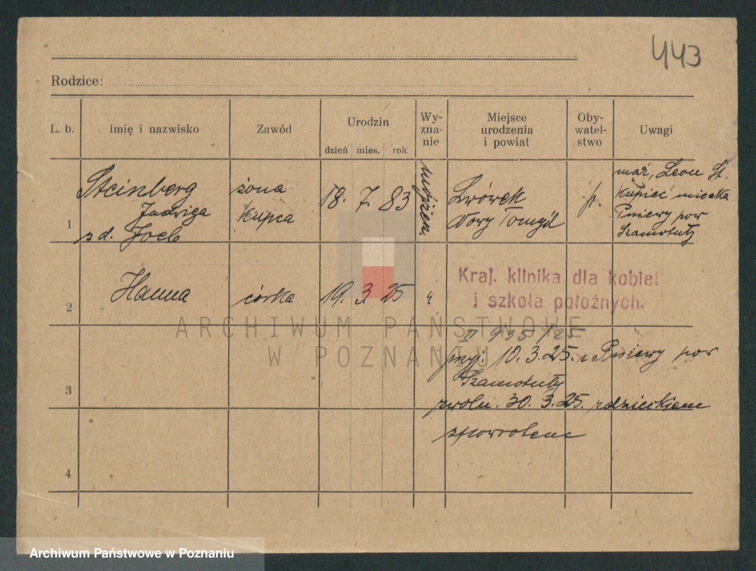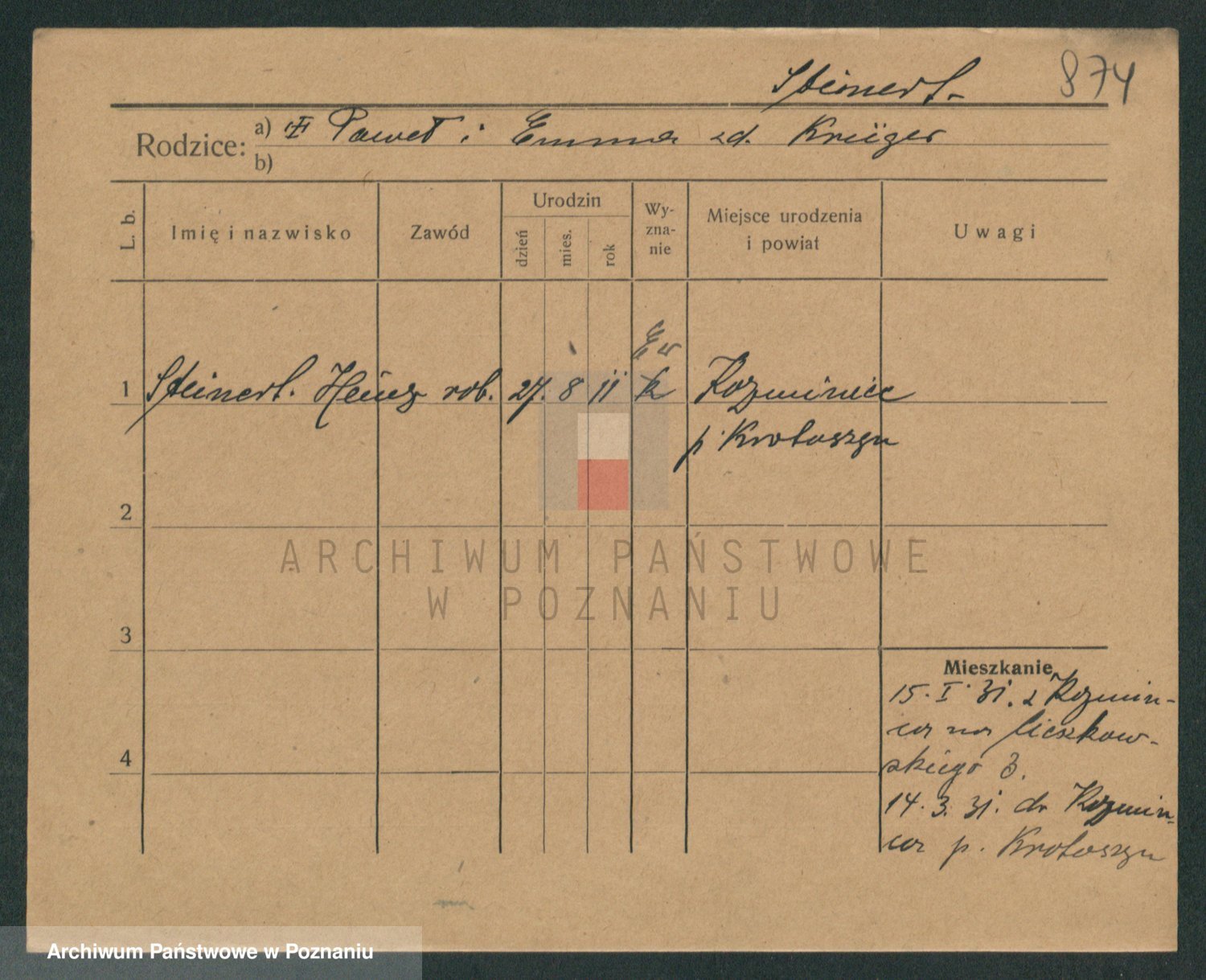 Podgląd karty osobowej dostępny jest po kliknięciu na nazwisko lub ikonkę karty. Można dokonywać powiększenia (ikony na górze) lub przechodzić między kolejnymi skanami (strzałki po bokach).