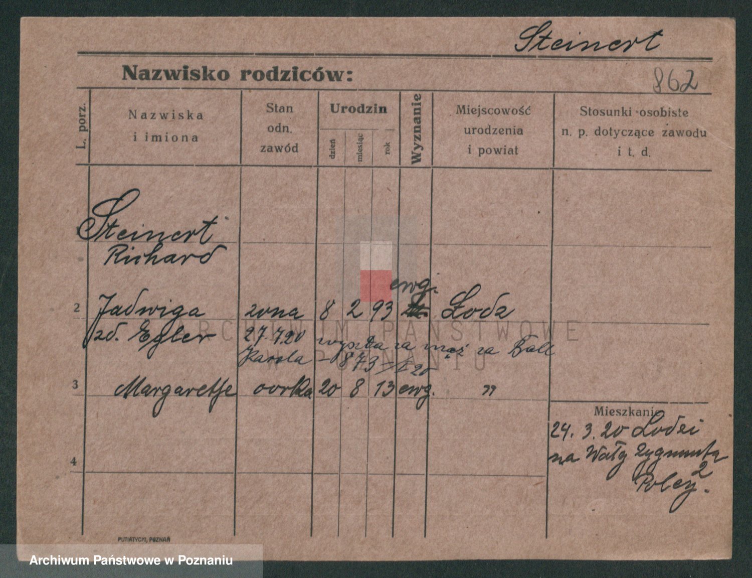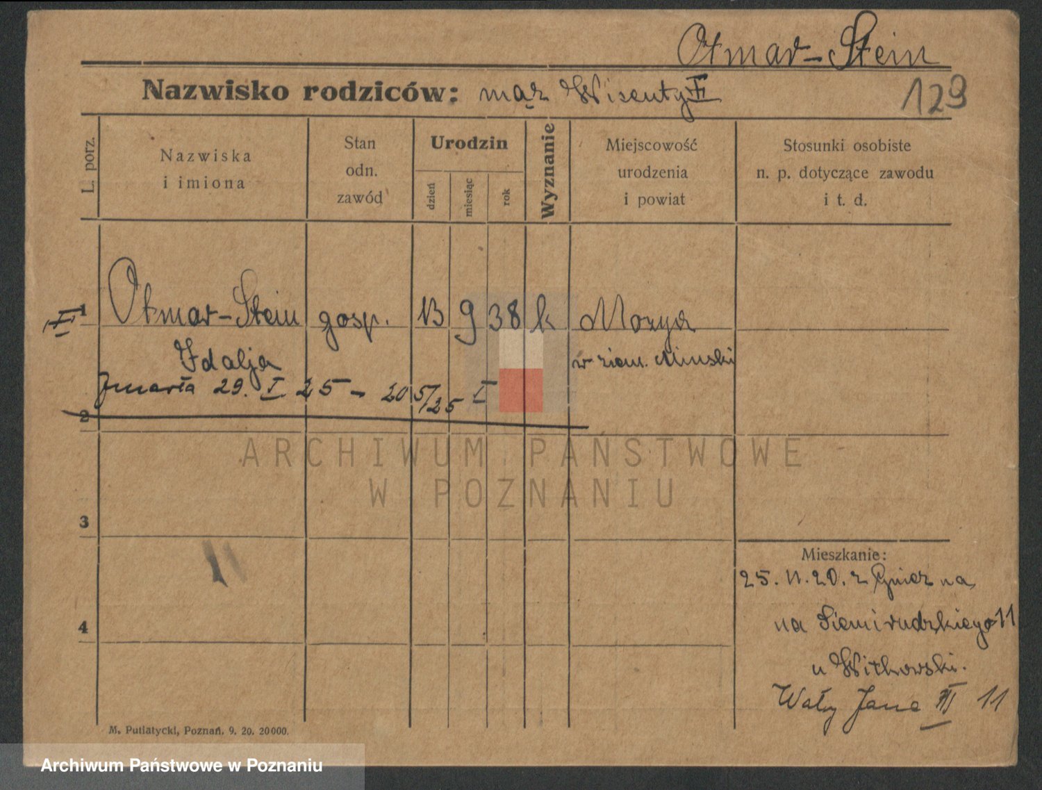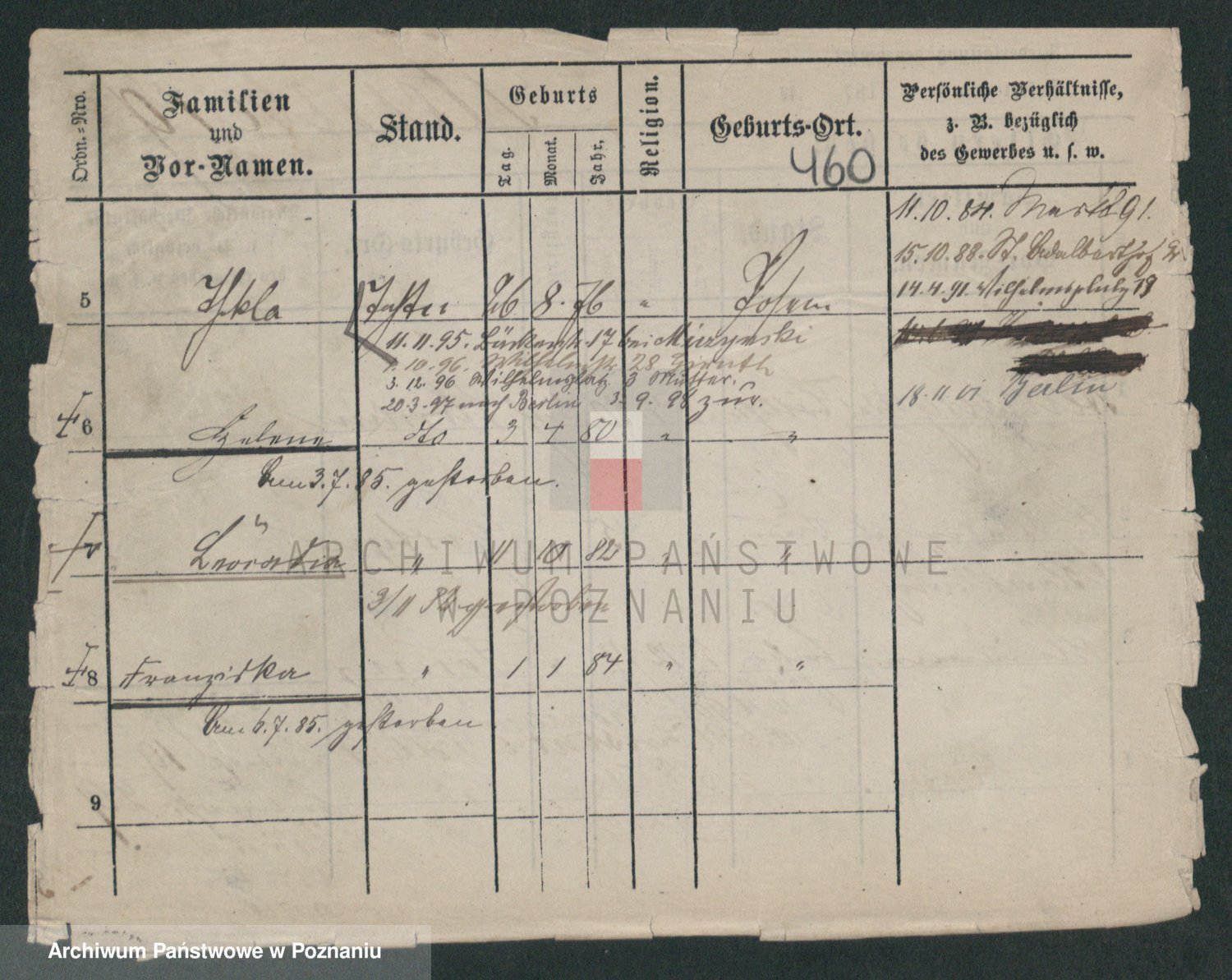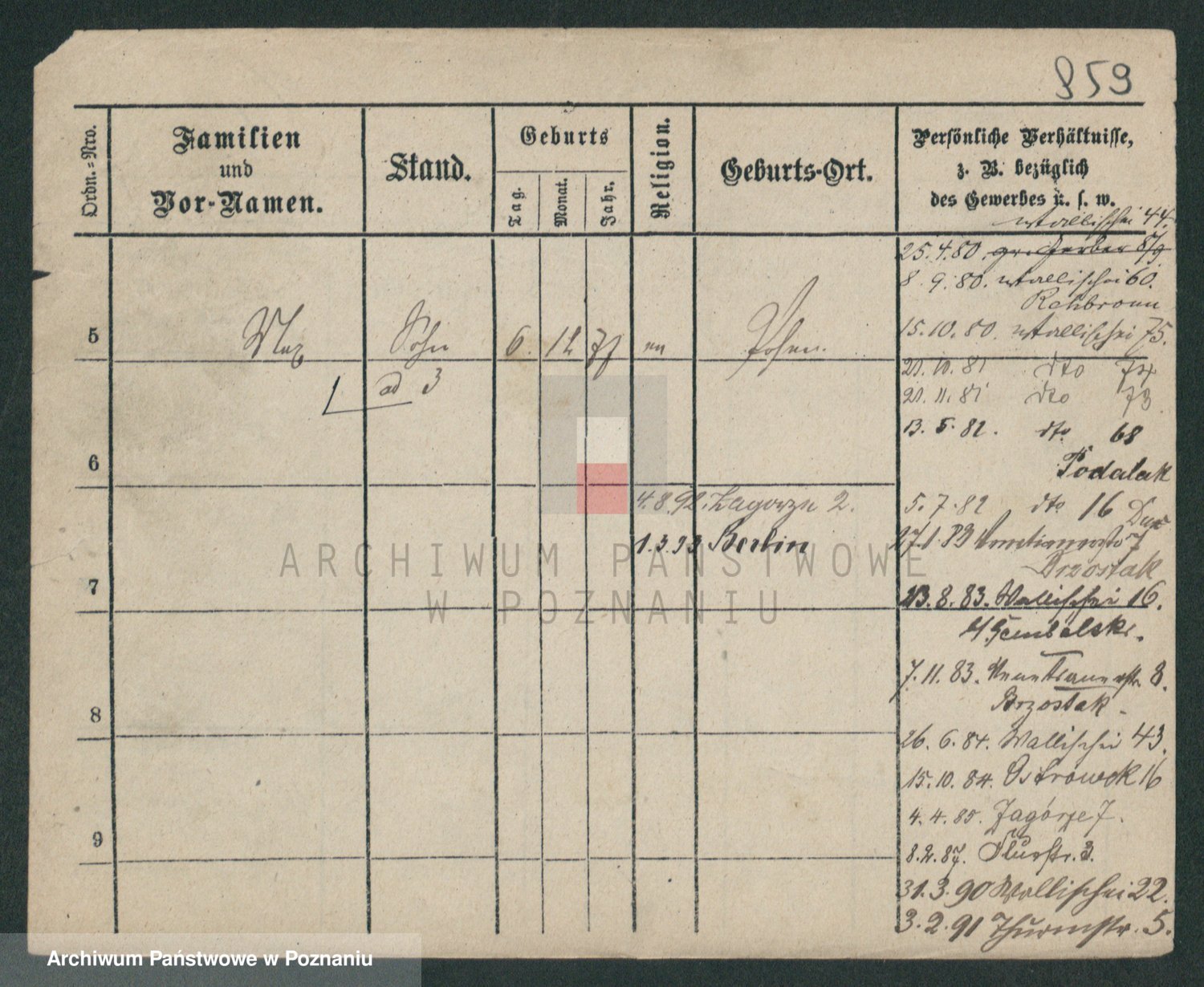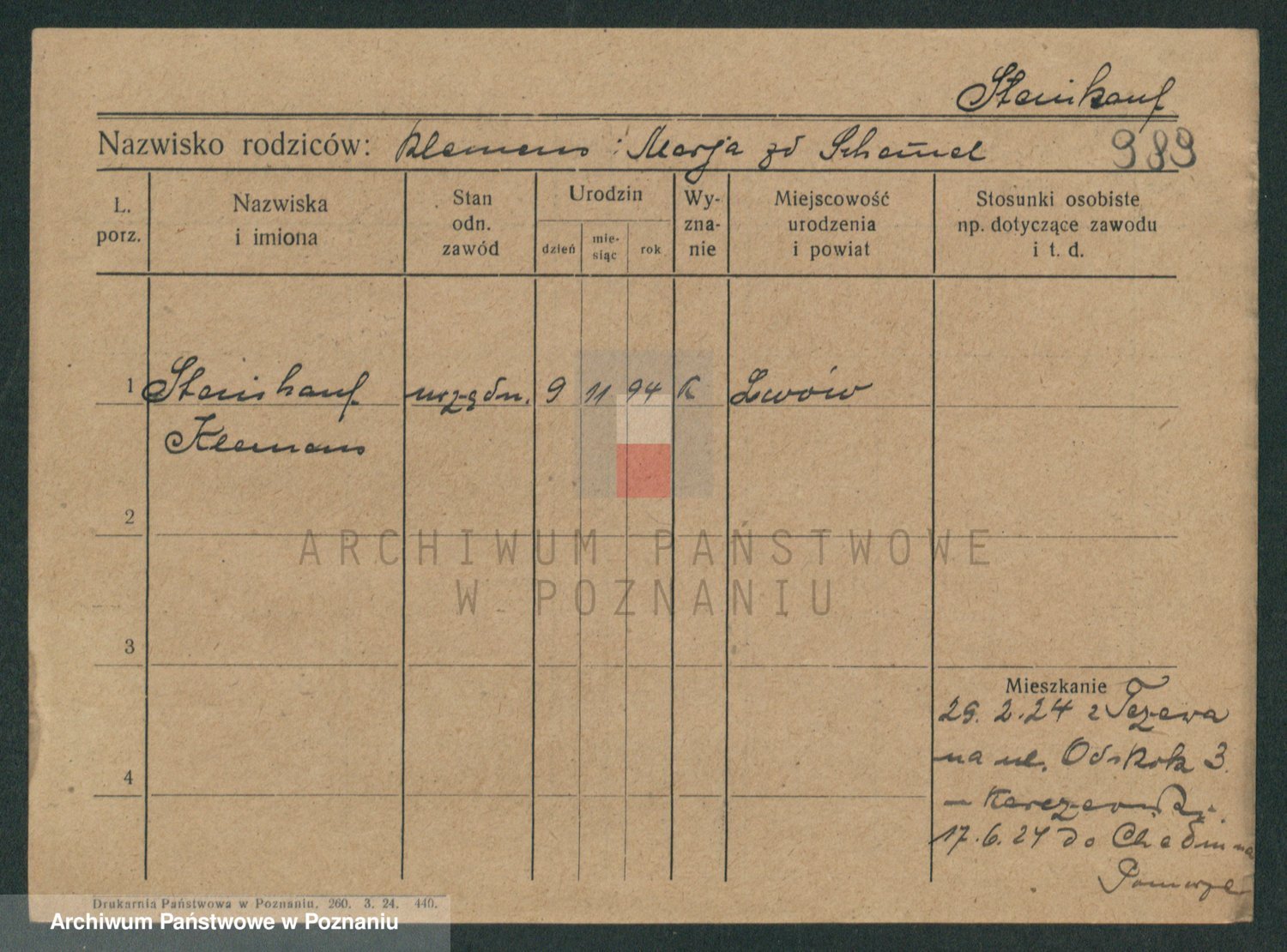Podgląd karty osobowej dostępny jest po kliknięciu na nazwisko lub ikonkę karty. Można dokonywać powiększenia (ikony na górze) lub przechodzić między kolejnymi skanami (strzałki po bokach).