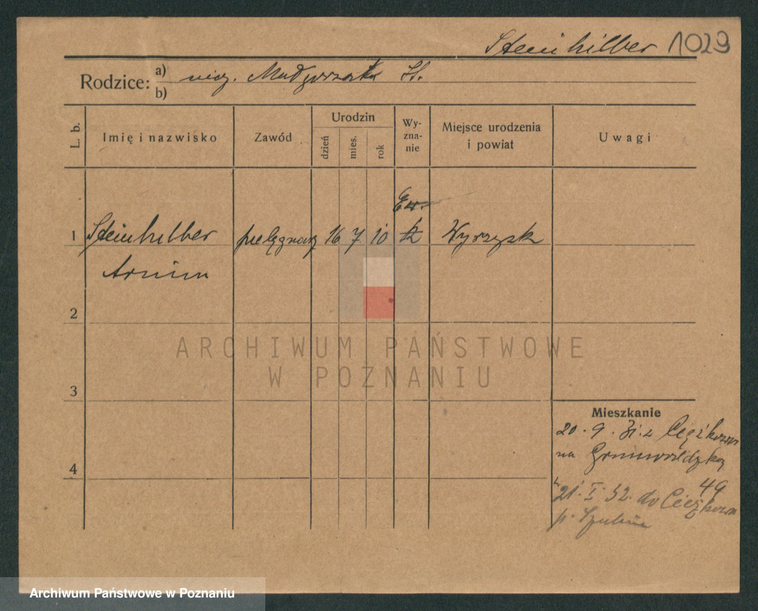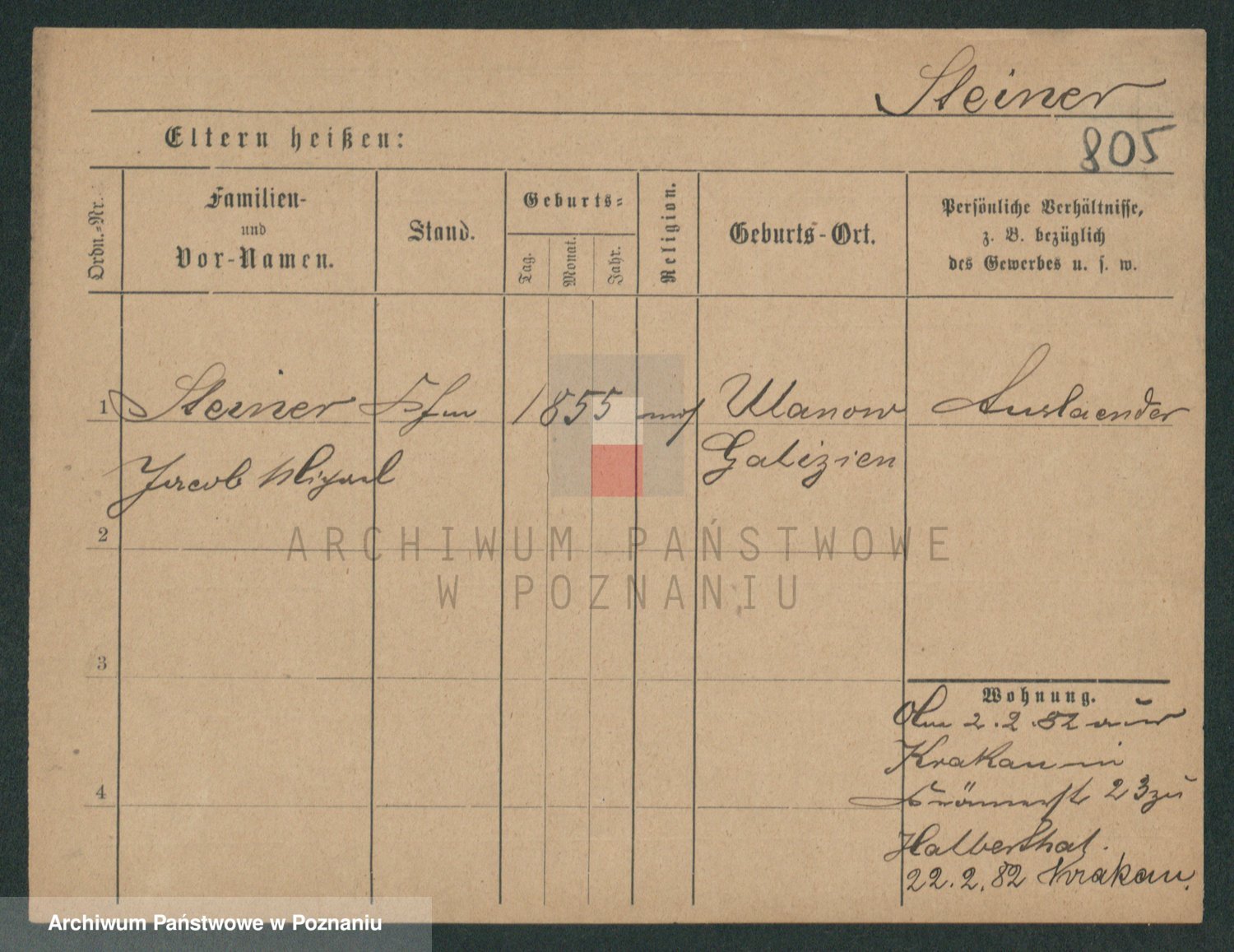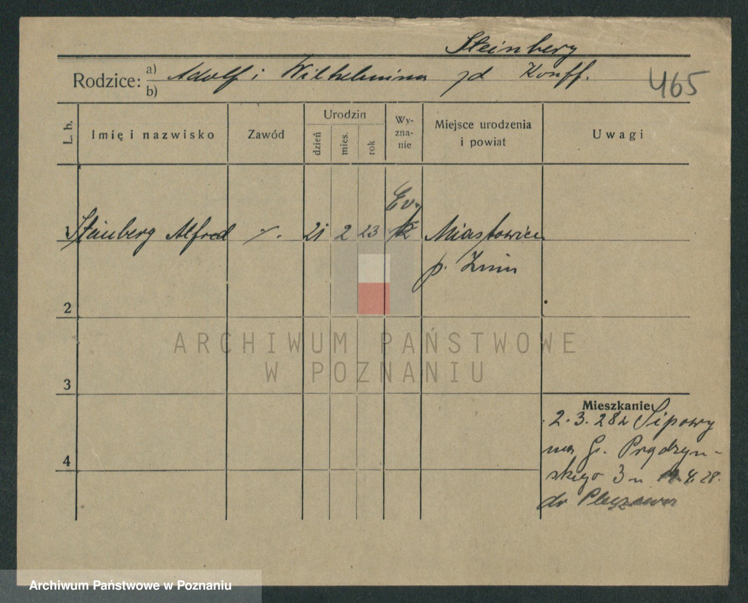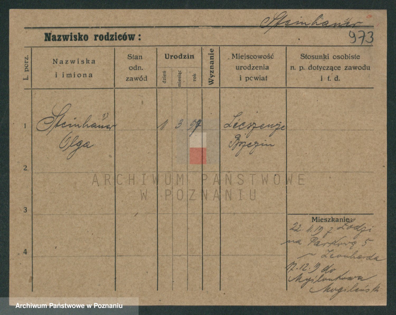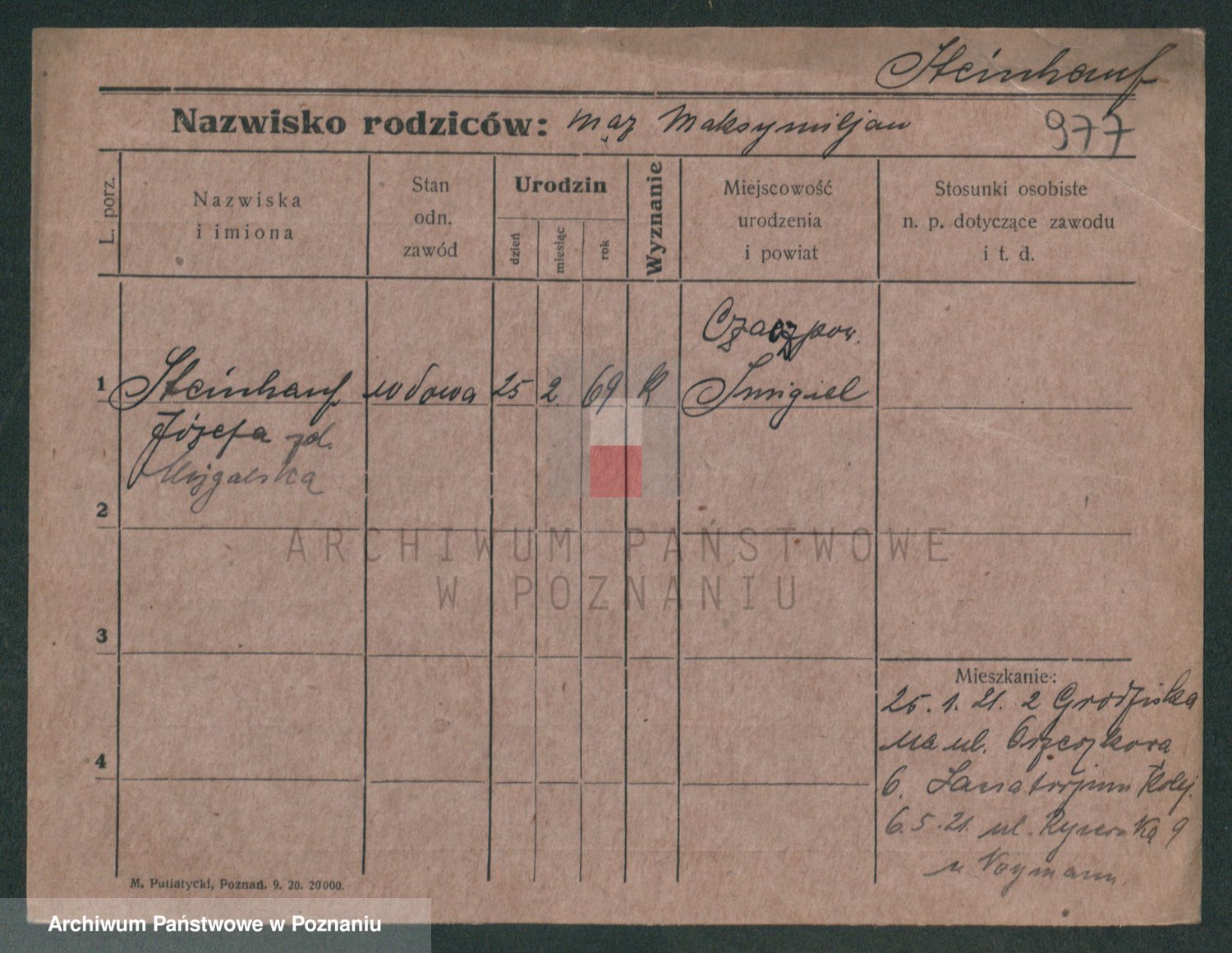 Podgląd karty osobowej dostępny jest po kliknięciu na nazwisko lub ikonkę karty. Można dokonywać powiększenia (ikony na górze) lub przechodzić między kolejnymi skanami (strzałki po bokach).