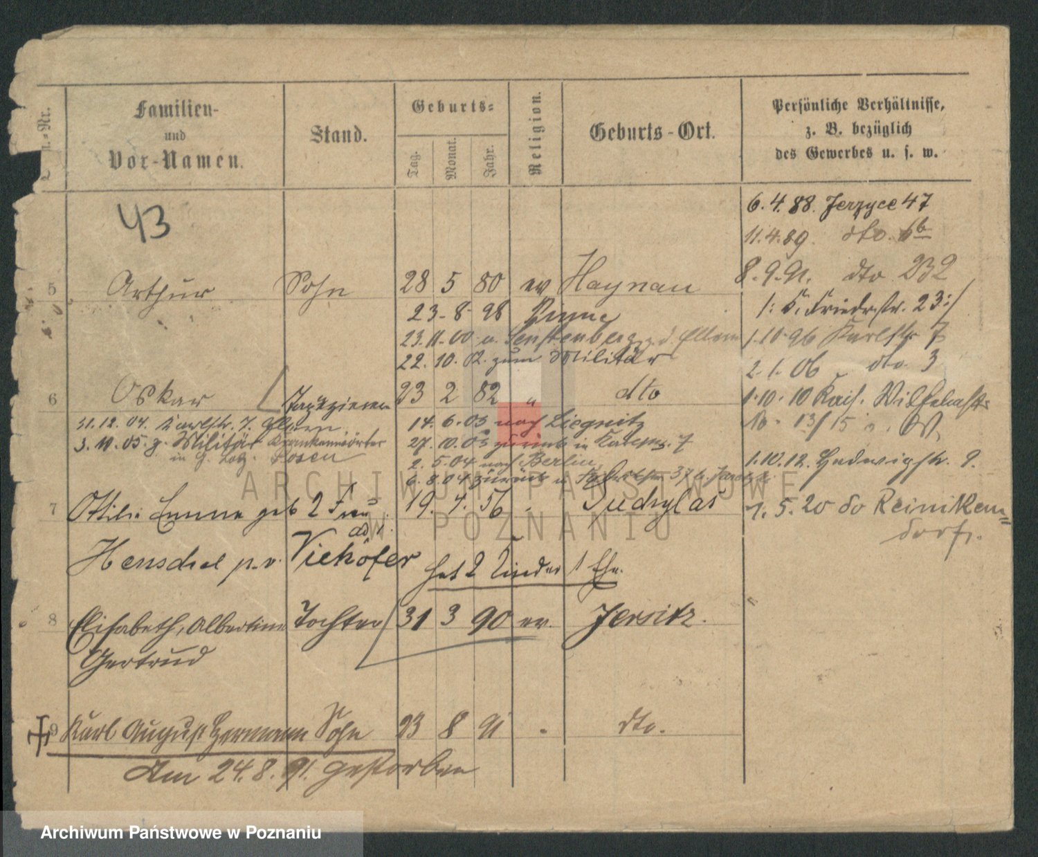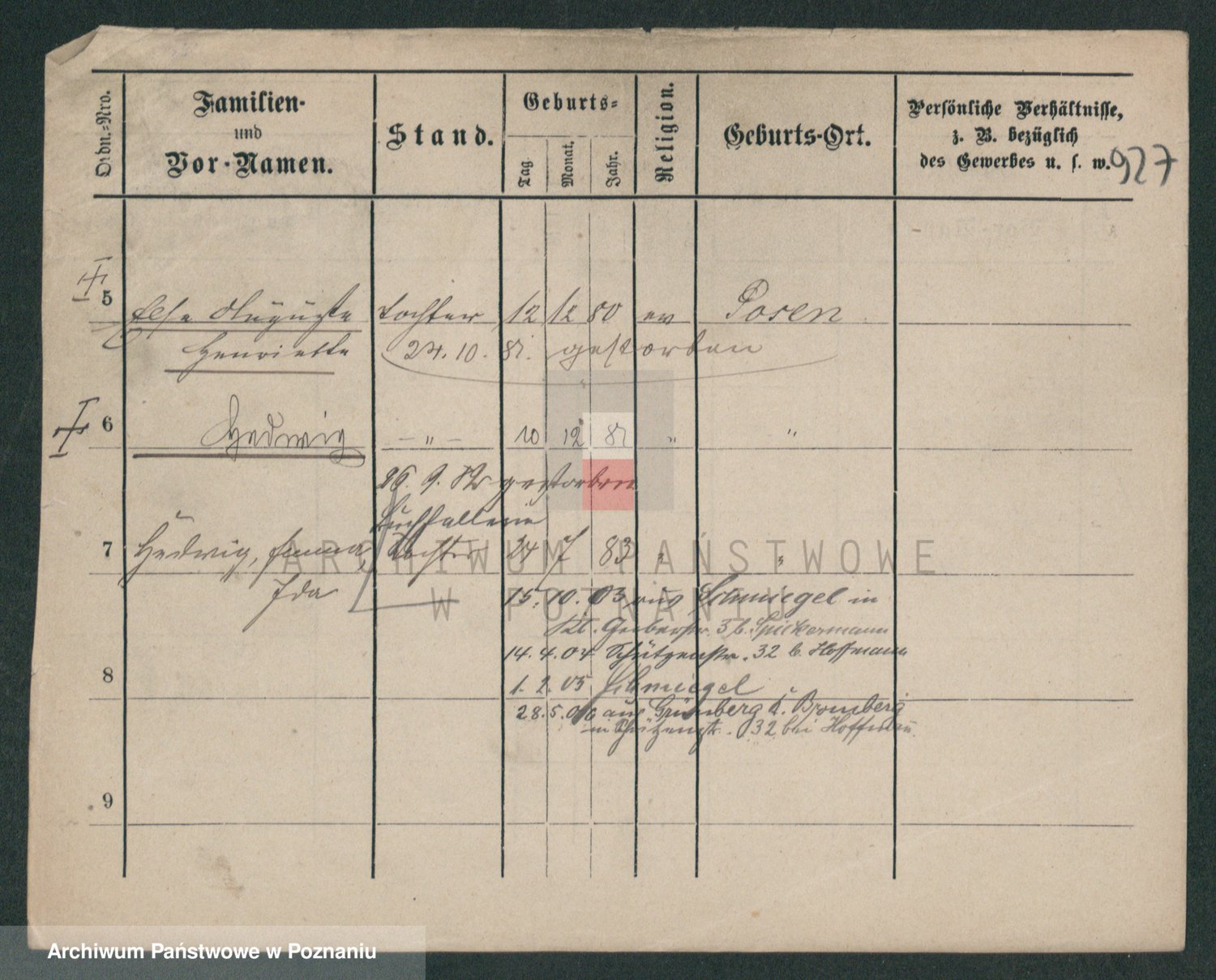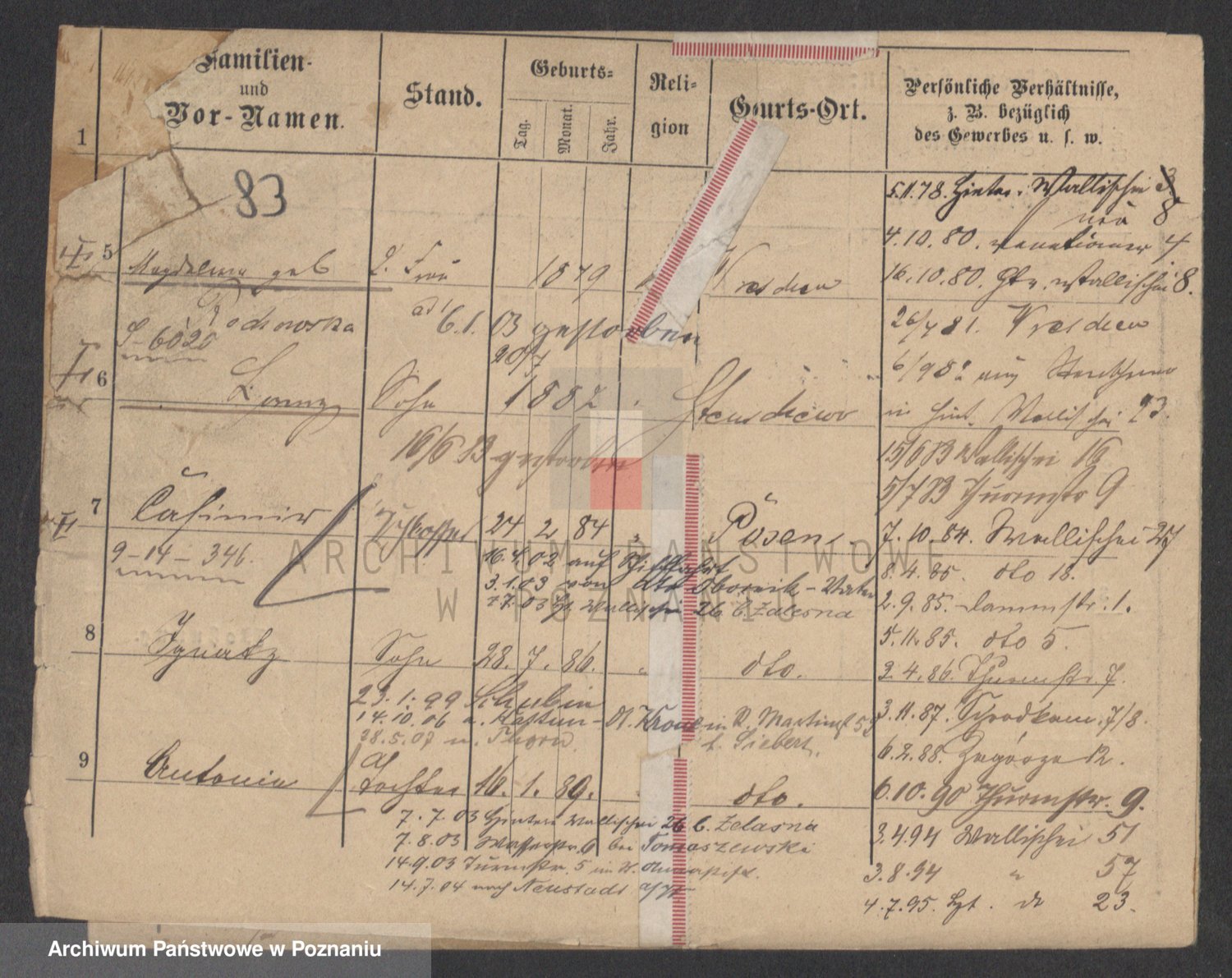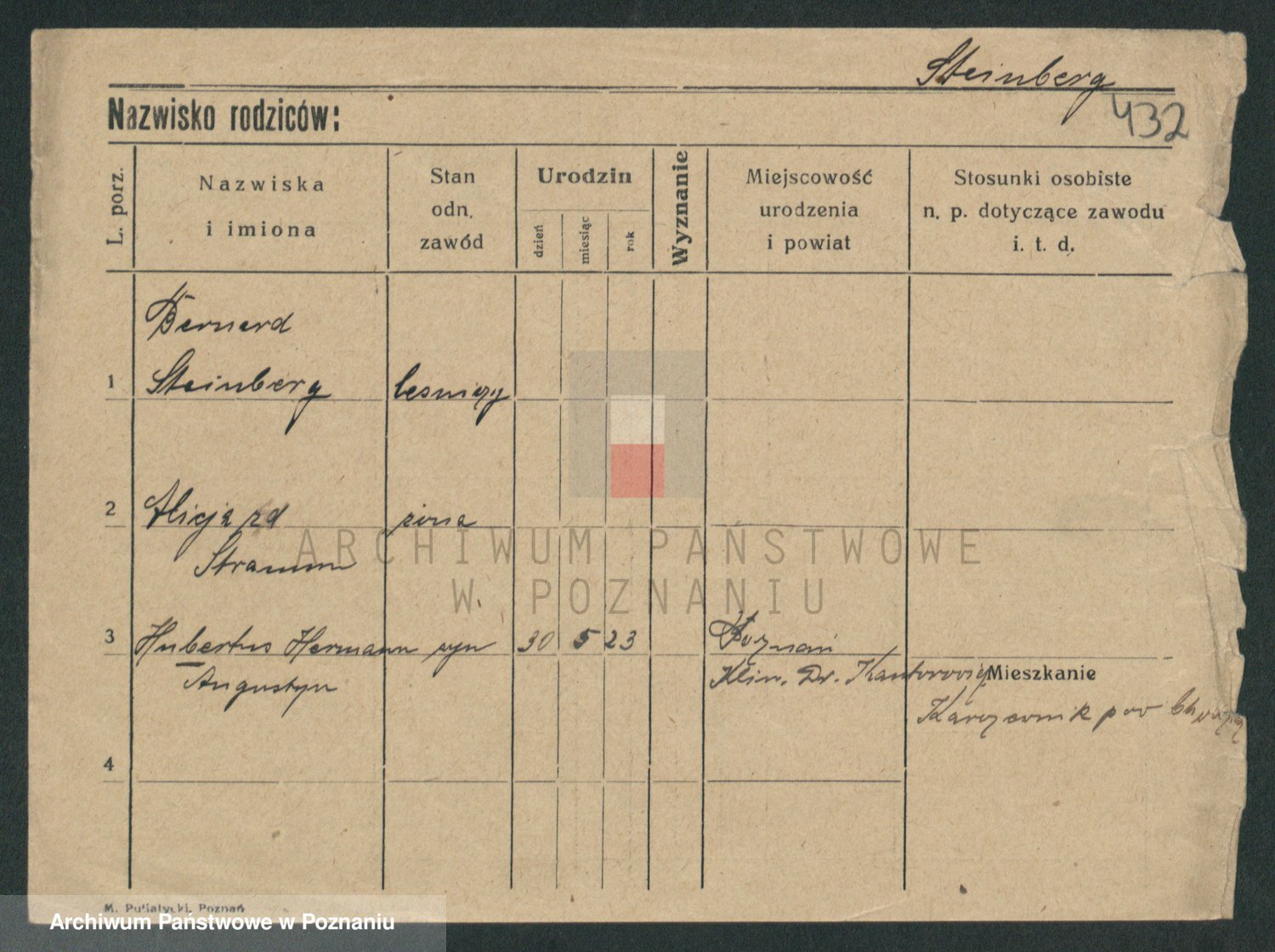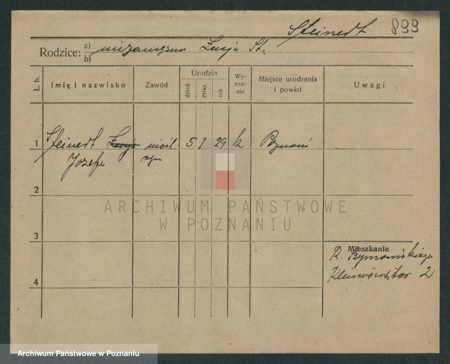 Podgląd karty osobowej dostępny jest po kliknięciu na nazwisko lub ikonkę karty. Można dokonywać powiększenia (ikony na górze) lub przechodzić między kolejnymi skanami (strzałki po bokach).
