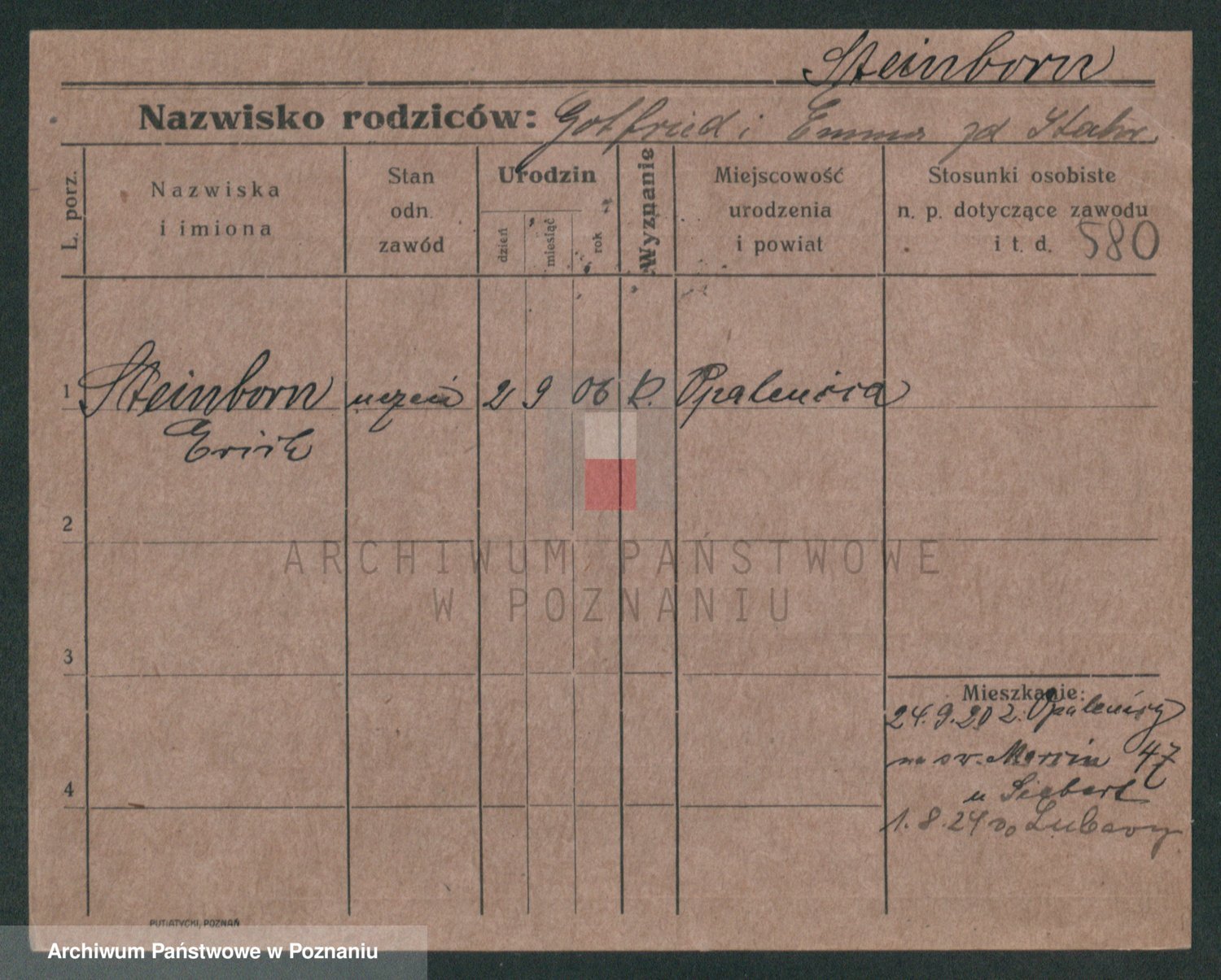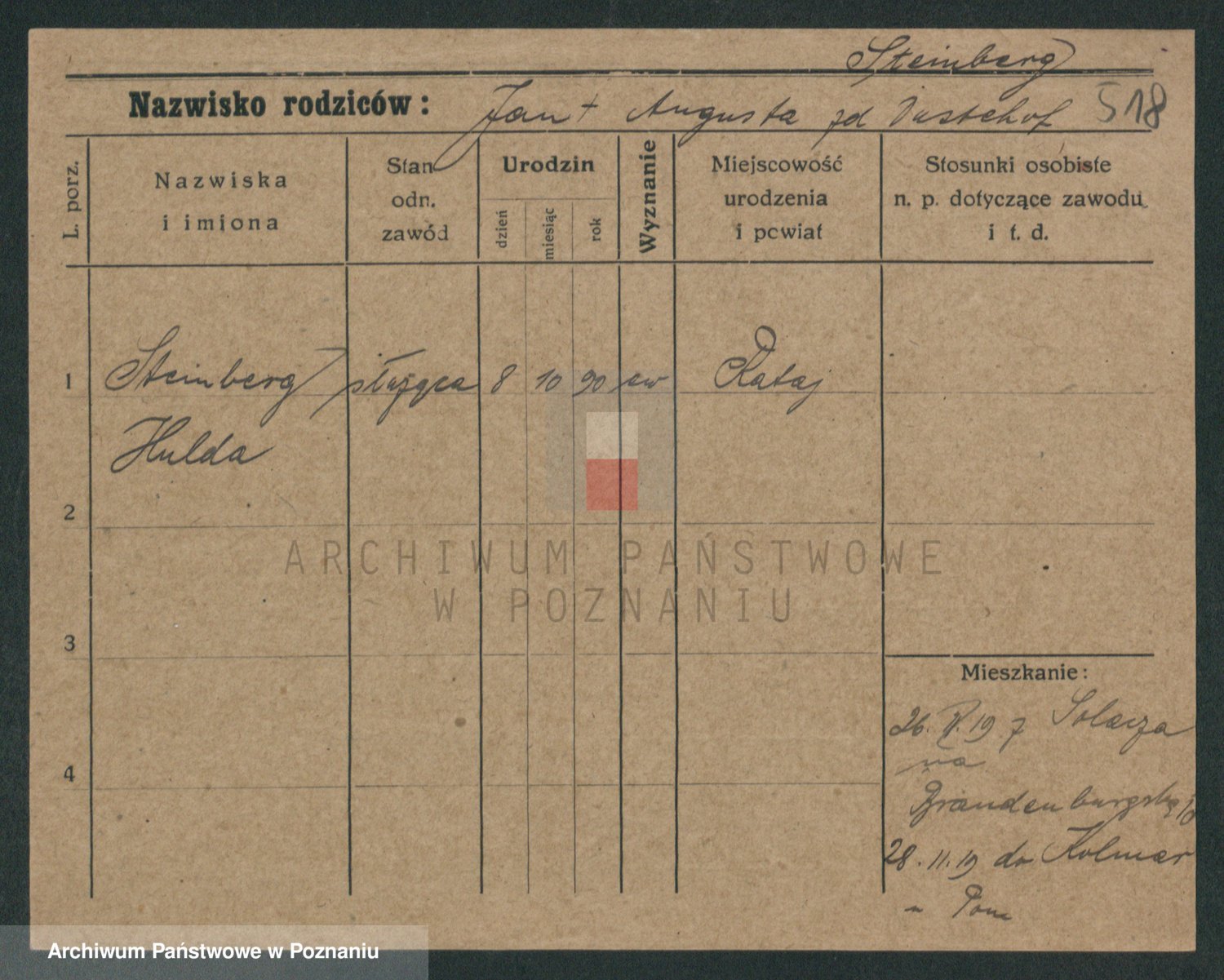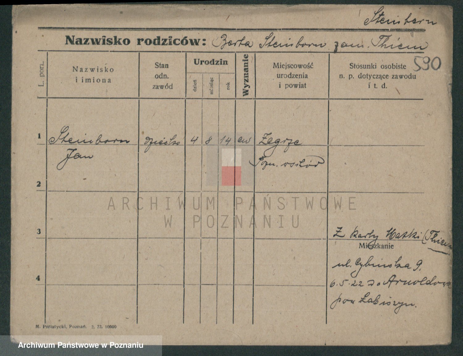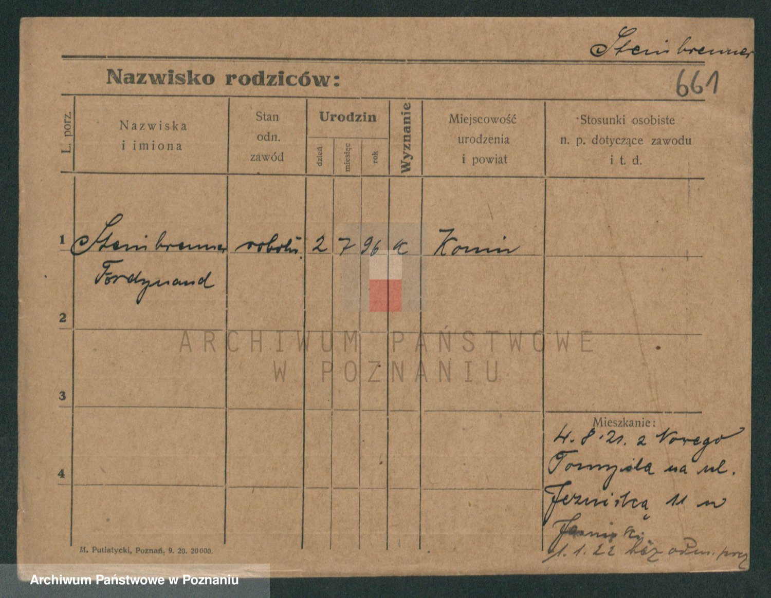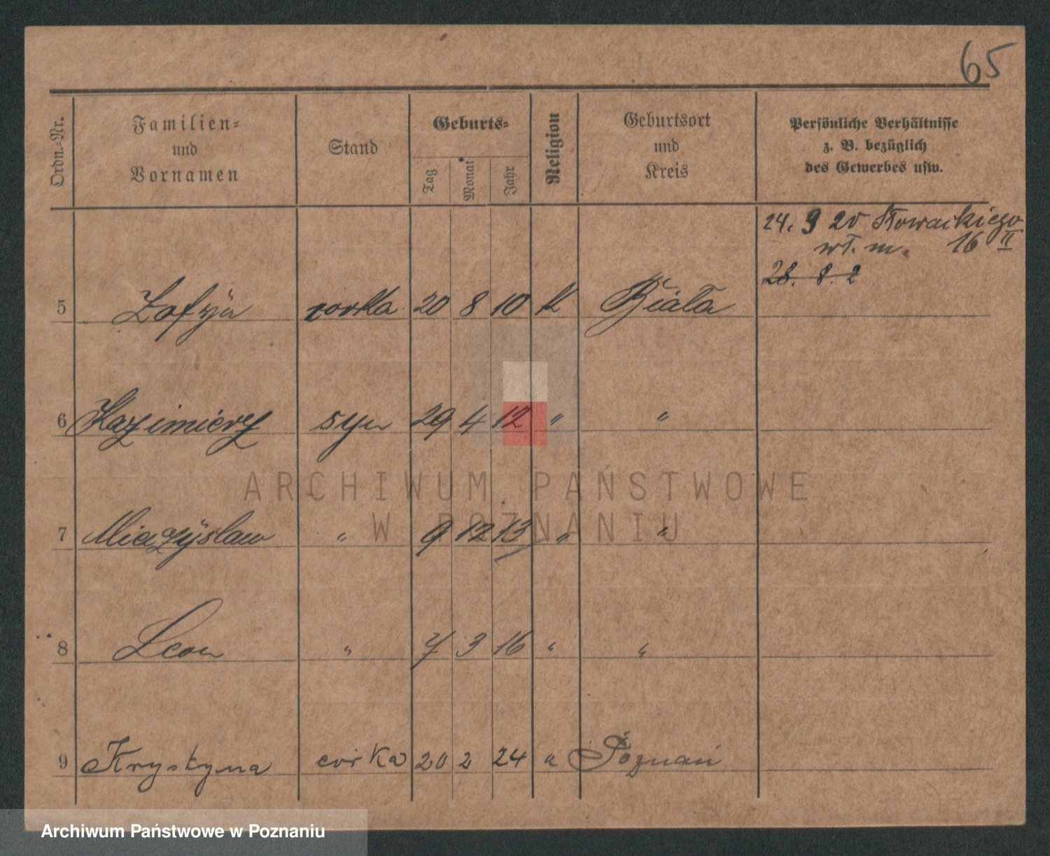 Podgląd karty osobowej dostępny jest po kliknięciu na nazwisko lub ikonkę karty. Można dokonywać powiększenia (ikony na górze) lub przechodzić między kolejnymi skanami (strzałki po bokach).