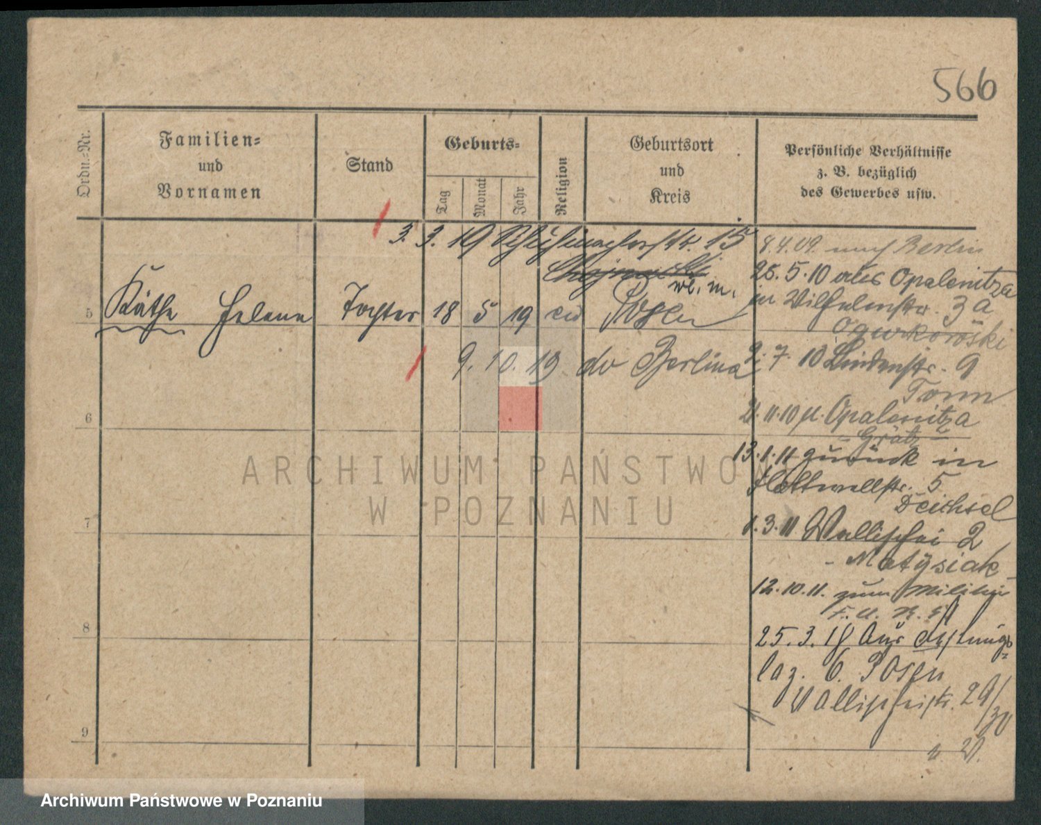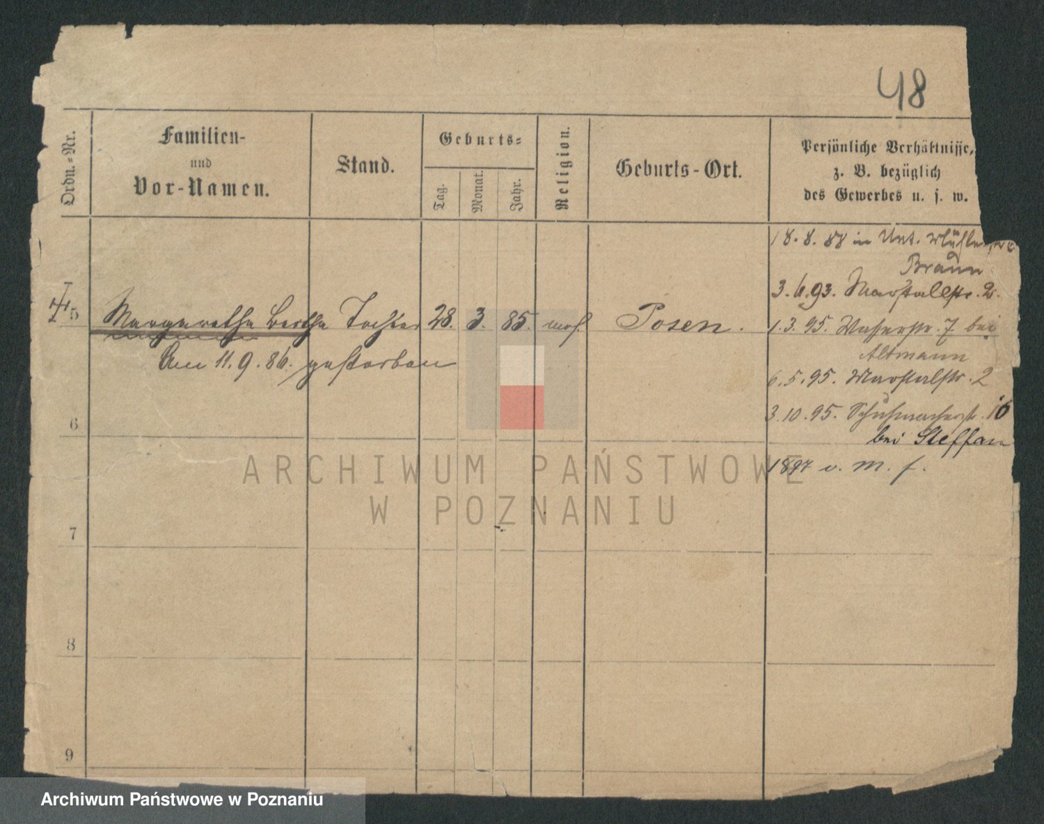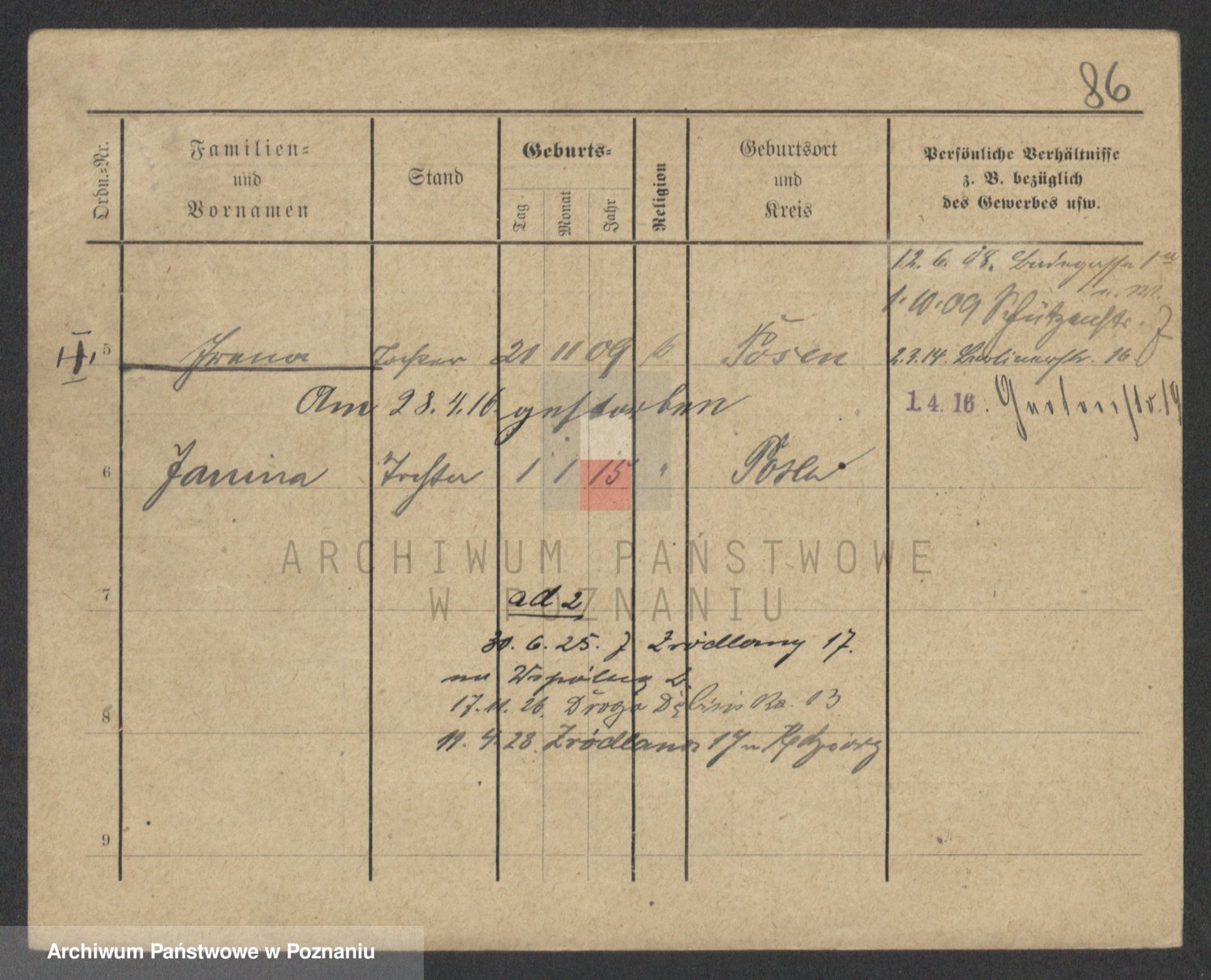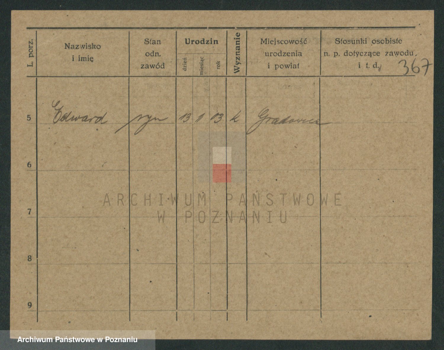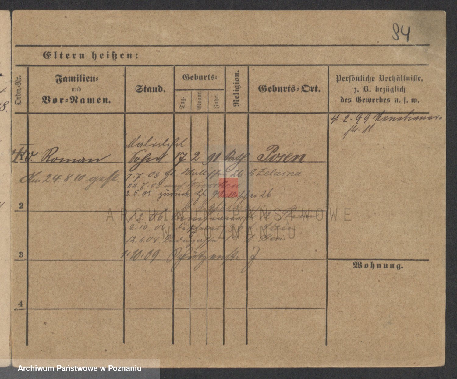 Podgląd karty osobowej dostępny jest po kliknięciu na nazwisko lub ikonkę karty. Można dokonywać powiększenia (ikony na górze) lub przechodzić między kolejnymi skanami (strzałki po bokach).