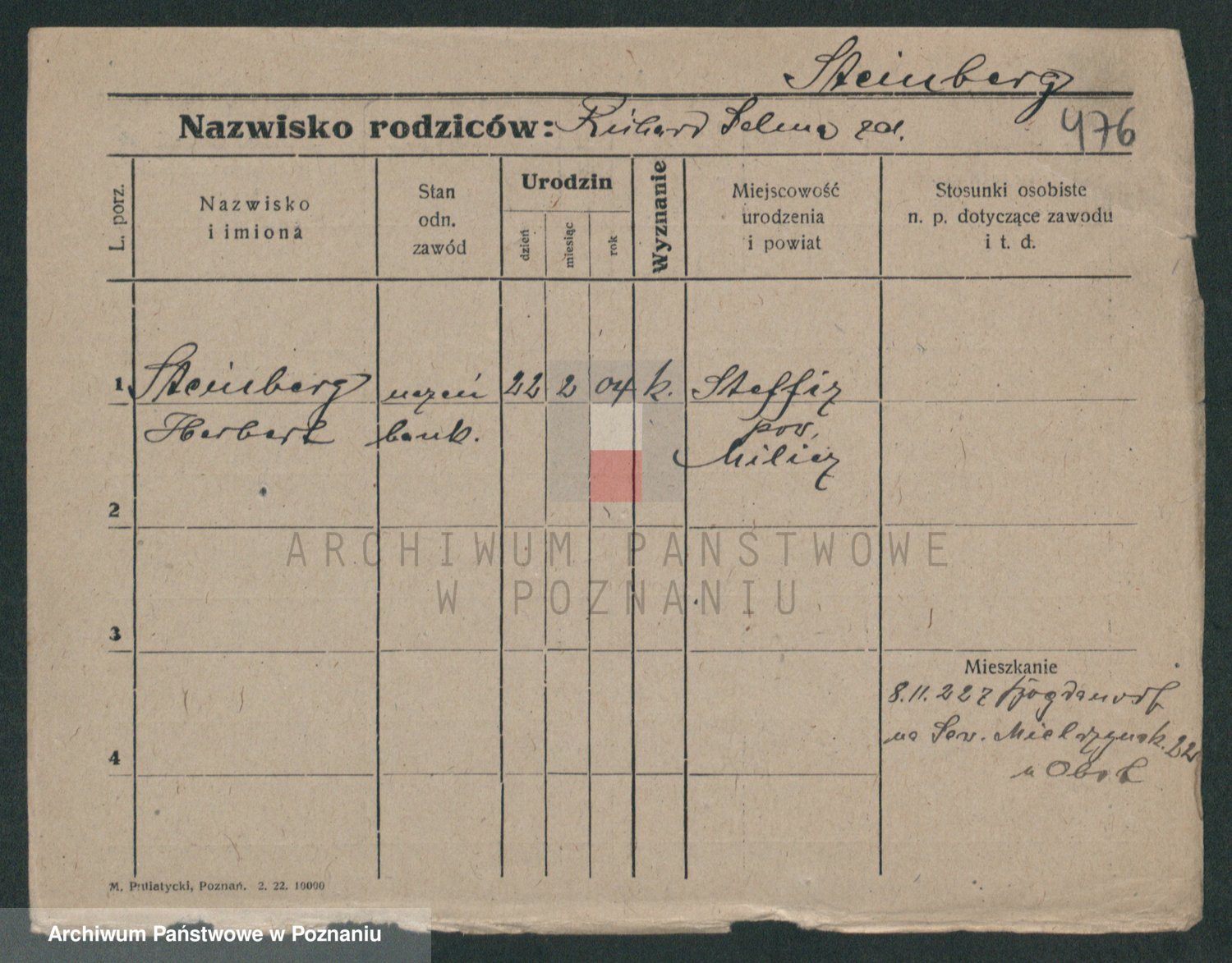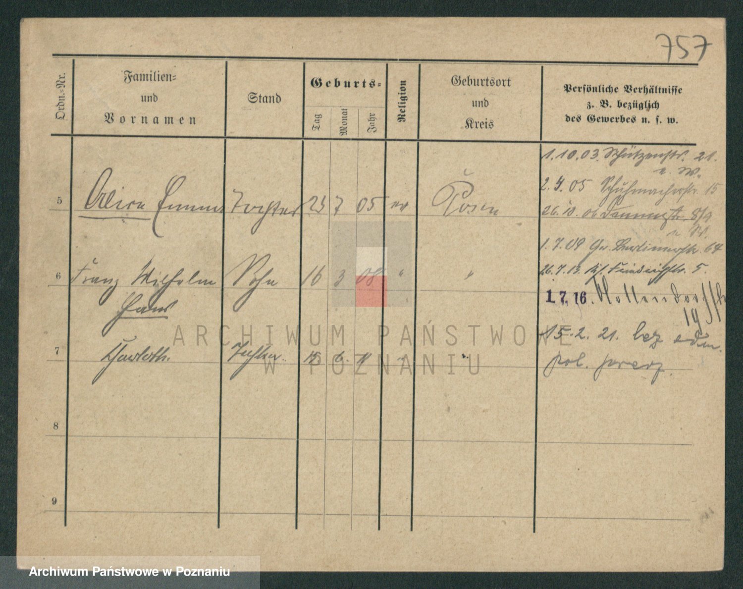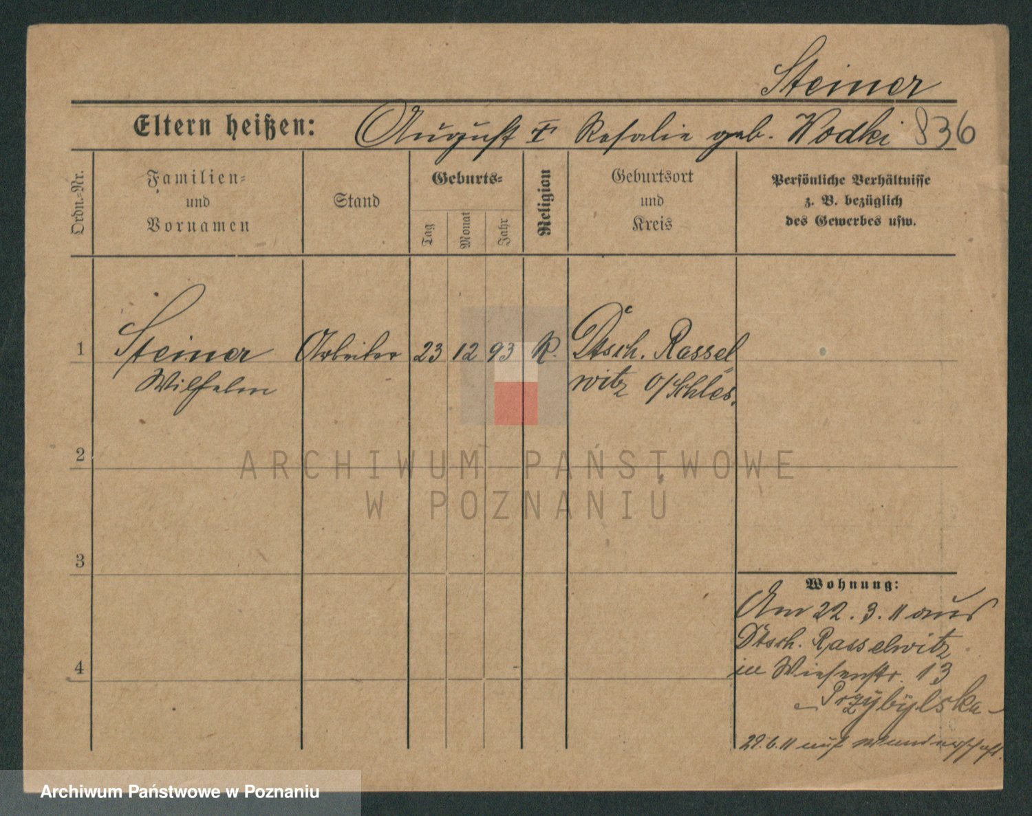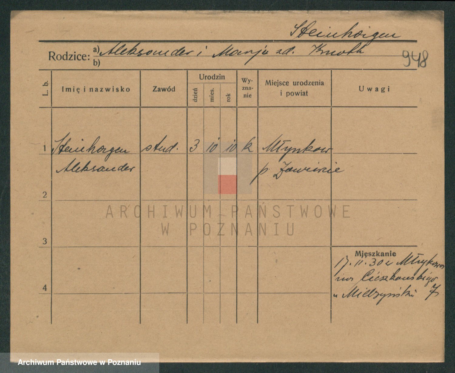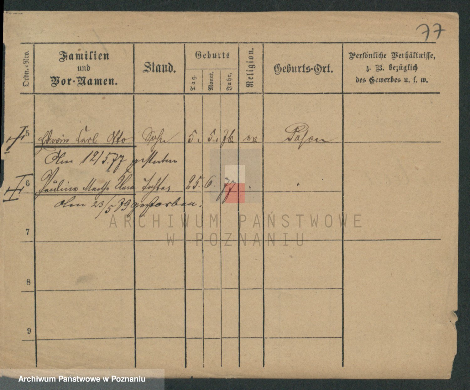 Podgląd karty osobowej dostępny jest po kliknięciu na nazwisko lub ikonkę karty. Można dokonywać powiększenia (ikony na górze) lub przechodzić między kolejnymi skanami (strzałki po bokach).