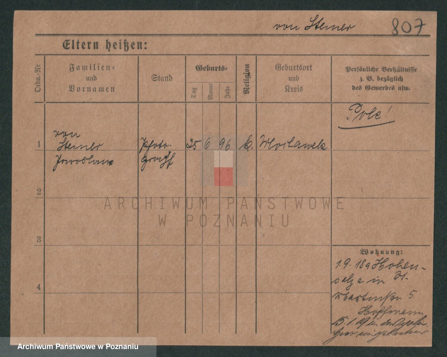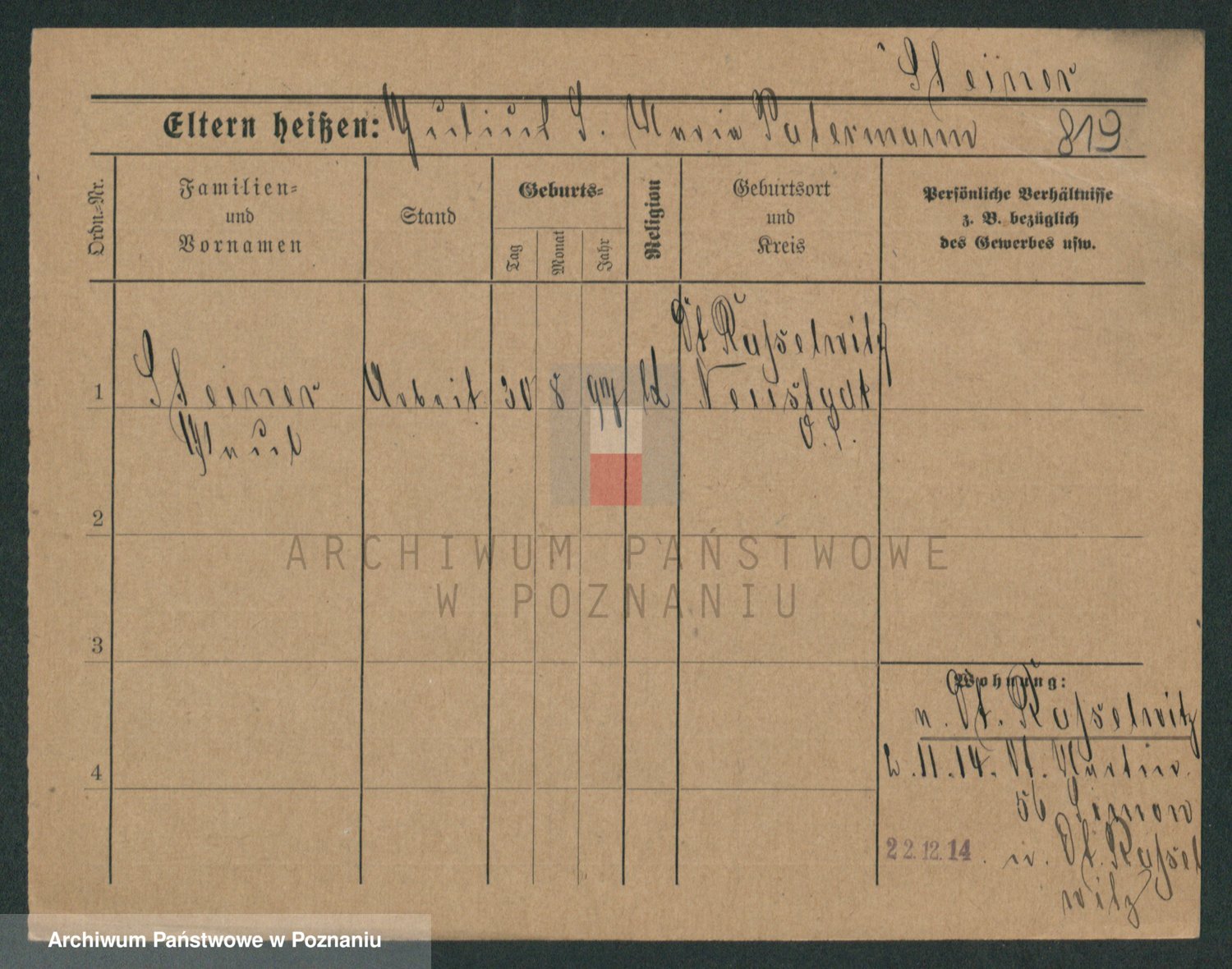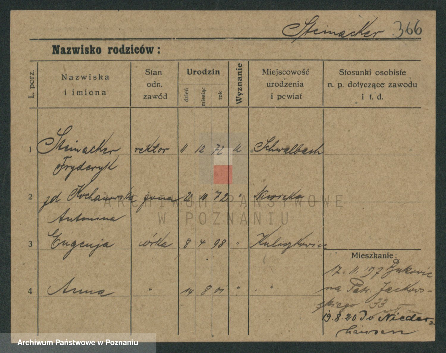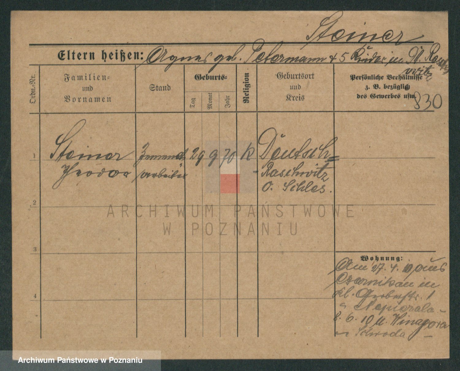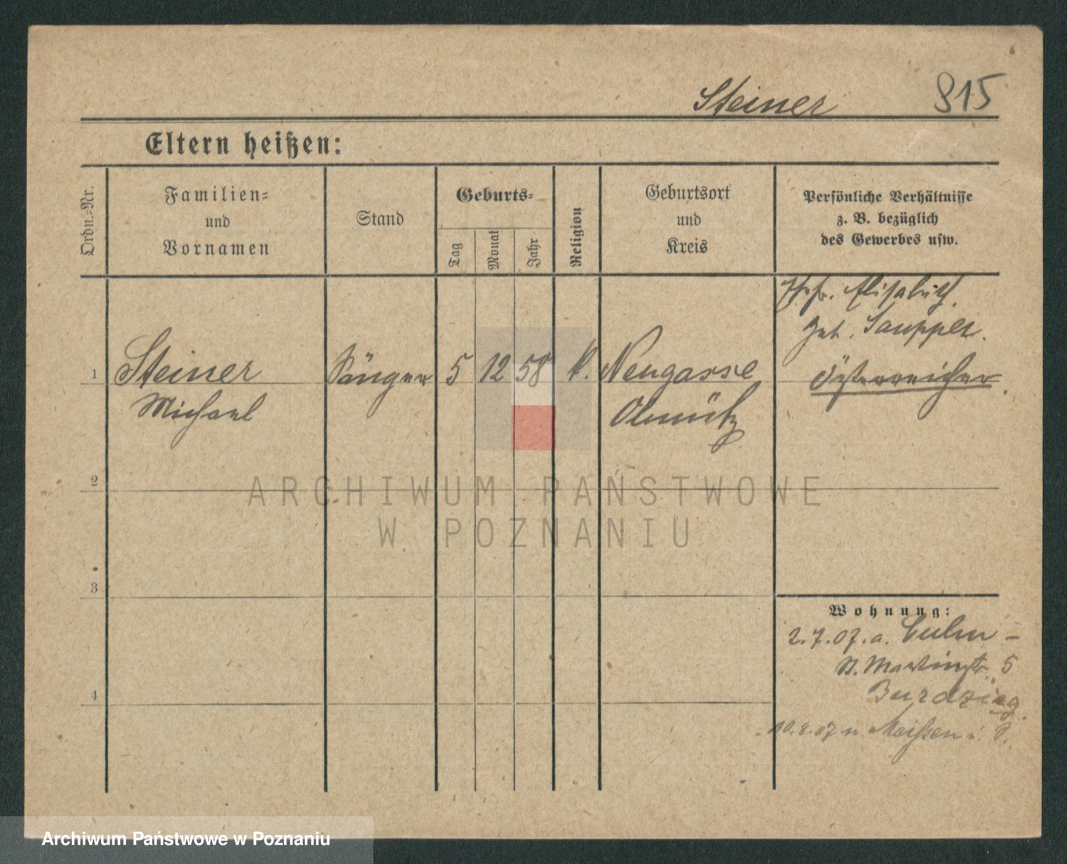 Podgląd karty osobowej dostępny jest po kliknięciu na nazwisko lub ikonkę karty. Można dokonywać powiększenia (ikony na górze) lub przechodzić między kolejnymi skanami (strzałki po bokach).