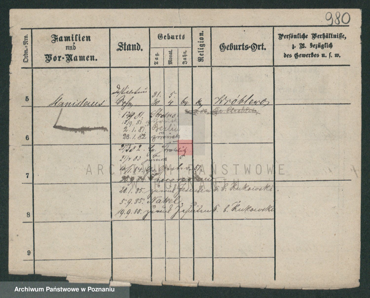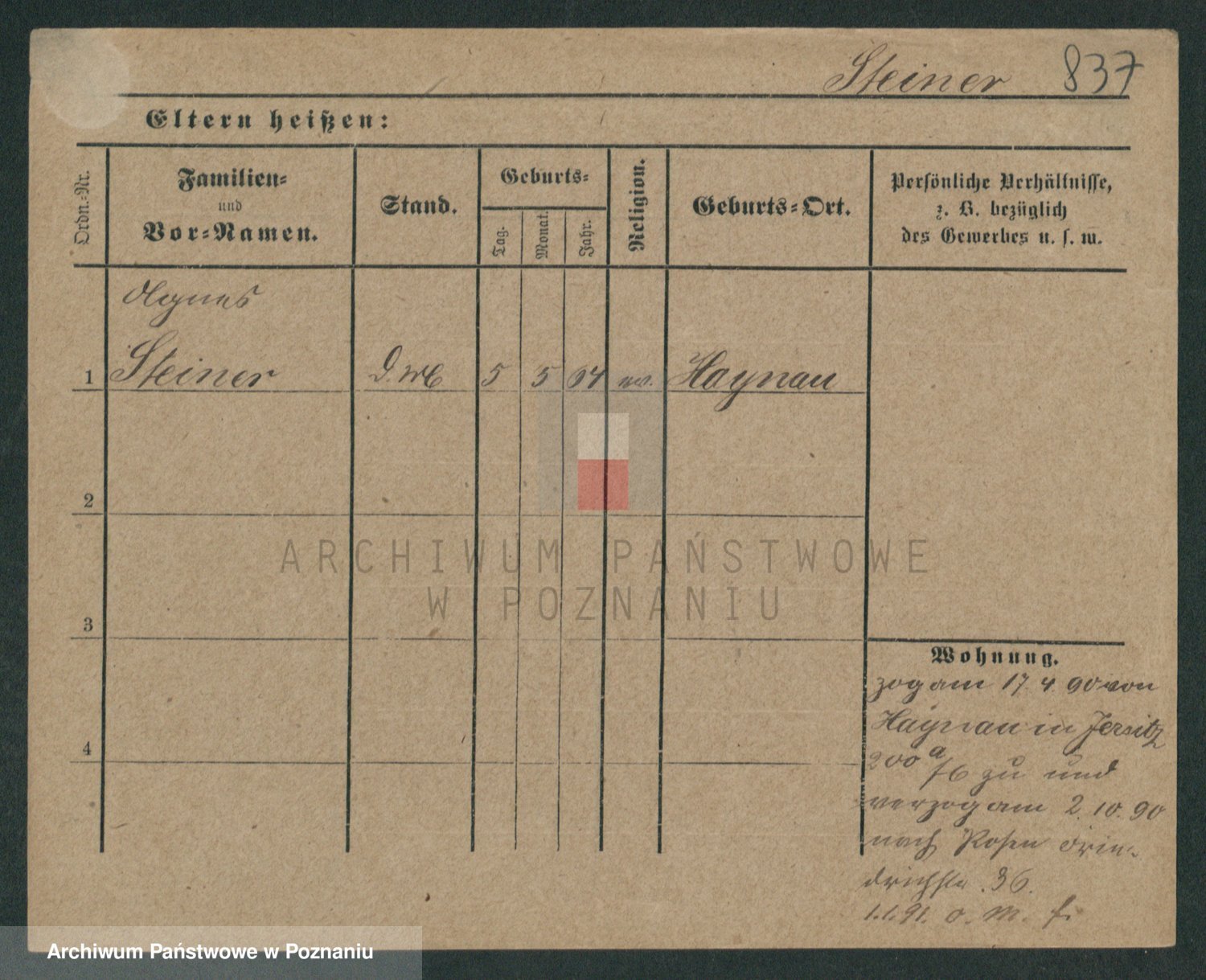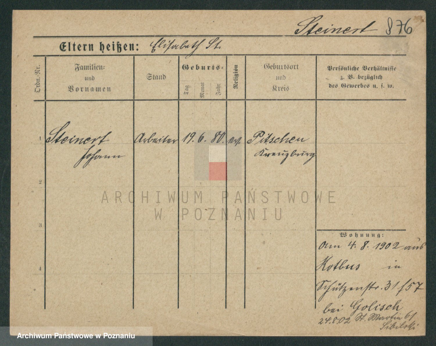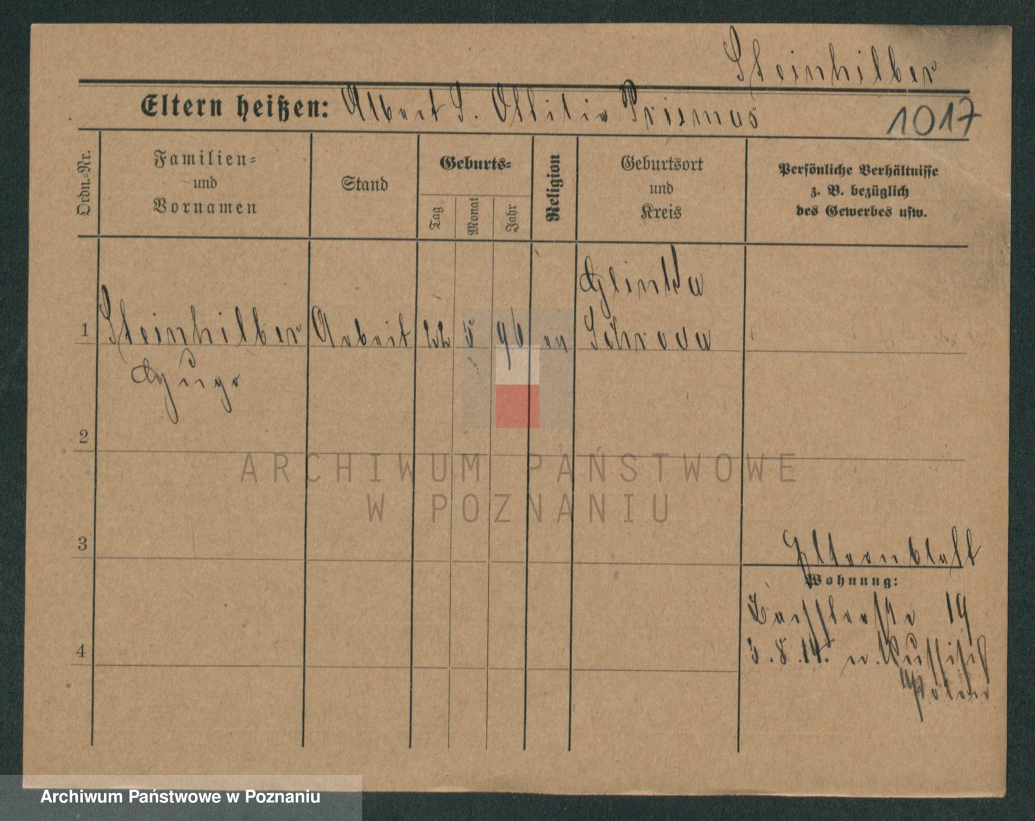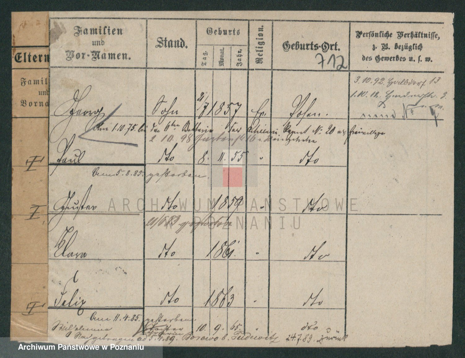 Podgląd karty osobowej dostępny jest po kliknięciu na nazwisko lub ikonkę karty. Można dokonywać powiększenia (ikony na górze) lub przechodzić między kolejnymi skanami (strzałki po bokach).