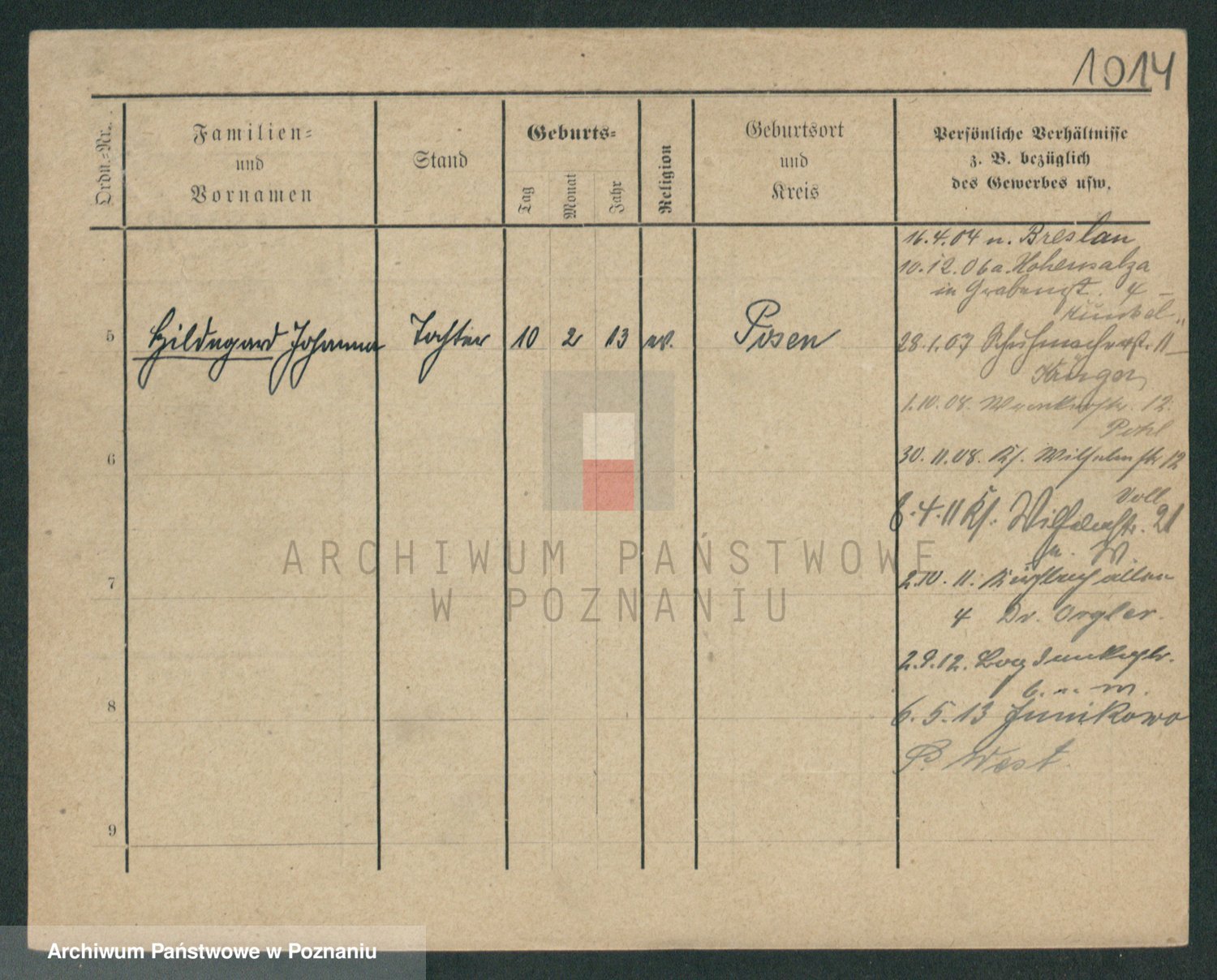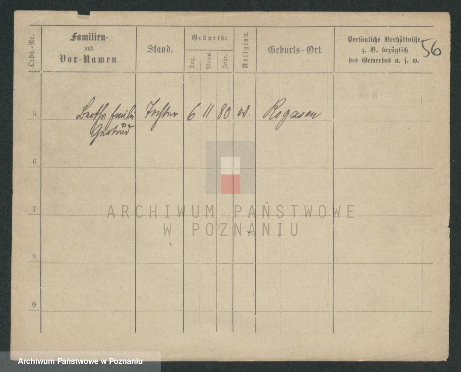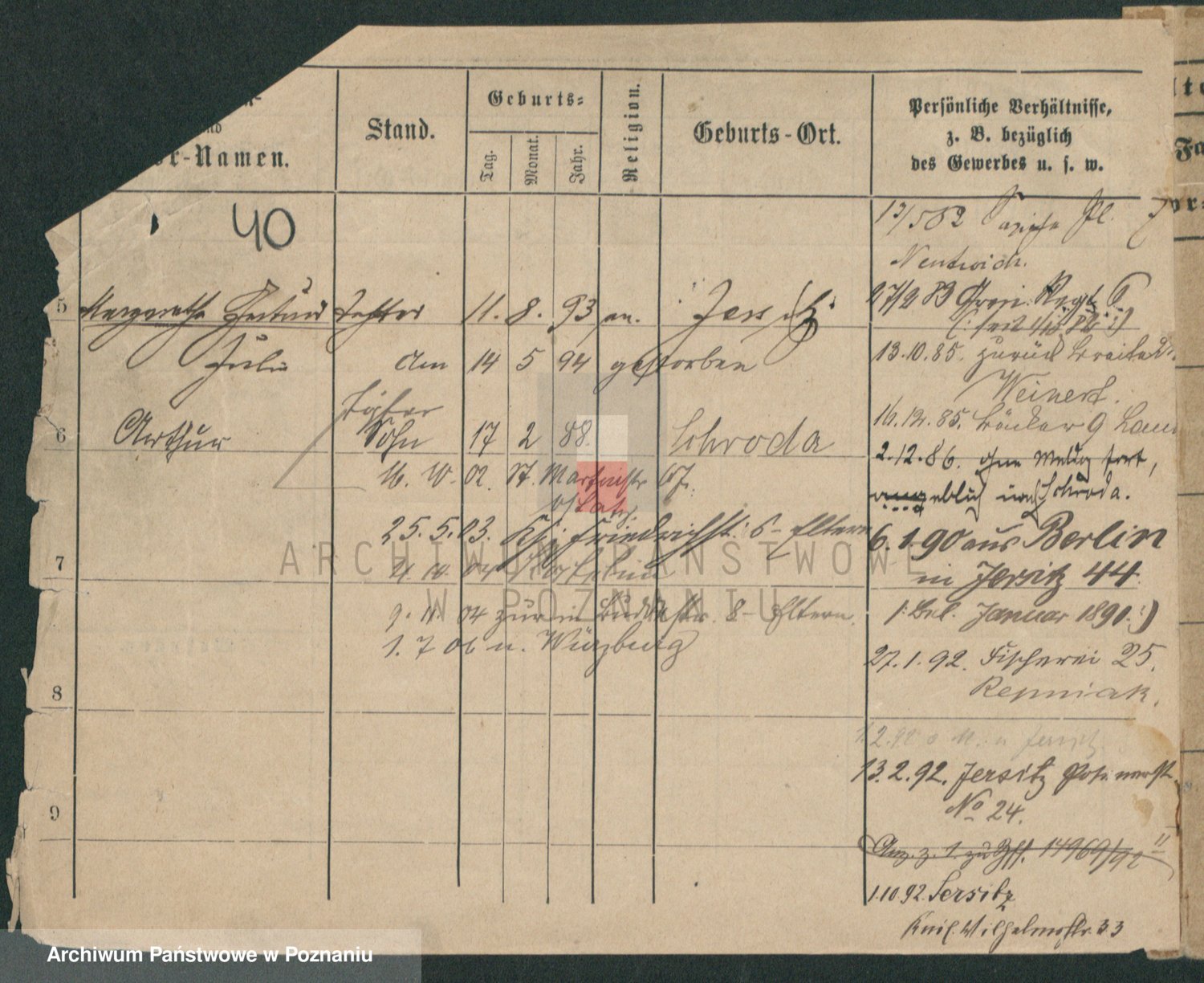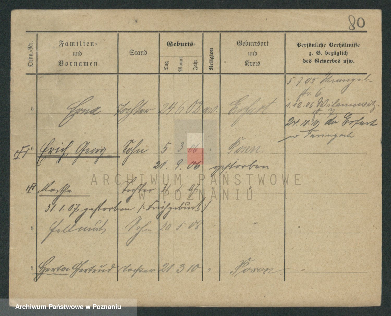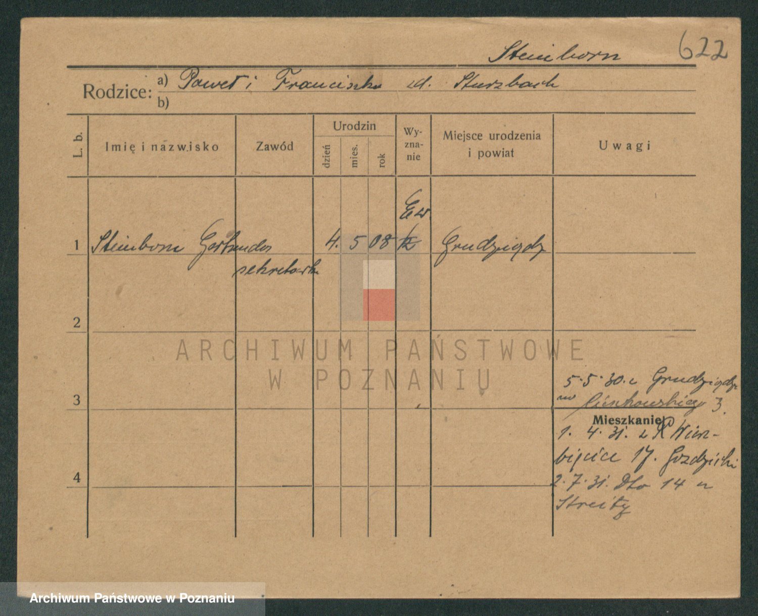 Podgląd karty osobowej dostępny jest po kliknięciu na nazwisko lub ikonkę karty. Można dokonywać powiększenia (ikony na górze) lub przechodzić między kolejnymi skanami (strzałki po bokach).