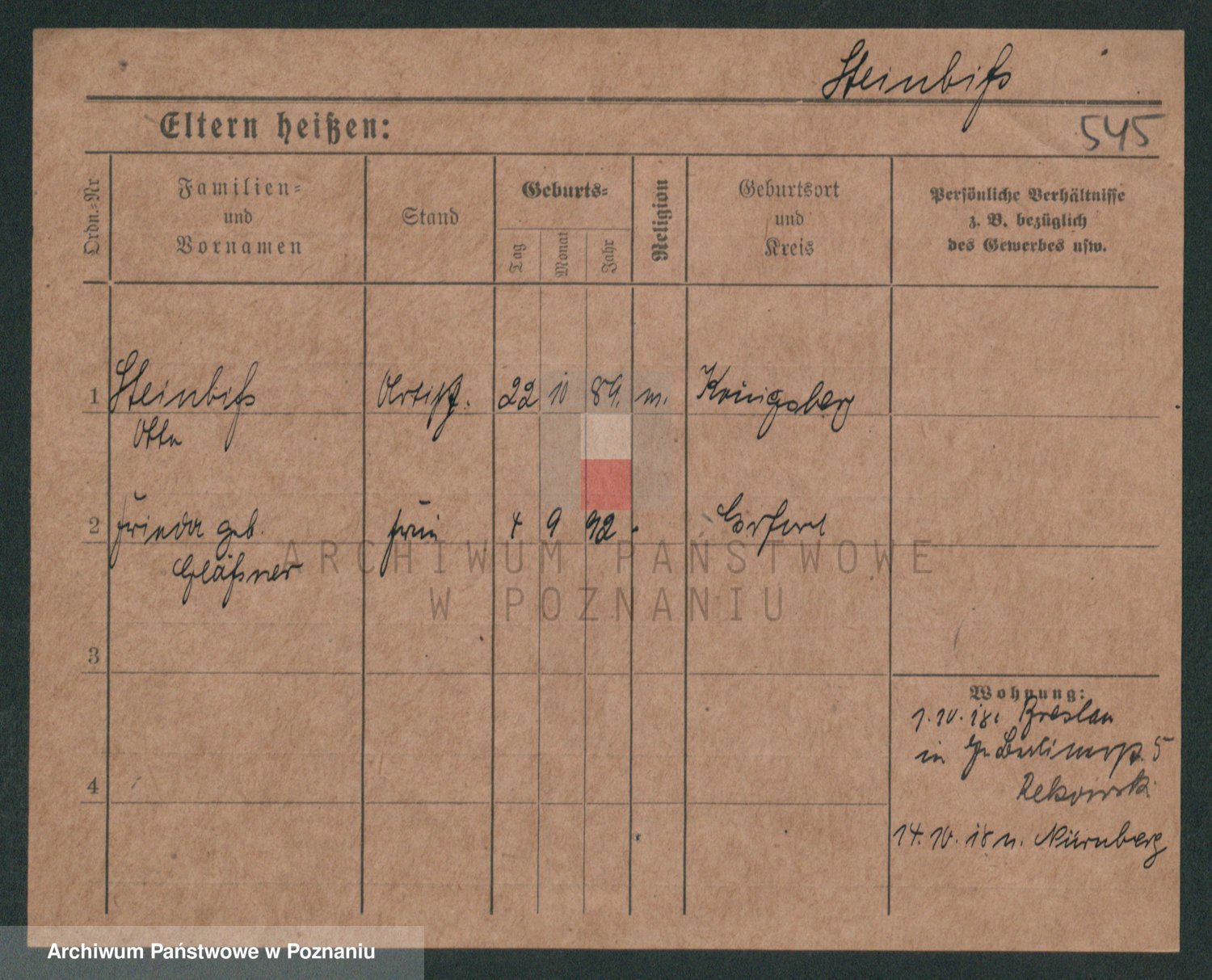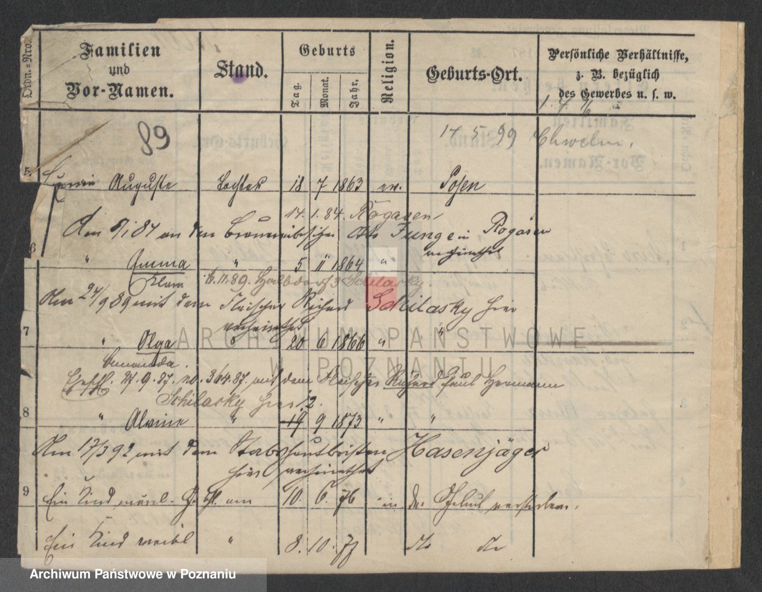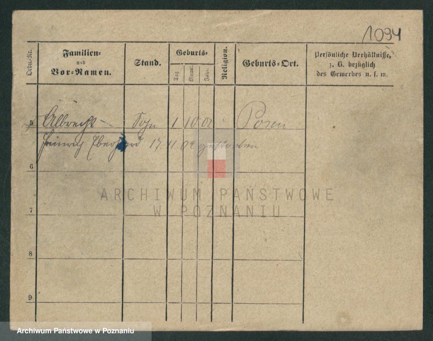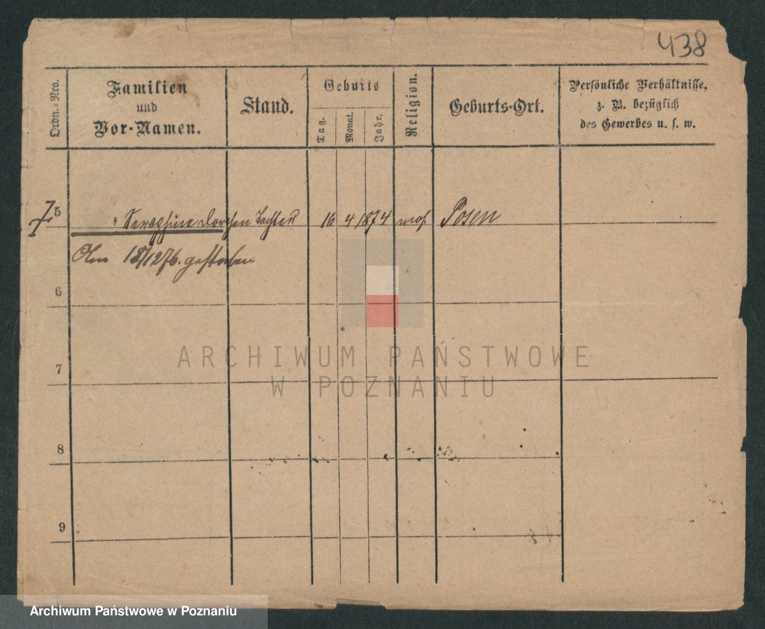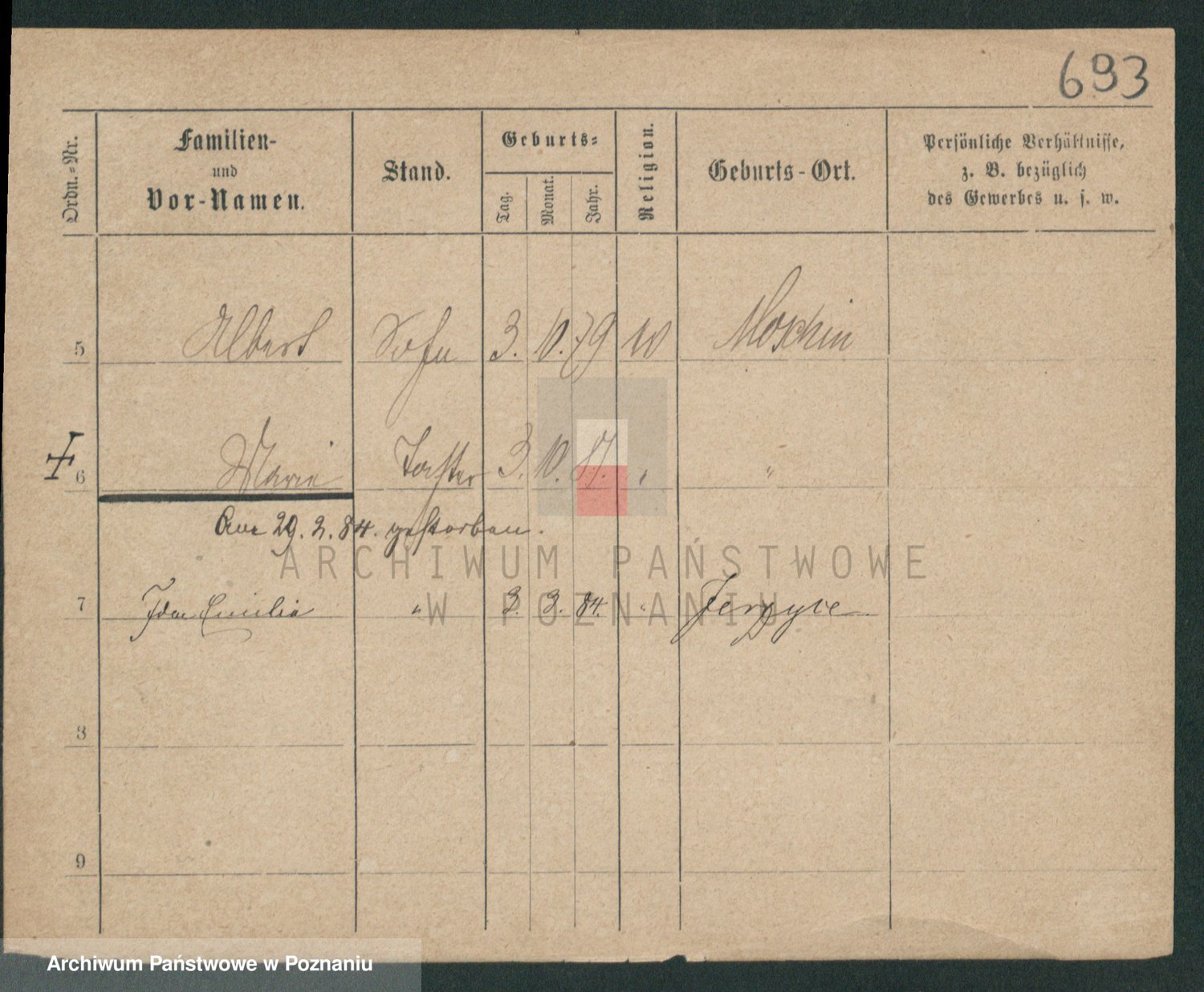 Podgląd karty osobowej dostępny jest po kliknięciu na nazwisko lub ikonkę karty. Można dokonywać powiększenia (ikony na górze) lub przechodzić między kolejnymi skanami (strzałki po bokach).