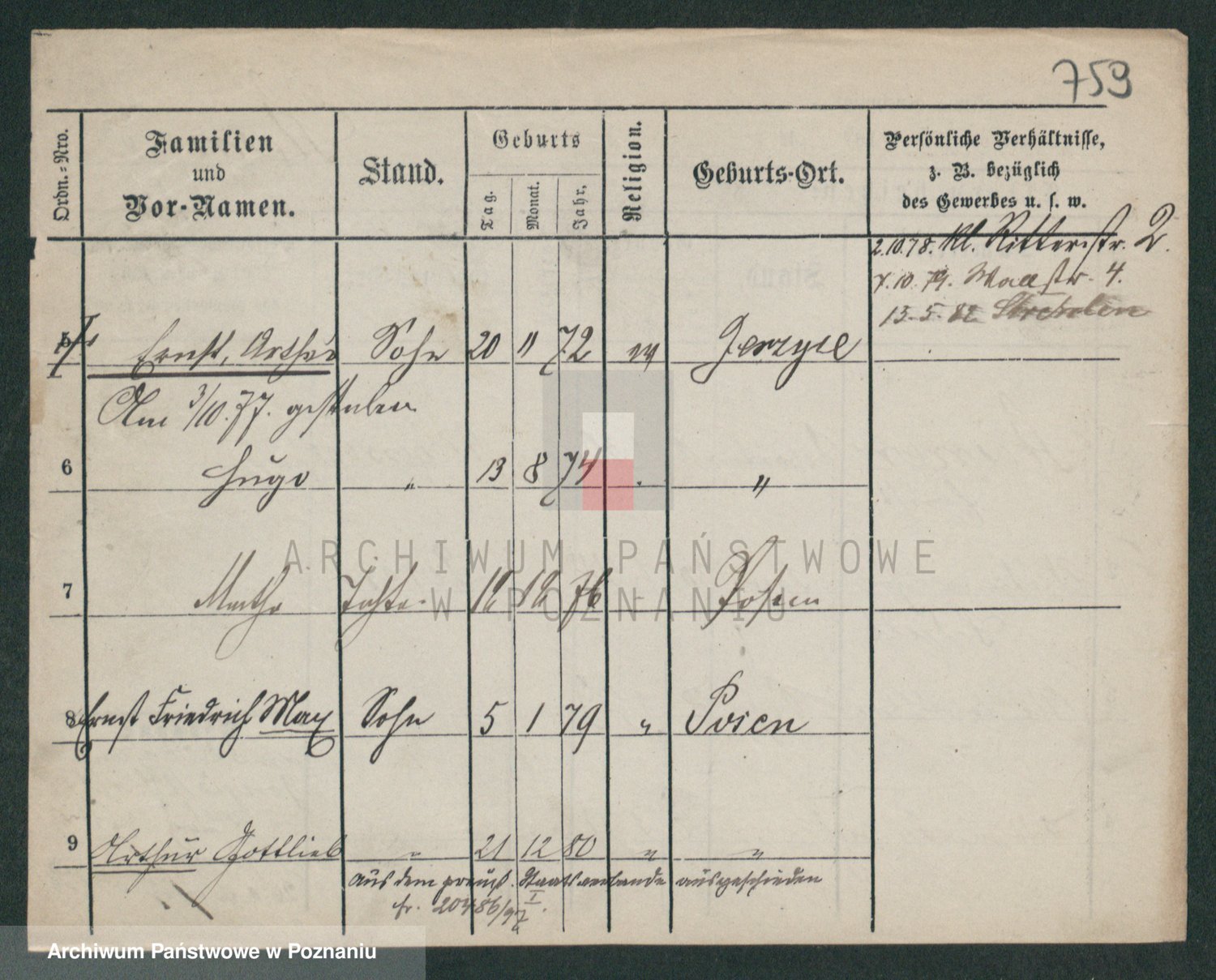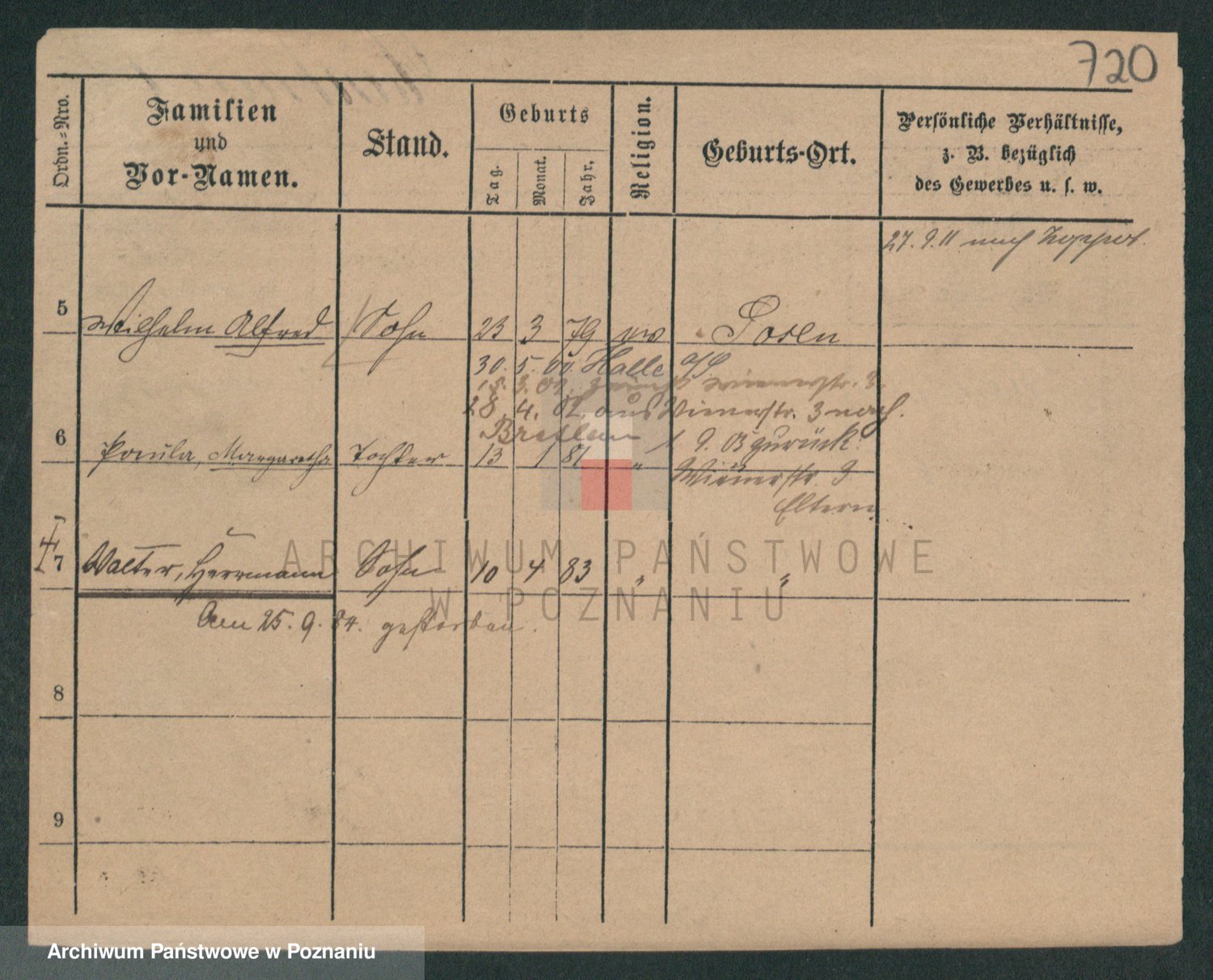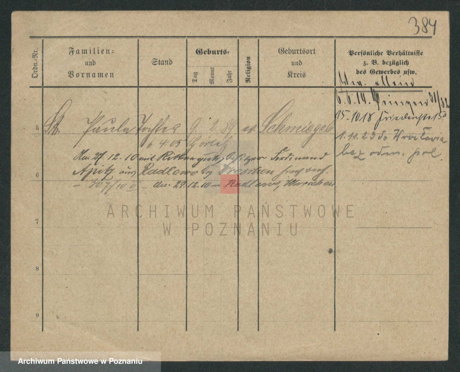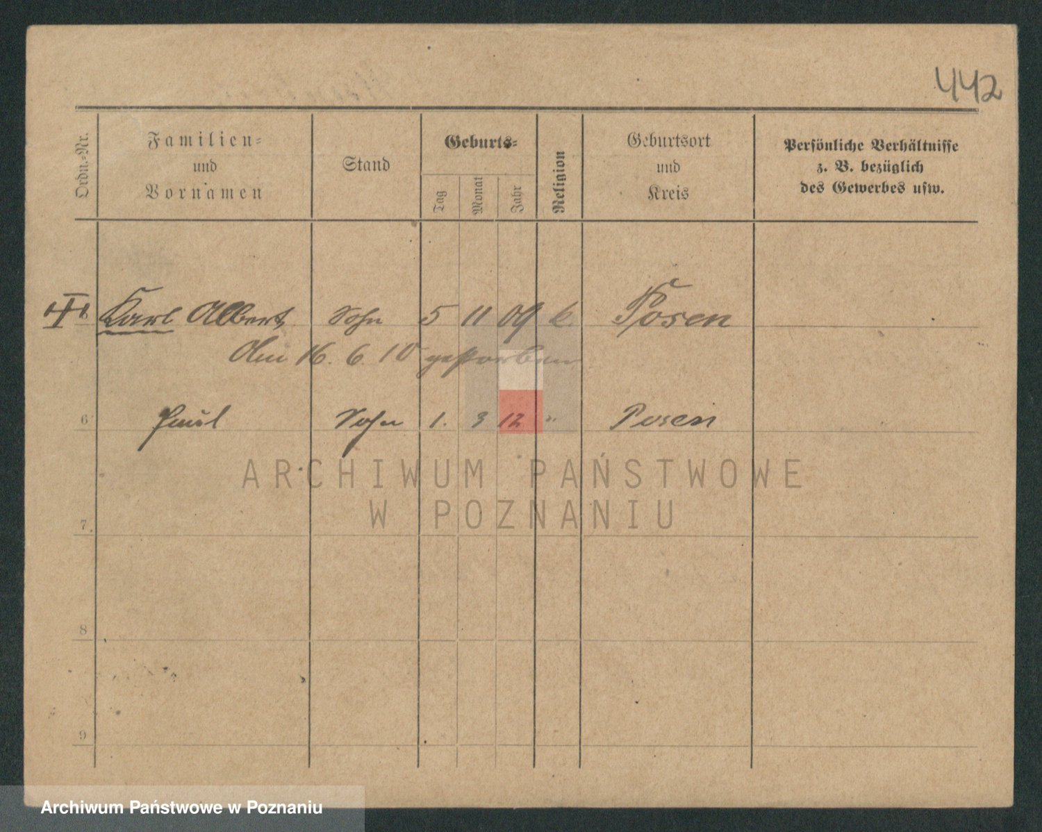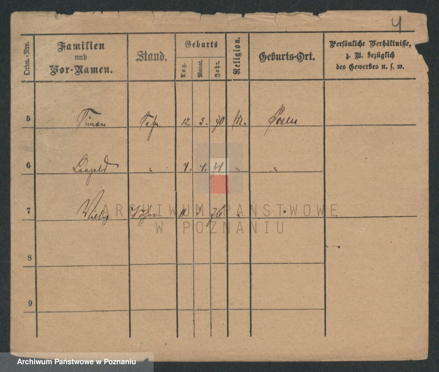 Podgląd karty osobowej dostępny jest po kliknięciu na nazwisko lub ikonkę karty. Można dokonywać powiększenia (ikony na górze) lub przechodzić między kolejnymi skanami (strzałki po bokach).