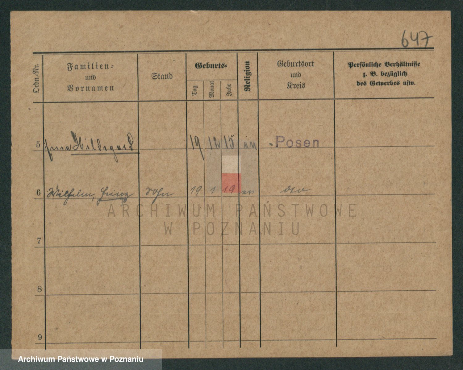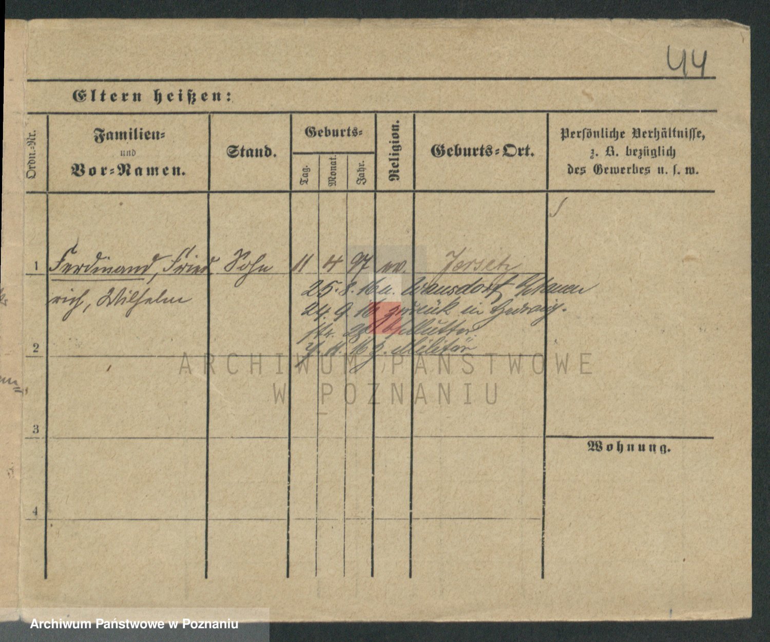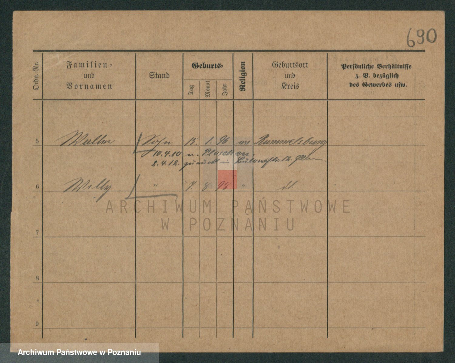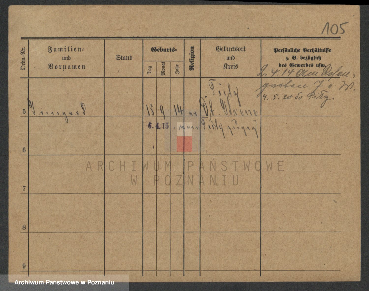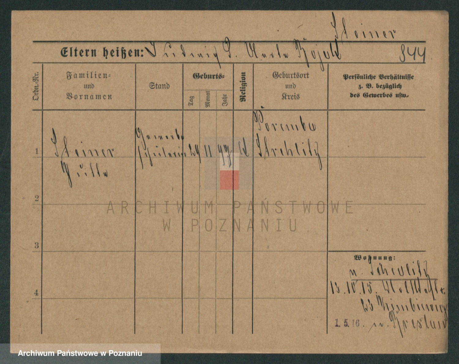 Podgląd karty osobowej dostępny jest po kliknięciu na nazwisko lub ikonkę karty. Można dokonywać powiększenia (ikony na górze) lub przechodzić między kolejnymi skanami (strzałki po bokach).