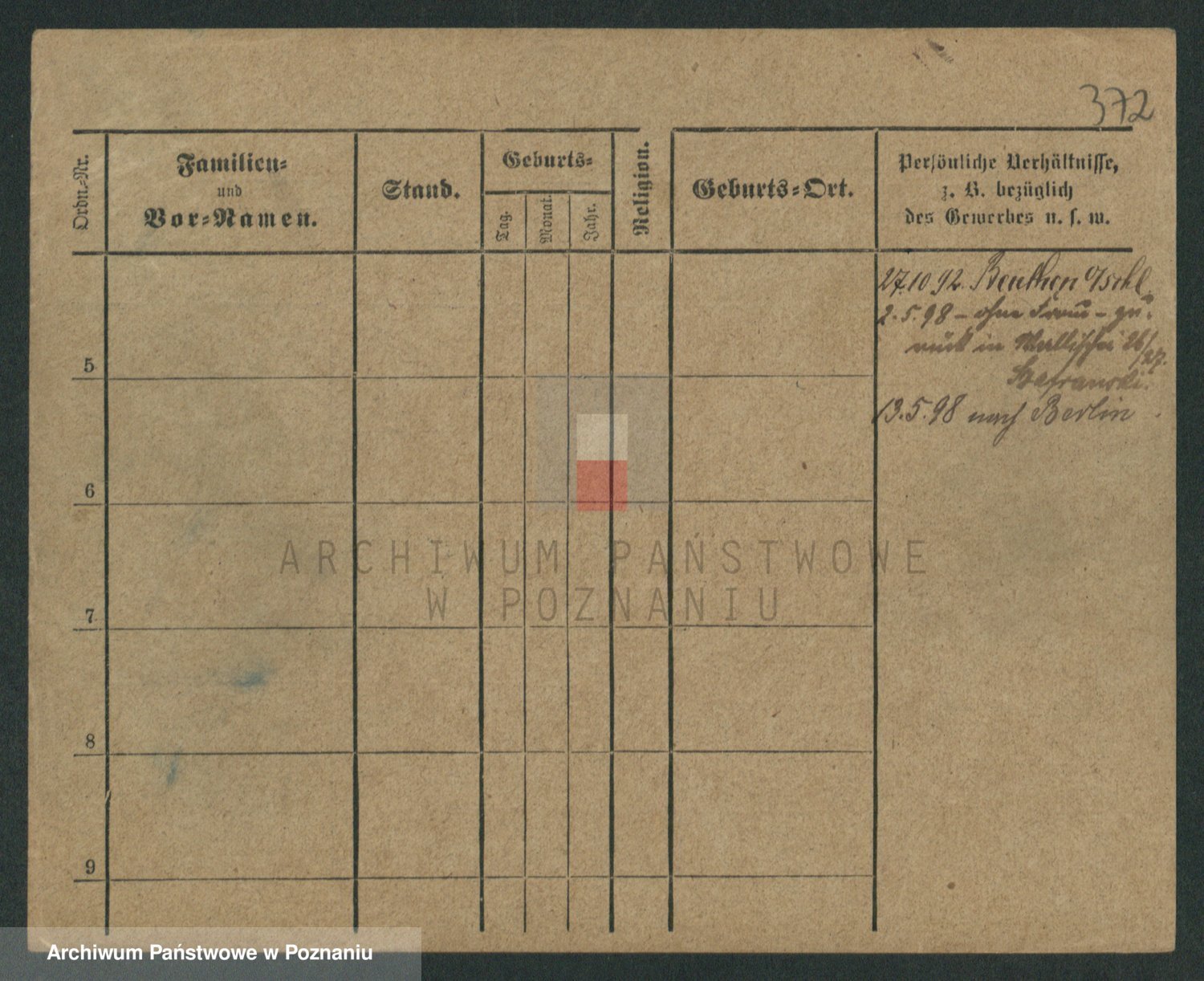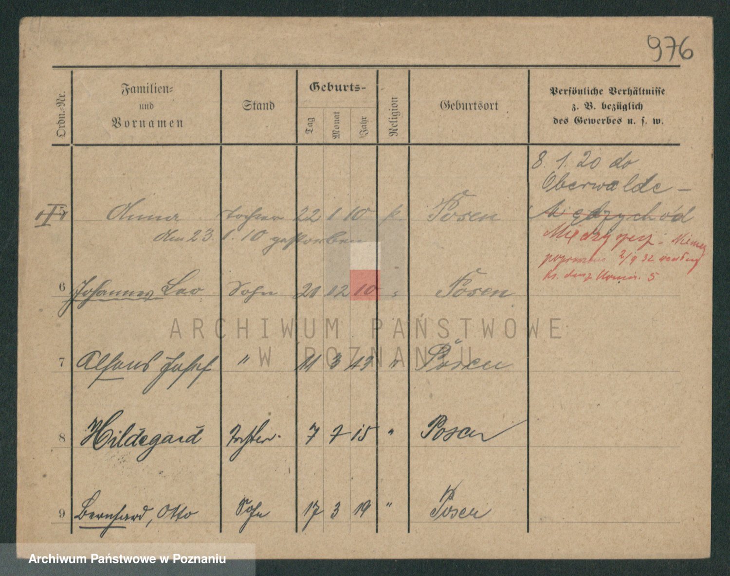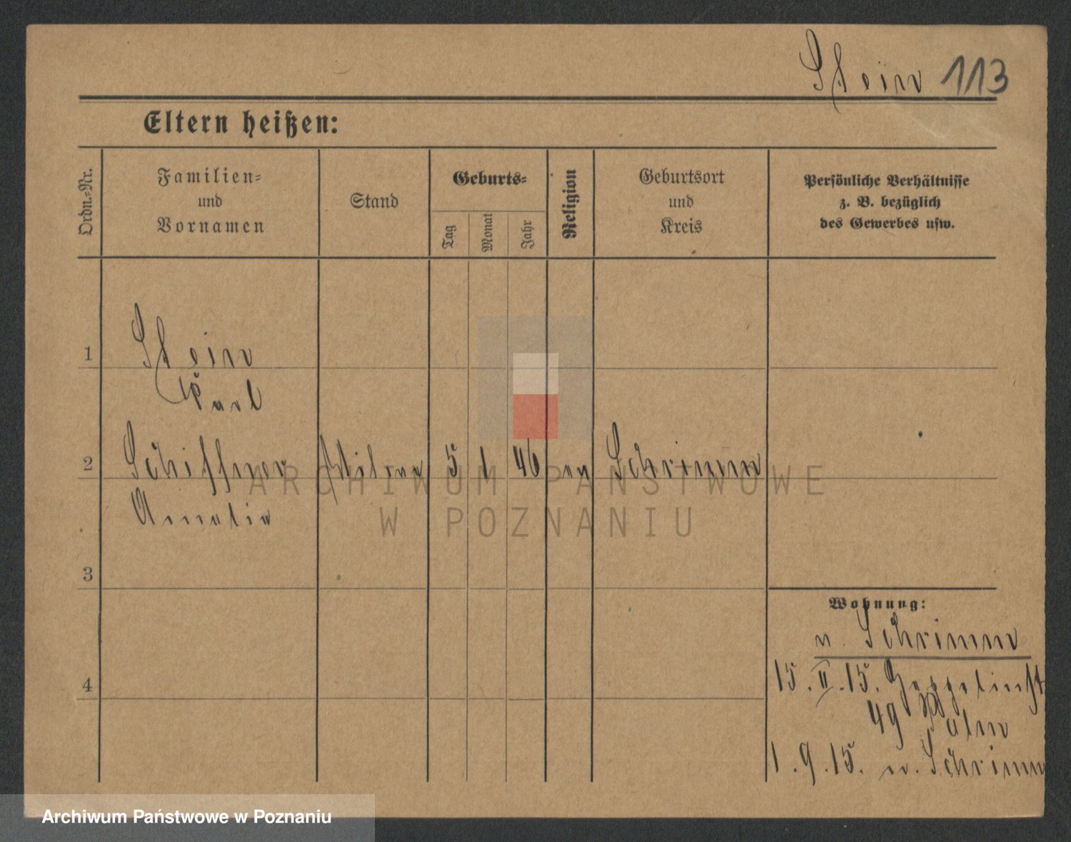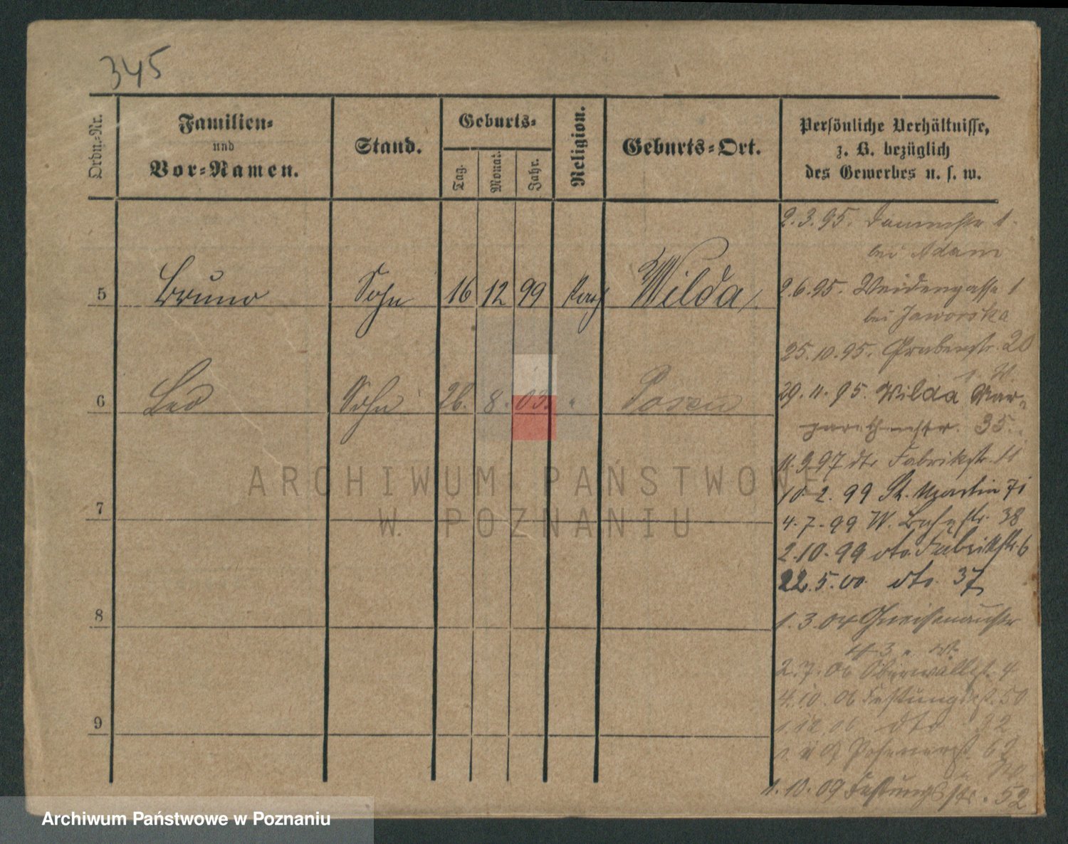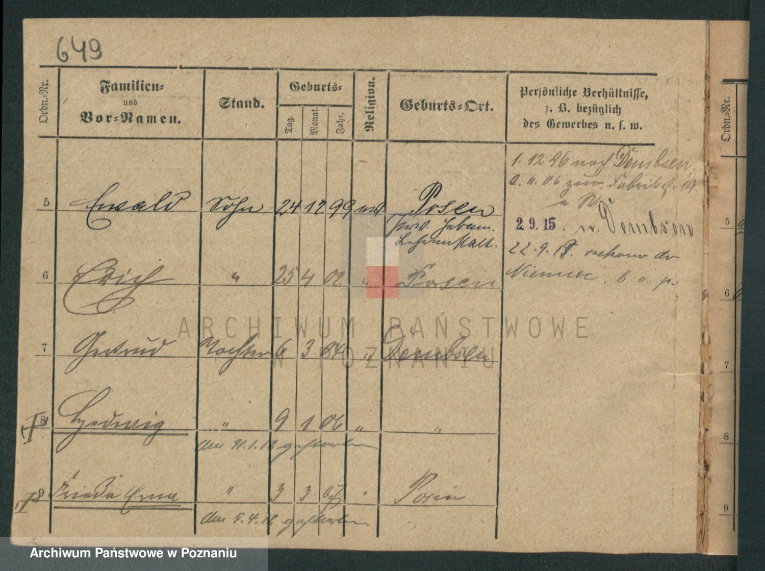 Podgląd karty osobowej dostępny jest po kliknięciu na nazwisko lub ikonkę karty. Można dokonywać powiększenia (ikony na górze) lub przechodzić między kolejnymi skanami (strzałki po bokach).