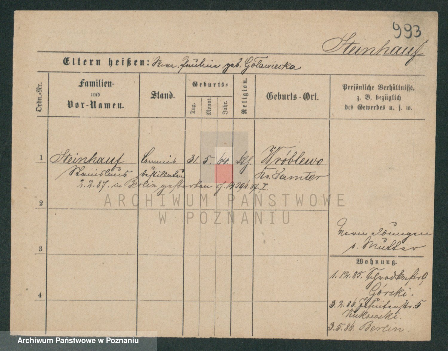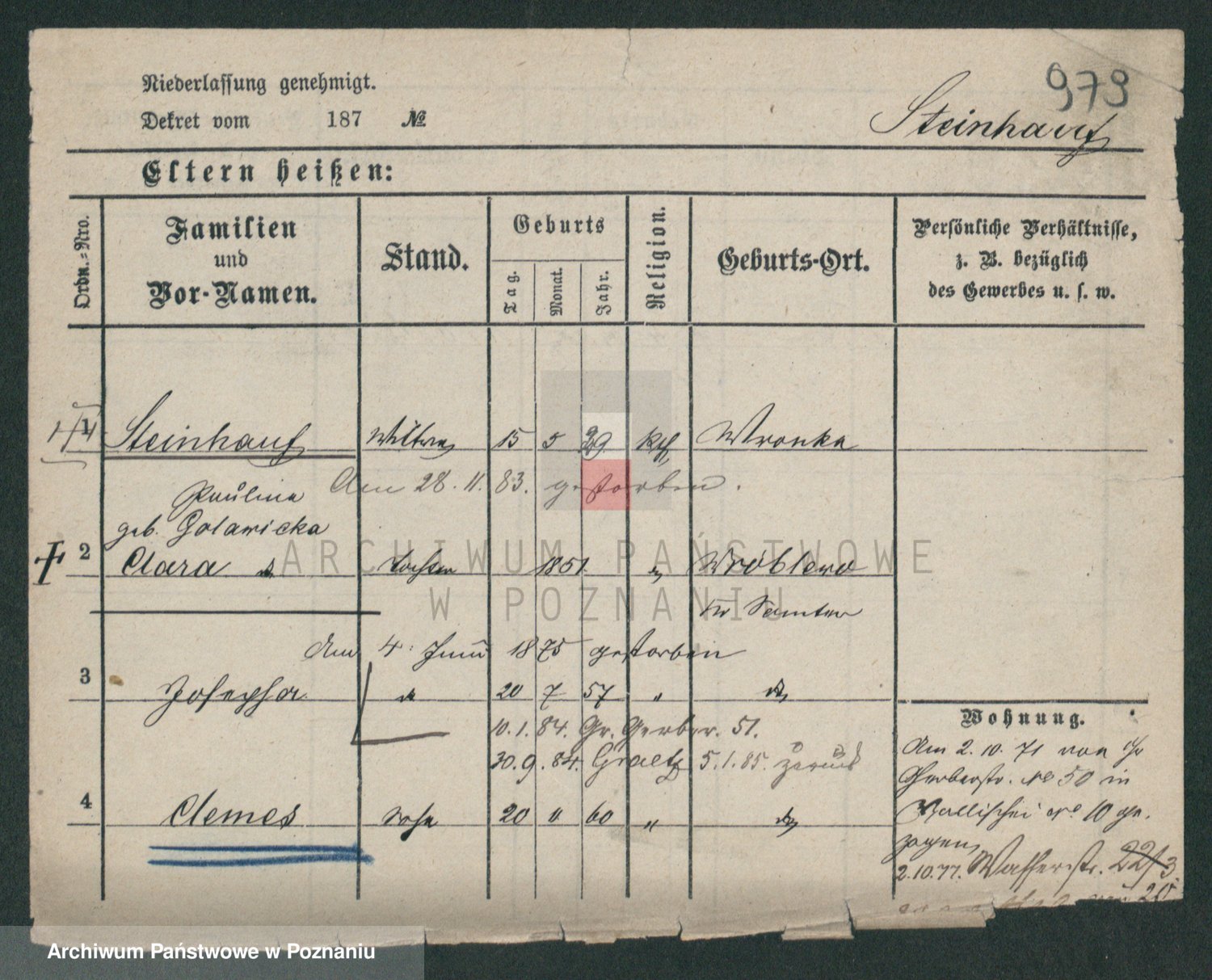 Stein z.d. Jaretzki, Emma