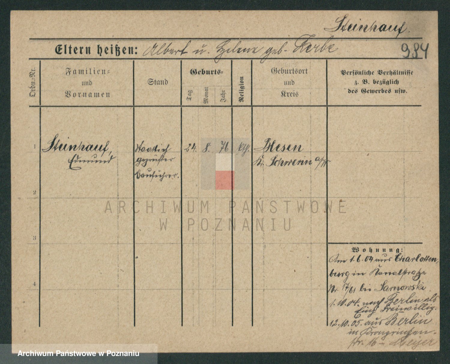 Stein, Gustav Adolf Ernst