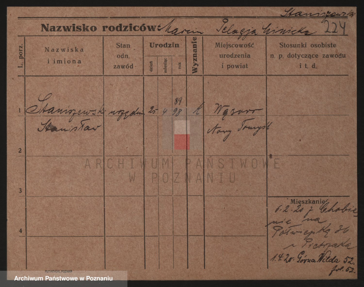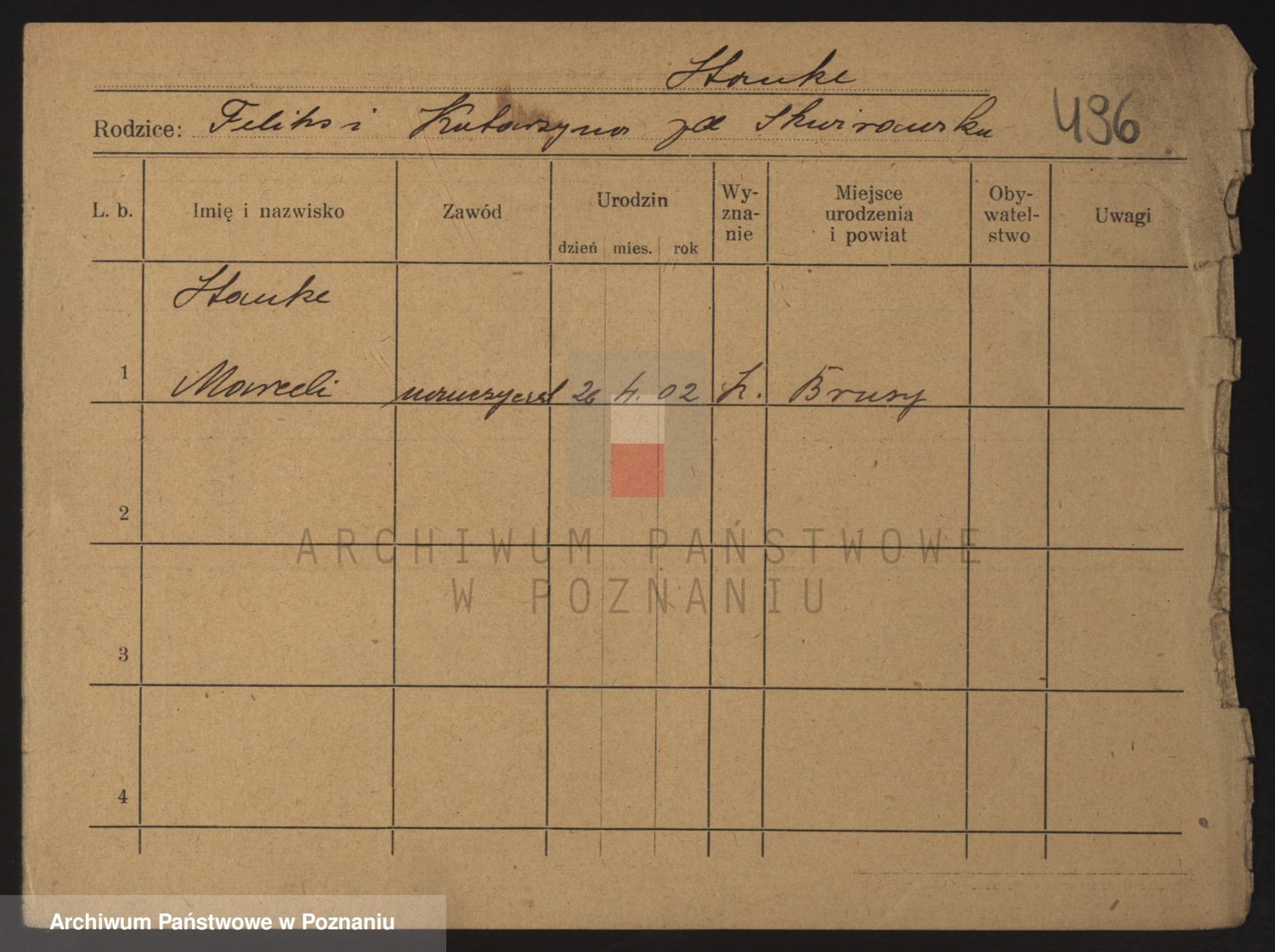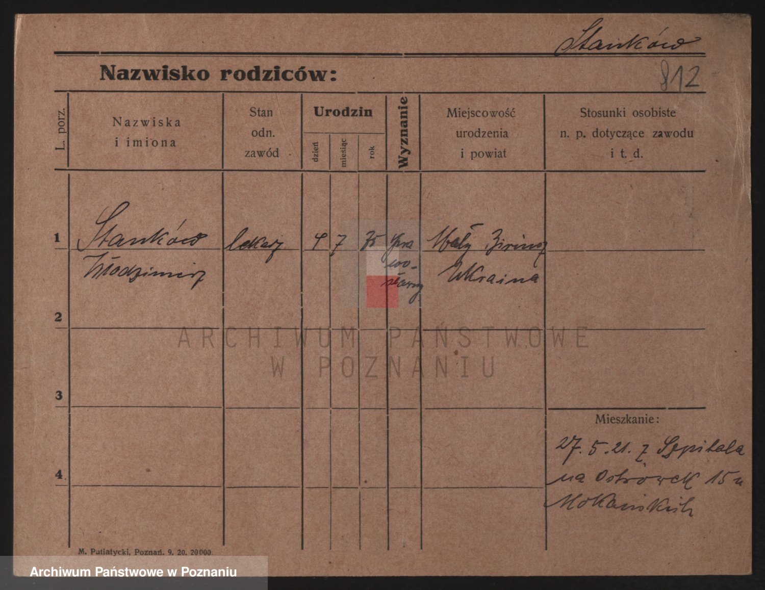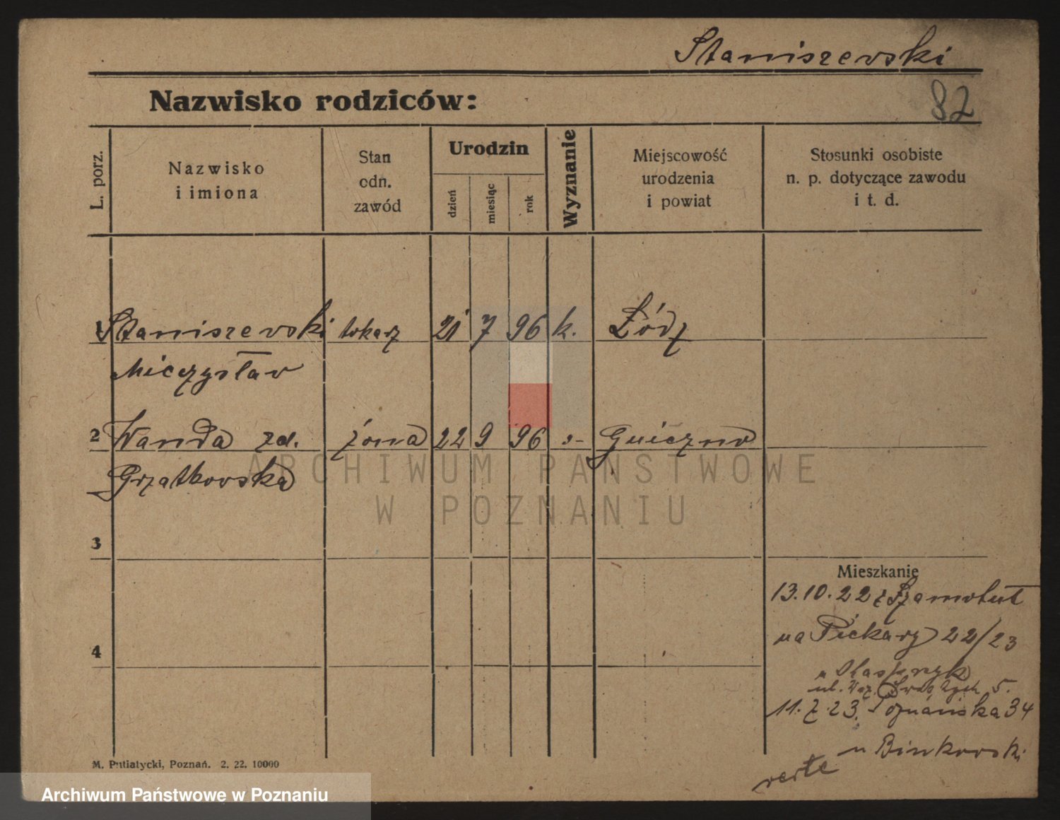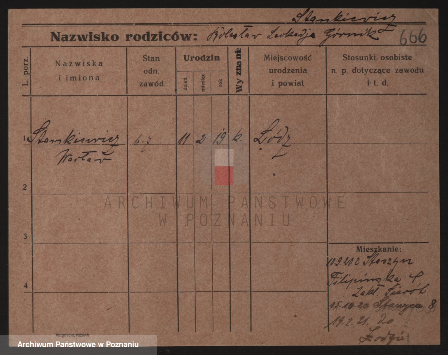 Podgląd karty osobowej dostępny jest po kliknięciu na nazwisko lub ikonkę karty. Można dokonywać powiększenia (ikony na górze) lub przechodzić między kolejnymi skanami (strzałki po bokach).