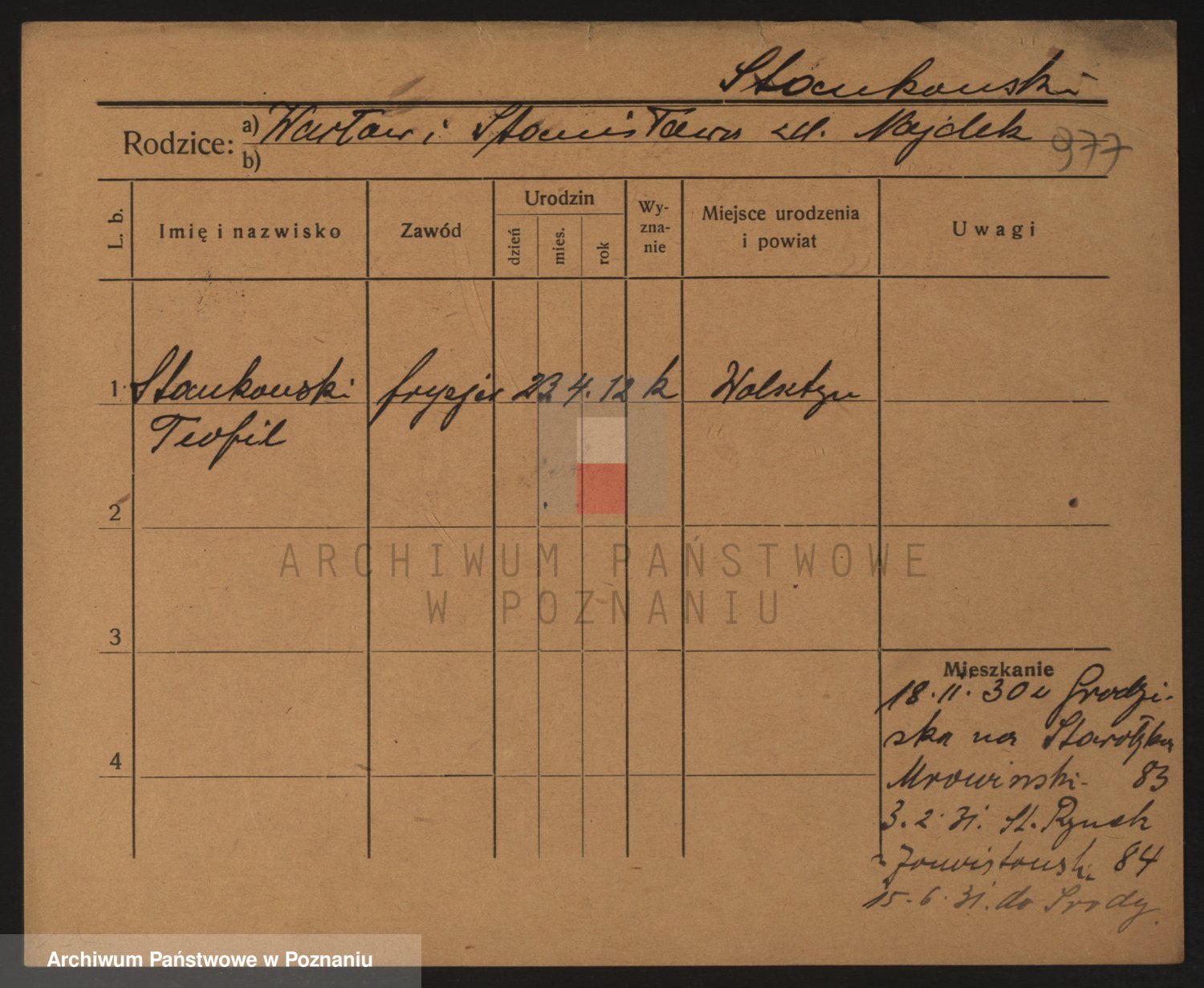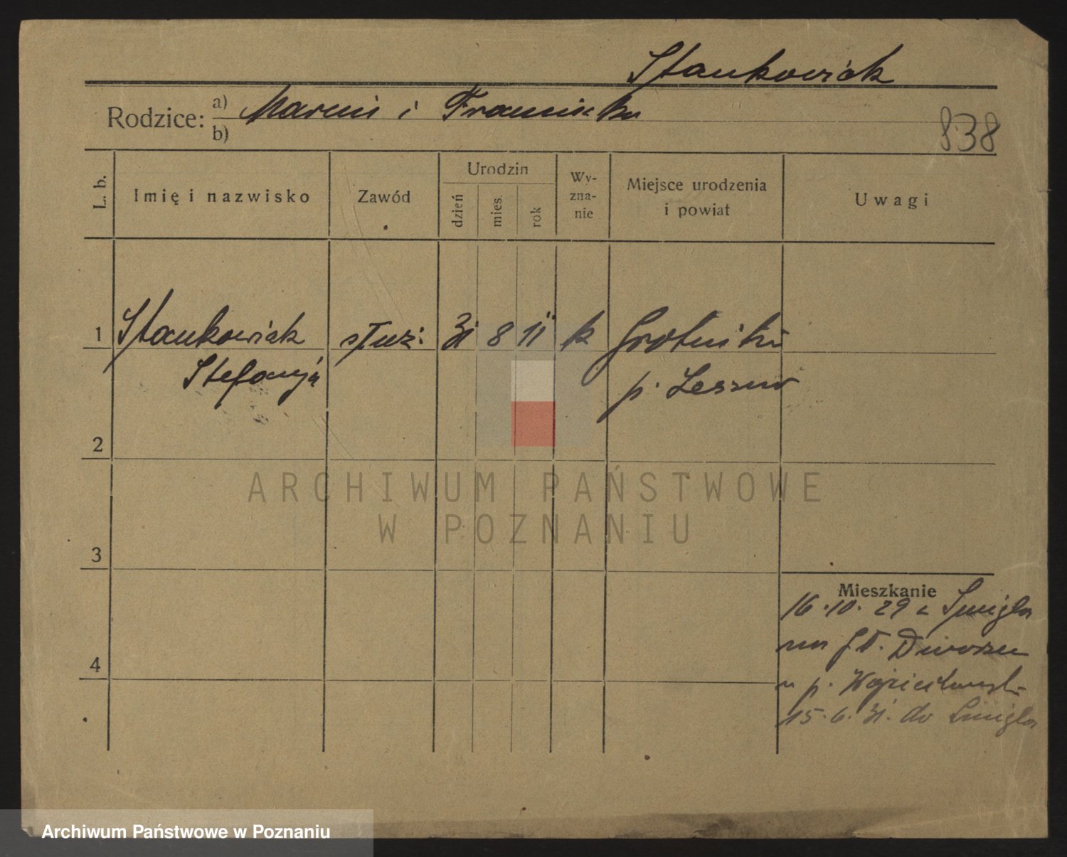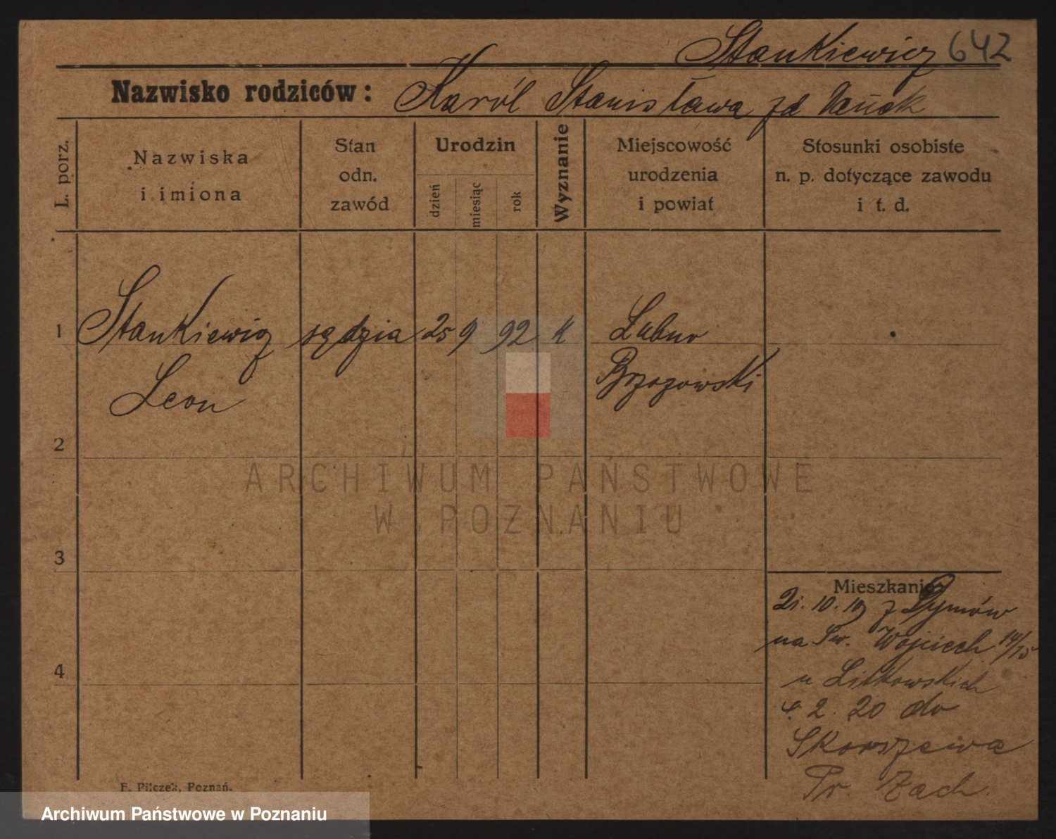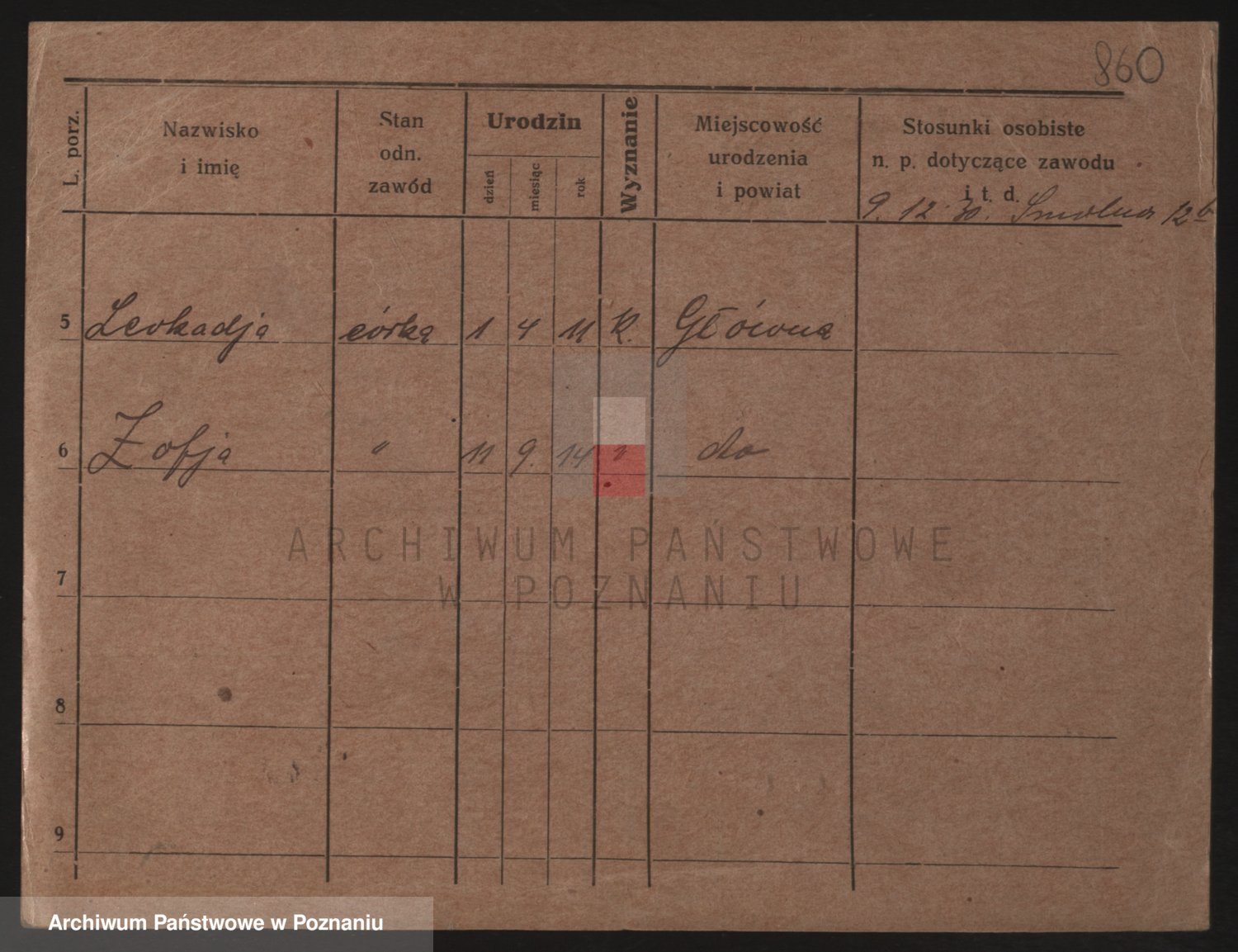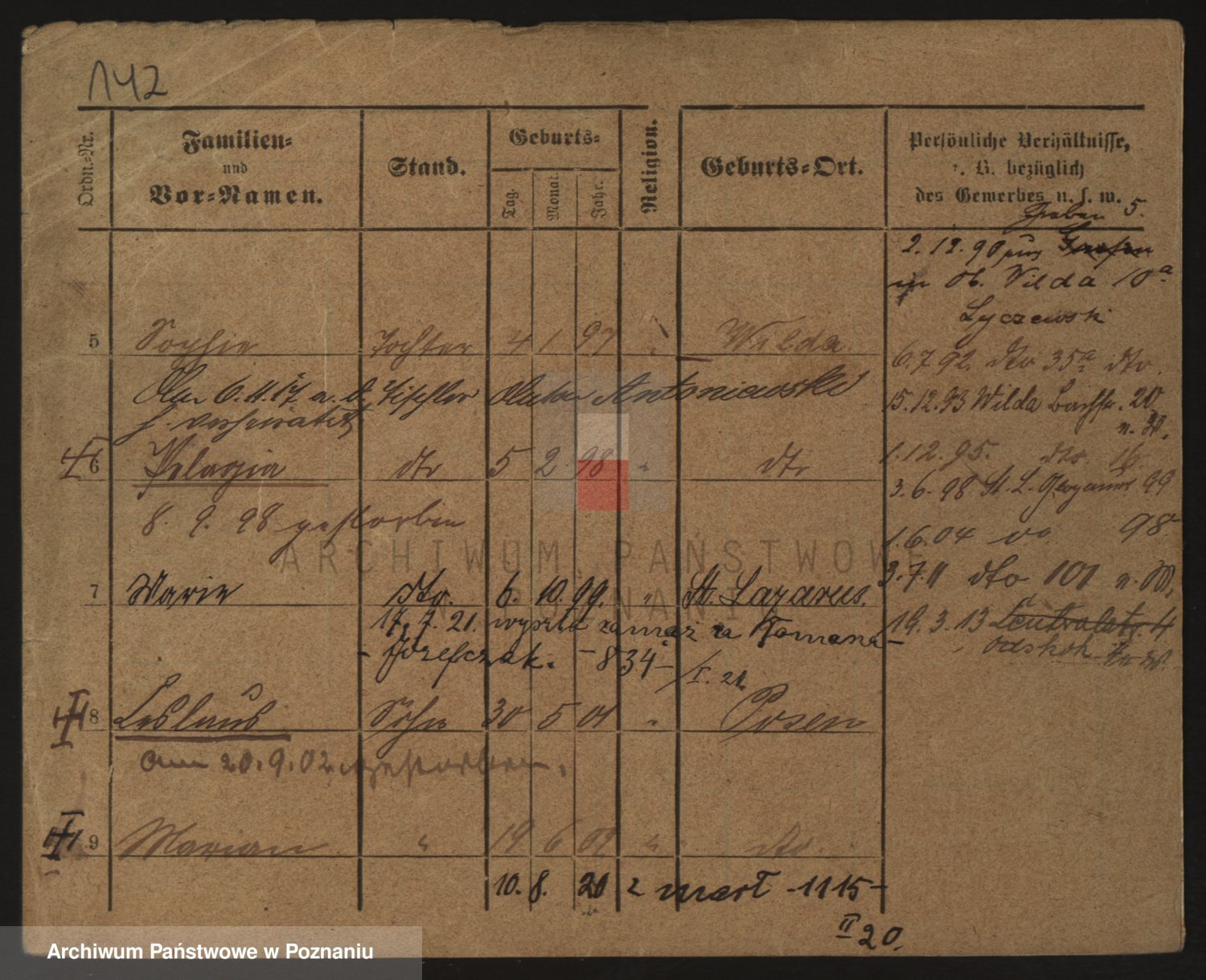 Podgląd karty osobowej dostępny jest po kliknięciu na nazwisko lub ikonkę karty. Można dokonywać powiększenia (ikony na górze) lub przechodzić między kolejnymi skanami (strzałki po bokach).