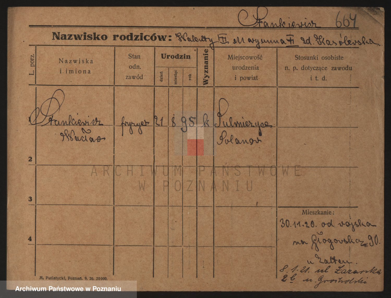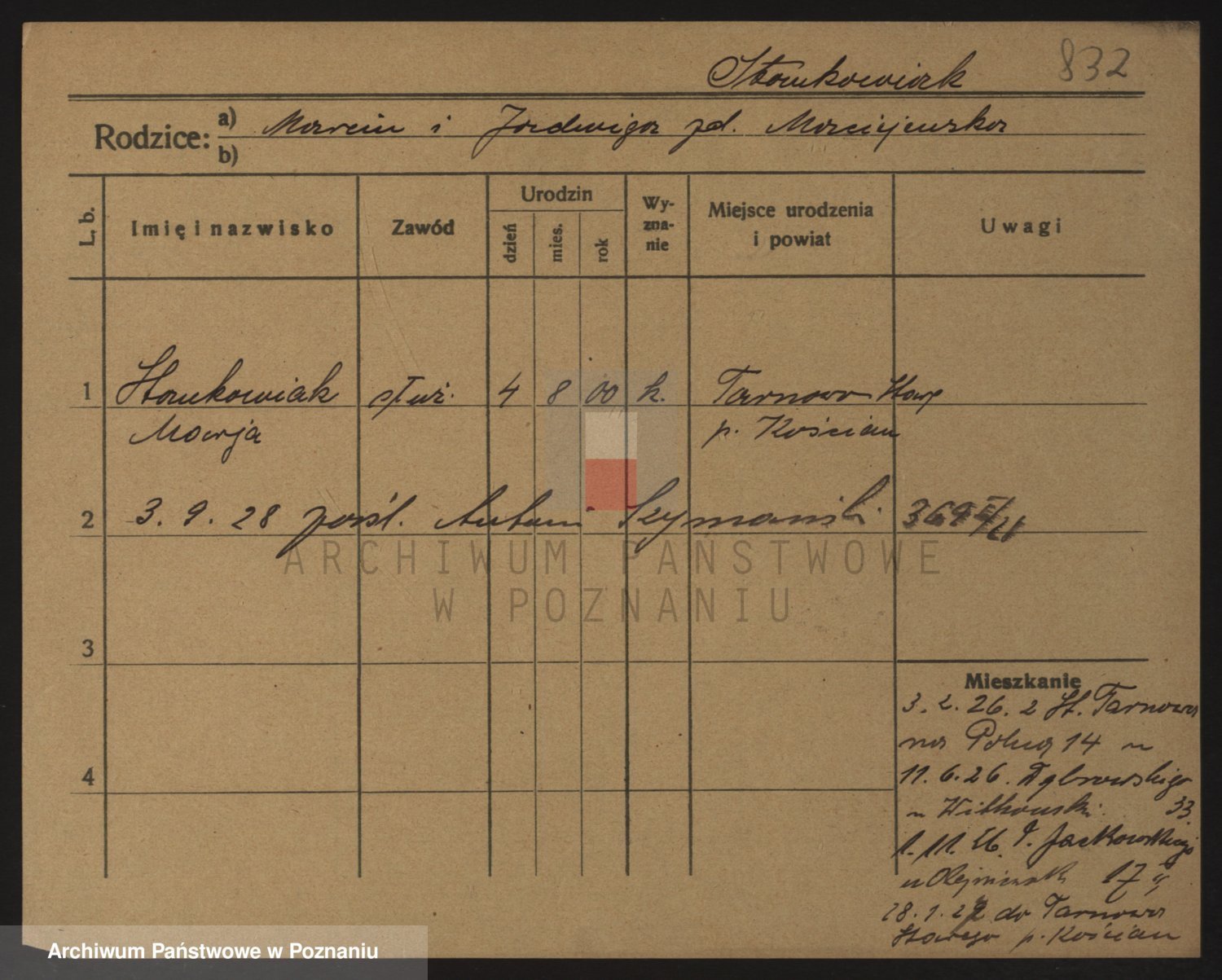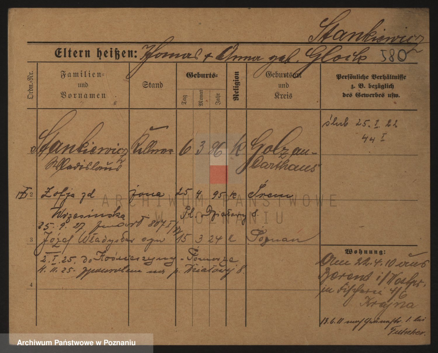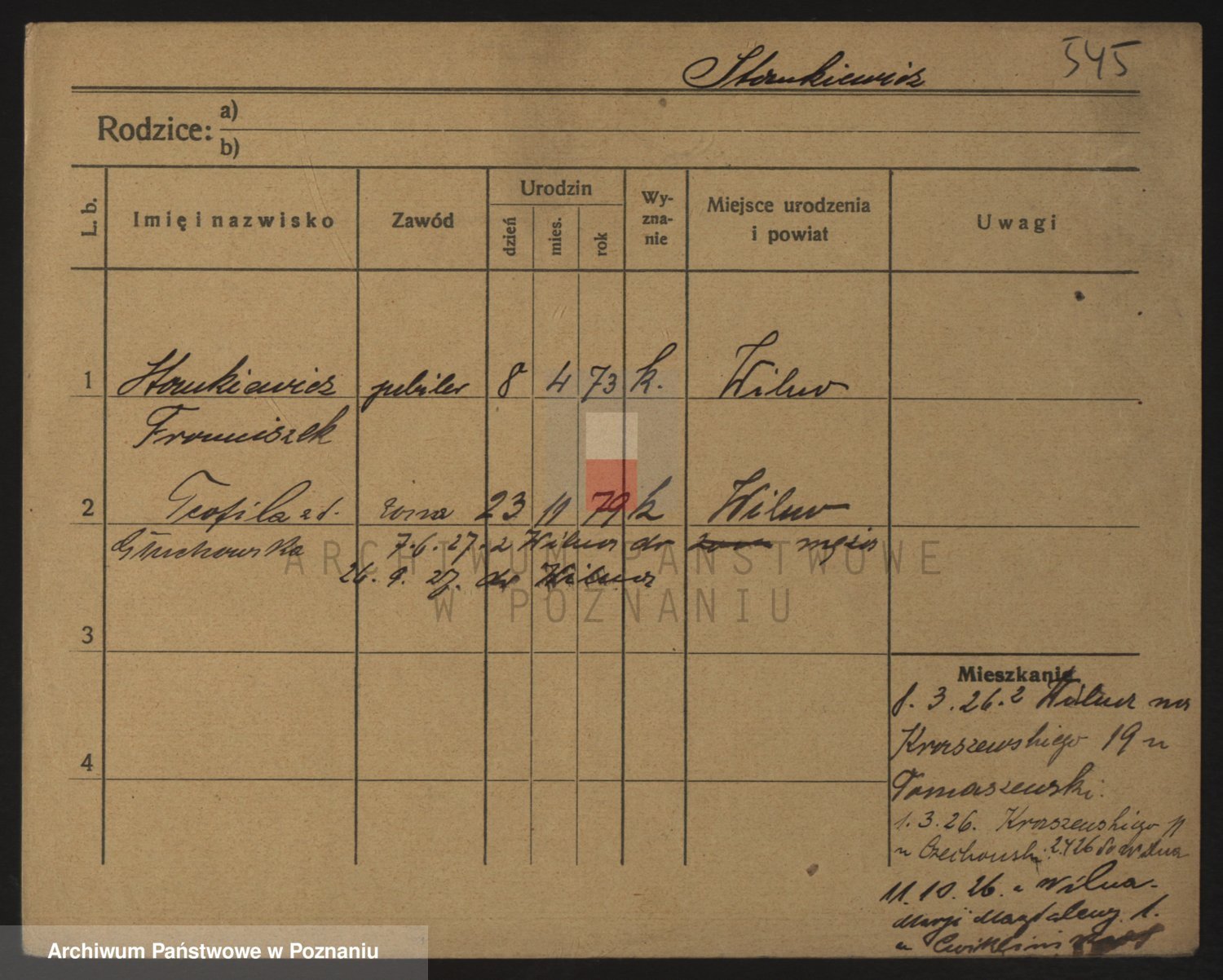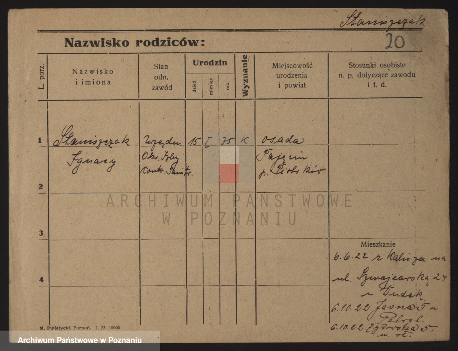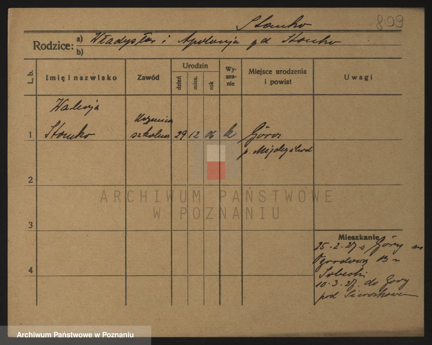 Podgląd karty osobowej dostępny jest po kliknięciu na nazwisko lub ikonkę karty. Można dokonywać powiększenia (ikony na górze) lub przechodzić między kolejnymi skanami (strzałki po bokach).