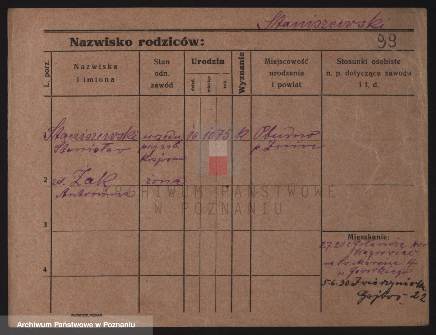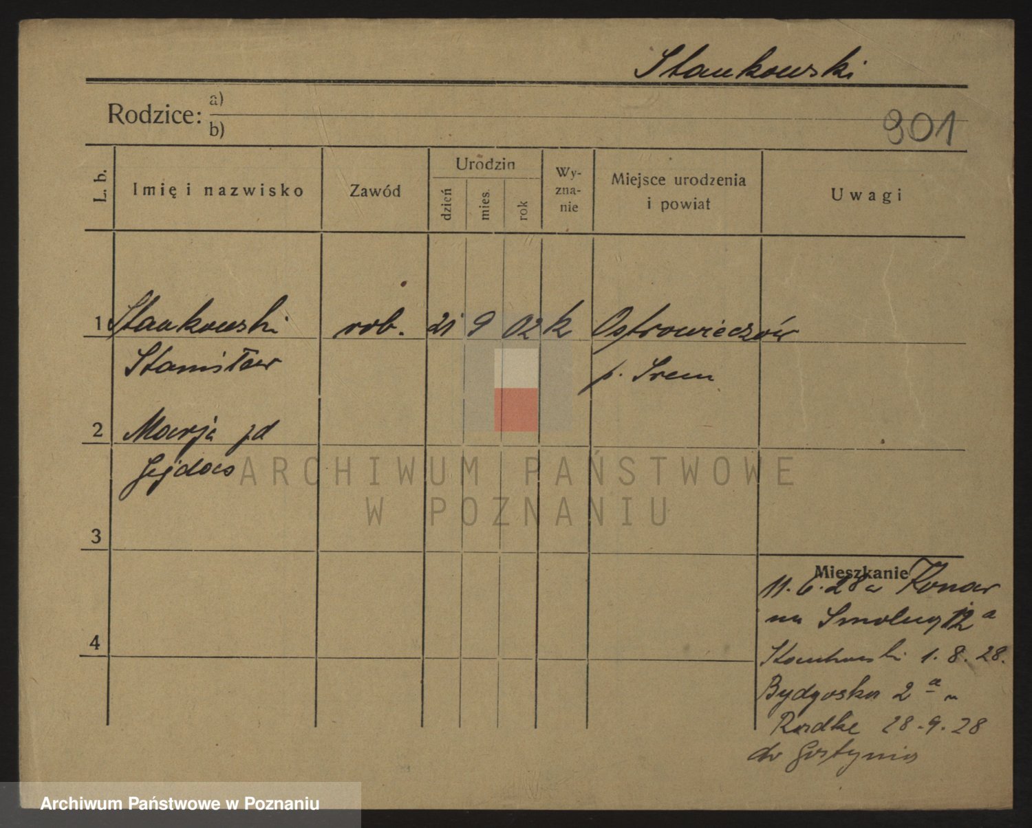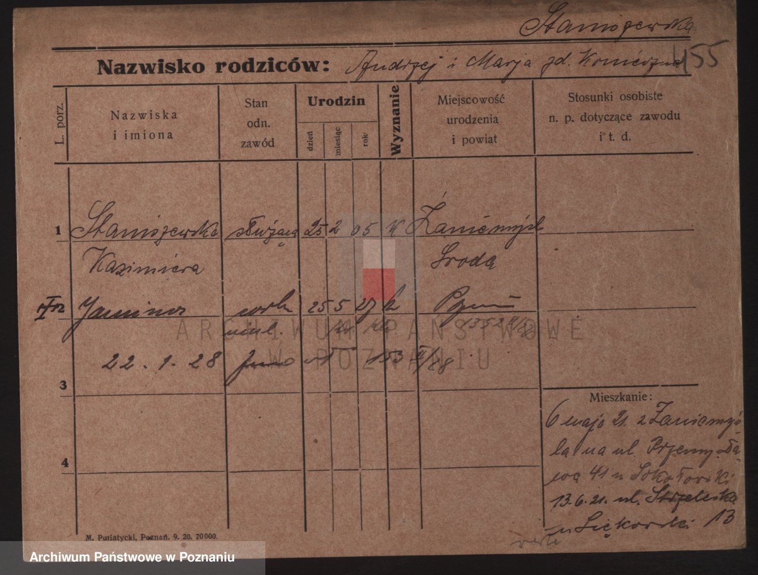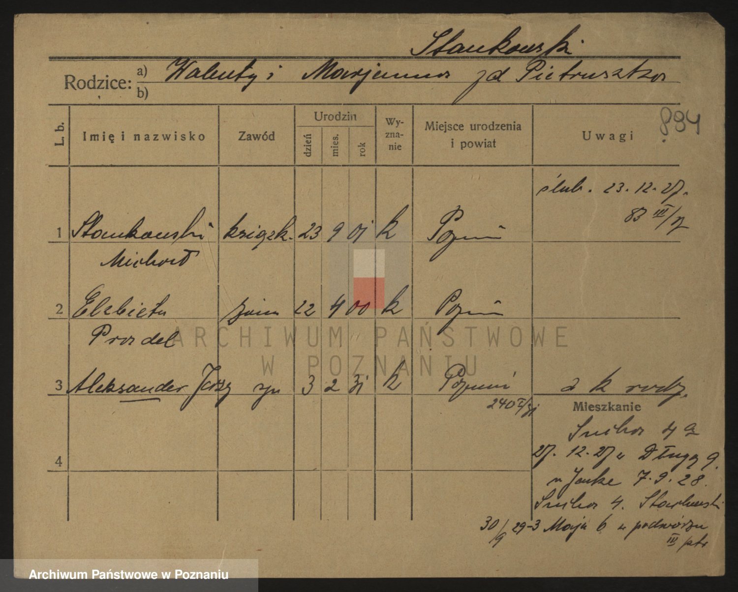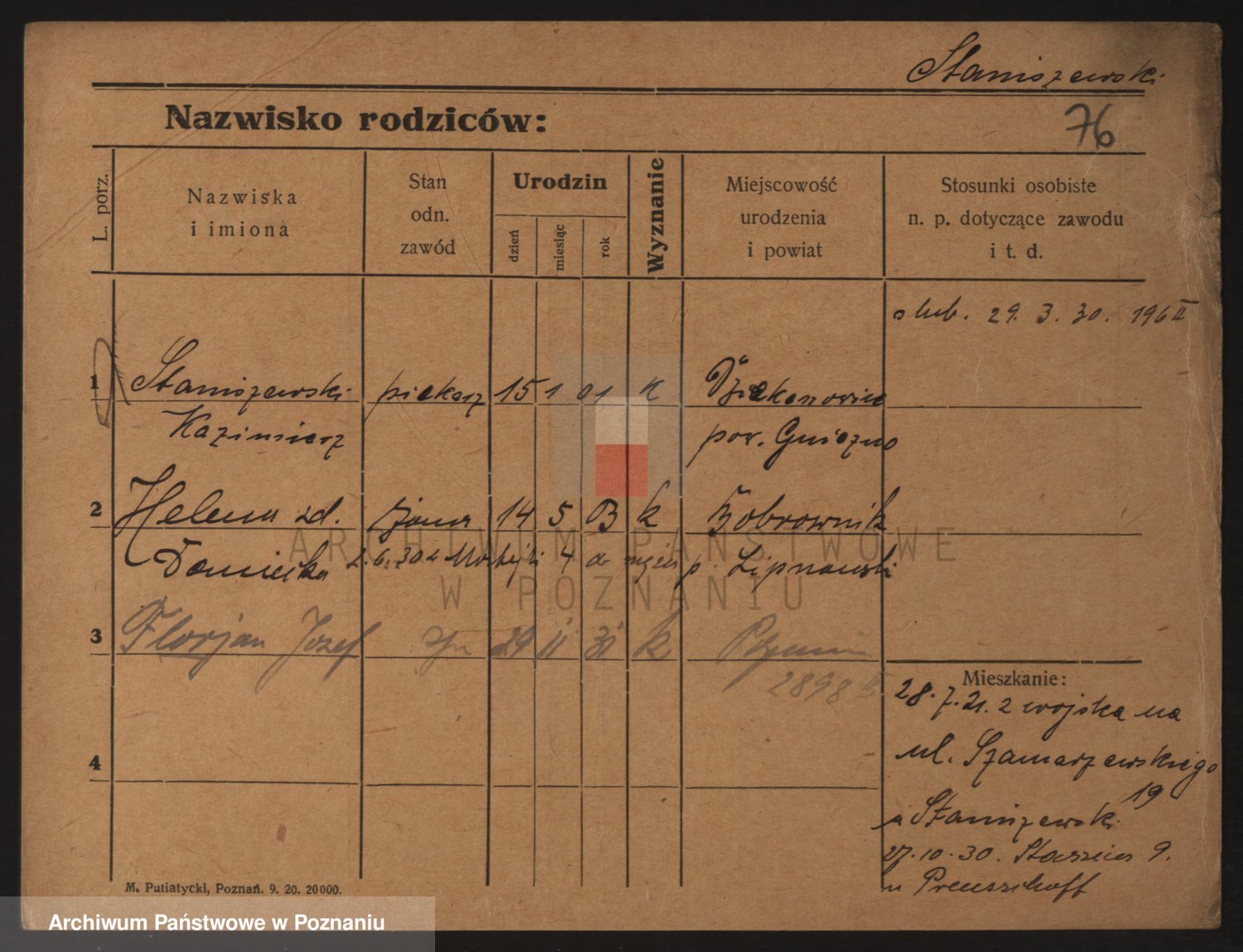 Podgląd karty osobowej dostępny jest po kliknięciu na nazwisko lub ikonkę karty. Można dokonywać powiększenia (ikony na górze) lub przechodzić między kolejnymi skanami (strzałki po bokach).