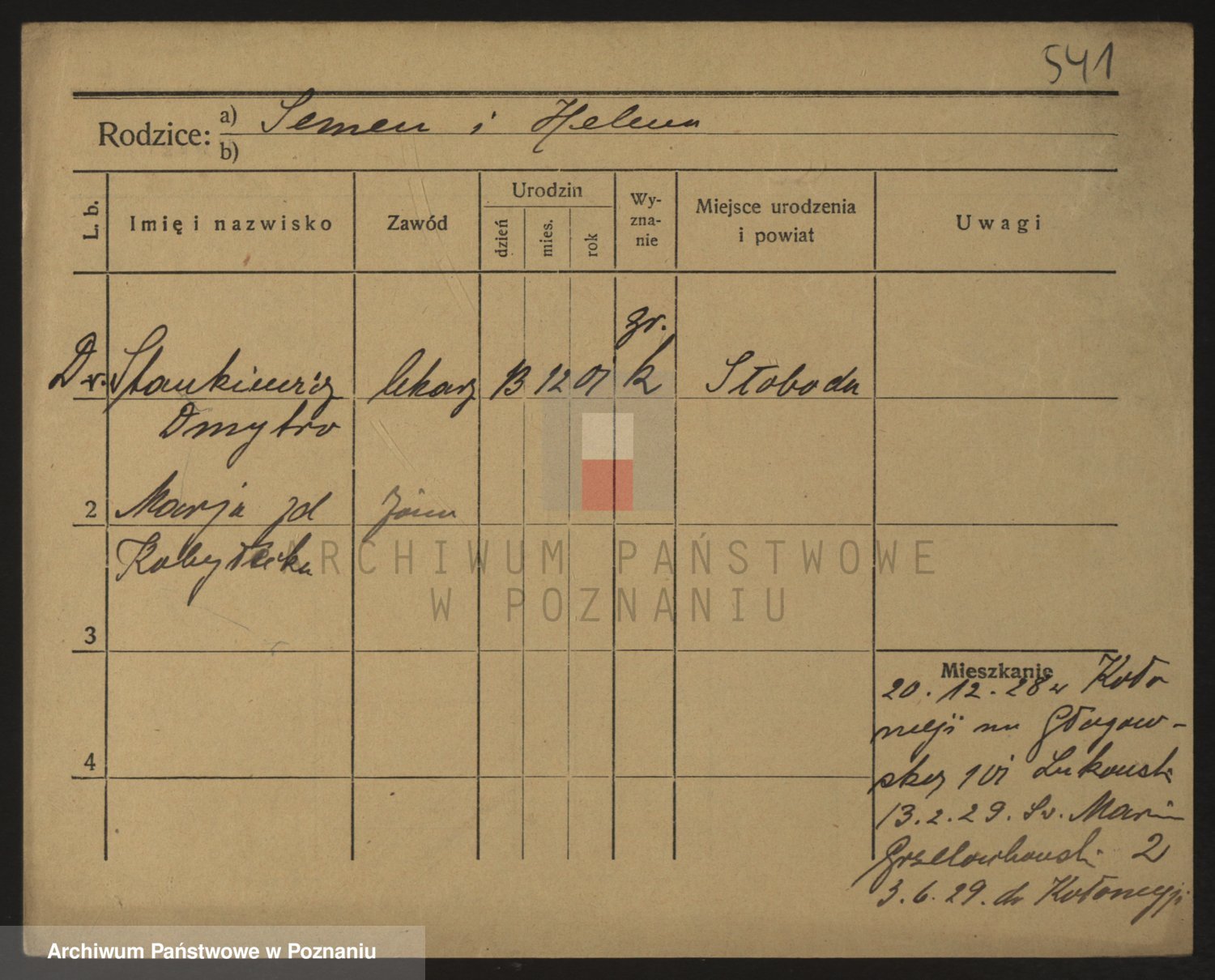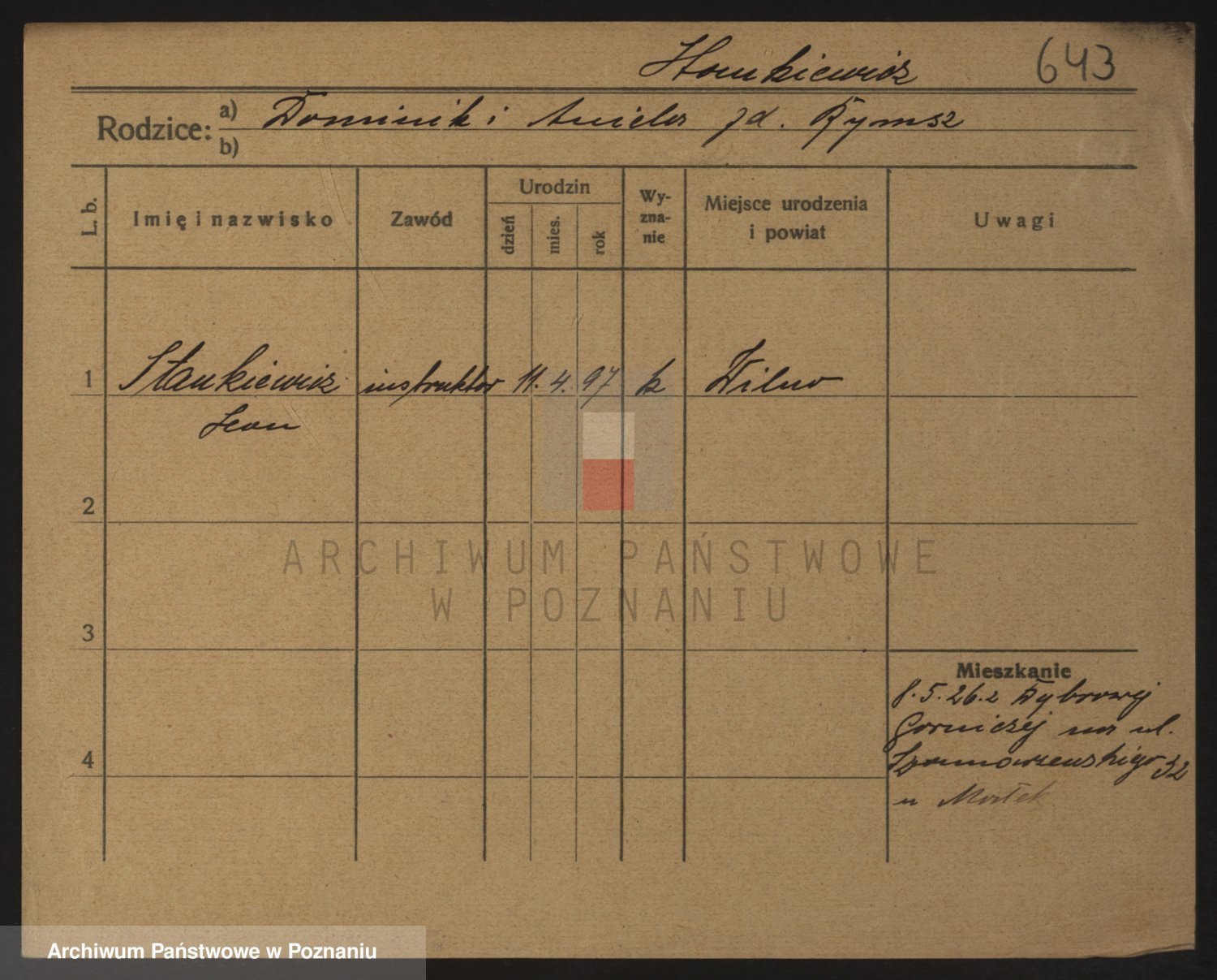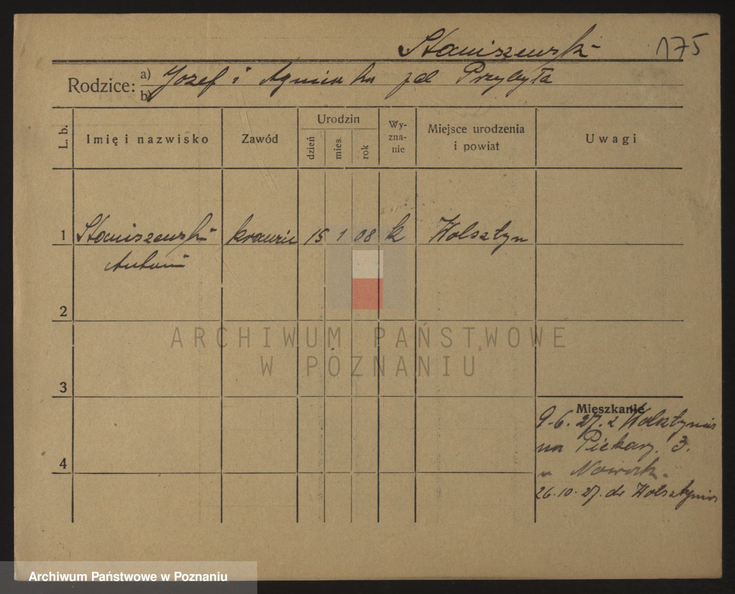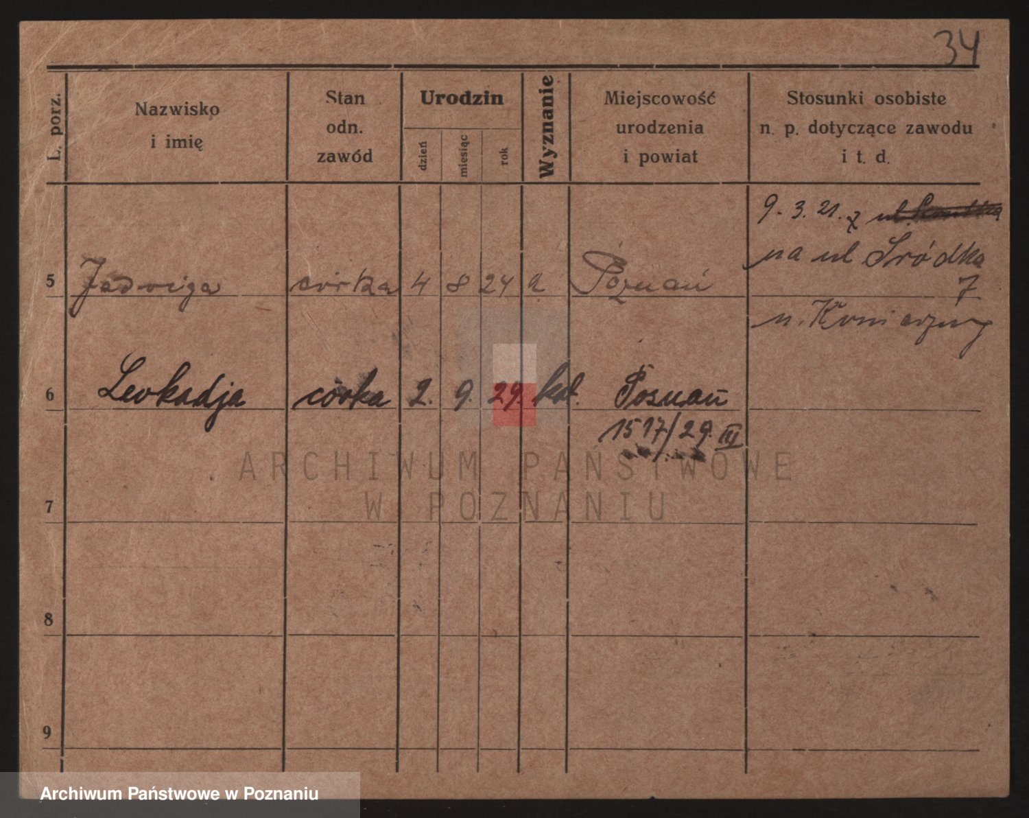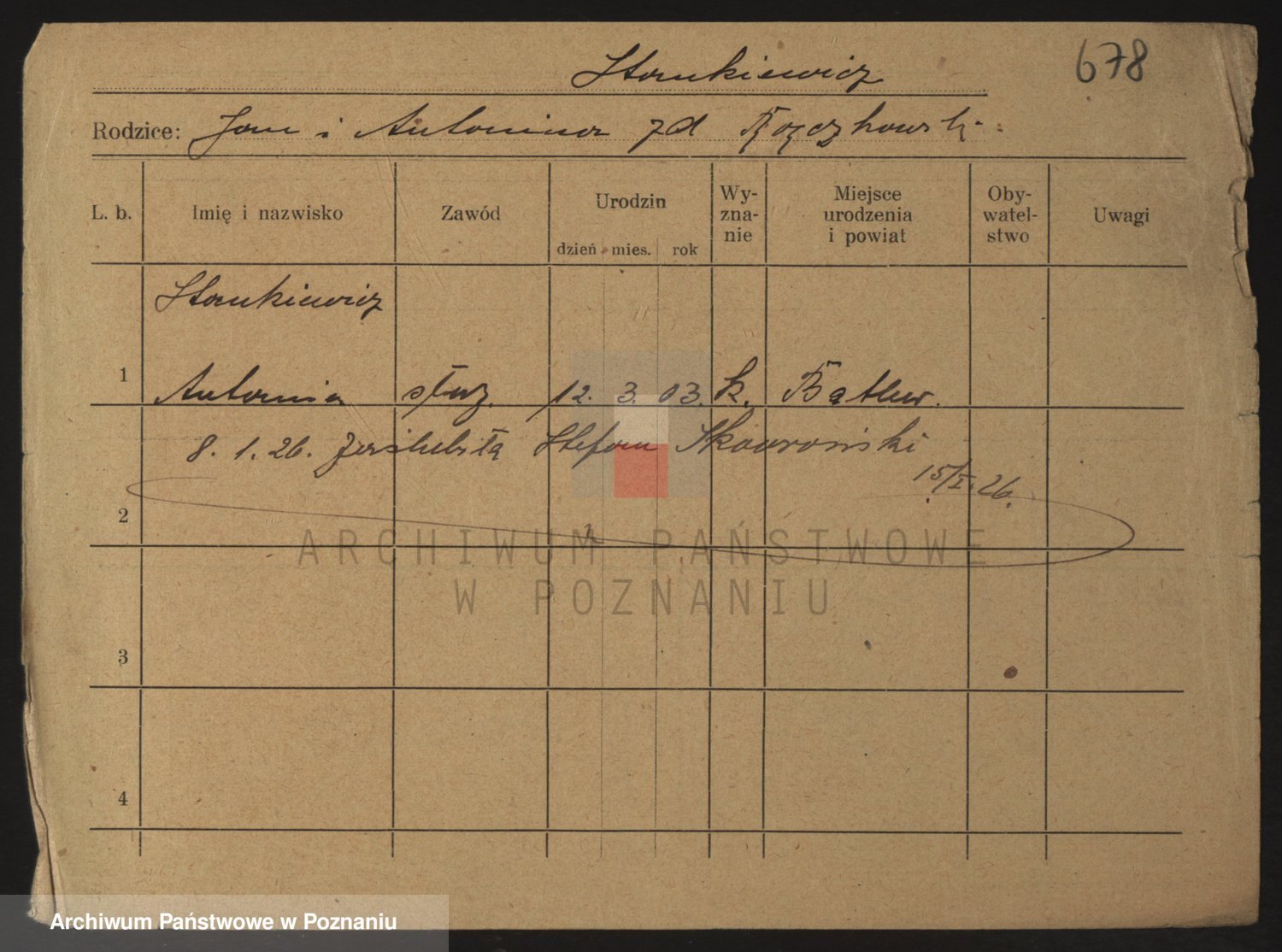 Podgląd karty osobowej dostępny jest po kliknięciu na nazwisko lub ikonkę karty. Można dokonywać powiększenia (ikony na górze) lub przechodzić między kolejnymi skanami (strzałki po bokach).