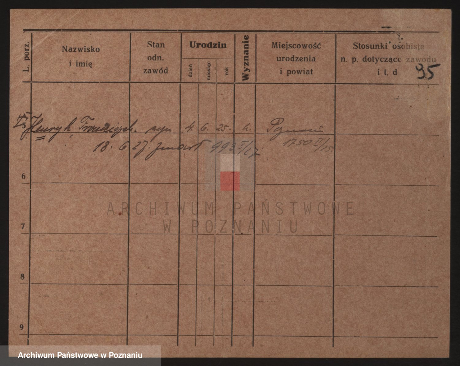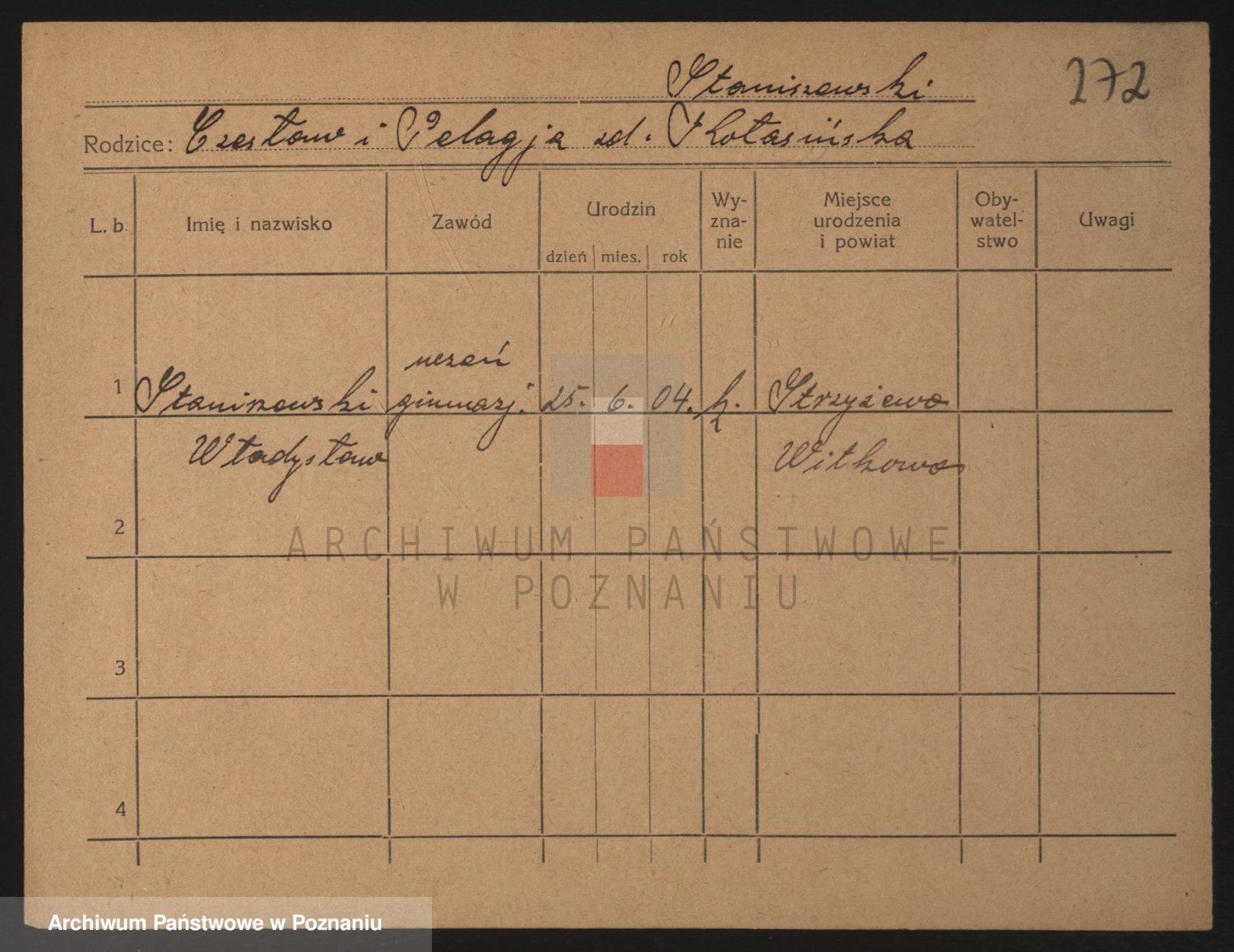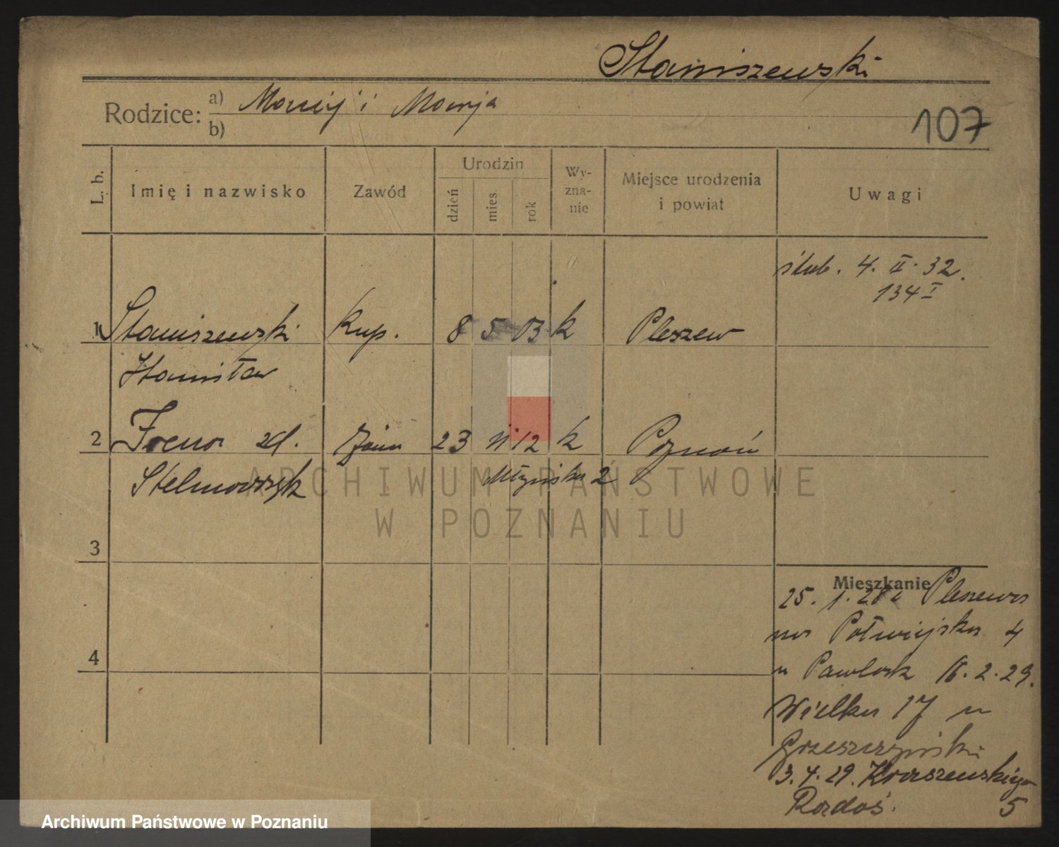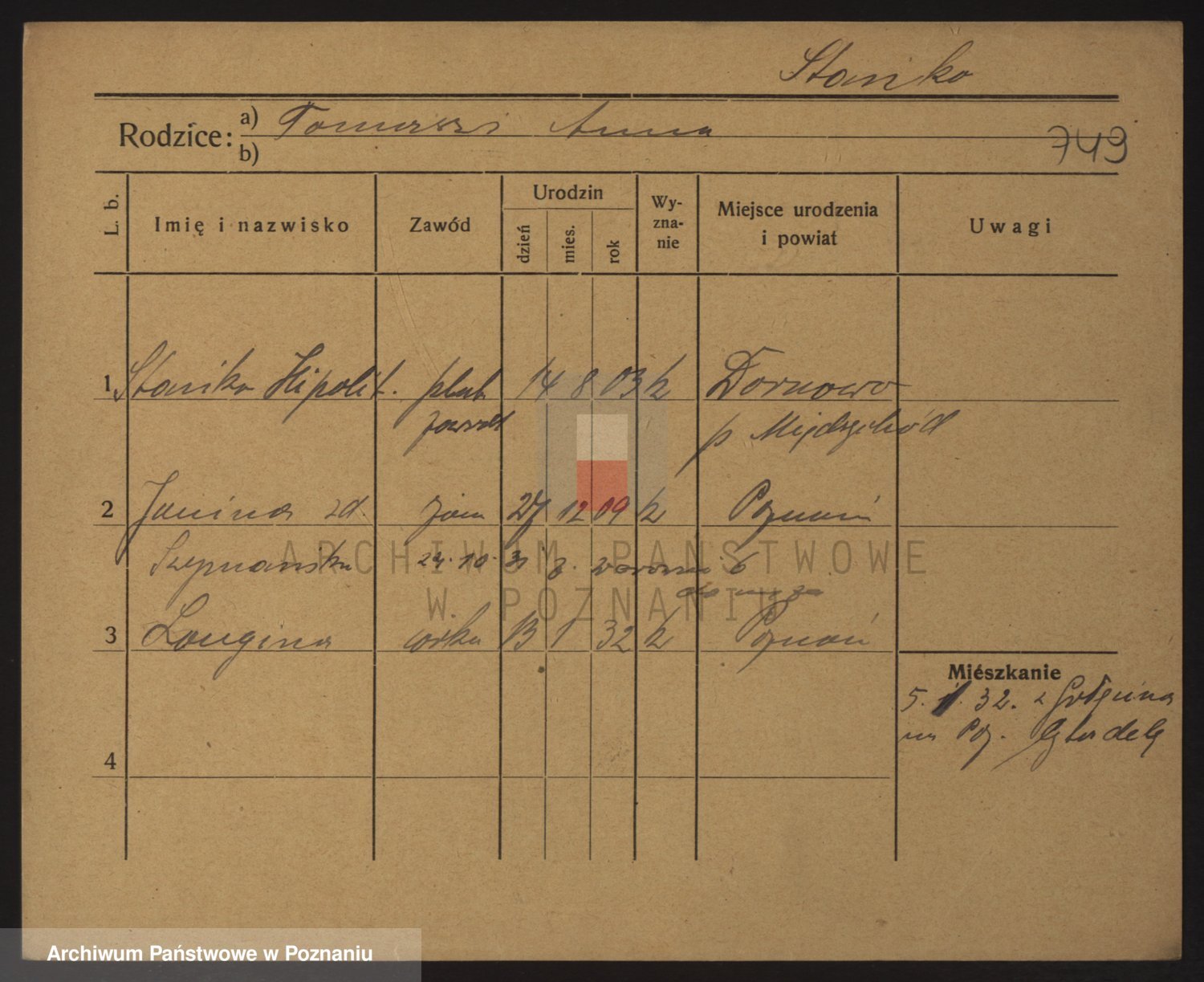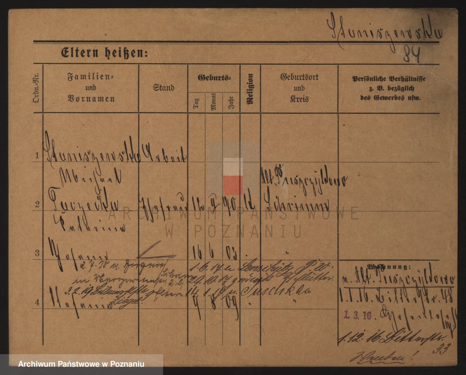 Podgląd karty osobowej dostępny jest po kliknięciu na nazwisko lub ikonkę karty. Można dokonywać powiększenia (ikony na górze) lub przechodzić między kolejnymi skanami (strzałki po bokach).
