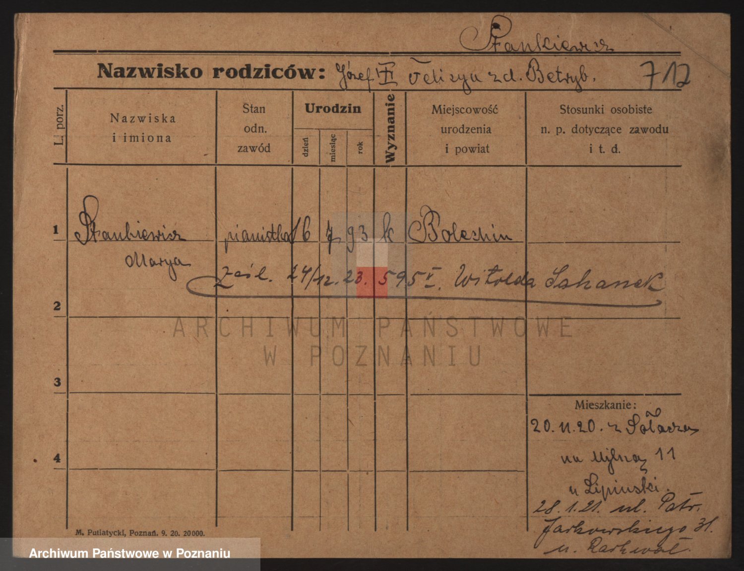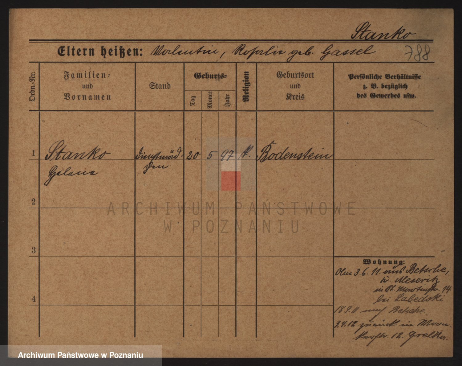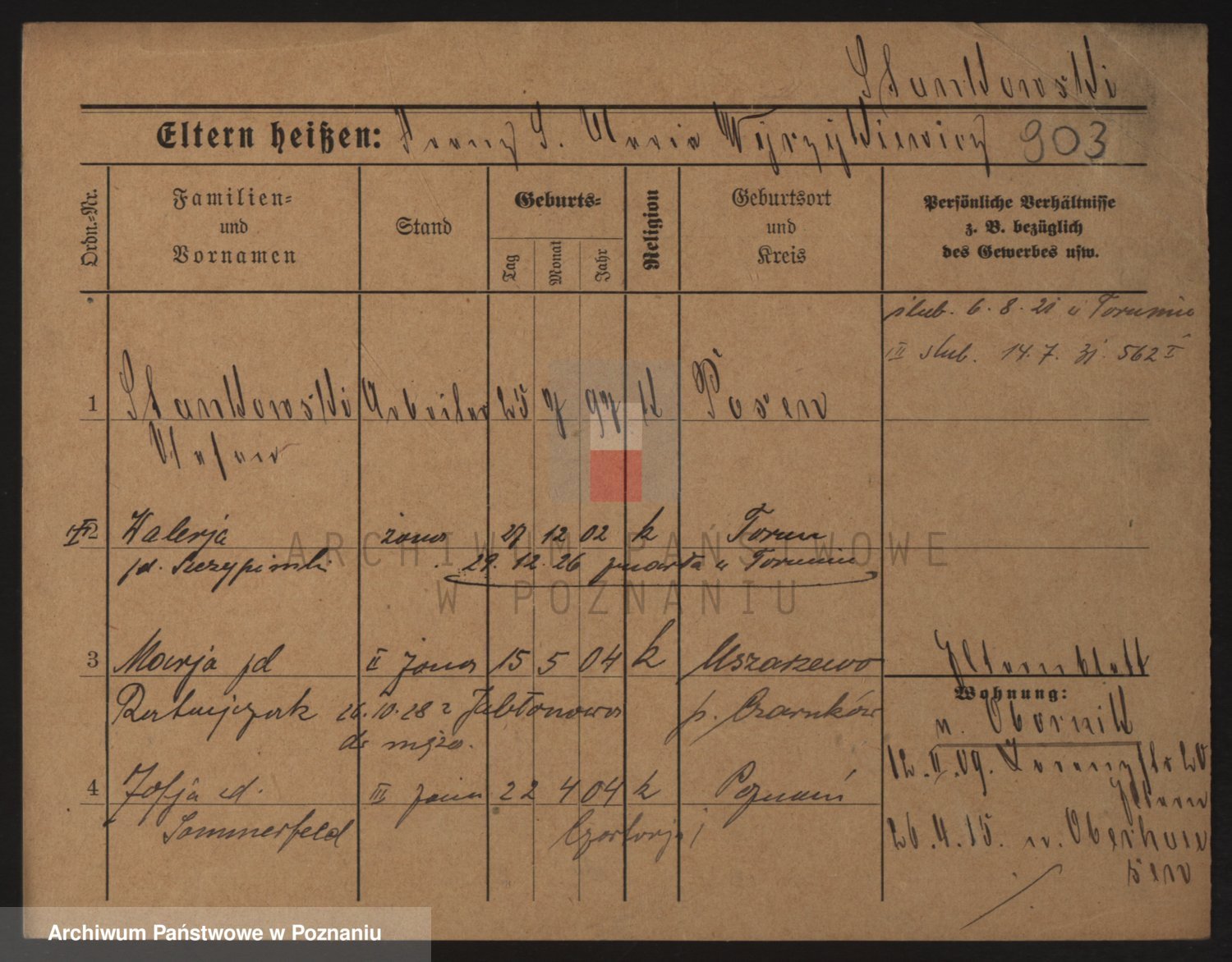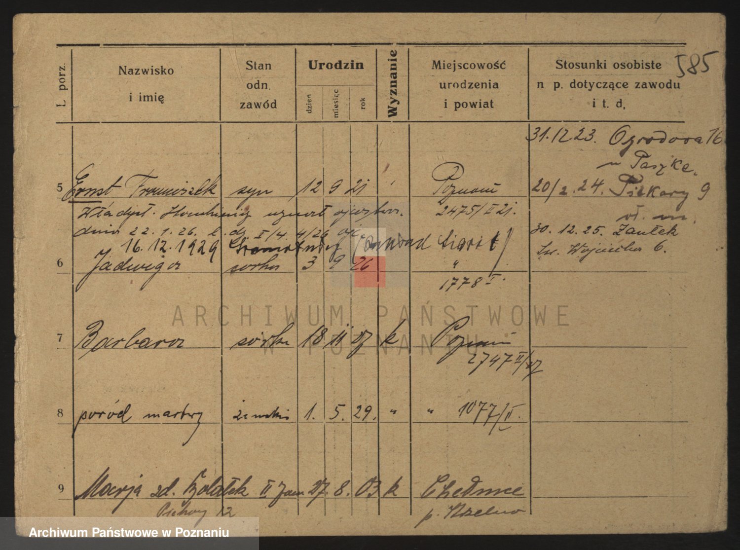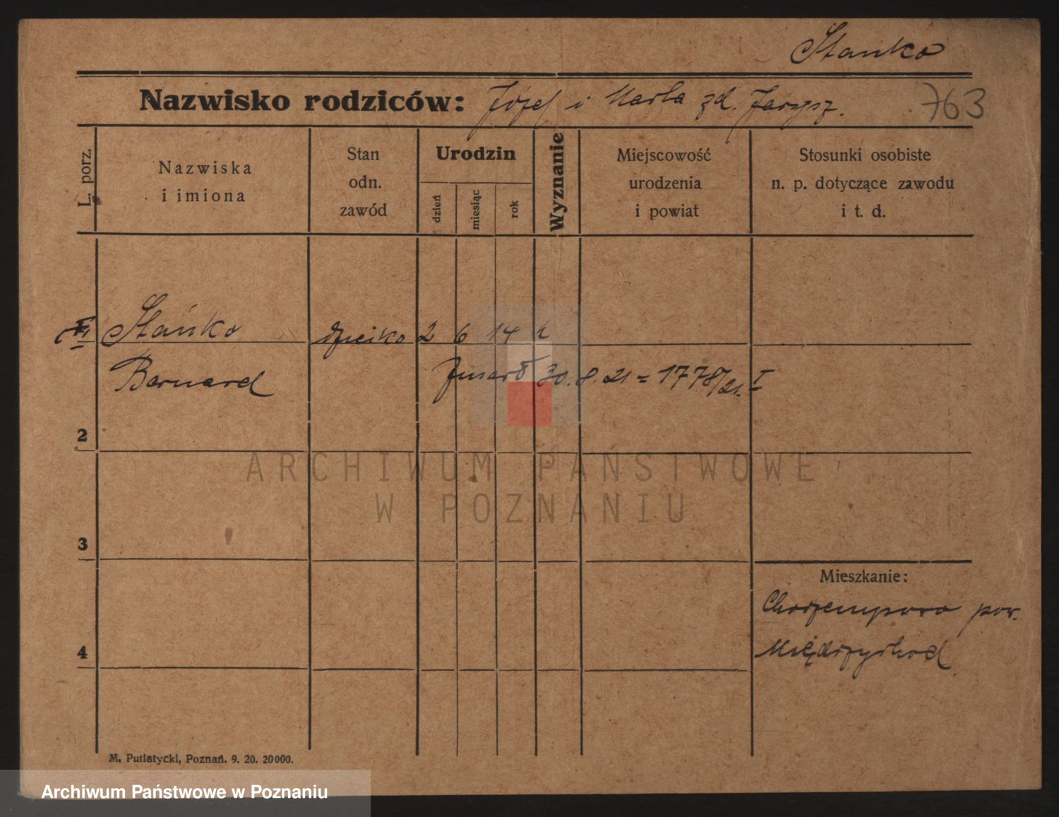 Podgląd karty osobowej dostępny jest po kliknięciu na nazwisko lub ikonkę karty. Można dokonywać powiększenia (ikony na górze) lub przechodzić między kolejnymi skanami (strzałki po bokach).