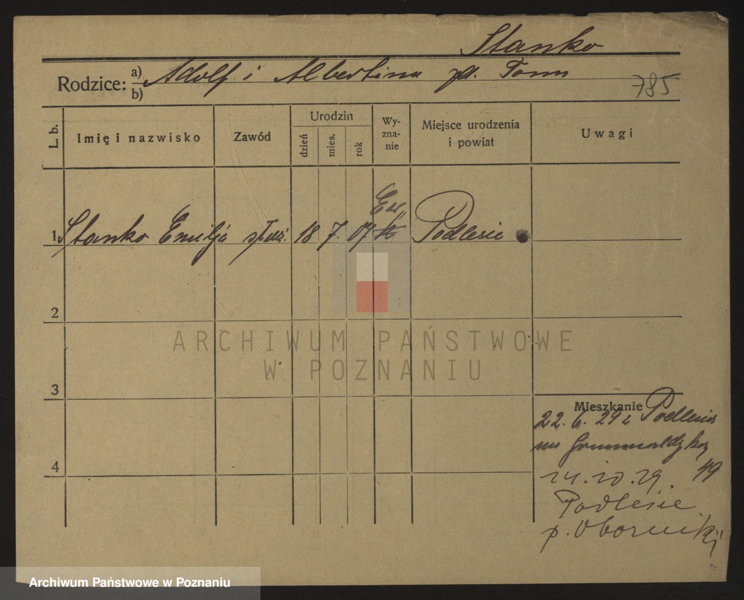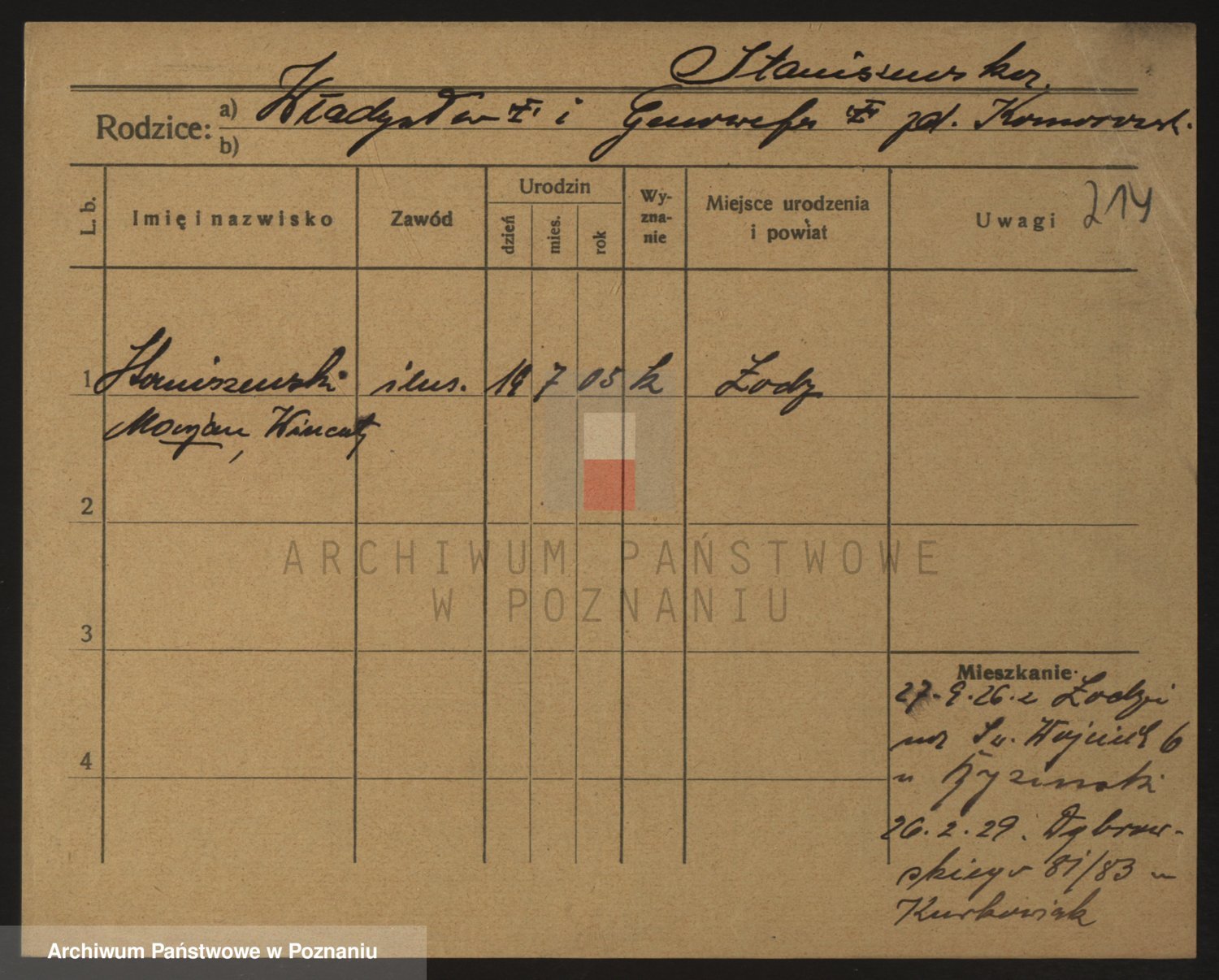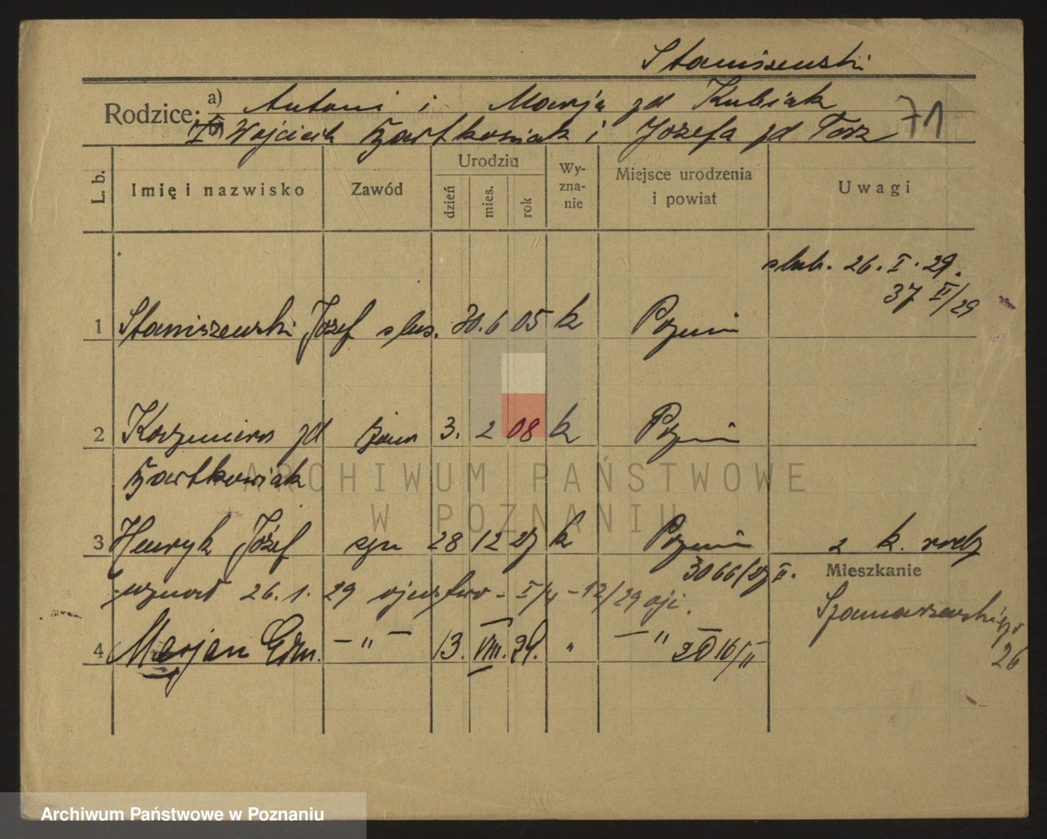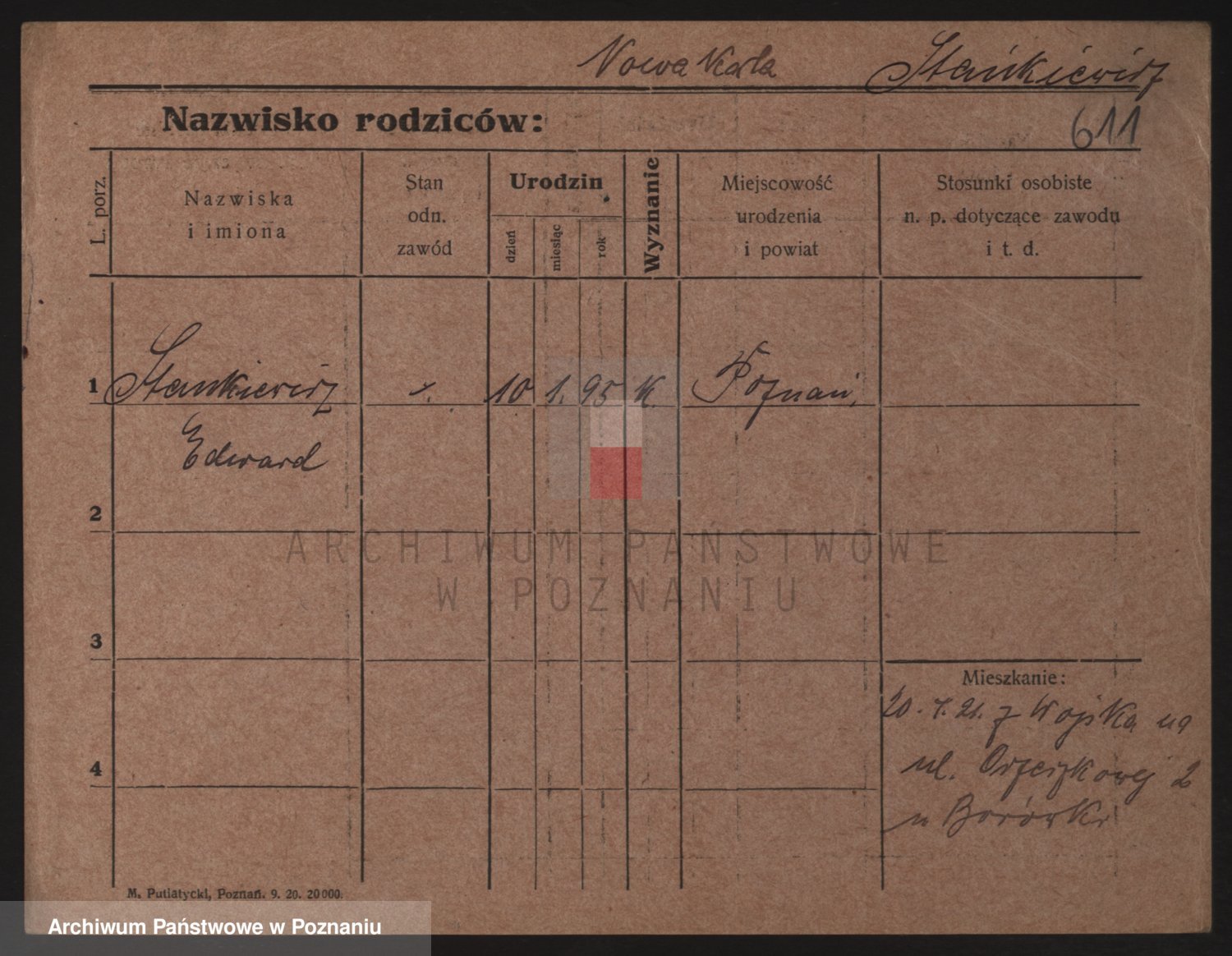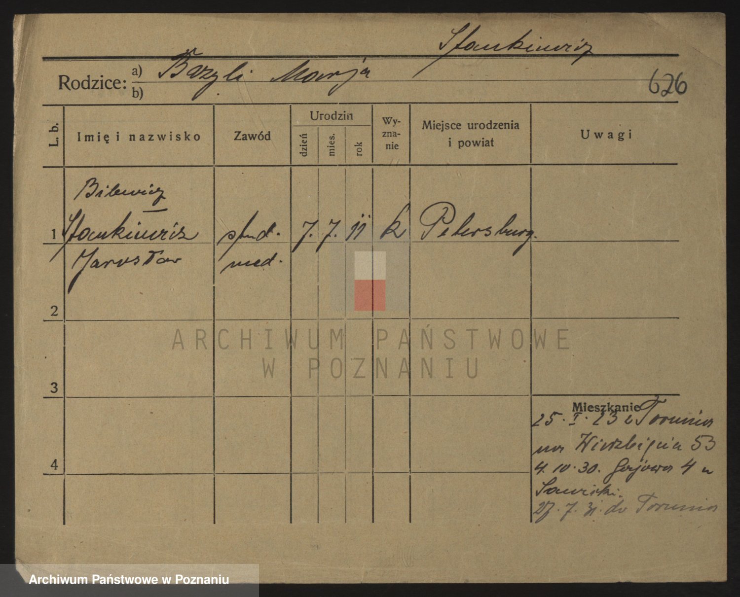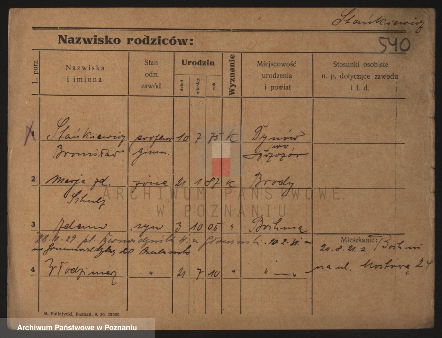 Podgląd karty osobowej dostępny jest po kliknięciu na nazwisko lub ikonkę karty. Można dokonywać powiększenia (ikony na górze) lub przechodzić między kolejnymi skanami (strzałki po bokach).