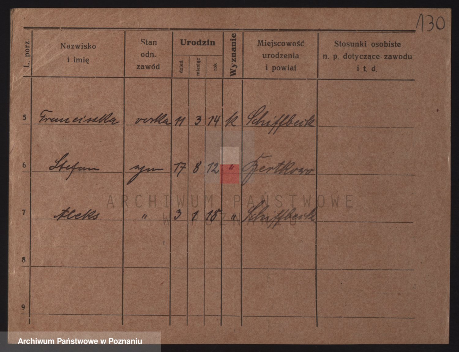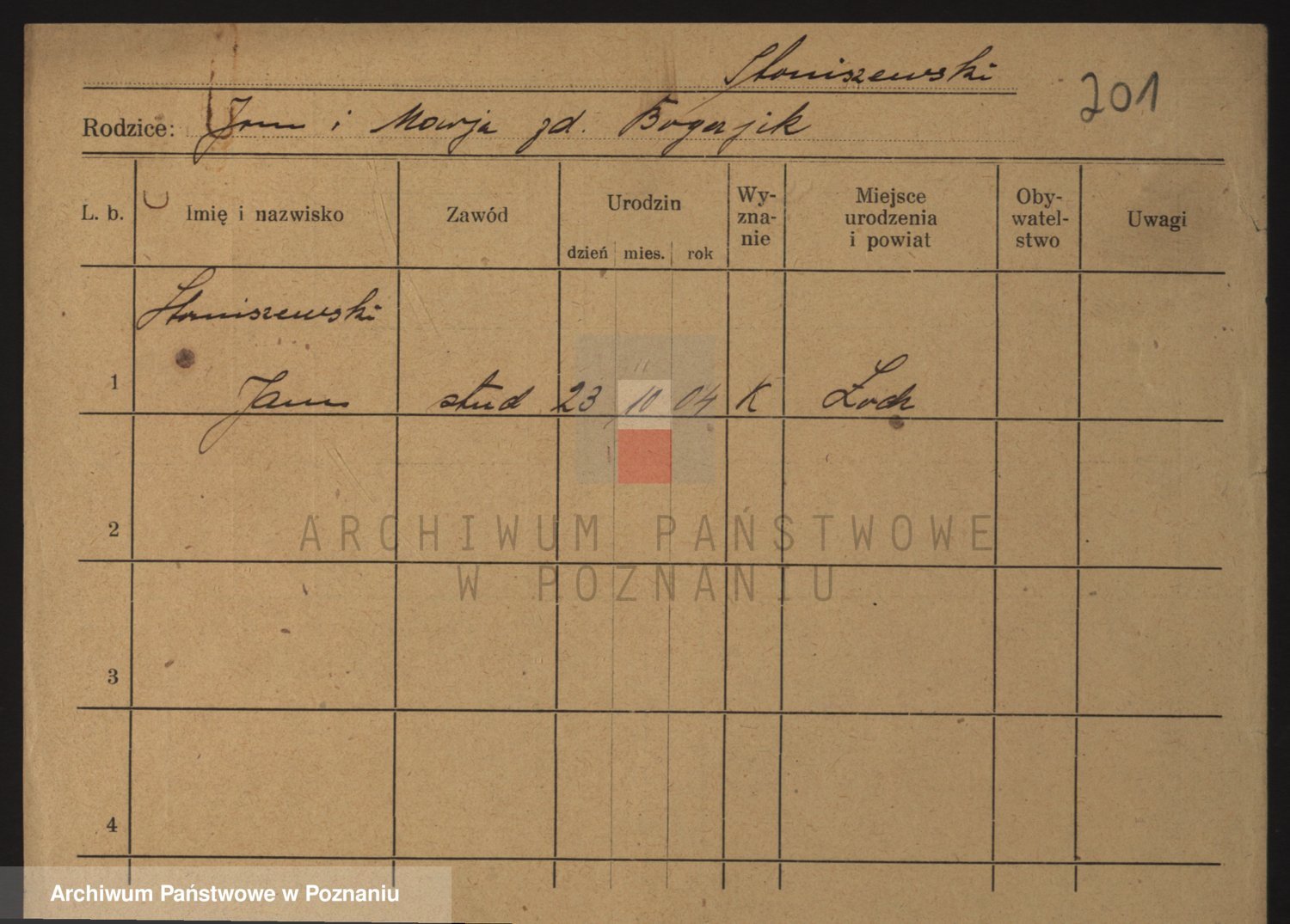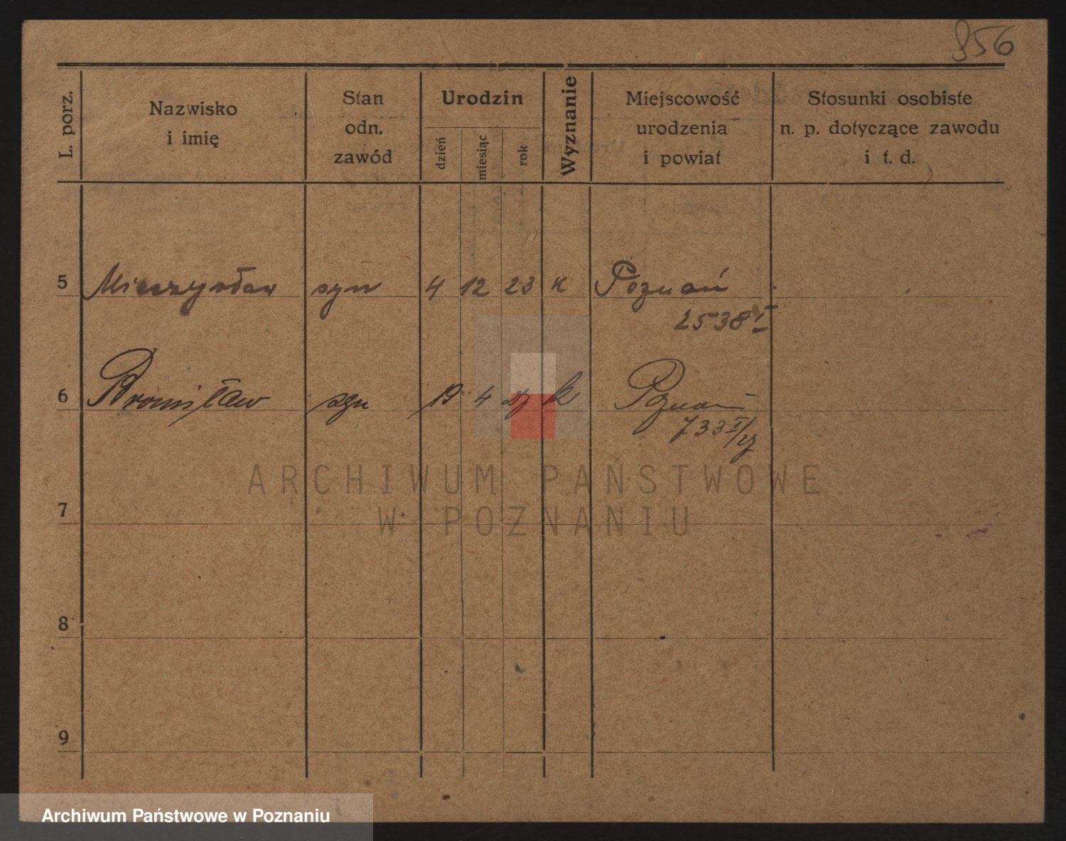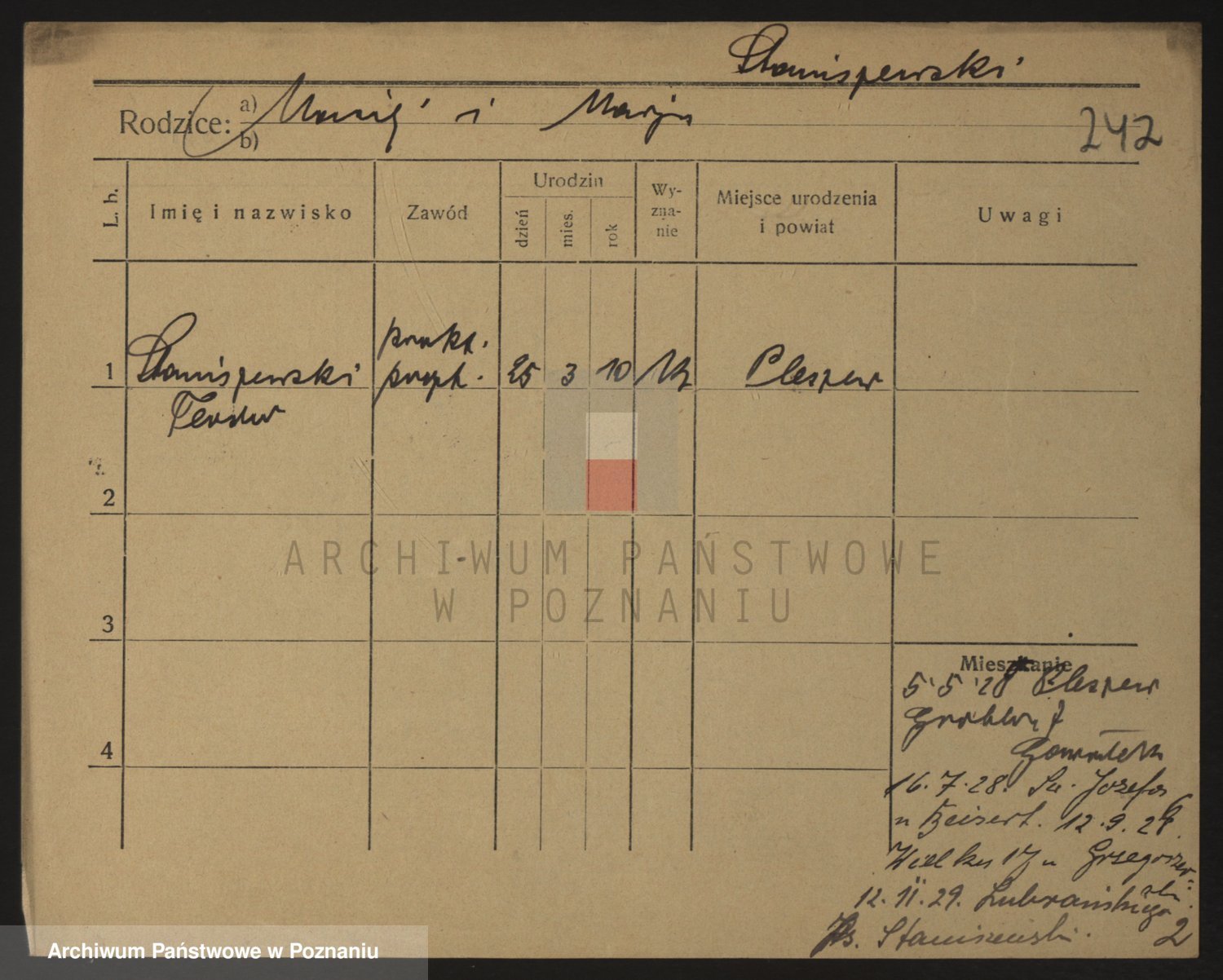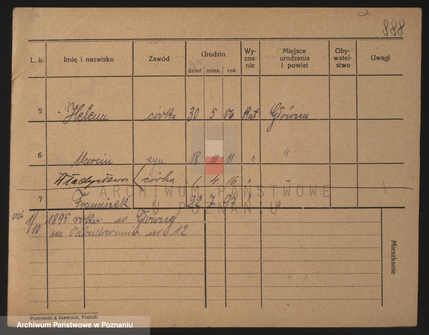 Podgląd karty osobowej dostępny jest po kliknięciu na nazwisko lub ikonkę karty. Można dokonywać powiększenia (ikony na górze) lub przechodzić między kolejnymi skanami (strzałki po bokach).