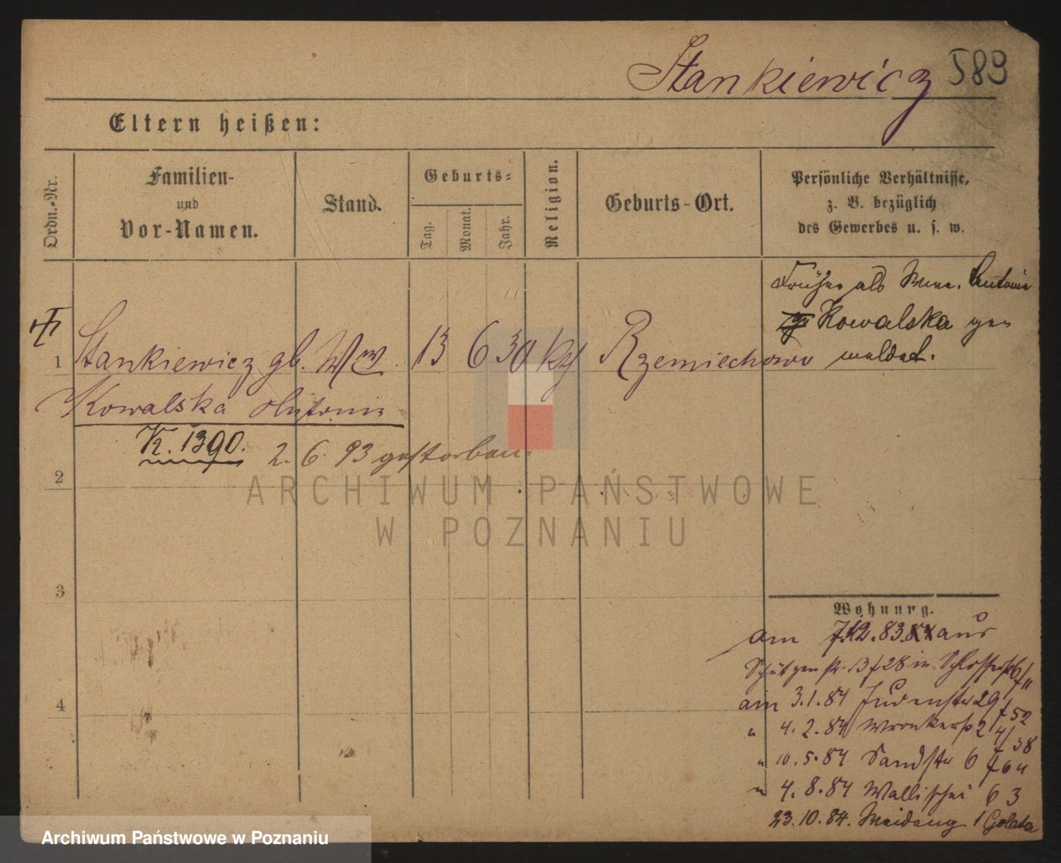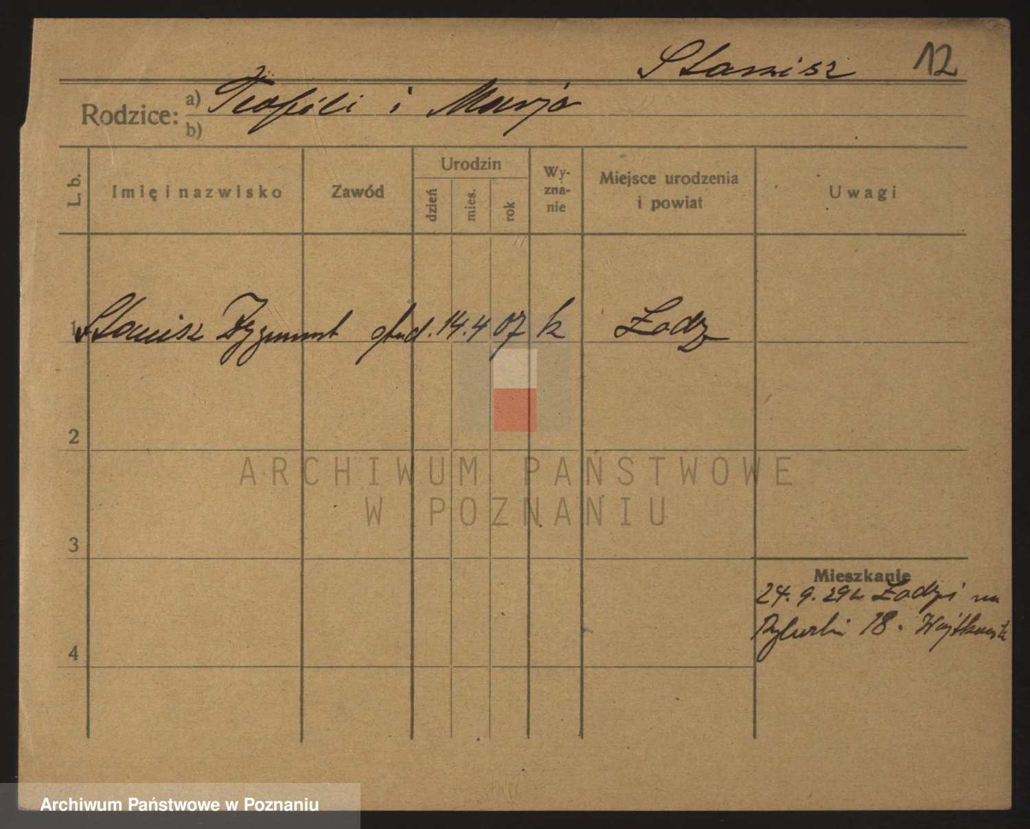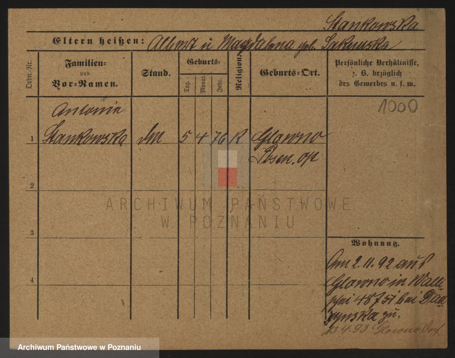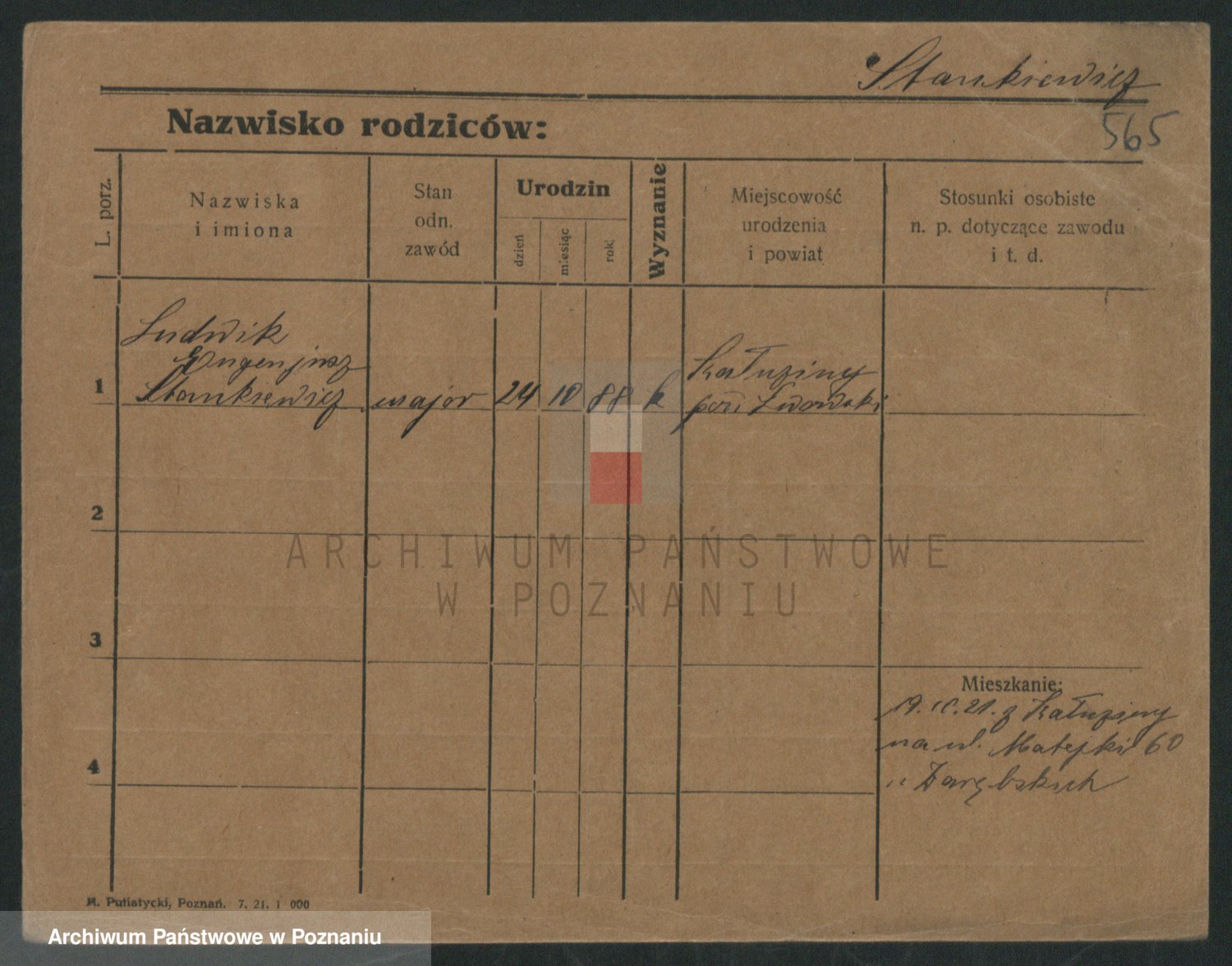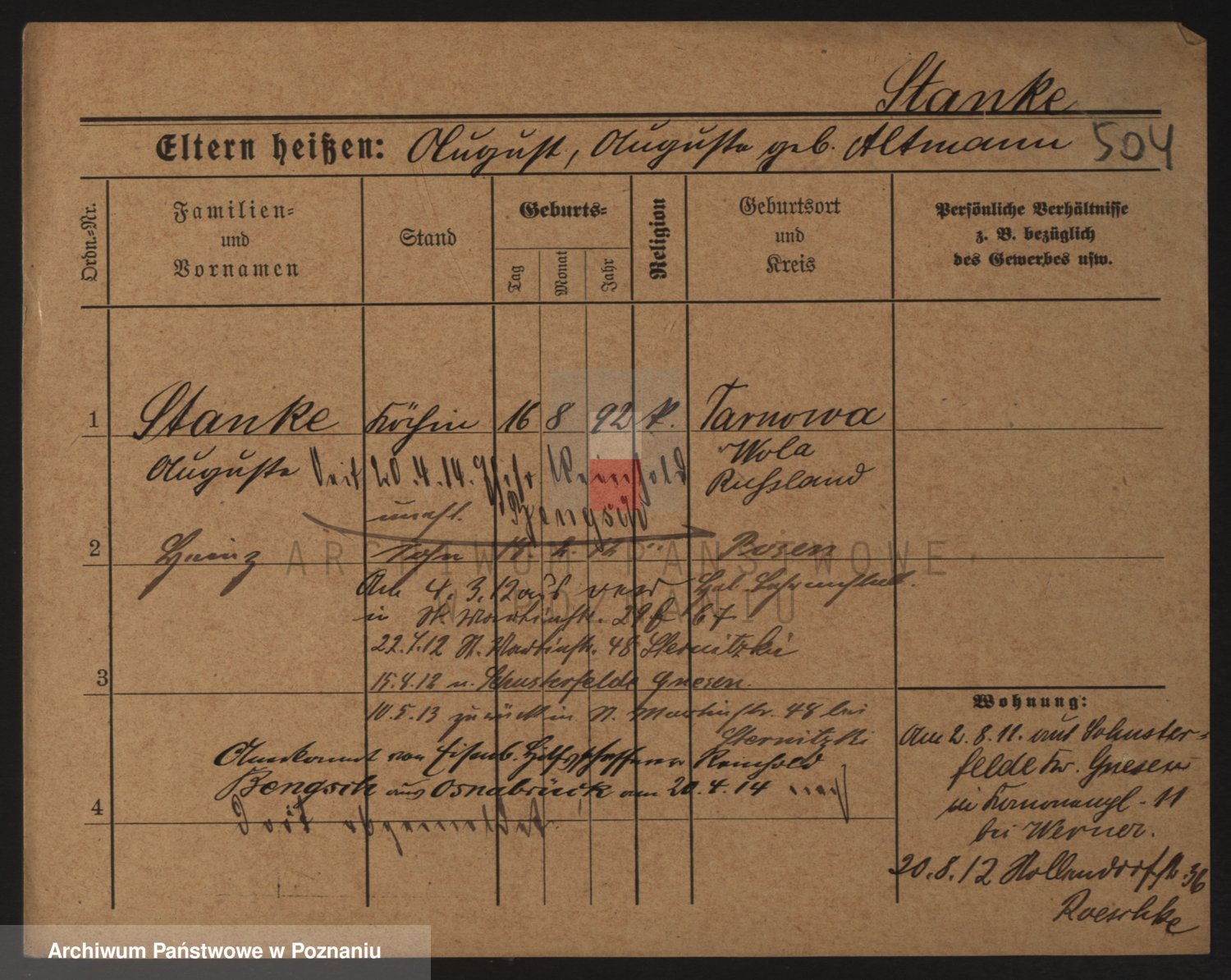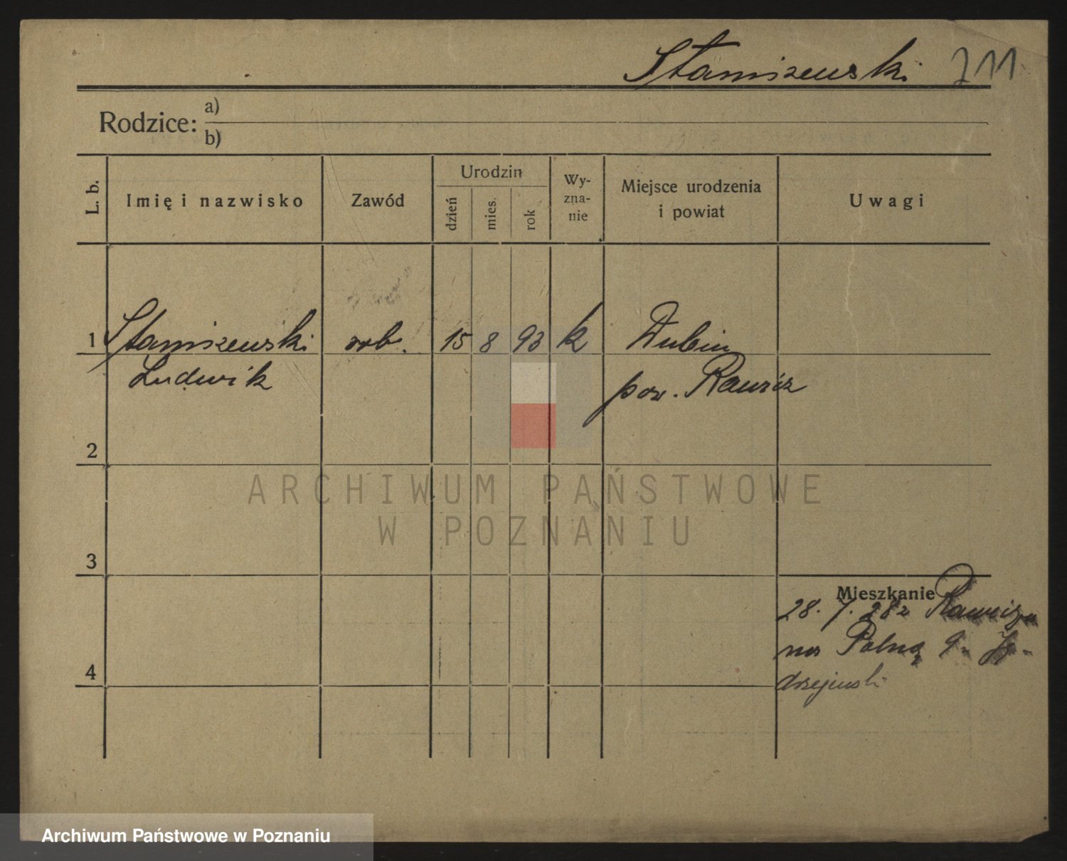 Podgląd karty osobowej dostępny jest po kliknięciu na nazwisko lub ikonkę karty. Można dokonywać powiększenia (ikony na górze) lub przechodzić między kolejnymi skanami (strzałki po bokach).