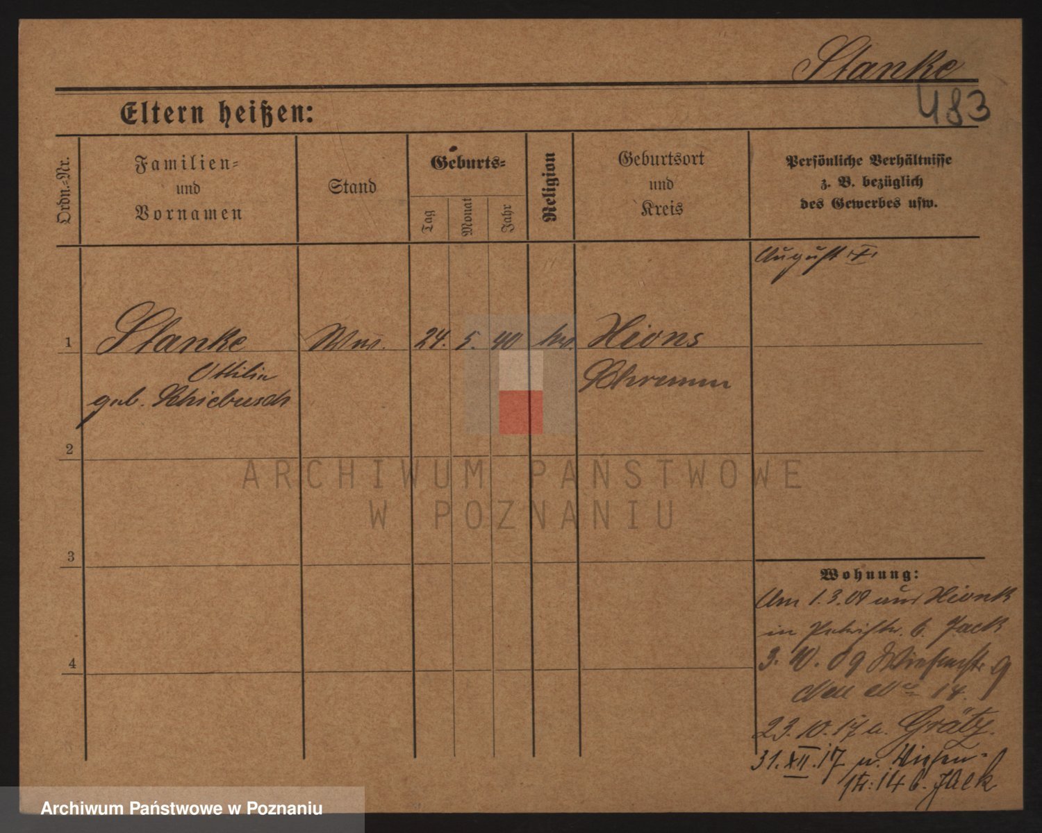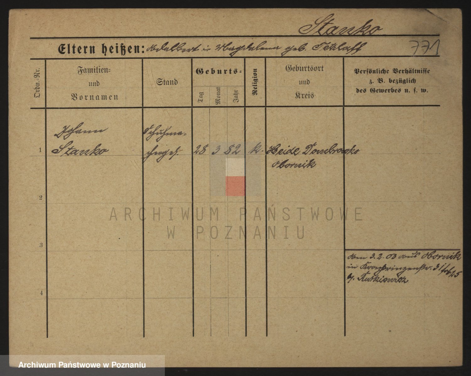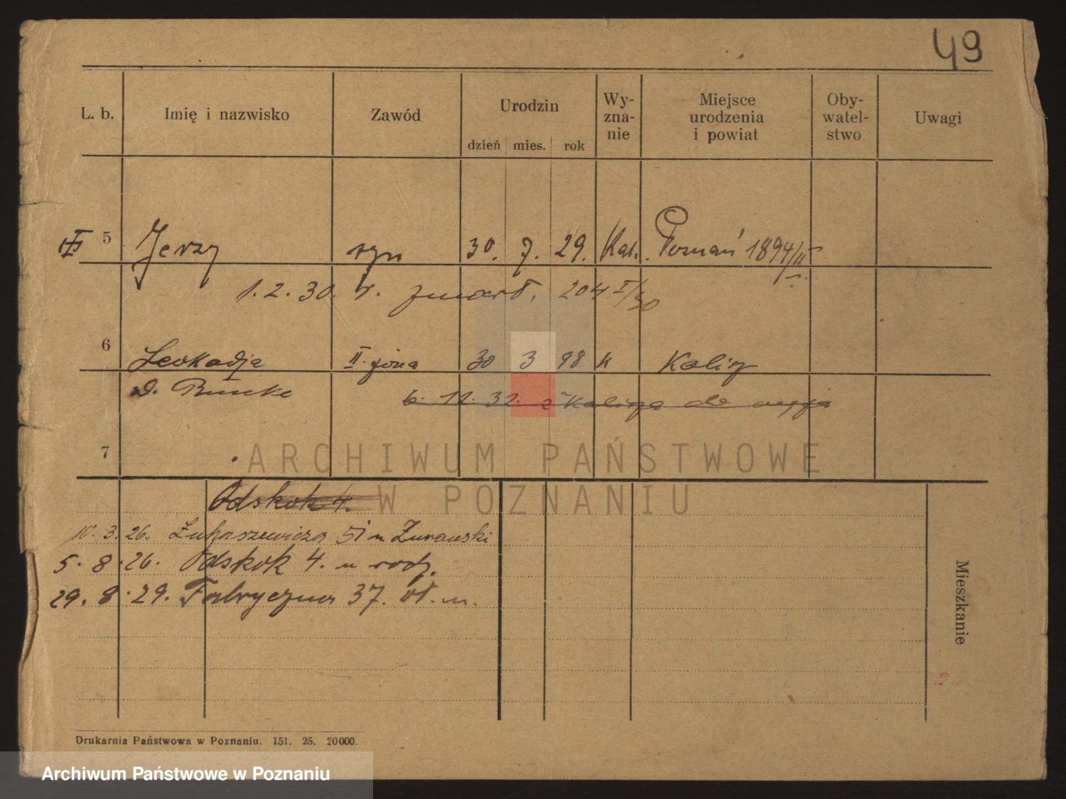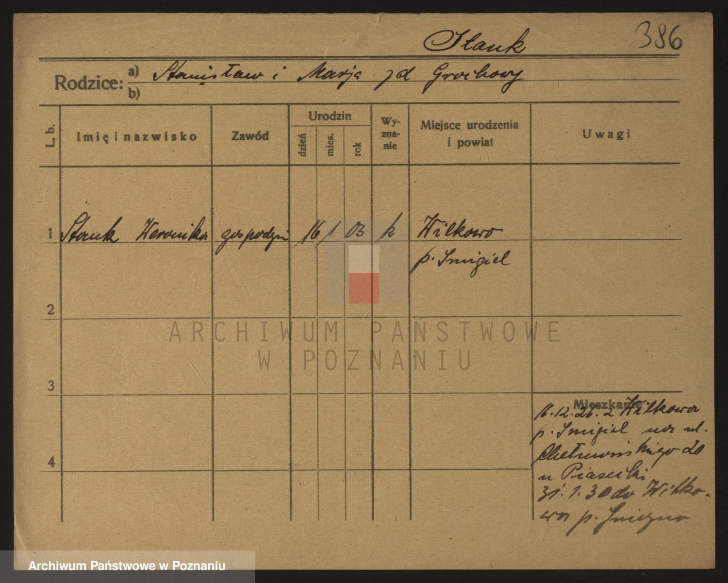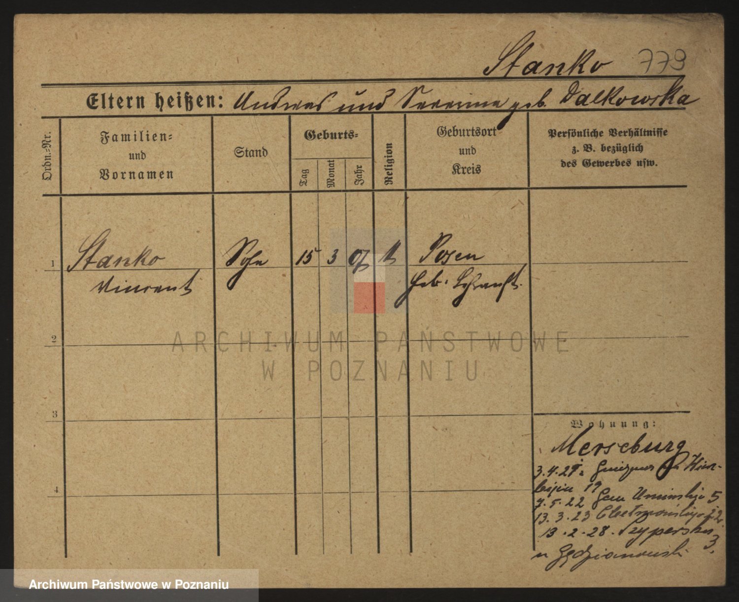 Podgląd karty osobowej dostępny jest po kliknięciu na nazwisko lub ikonkę karty. Można dokonywać powiększenia (ikony na górze) lub przechodzić między kolejnymi skanami (strzałki po bokach).
