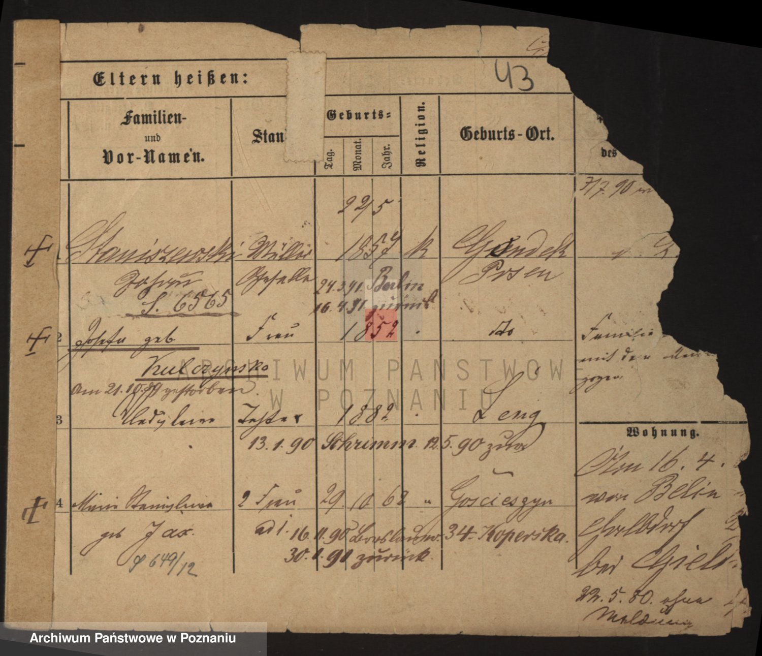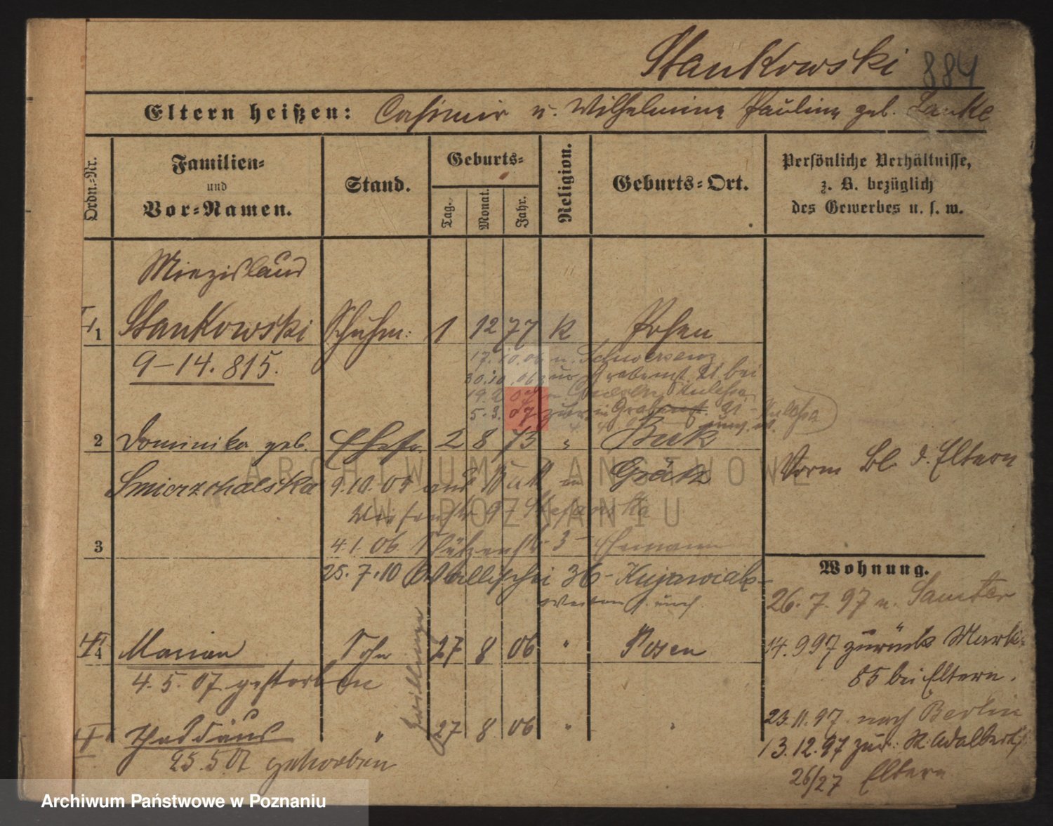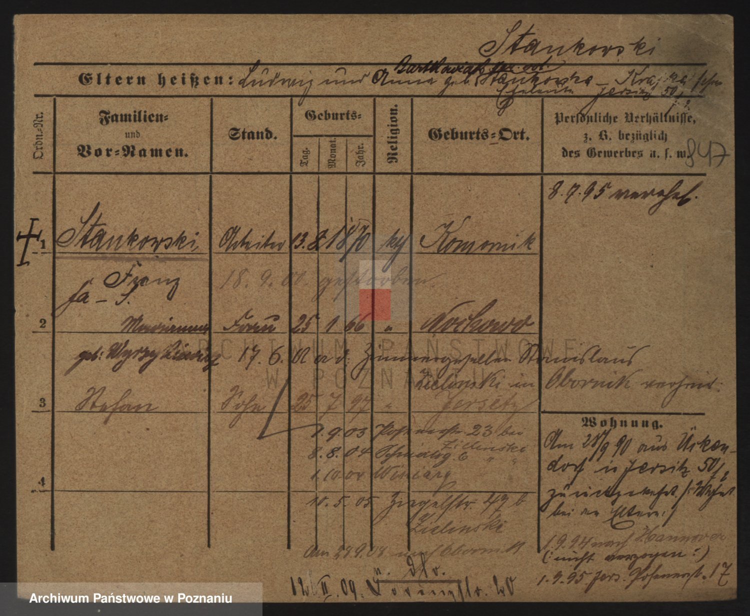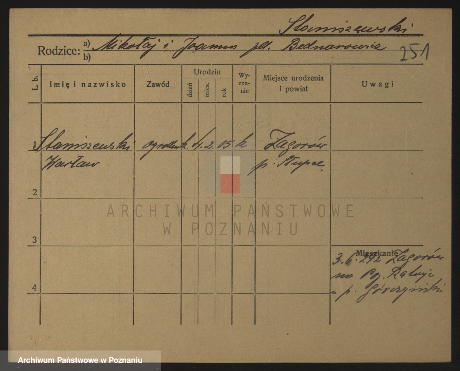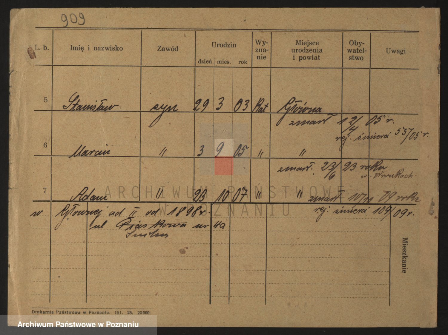 Podgląd karty osobowej dostępny jest po kliknięciu na nazwisko lub ikonkę karty. Można dokonywać powiększenia (ikony na górze) lub przechodzić między kolejnymi skanami (strzałki po bokach).