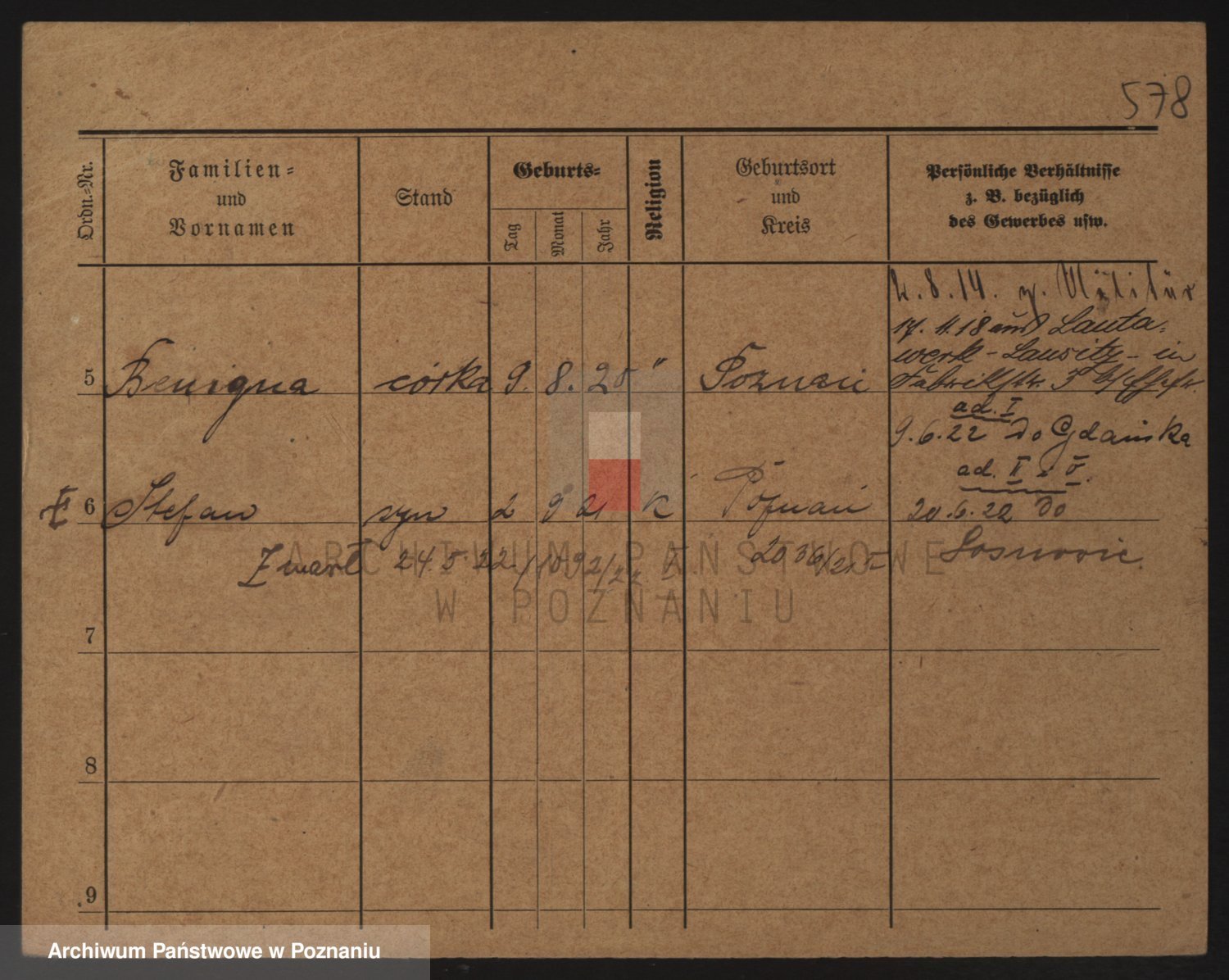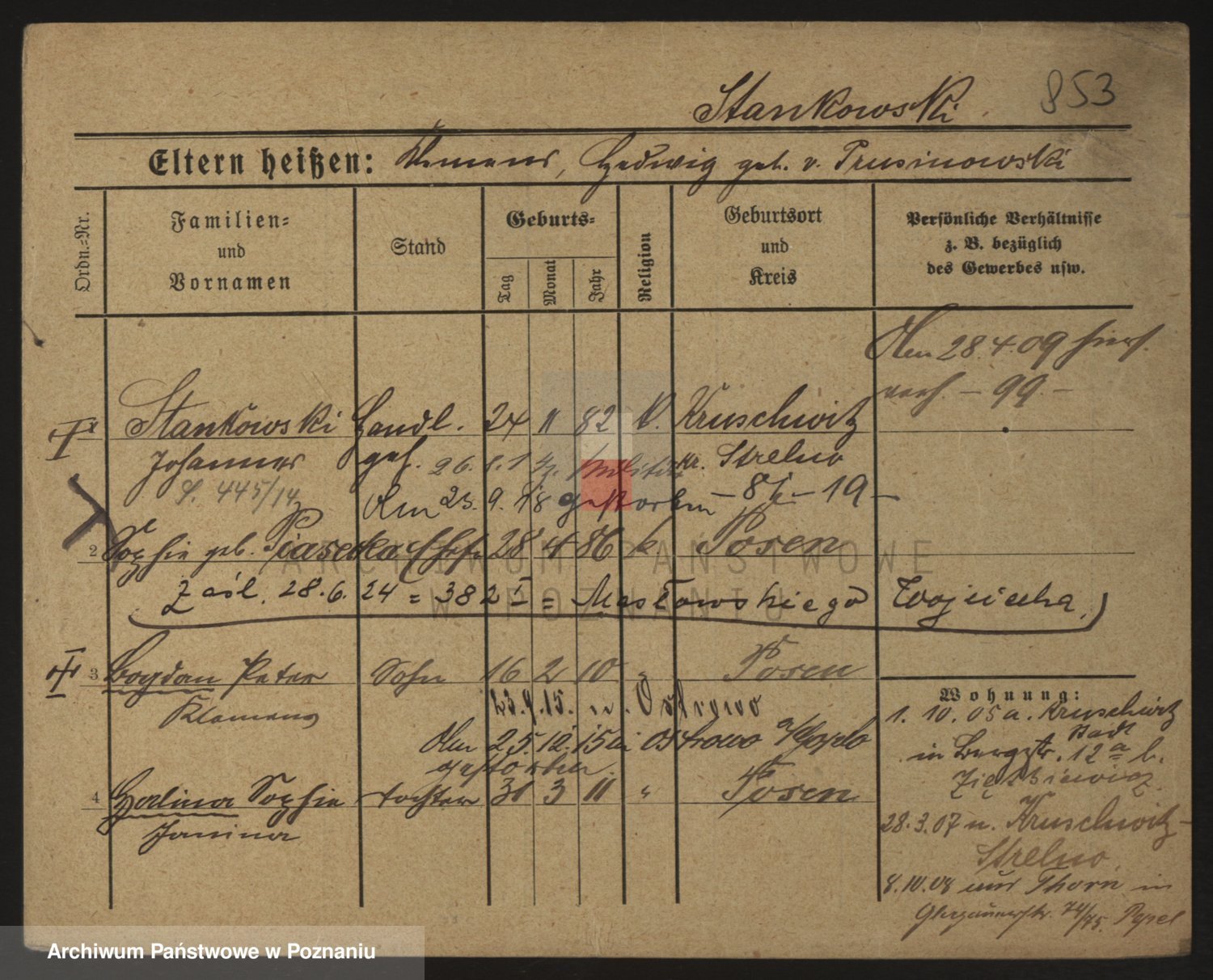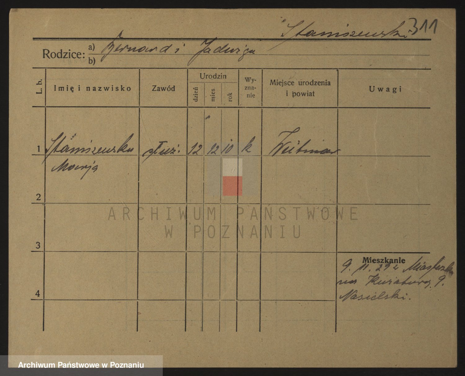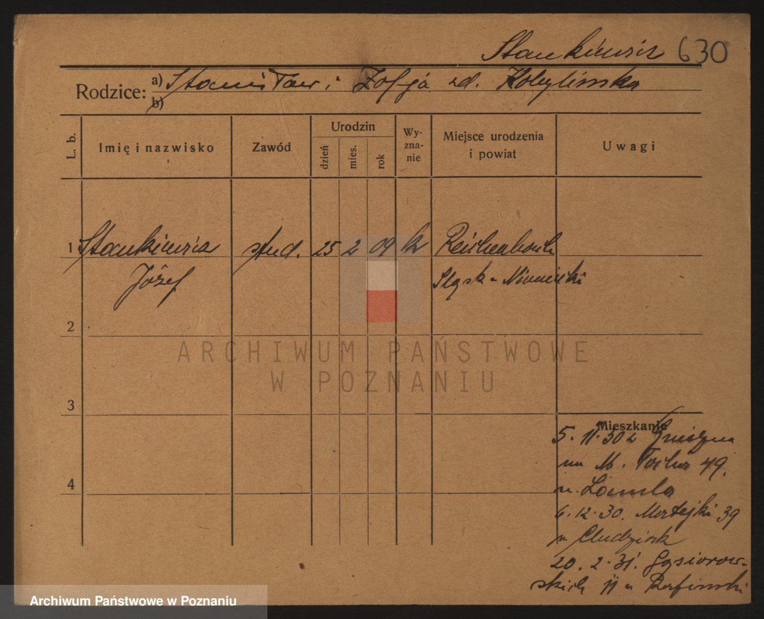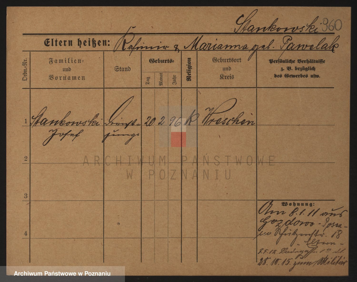 Podgląd karty osobowej dostępny jest po kliknięciu na nazwisko lub ikonkę karty. Można dokonywać powiększenia (ikony na górze) lub przechodzić między kolejnymi skanami (strzałki po bokach).