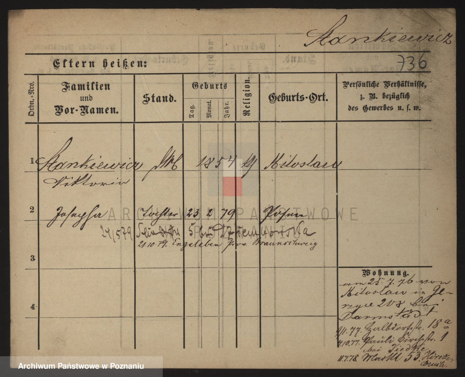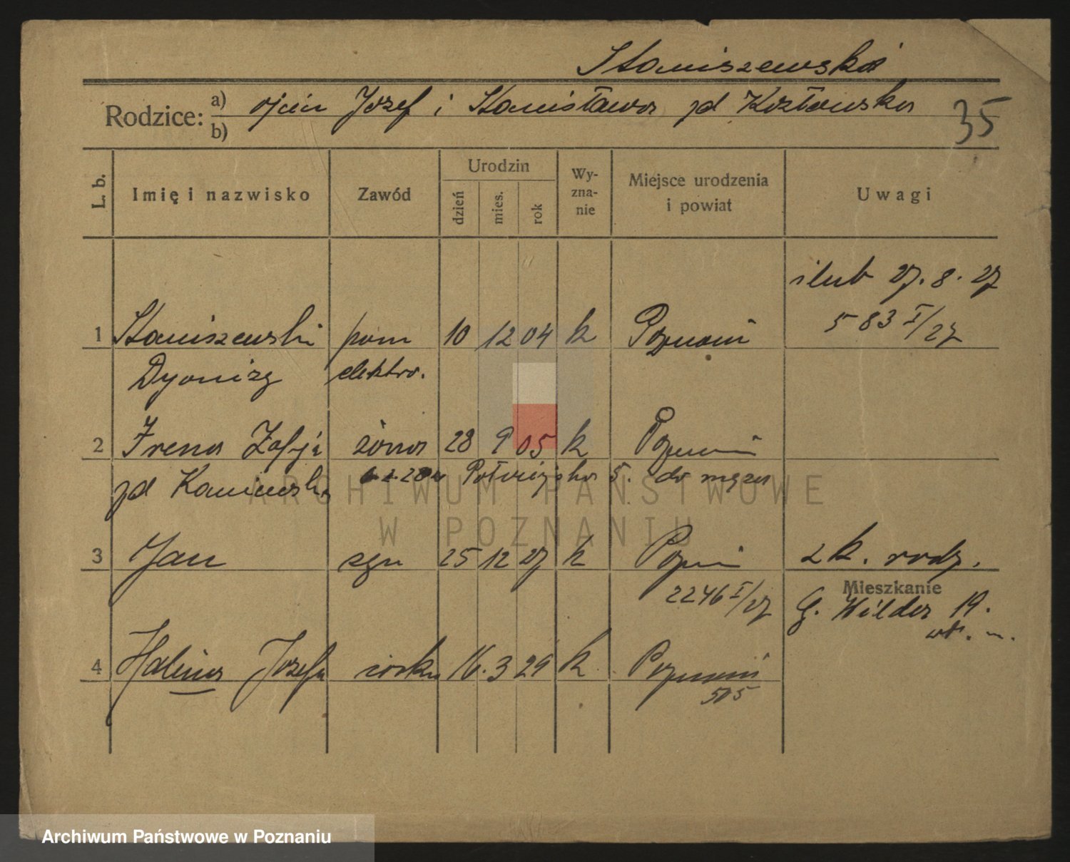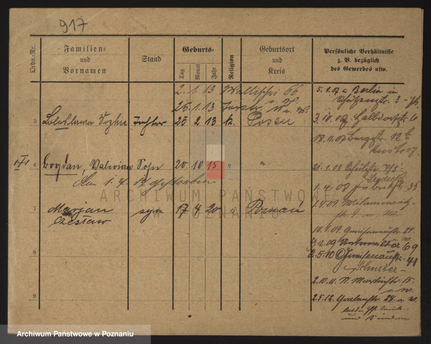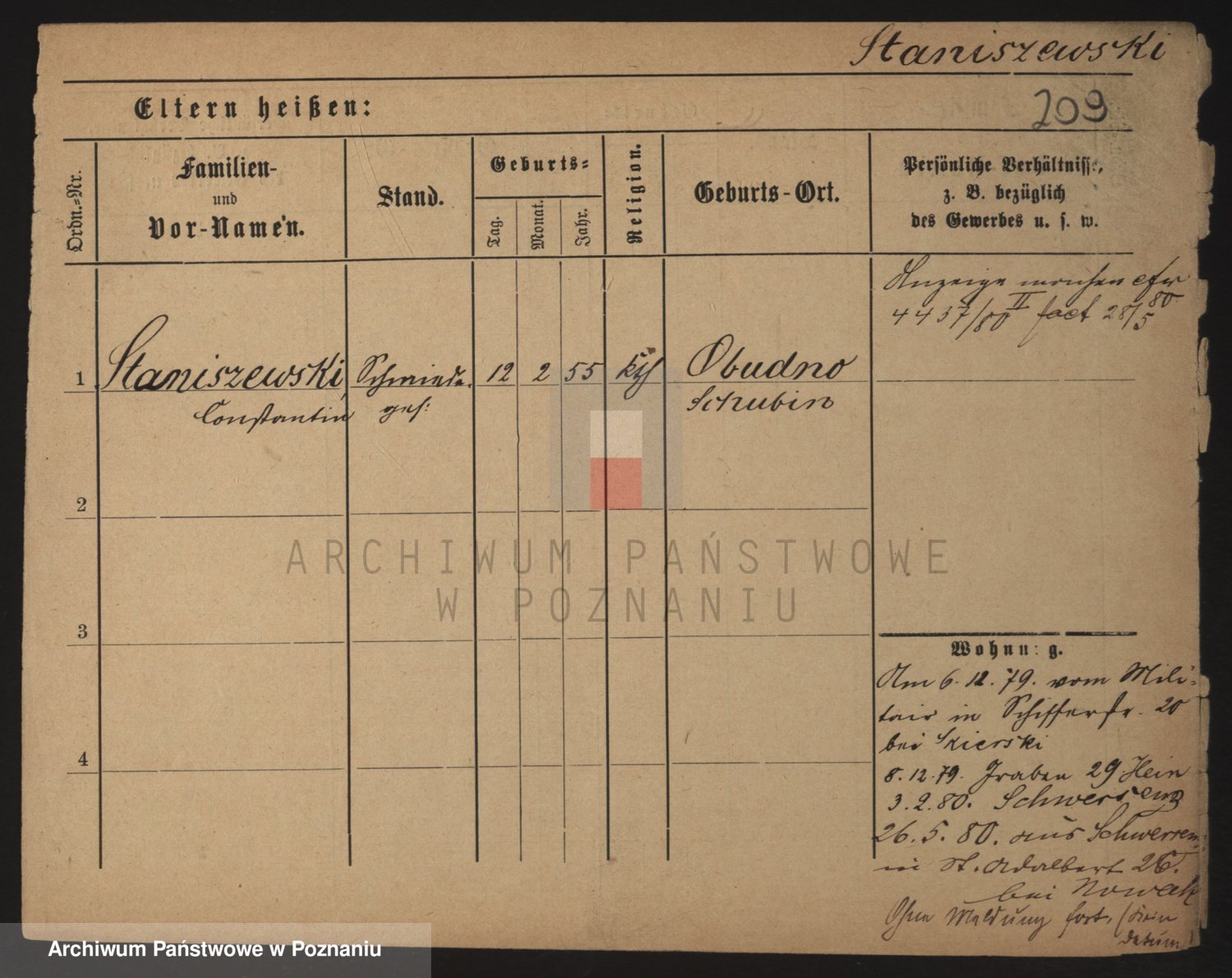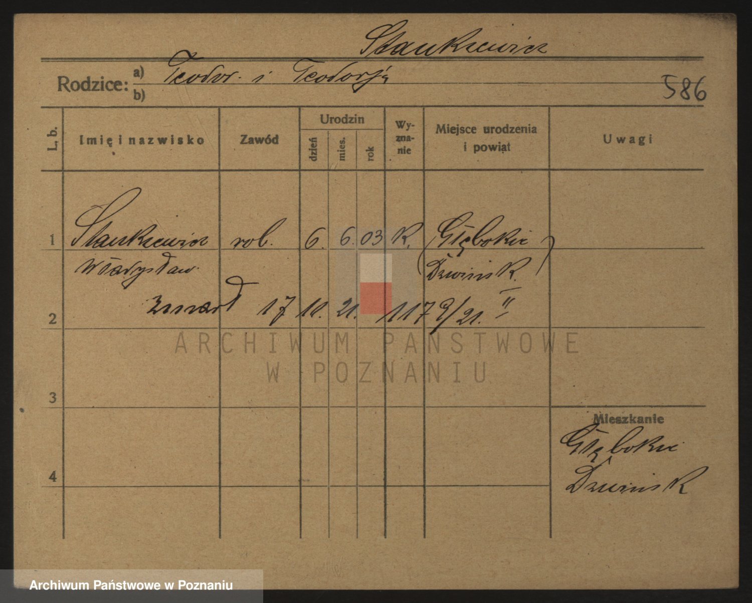 Podgląd karty osobowej dostępny jest po kliknięciu na nazwisko lub ikonkę karty. Można dokonywać powiększenia (ikony na górze) lub przechodzić między kolejnymi skanami (strzałki po bokach).