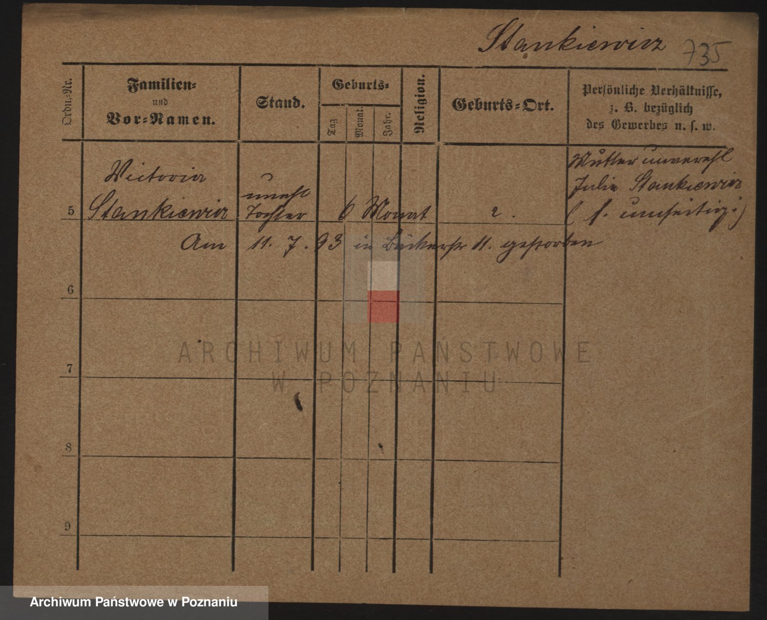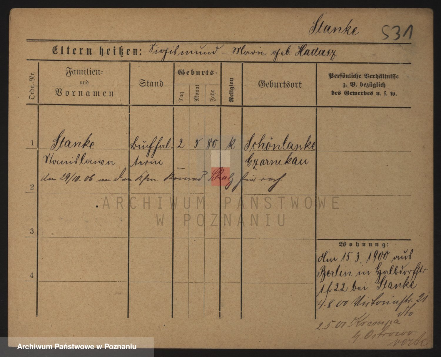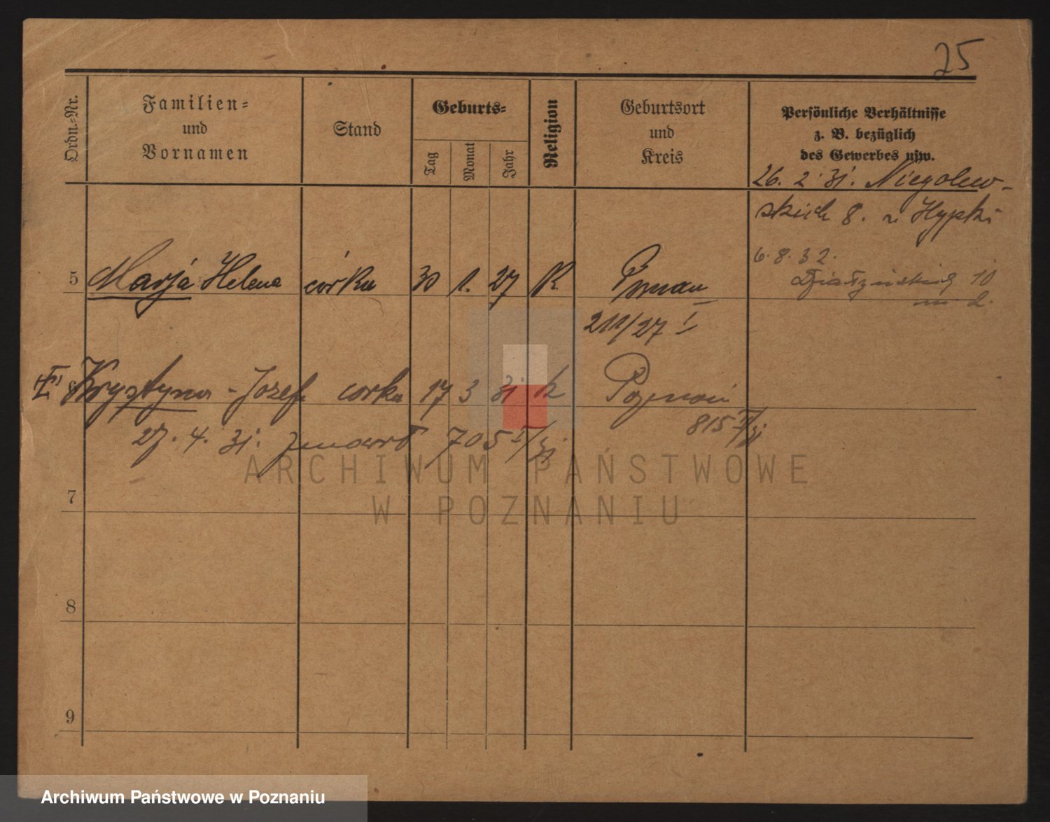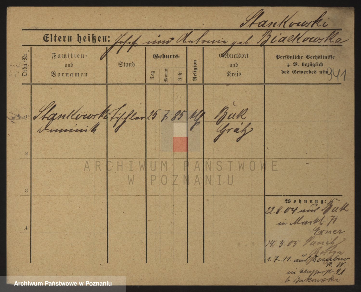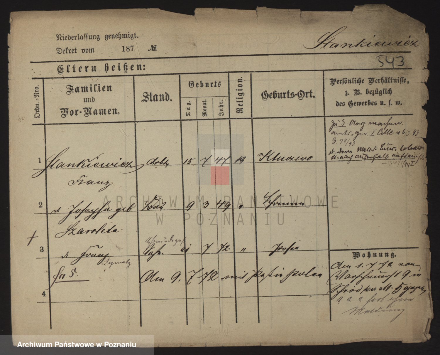 Podgląd karty osobowej dostępny jest po kliknięciu na nazwisko lub ikonkę karty. Można dokonywać powiększenia (ikony na górze) lub przechodzić między kolejnymi skanami (strzałki po bokach).